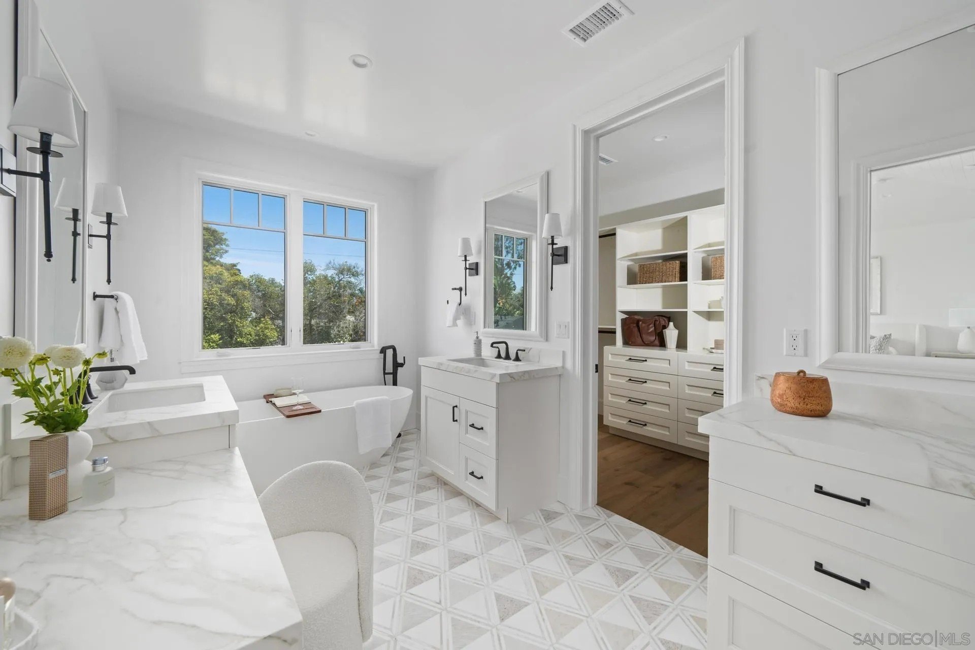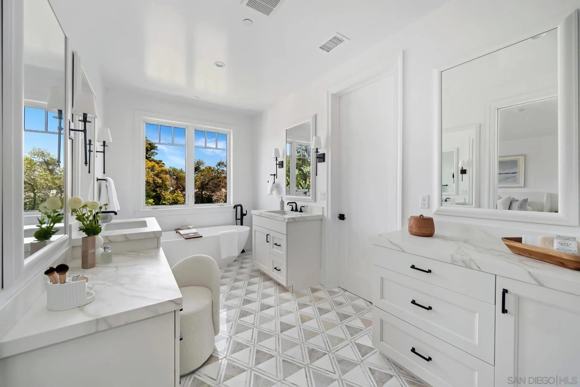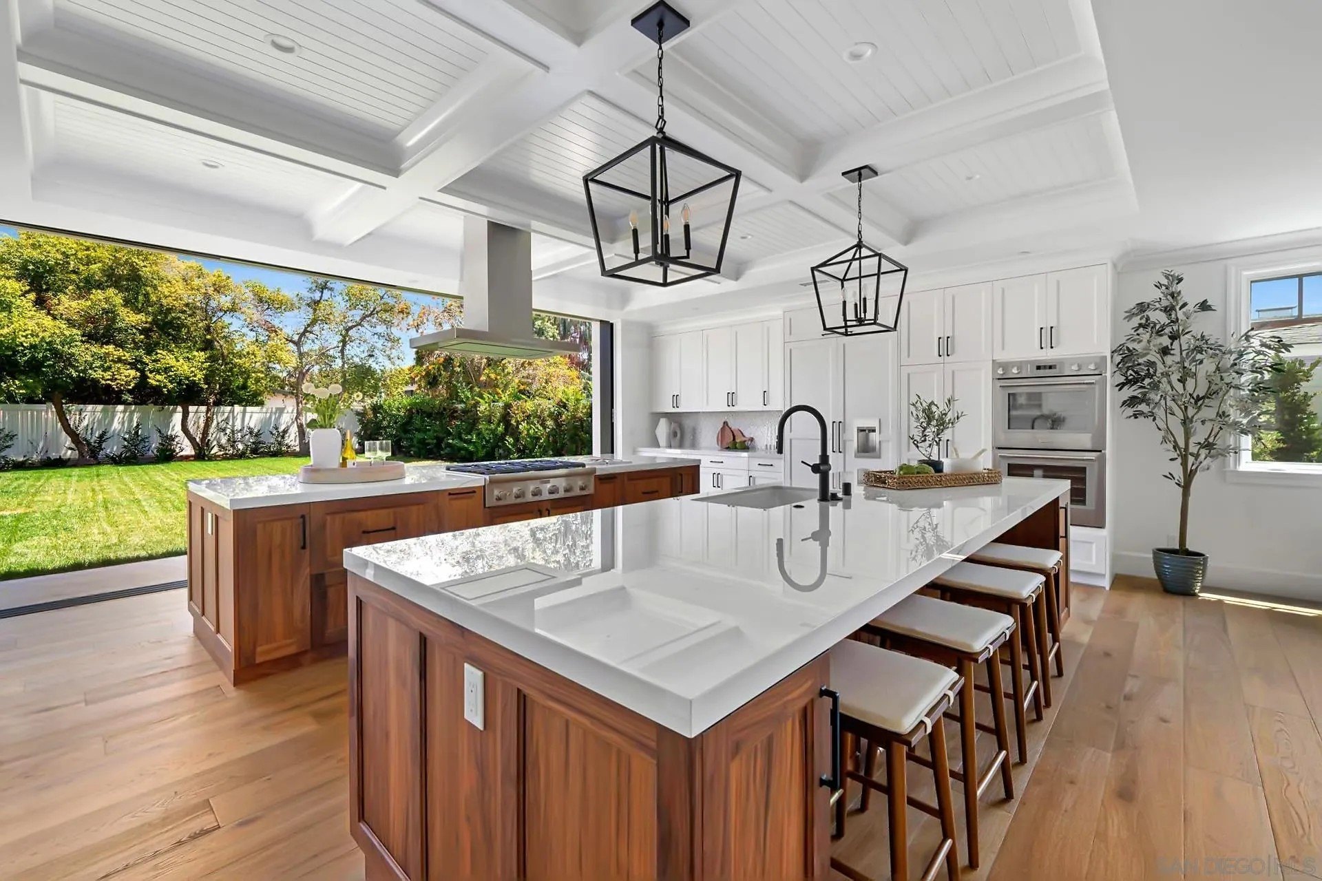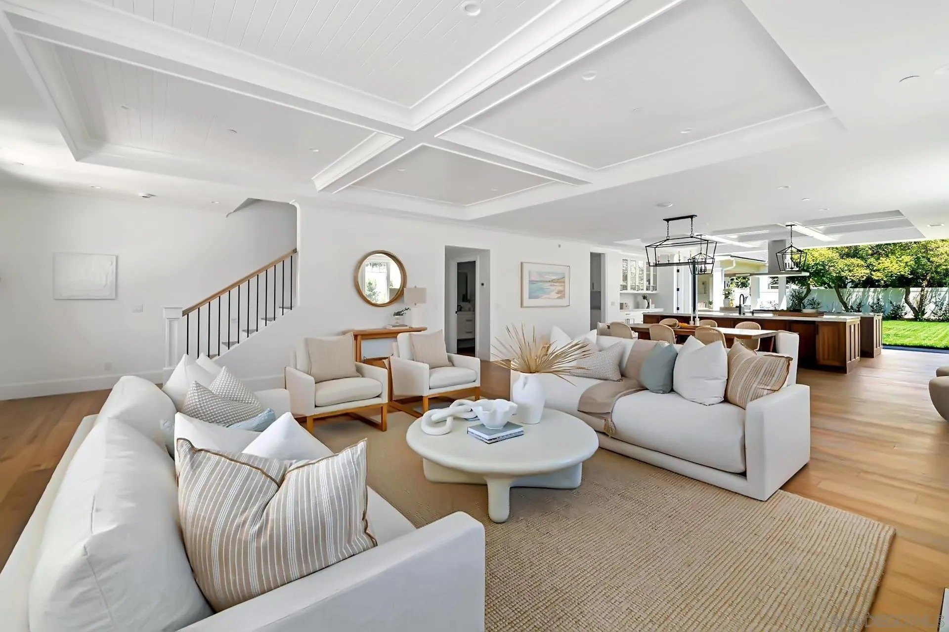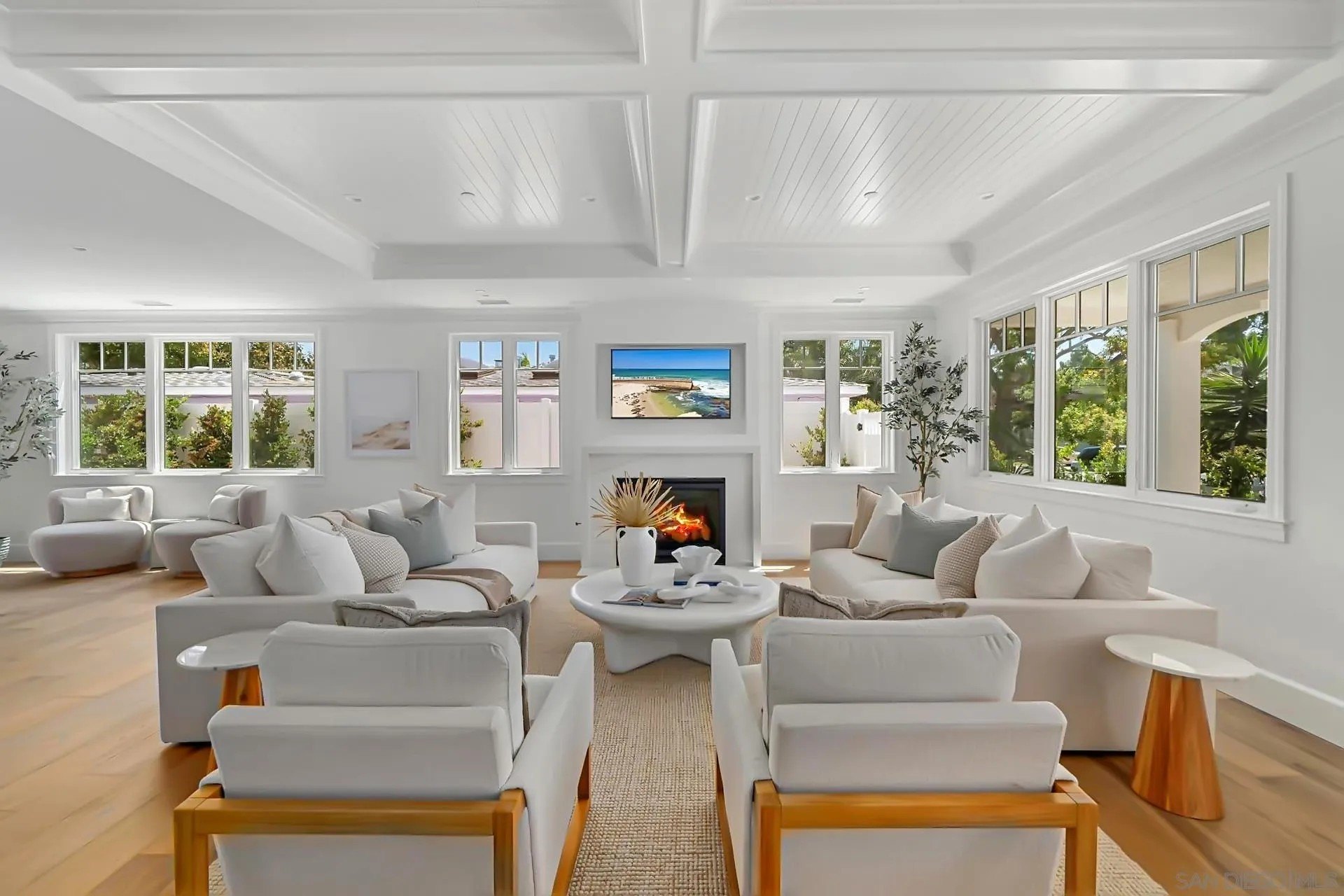 Welcome to a truly rare offering in Coronado’s sought-after Country Club Estates—a newly constructed Coastal Farmhouse designed by Christian Rice Architects, Inc. Years in the making, this legacy property combines timeless architecture, exceptional craftsmanship, and a layout tailored for Southern California’s signature indoor-outdoor lifestyle. Privately situated on a desirable cul-de-sac, the main residence offers five generously sized en suite bedrooms, including an upstairs bonus room ideal as an office, studio, or additional lounge. At its heart lies a showpiece chef’s kitchen with dual islands, premium Thermador appliances, an oversized walk-in pantry, and abundant storage—designed for effortless entertaining and elevated everyday living. The home’s open concept living and dining spaces flow seamlessly to the outdoors, revealing multiple gathering areas perfect for hosting or relaxing. The nearly 11,000 sq ft lot is a rare find in Coronado, allowing for expansive grounds and exceptional privacy. A standout feature is the private, detached two-bedroom, two-bath ADU, complete with its own covered outdoor living room & fireplace - ideal for extended family & guests while still connecting harmoniously to the main home if desired. More than just a remarkable home, this is a place where memories will be made, traditions will be honored, and generations will gather for years to come.