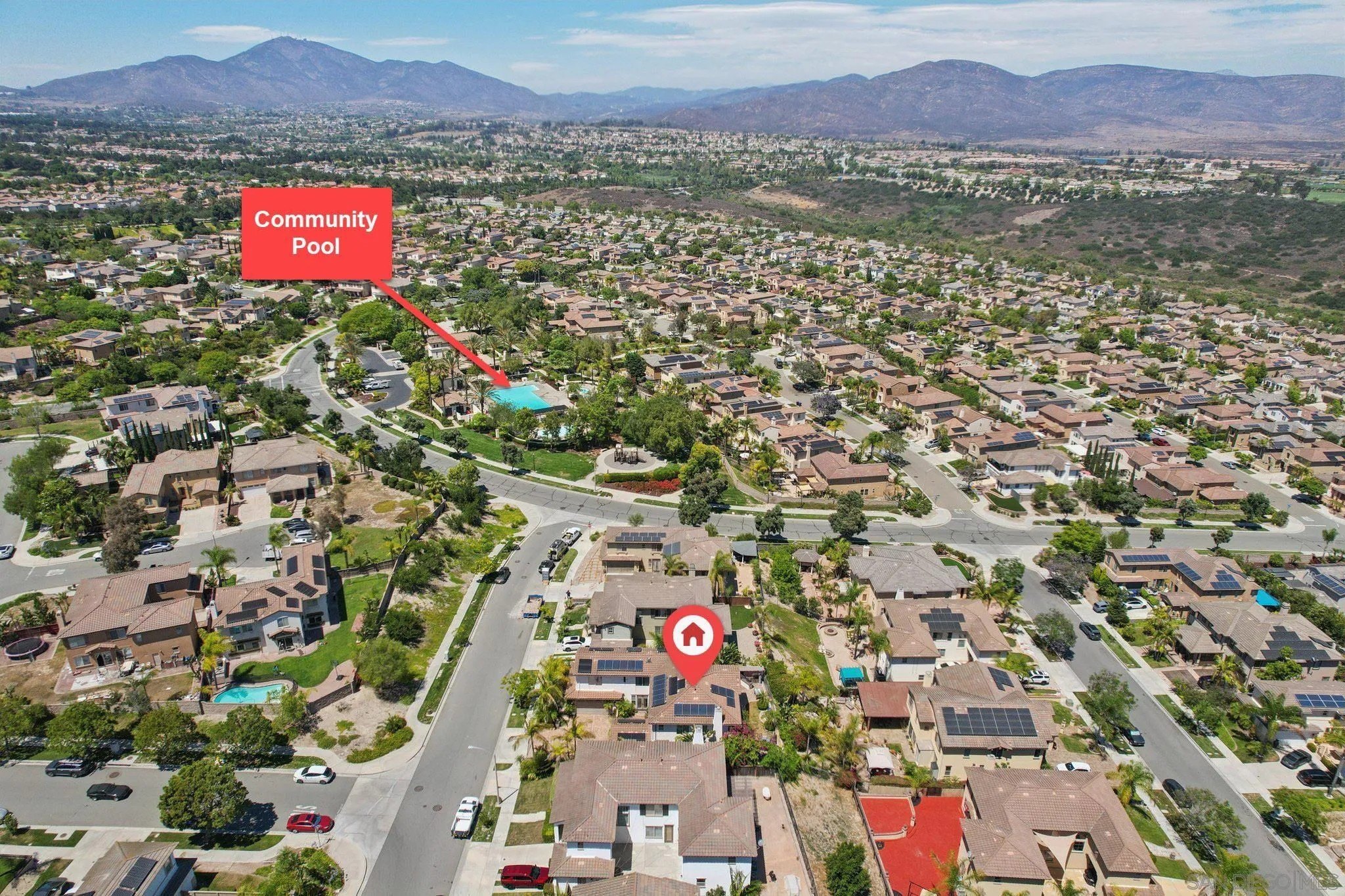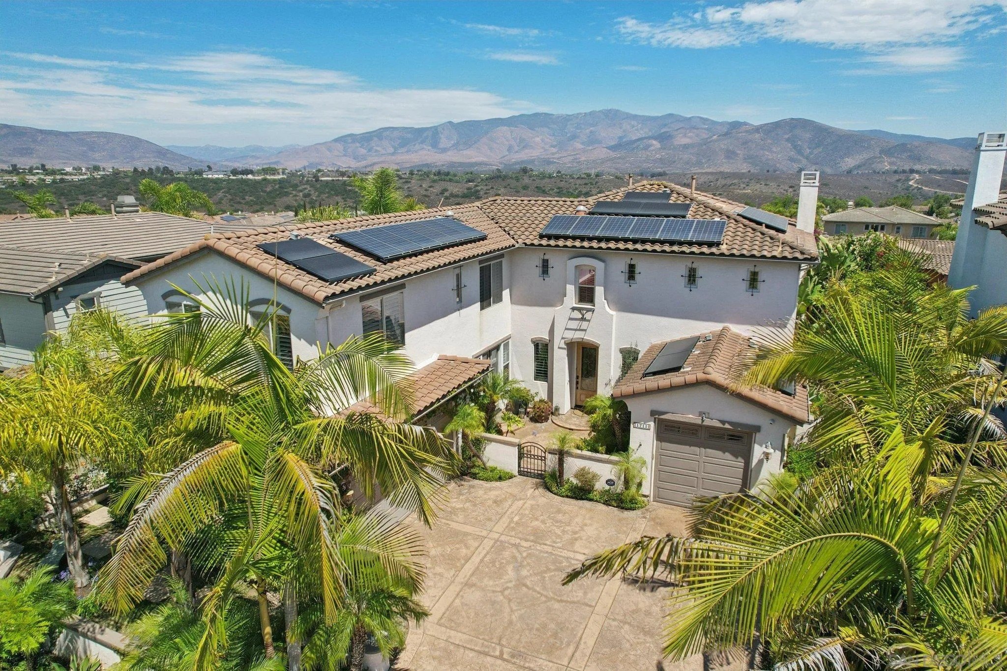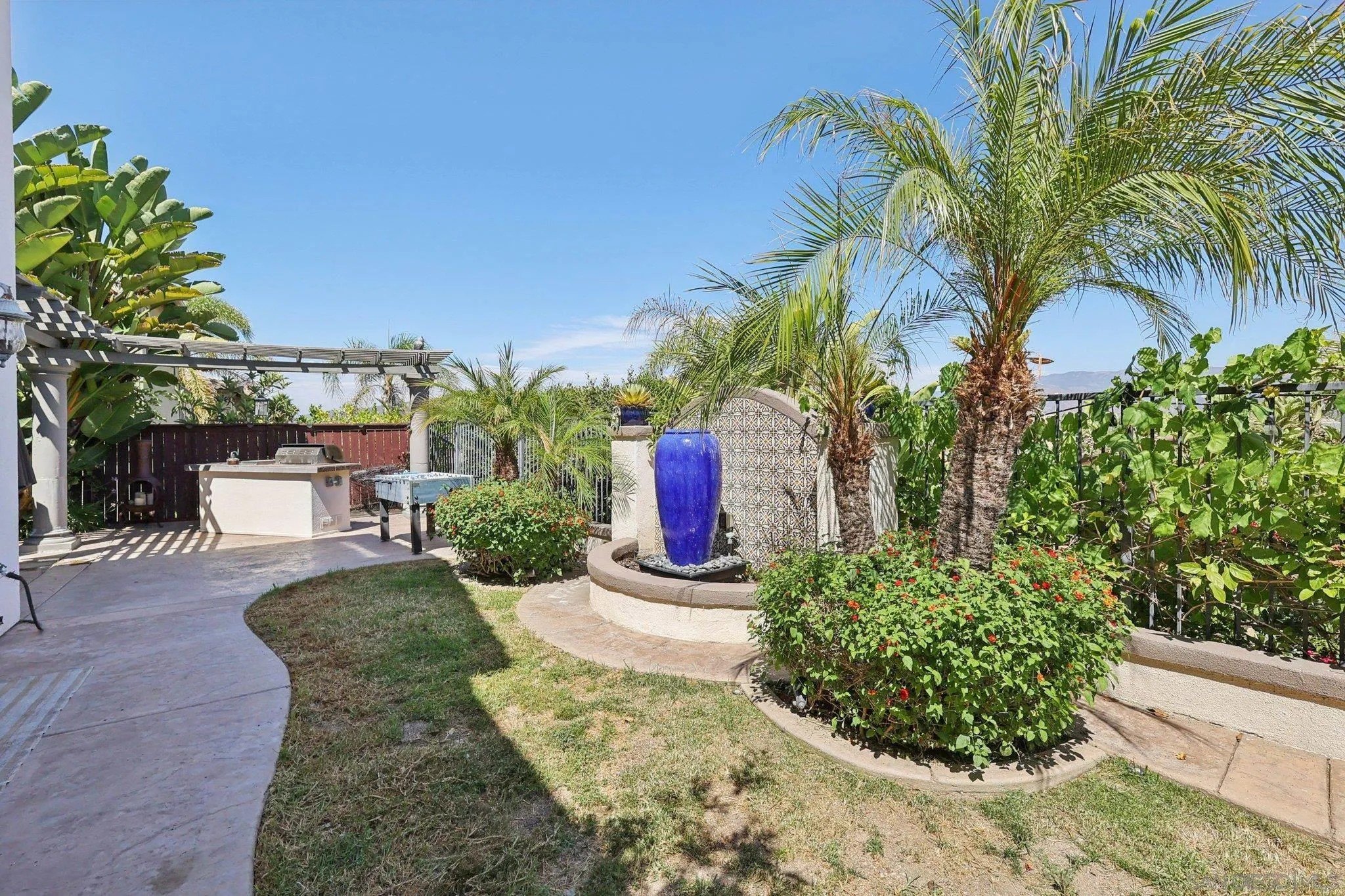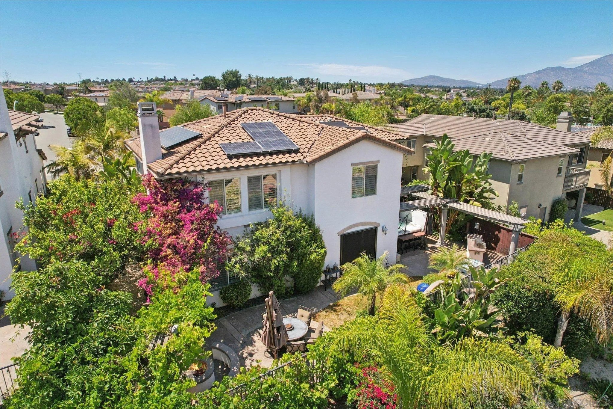 Spectacular Winding Walk Home | 5 Bedrooms + Bonus Room | 4 Baths | 3-Car Garage | Panoramic Mountain Views | Backyard Paradise Welcome to this stunning, upgraded residence located in the highly desirable Winding Walk community. This expansive home features five spacious bedrooms, four full bathrooms, an entertainment/media room that can be easily converted into a sixth bedroom, and a flexible floor plan ideal for multigenerational living. With a full bedroom and bathroom on the ground floor and extensive high-end upgrades throughout, this property exemplifies luxury living. As you arrive, the curb appeal is immediately impressive with mature palm trees, a beautifully designed stamped concrete driveway and walkway, and a charming fenced front patio surrounded by lush landscaping. Inside, the grand foyer features elegant ceramic tile with inlaid marble accents, setting the tone for the refined design seen throughout the home. The remodeled gourmet kitchen, updated just 2.5 years ago, is a chef’s dream. It features rich wood cabinetry, sleek granite countertops and backsplash, double ovens, stainless steel appliances, and a walk-in pantry. High-end three-panel accordion doors connect the kitchen and family room to the backyard, allowing for seamless indoor-outdoor entertaining.
