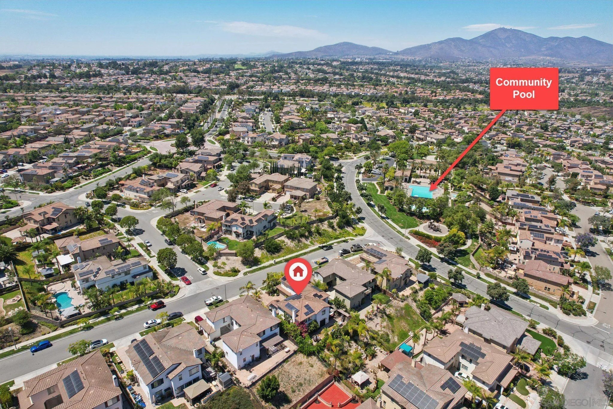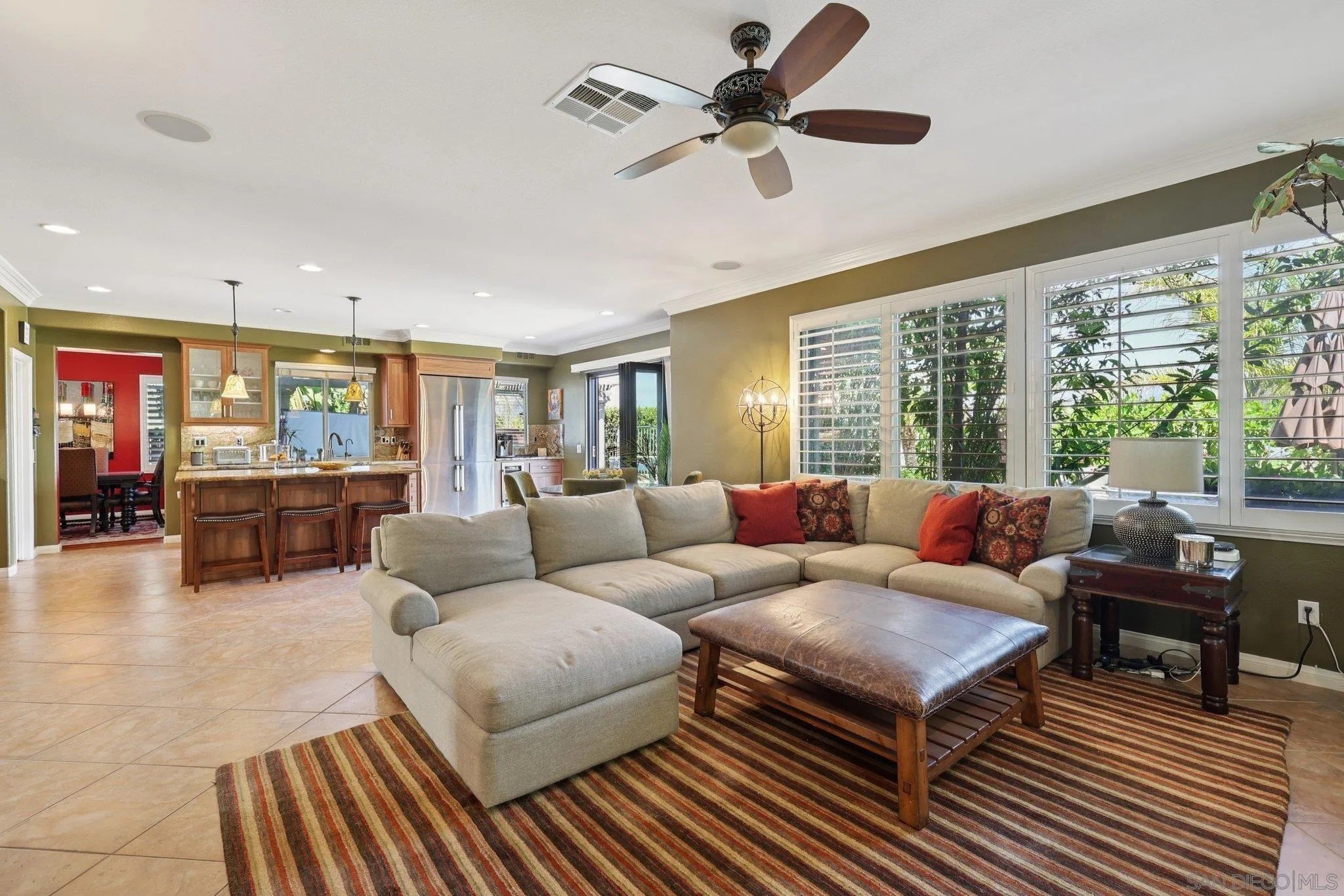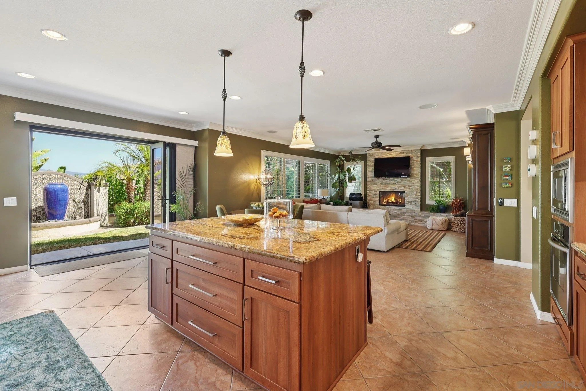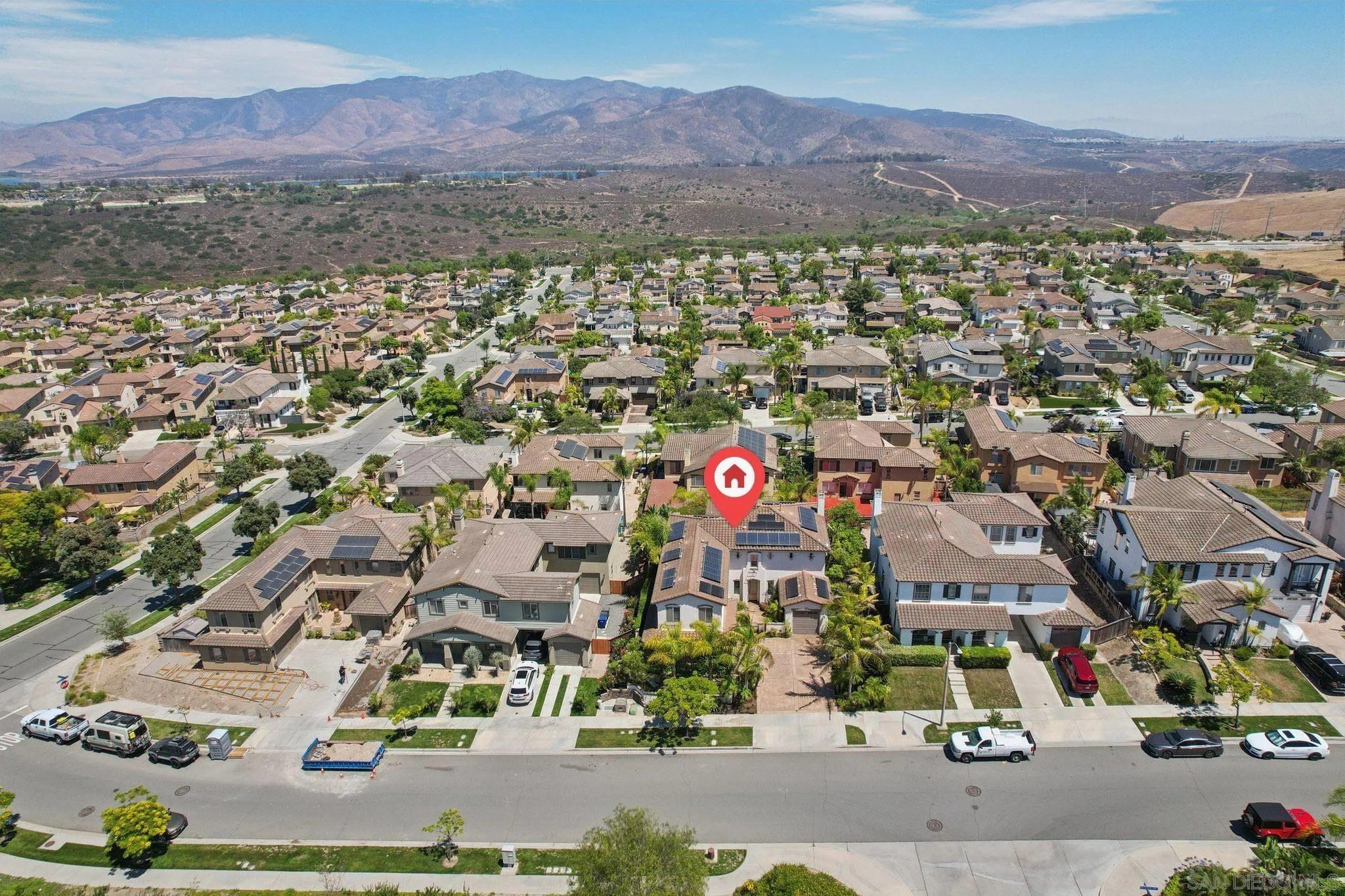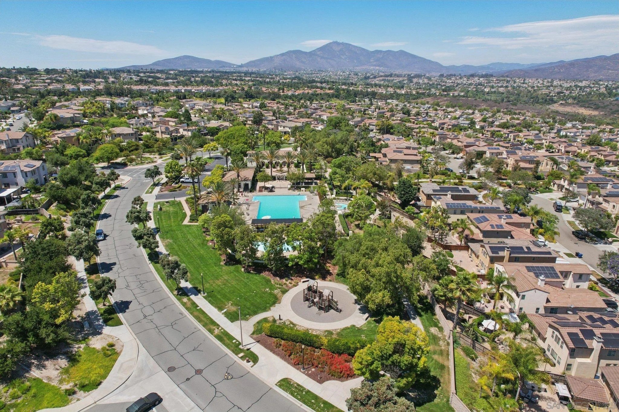 Spectacular Winding Walk Home | 5 Bedrooms + Bonus Room | 4 Baths | 3-Car Garage | Panoramic Mountain Views | Backyard Paradise Welcome to this stunning, upgraded residence located in the highly desirable Winding Walk community. This expansive home features five spacious bedrooms, four full bathrooms, an entertainment/media room that can be easily converted into a sixth bedroom, and a flexible floor plan ideal for multigenerational living. With a full bedroom and bathroom on the ground floor and extensive high-end upgrades throughout, this property exemplifies luxury living. As you arrive, the curb appeal is immediately impressive with mature palm trees, a beautifully designed stamped concrete driveway and walkway, and a charming fenced front patio surrounded by lush landscaping. Inside, the grand foyer features elegant ceramic tile with inlaid marble accents, setting the tone for the refined design seen throughout the home. The remodeled gourmet kitchen, updated just 2.5 years ago, is a chef’s dream. It features rich wood cabinetry, sleek granite countertops and backsplash, double ovens, stainless steel appliances, and a walk-in pantry. High-end three-panel accordion doors connect the kitchen and family room to the backyard, allowing for seamless indoor-outdoor entertaining.