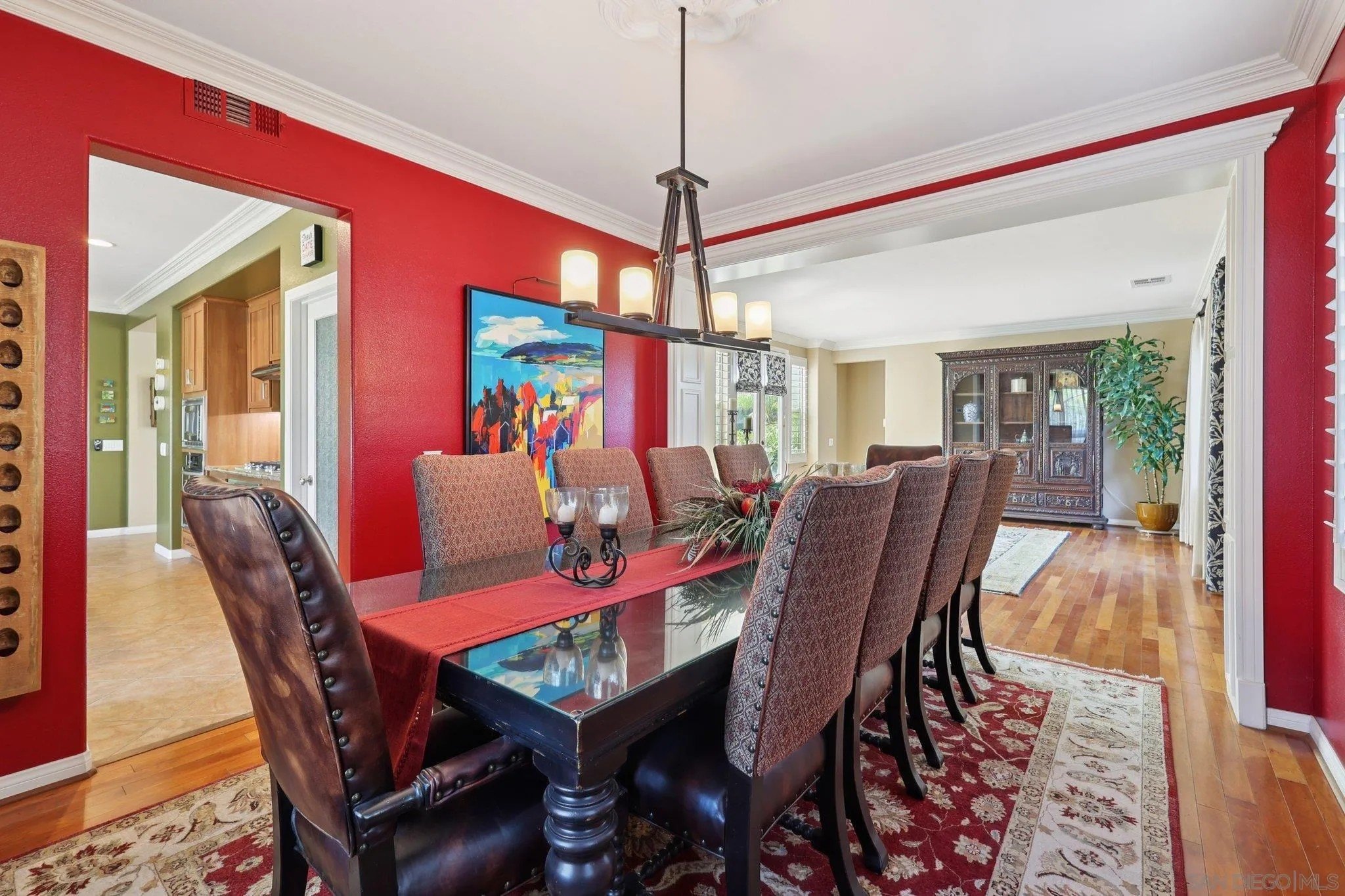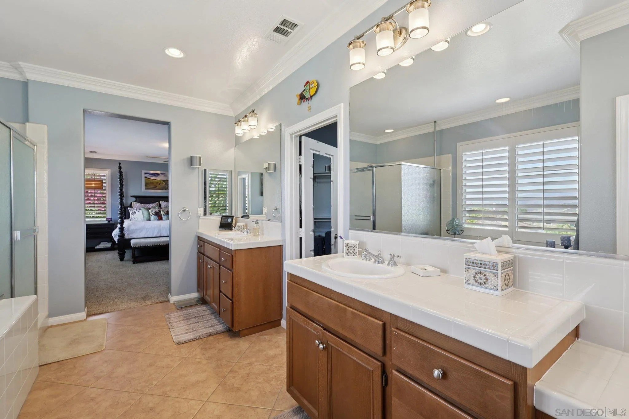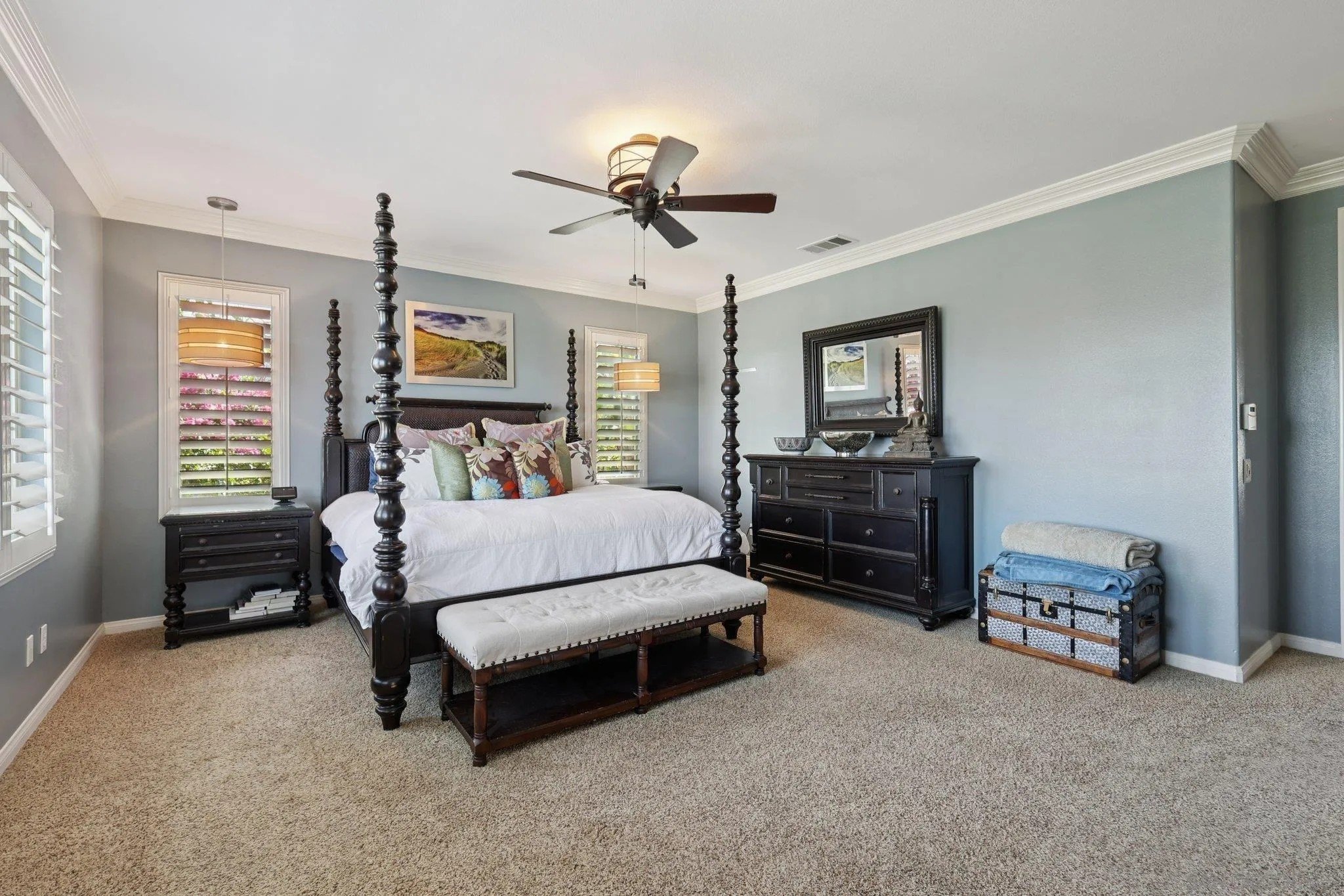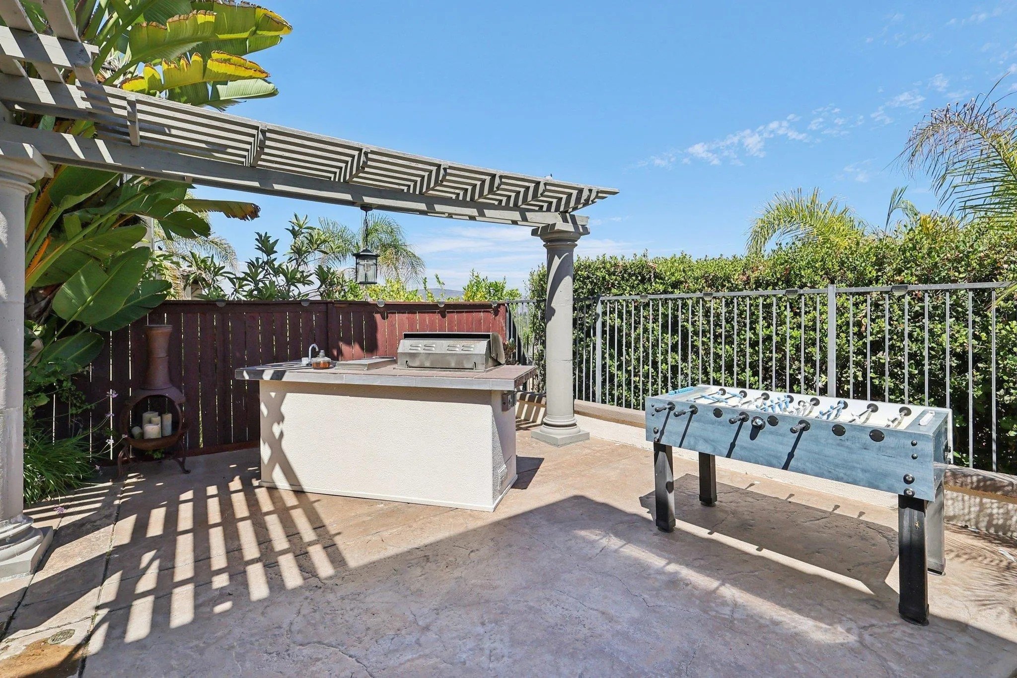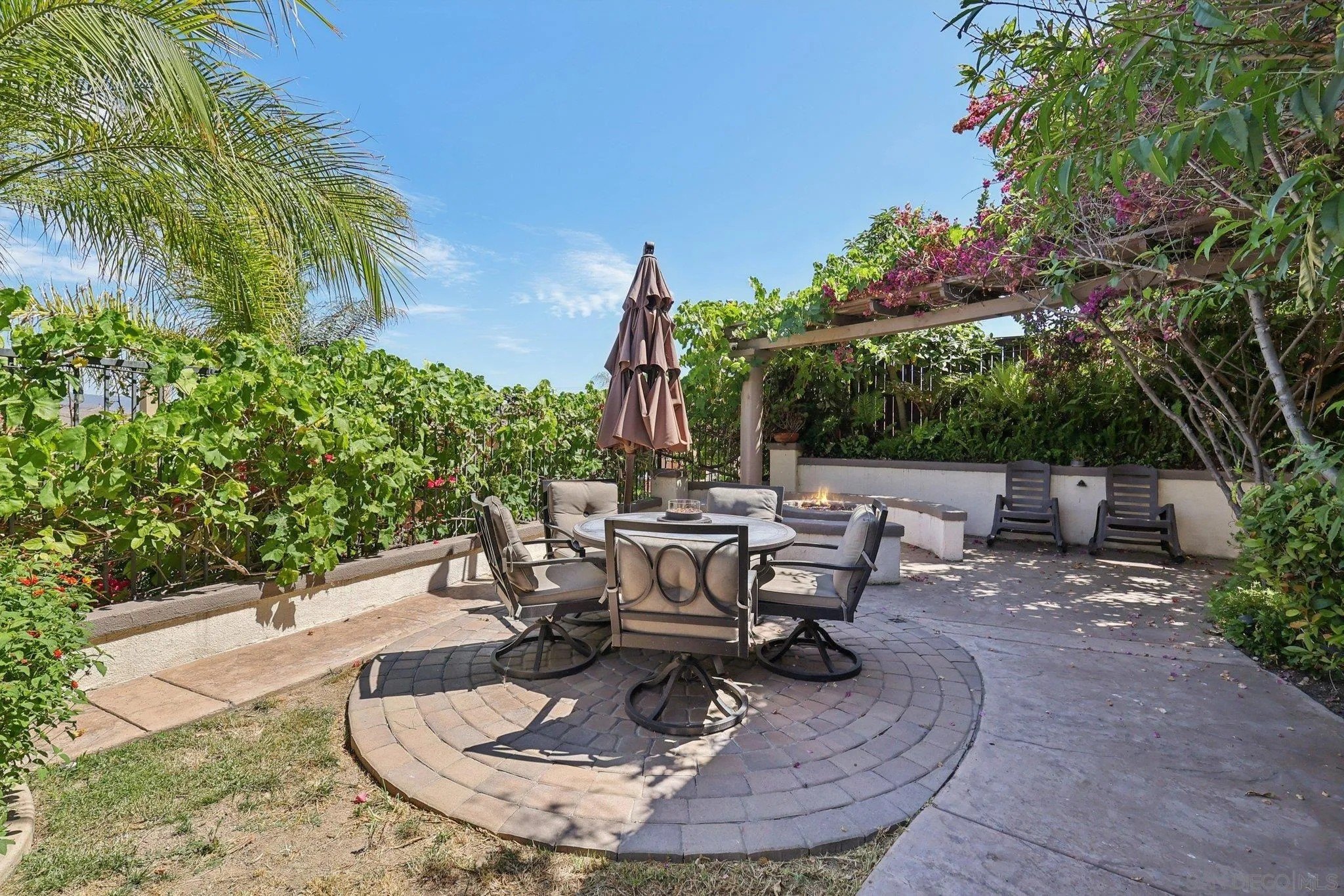 Spectacular Winding Walk Home | 5 Bedrooms + Bonus Room | 4 Baths | 3-Car Garage | Panoramic Mountain Views | Backyard Paradise Welcome to this stunning, upgraded residence located in the highly desirable Winding Walk community. This expansive home features five spacious bedrooms, four full bathrooms, an entertainment/media room that can be easily converted into a sixth bedroom, and a flexible floor plan ideal for multigenerational living. With a full bedroom and bathroom on the ground floor and extensive high-end upgrades throughout, this property exemplifies luxury living. As you arrive, the curb appeal is immediately impressive with mature palm trees, a beautifully designed stamped concrete driveway and walkway, and a charming fenced front patio surrounded by lush landscaping. Inside, the grand foyer features elegant ceramic tile with inlaid marble accents, setting the tone for the refined design seen throughout the home. The remodeled gourmet kitchen, updated just 2.5 years ago, is a chef’s dream. It features rich wood cabinetry, sleek granite countertops and backsplash, double ovens, stainless steel appliances, and a walk-in pantry. High-end three-panel accordion doors connect the kitchen and family room to the backyard, allowing for seamless indoor-outdoor entertaining.