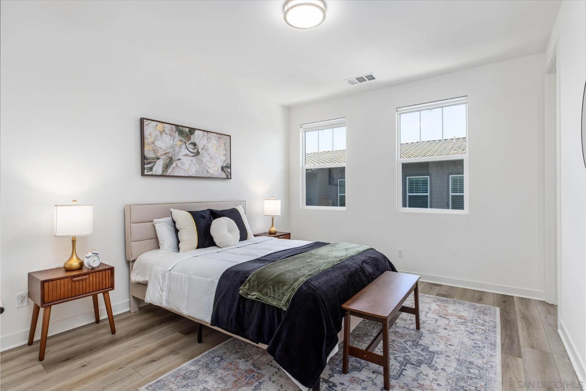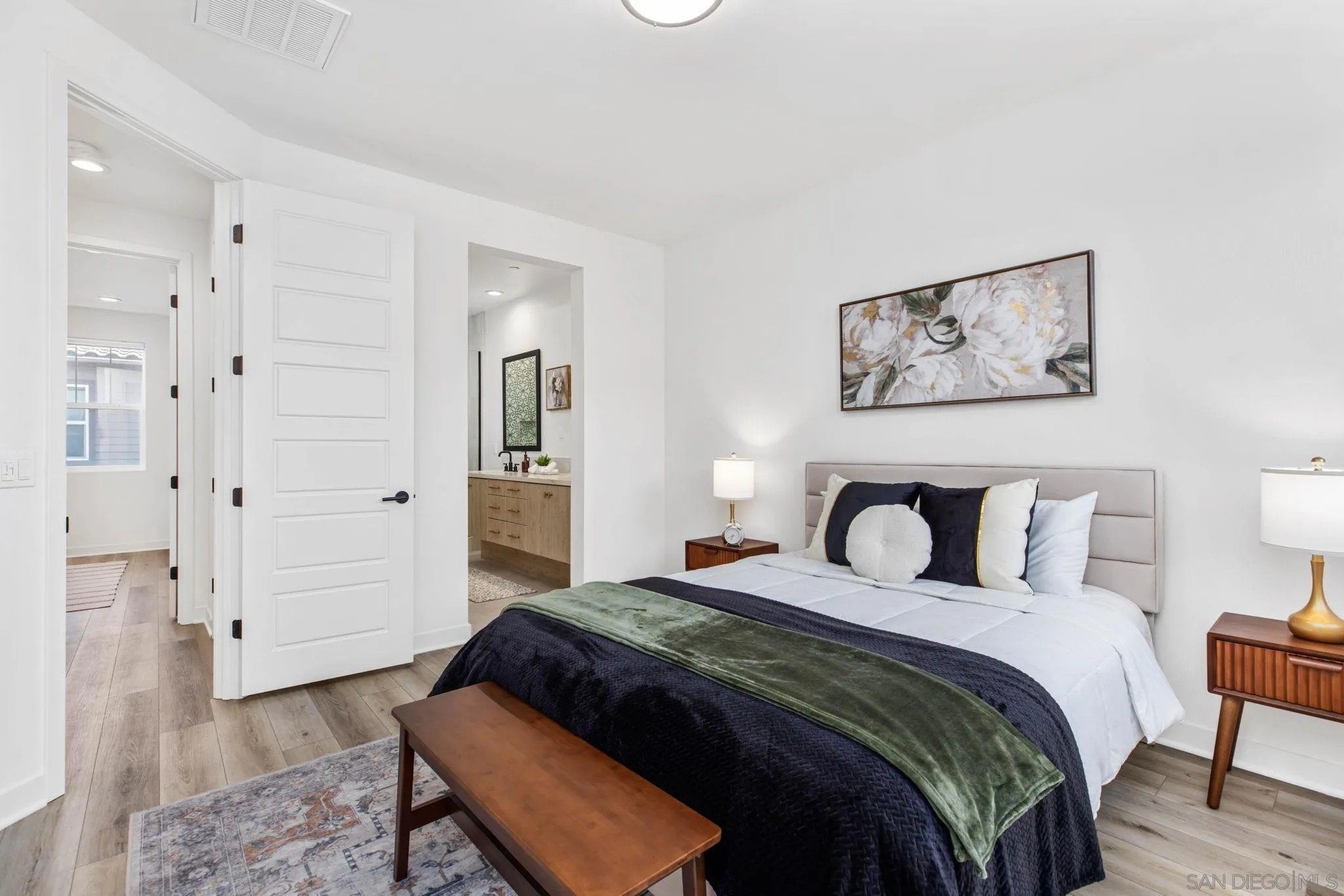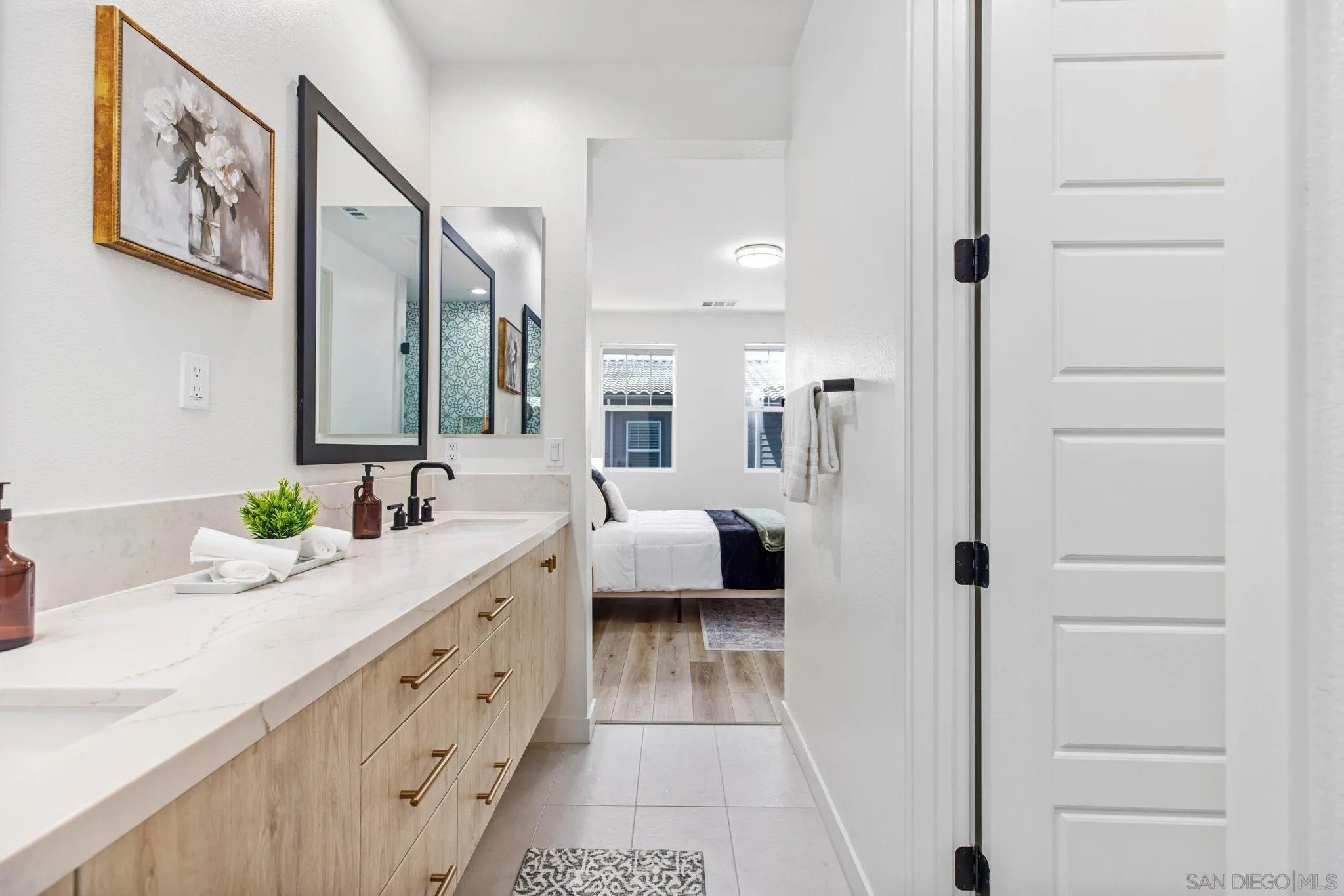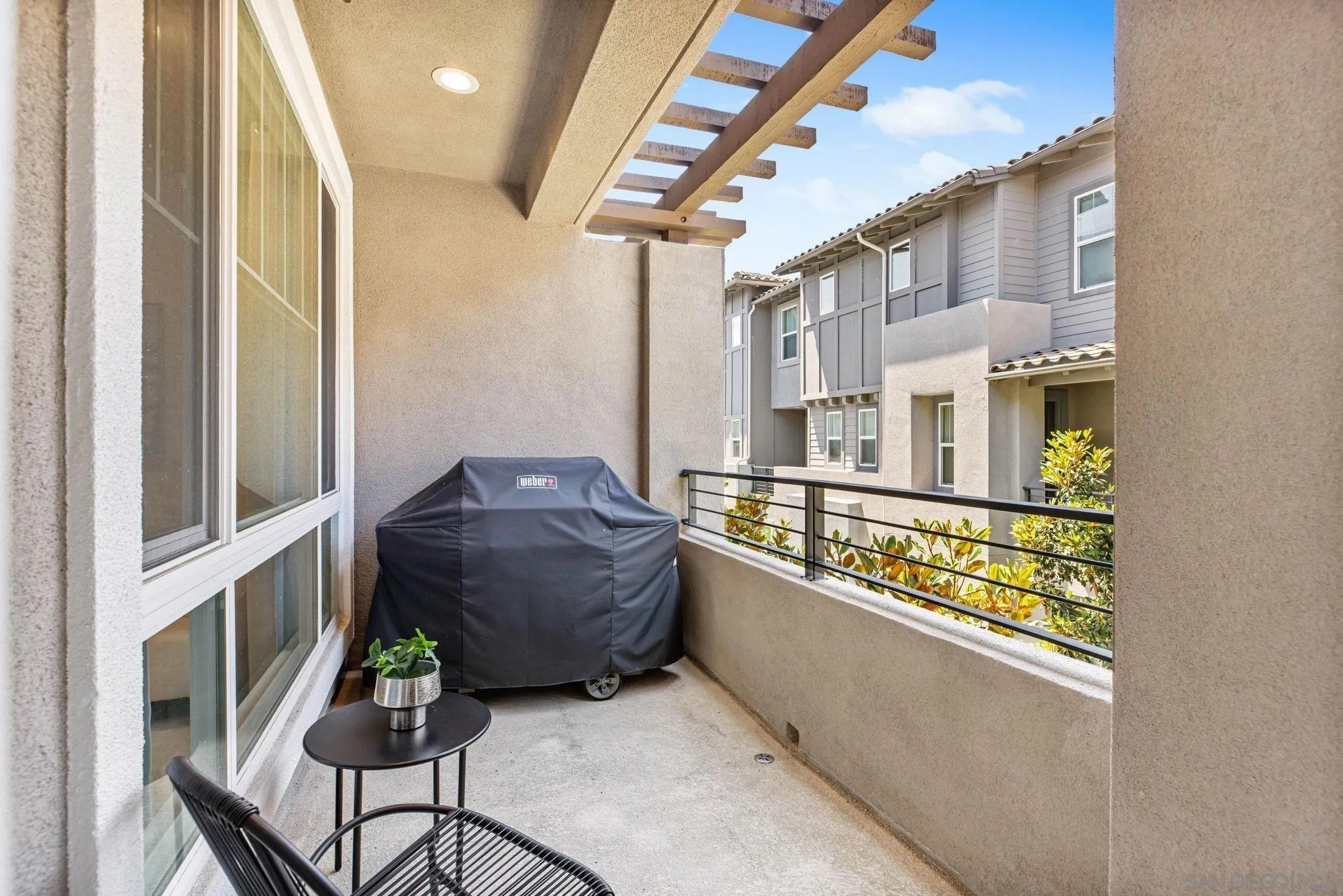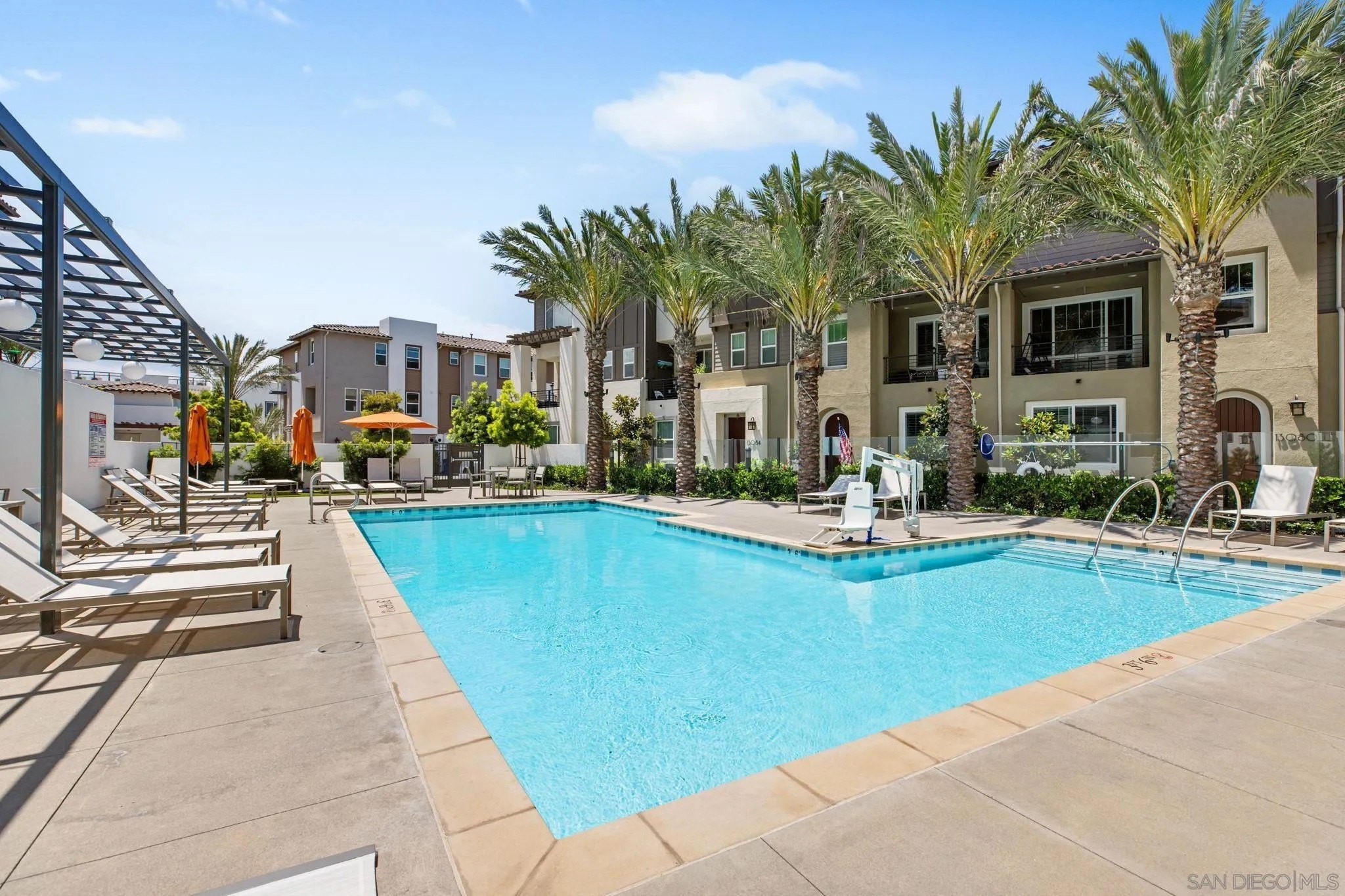 Sleek. Sophisticated. Smart Living in Pacific Highlands Ranch. Enter to modern luxury with this 2023-built tri-level townhome featuring 3 bedrooms and 3.5 bathrooms - in one of San Diego’s most walkable and sought-after communities. This stunning residence is packed with high-end upgrades, including owned solar, owned water softener, roller shades, an epoxy-coated garage floor, and a full suite of premium appliances—all thoughtfully selected to enhance style and comfort. Pride of ownership shines throughout this meticulously maintained home. Seller spent over $80,000 for builder upgrades such as modern kitchen & bathroom tile, flooring, etc. The flexible floorplan features a private ground-floor bedroom with en-suite bath, perfect for guests, a home office, or multigenerational living. Upstairs, you'll find two expansive en-suite bedrooms, offering privacy, tranquility, and ample space to unwind. Enjoy resort-style amenities just steps from your door: take a dip in the sparkling pool, relax in the jacuzzi, or entertain effortlessly in the beautifully maintained common areas. All this, accessing the top-rated schools of Carmel Valley. Live moments from the dynamic Pacific Highlands Ranch Village Center, home to Trader Joe’s, Crunch Fitness, Starbucks, Panera, and a variety of dining and boutique options—all just a short stroll away. This is contemporary living redefined—energy-efficient, turnkey, and ideally located. Don’t miss your opportunity to own a piece of this vibrant, connected community.