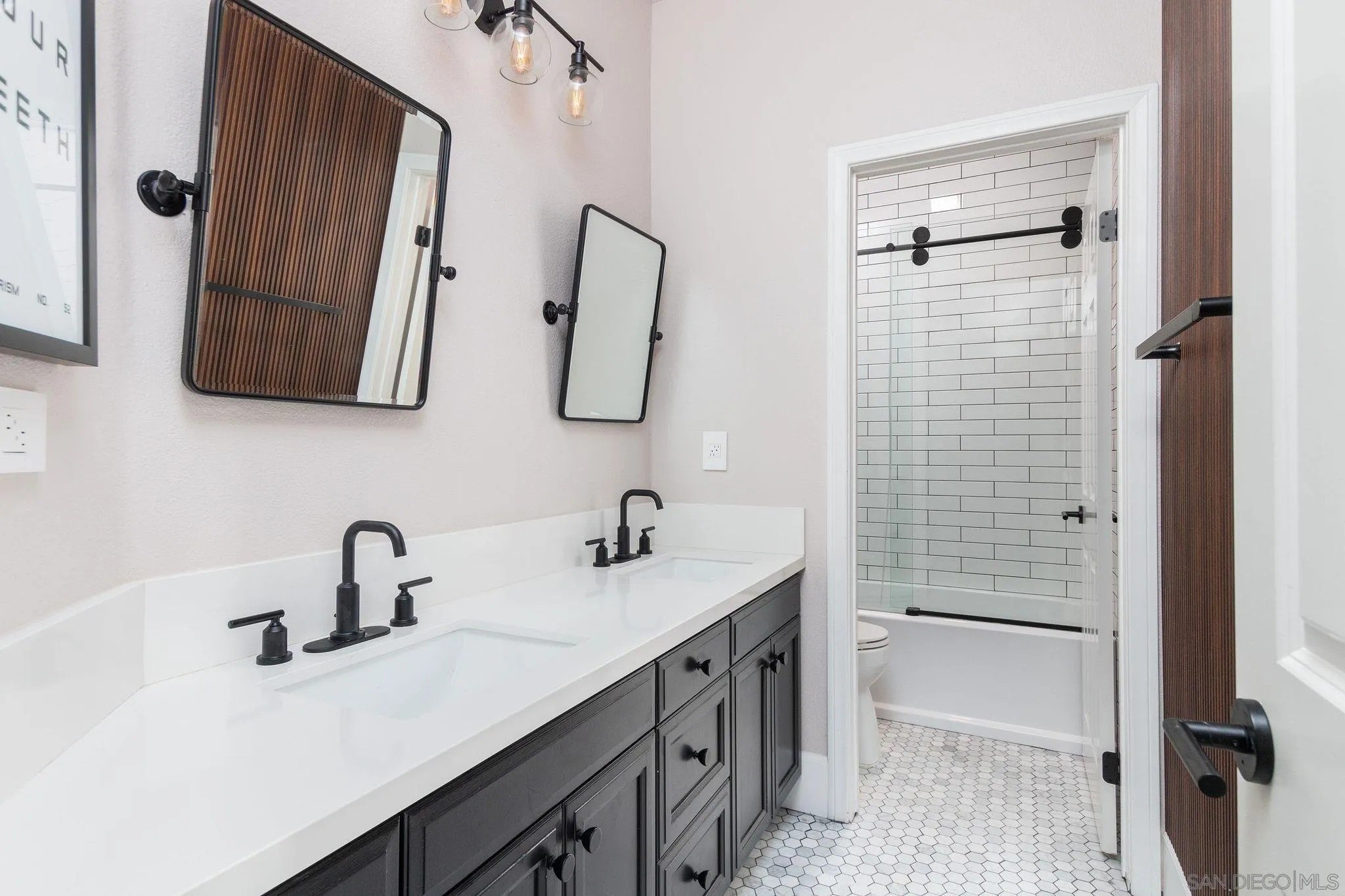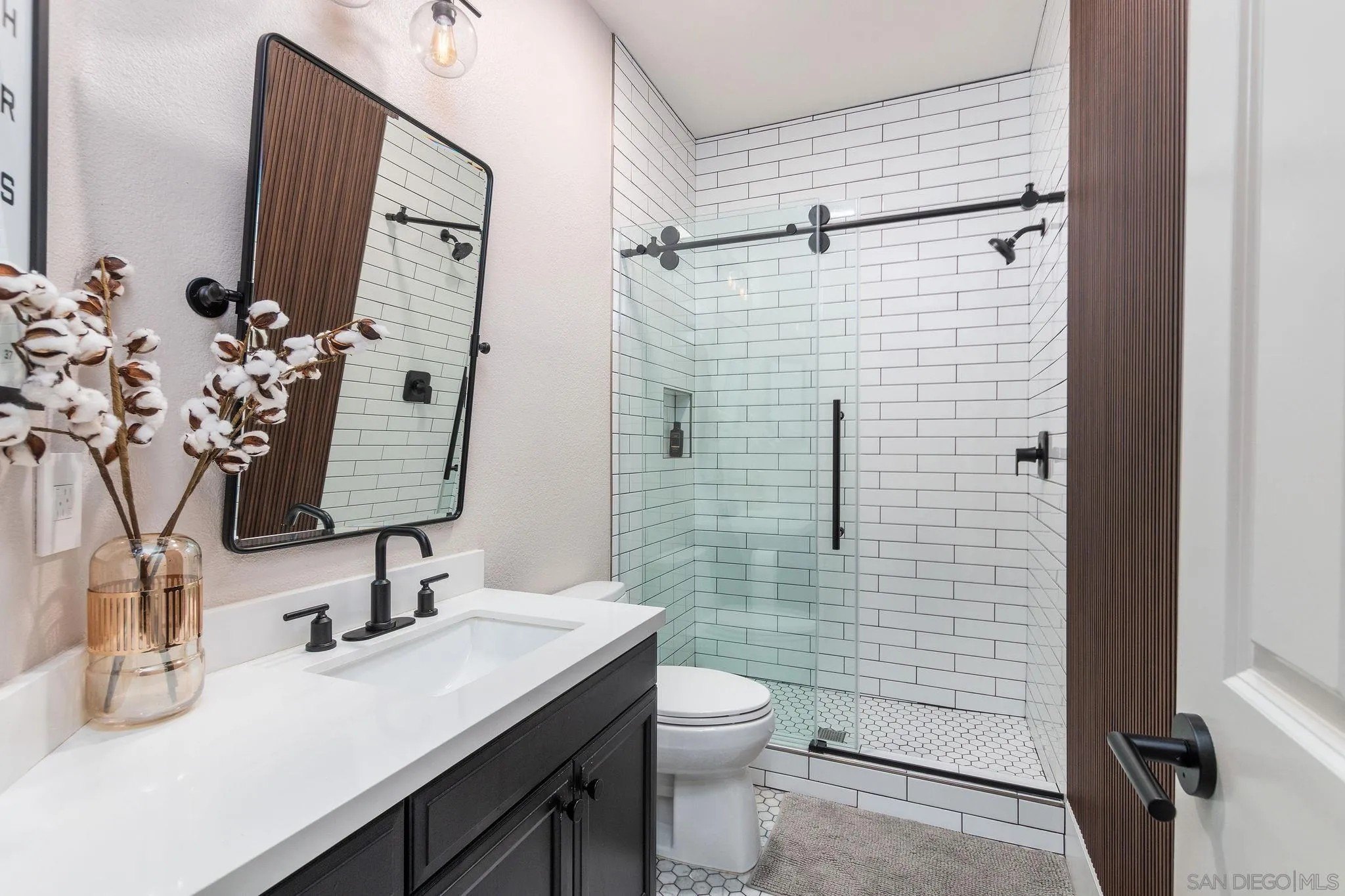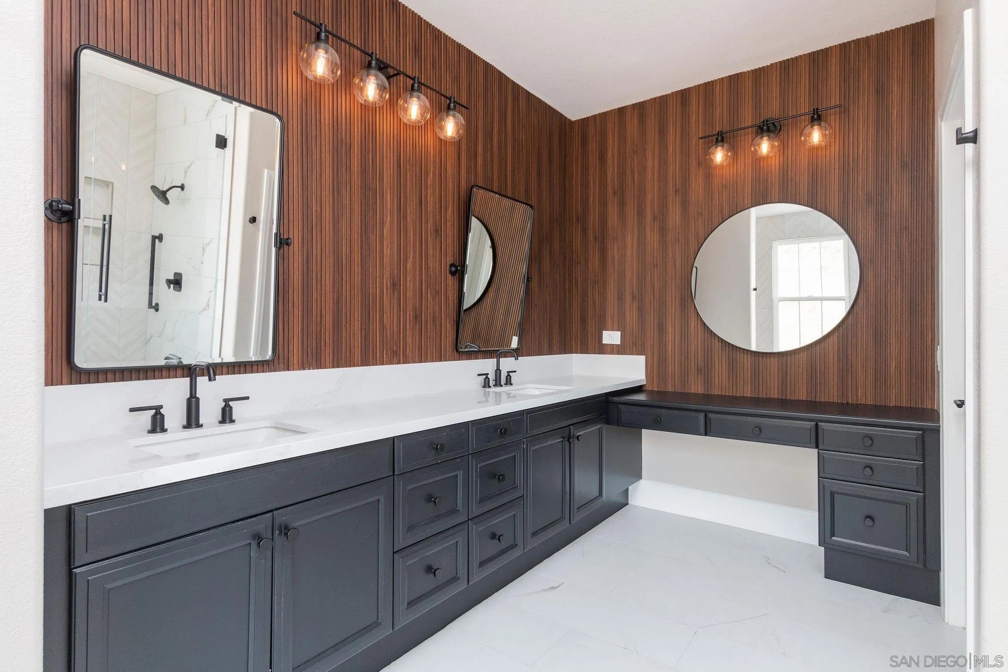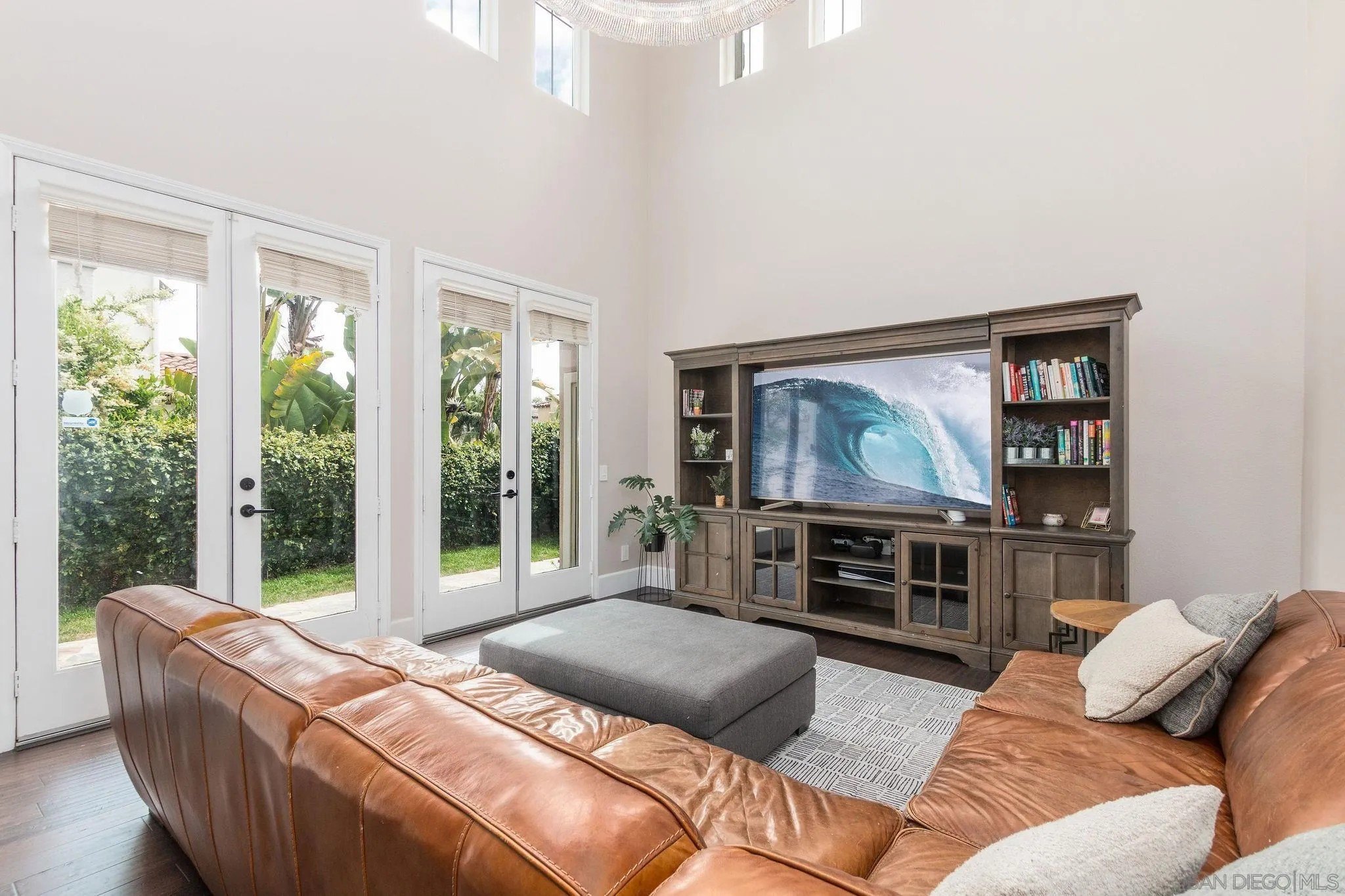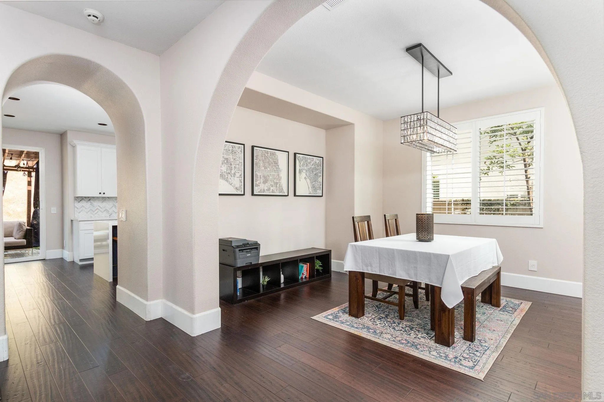 Live Your Best Life in Eastlake Vistas! This exquisite residence perfectly blends modern comfort with the relaxed, outdoor lifestyle San Diego is famous for. Enter through the gated courtyard and feel instantly welcomed—imagine sipping your favorite drink on the flagstone patio as the sun sets. Inside, you’re greeted by soaring two-story ceilings in the spacious formal living room, where dual French doors open wide for seamless indoor-outdoor living. A bedroom and full bathroom on the main level offer convenience and flexibility, while architectural details and shuttered windows allow soft, natural light to fill each room. The formal dining room sets the stage for elegant dinners and memorable gatherings. At the heart of the home, the kitchen connects formal and casual living spaces, designed for both style and function. It features crisp white cabinetry, quartz countertops, a decorative tile backsplash, a walk-in pantry, 5-burner gas cooktop, double ovens, and a large center island with pendant lighting and bar seating. Upstairs, a spacious loft offers easy potential for a 5th bedroom. You'll also find a convenient laundry room, two generously sized bedrooms, a full hallway bath, and a serene primary suite. Your personal retreat includes a flexible bonus space—perfect for a Peloton, home office, or reading nook—and a luxurious en suite bath with a walk-in closet, deep soaking tub, frameless glass shower, dual sinks, and seated vanity. The backyard is a private oasis with a pergola-covered patio, soothing hot tub, outdoor bar with seating, and lush grass for play or pets.