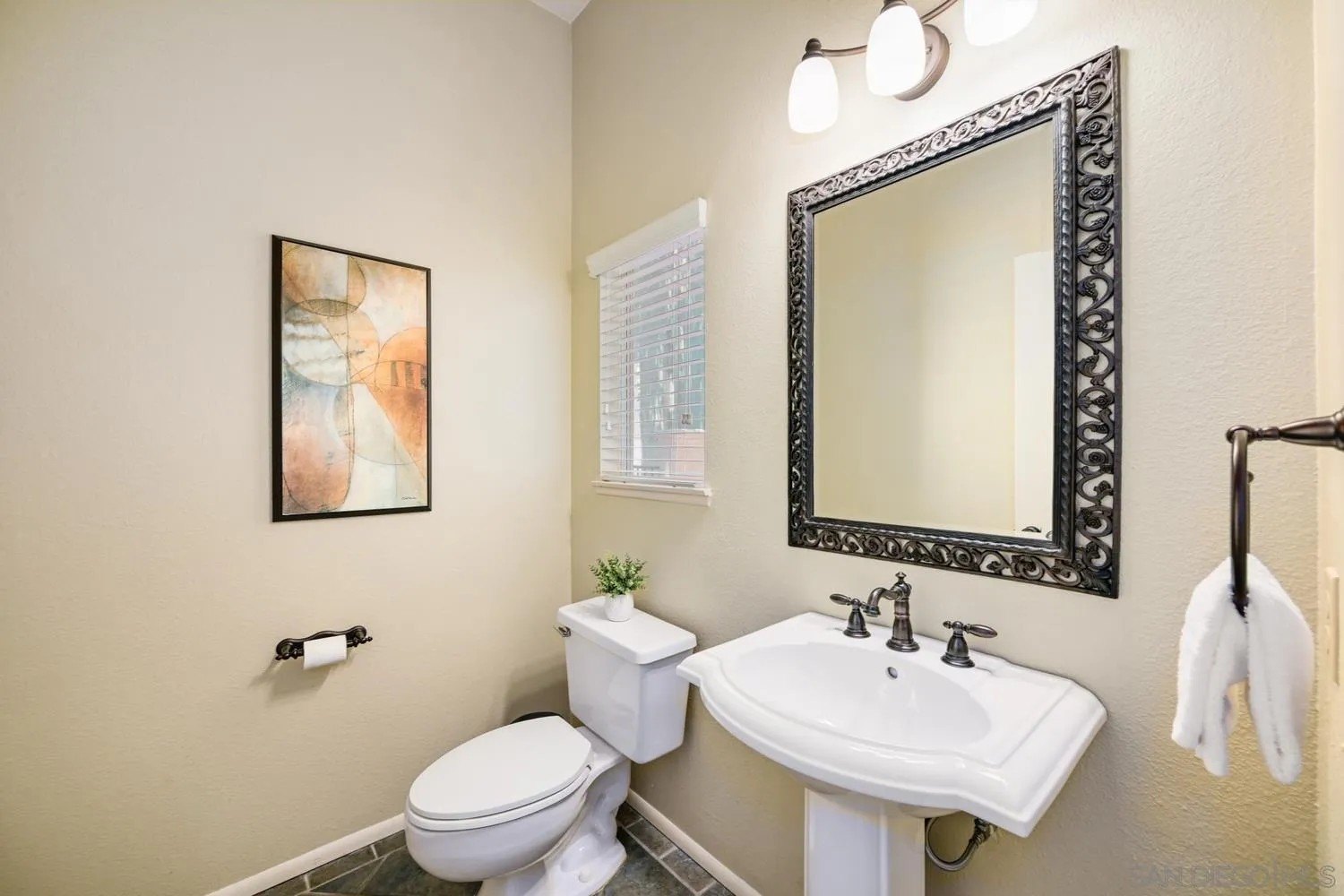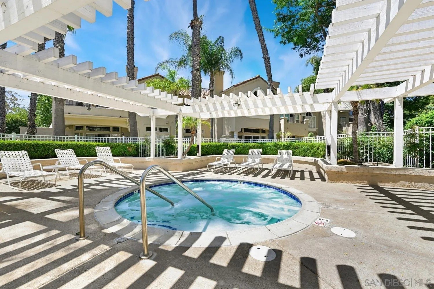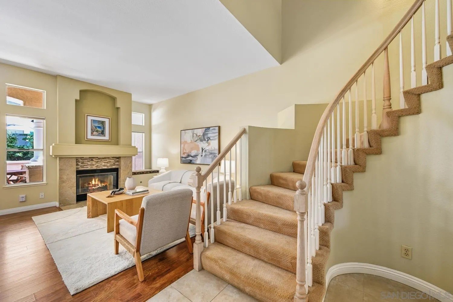 Spacious Plan Five Townhome in the Coveted Belsera Community of Tierrasanta! Welcome to this beautifully maintained two-story luxury townhome-the largest floor plan in the sought-after Belsera complex! This spacious 3-bedroom, 2.5-bath residence offers 1,528 sq. ft. of stylish living with soaring ceilings, tasteful upgrades, and a thoughtful layout. Enjoy high ceilings on the main level and vaulted ceilings upstairs, creating a bright and open atmosphere throughout. The great room features a cozy gas fireplace, while upgraded carpeting and wood laminate flooring add warmth and sophistication. A stunning Restoration Hardware chandelier elevates the formal dining area, perfect for entertaining. The kitchen is complete with granite countertops, a raised bar counter, and a cozy breakfast nook for casual dining. Upstairs, the family bathroom features a dual sink vanity-a rare and convenient upgrade for secondary bathrooms. Two private outdoor spaces-a gated entry courtyard and a large rear patio-offer multiple areas to relax and unwind. This townhome includes two single-car garages, both with panel roll-up doors-one with direct access through the kitchen, and the other nearby for added convenience. In addition, there are non-assigned outdoor parking spaces designated for residents, with each unit receiving a parking permit for shared use. Belsera residents enjoy exceptional amenities including two pools and spas, a sand volleyball court, picnic areas, and ample guest parking.