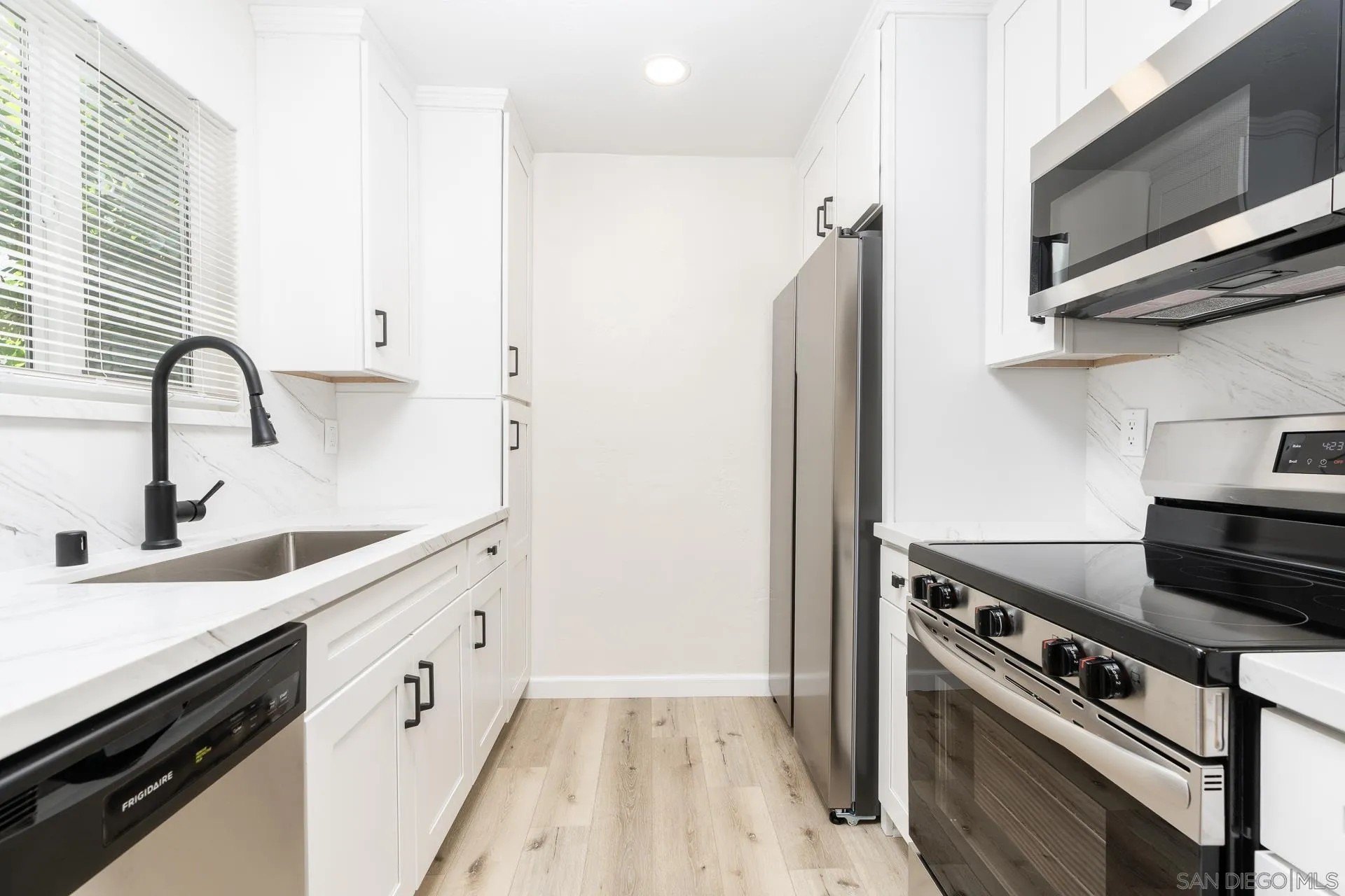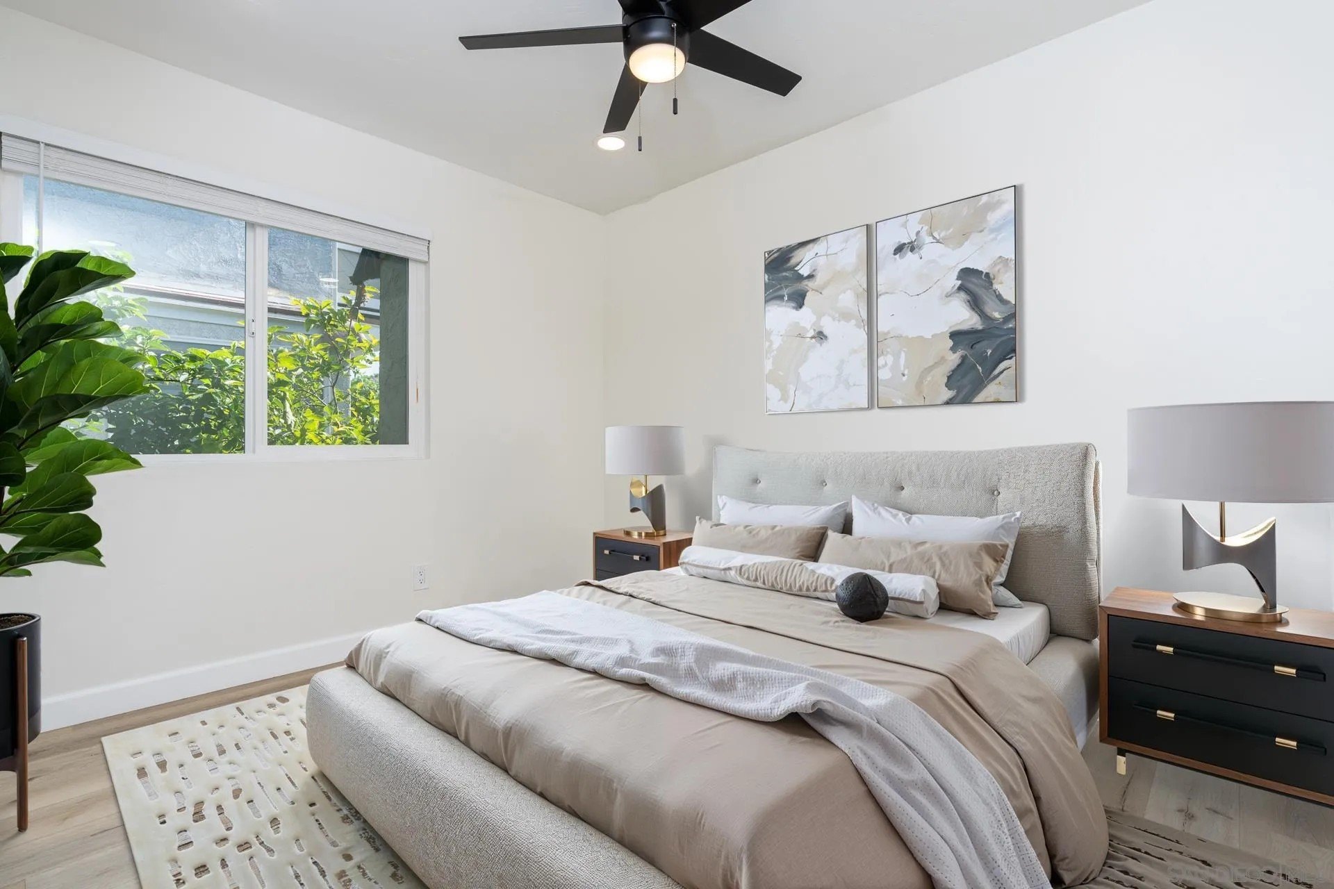 FHA and VA Approved! Welcome to Villa Mar, This light-filled, south-facing downstairs unit is a rare find and offers unbeatable value. Fully renovated with tasteful, modern finishes, this home features: A brand-new kitchen with quartz countertops and stainless steel appliances, all new bathroom with contemporary fixtures, Luxury vinyl plank flooring throughout, new Dual-pane windows for energy efficiency and comfort, all new recessed lighting and matte black hardware on doors and fixtures for a sleek, cohesive look. A new wall A/C unit with all new ceiling fans provide comfort. Whether you're a first-time buyer, investor, or downsizer, this move-in-ready condo combines style, location, and affordability. Don't miss your chance to own in one of Mira Mesa's most desirable communities! Available Lender paid credits of $15,000 - Ask for details! Villa Mar is a unique living experience with over 50 fruit trees planted throughout the community along with vegetable & herb garden. Easy access to Freeway, Bus Stop and within walking distance to shopping etc.