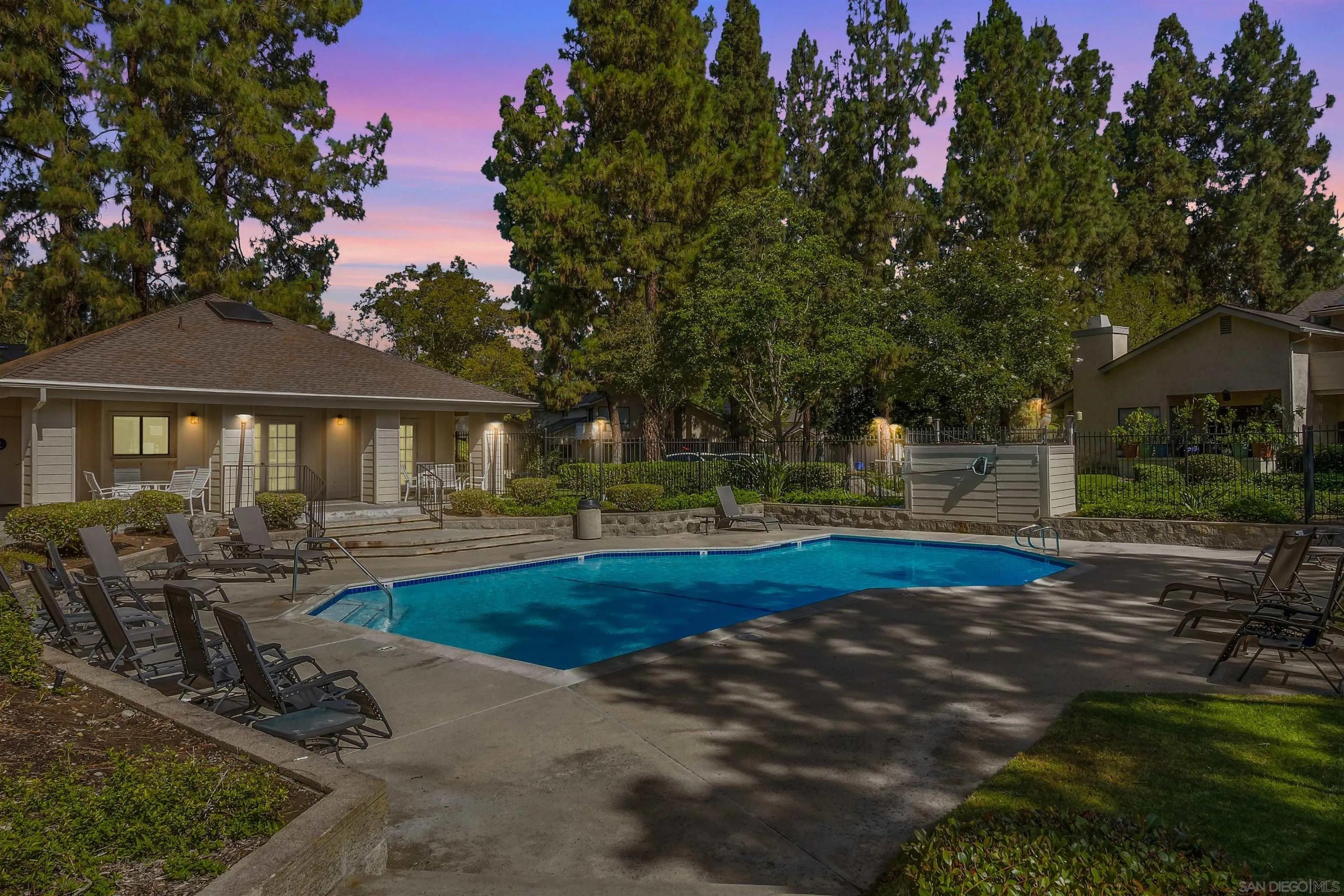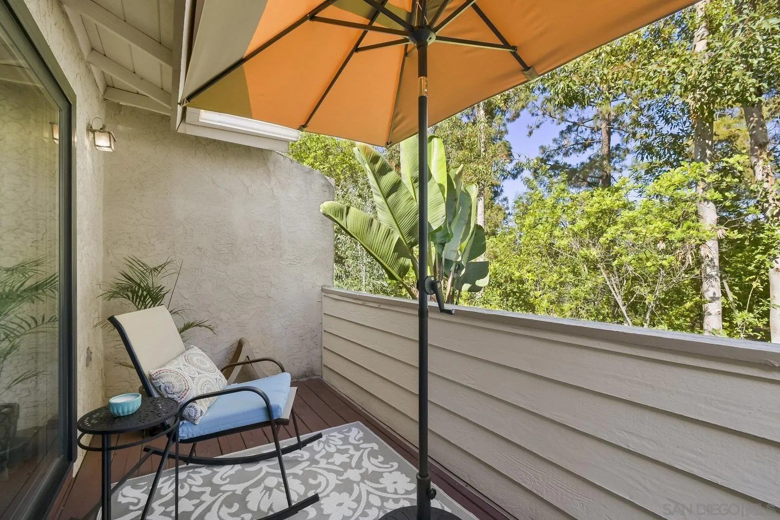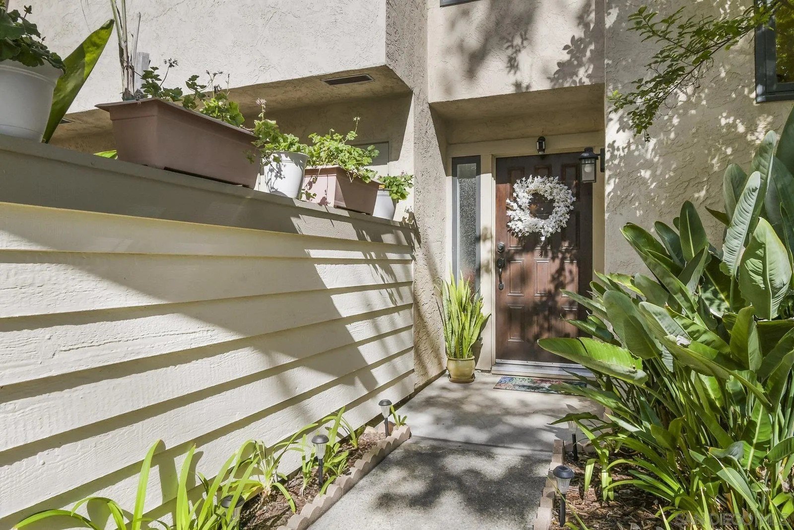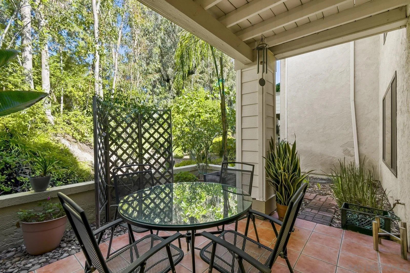 Welcome home to Scripps Ranch! This stylish and move-in-ready 2-bedroom, 2.5-bath townhome in the desirable Glenwood Springs community offers a blend of modern upgrades and thoughtful design, nestled in the eucalyptus trees and bathed in natural light. The interior features quartz countertops in the kitchen and bathrooms, recessed lighting, custom fixtures, and a spacious living area that opens to three private outdoor spaces...a shaded patio, a private balcony, and spacious courtyard. Enjoy added comfort with upgraded Milgard windows, electronic window shades, and custom stair rails. The primary suite includes vaulted ceilings and custom closet system. The HOA just added a brand-new roof and features a resort syle community pool. Located moments from Lake Miramar, Miramar Ranch Elementary, shopping, dining, and more-all within a dog-friendly community that offers both privacy and convenience.