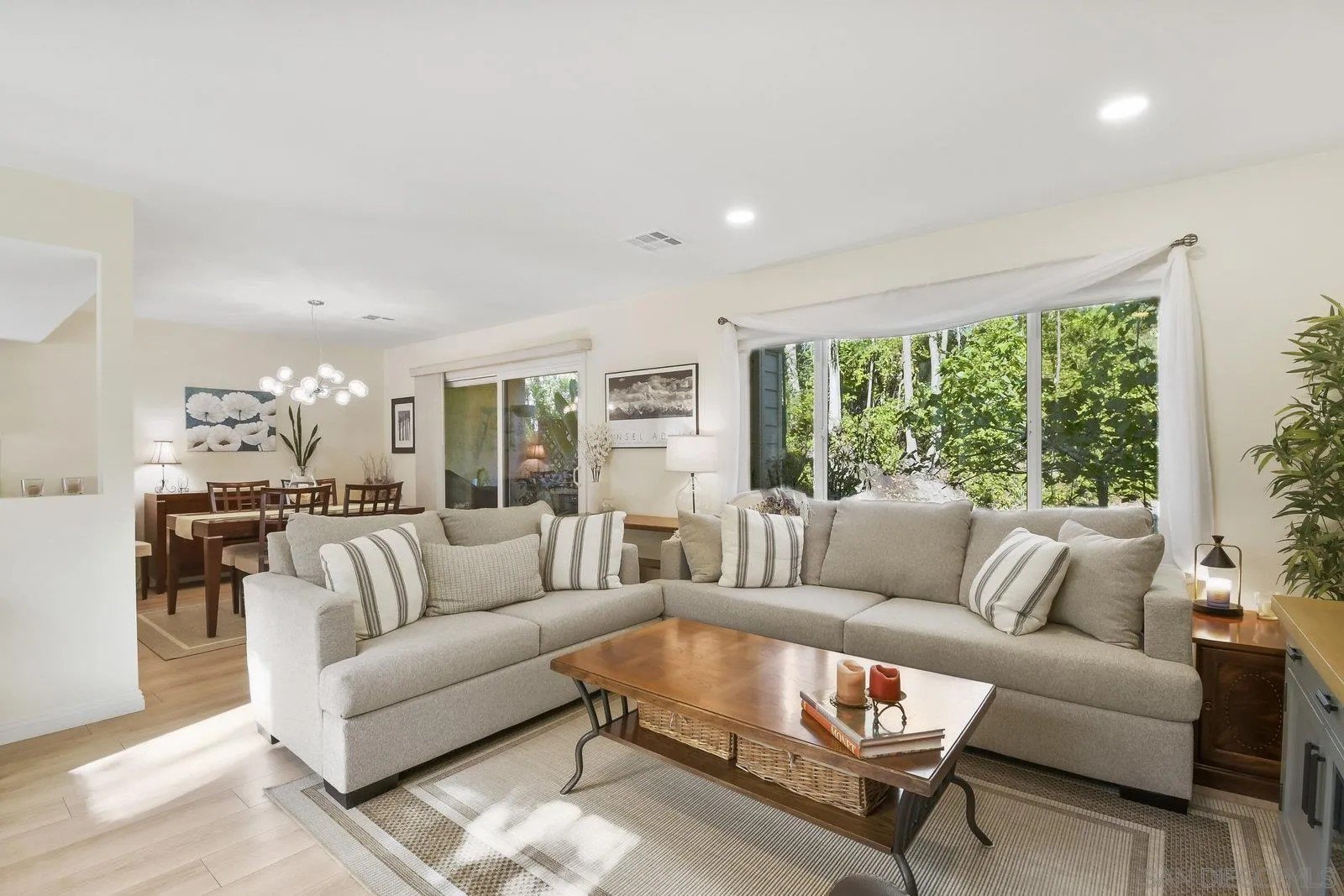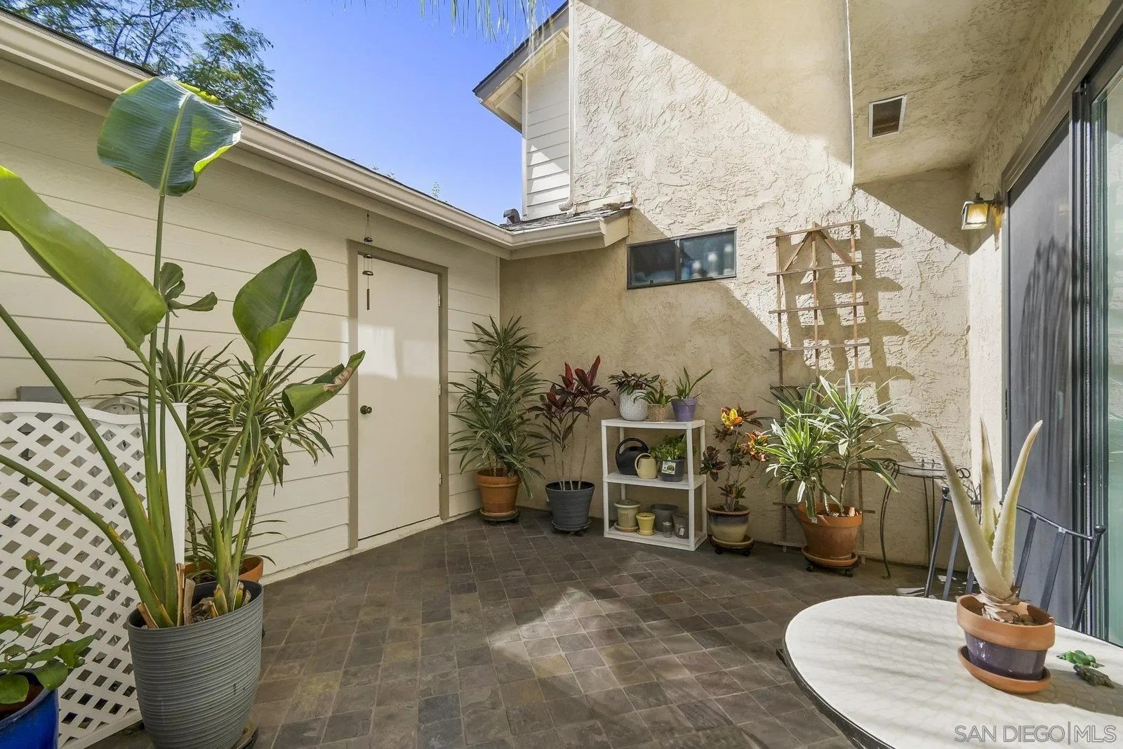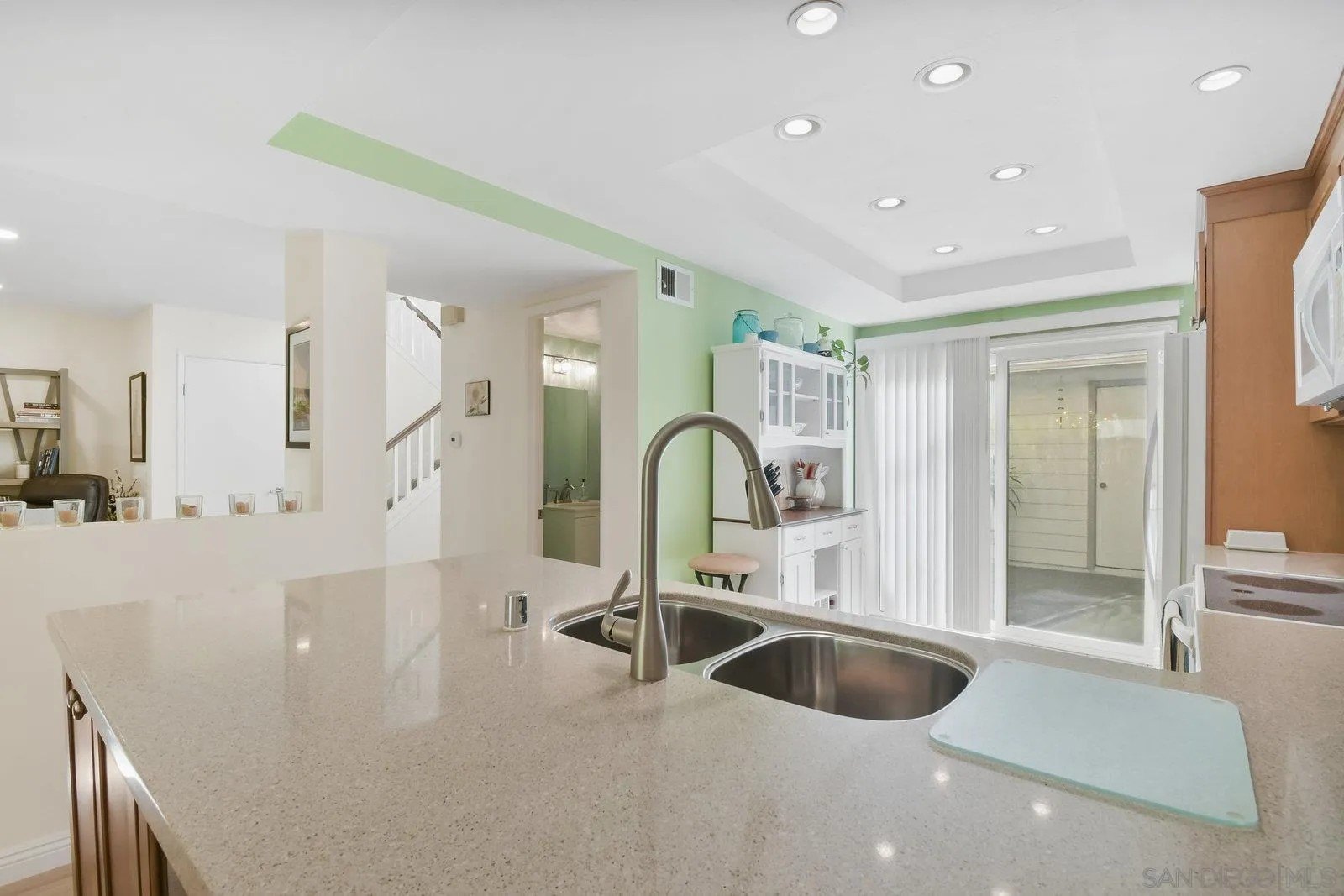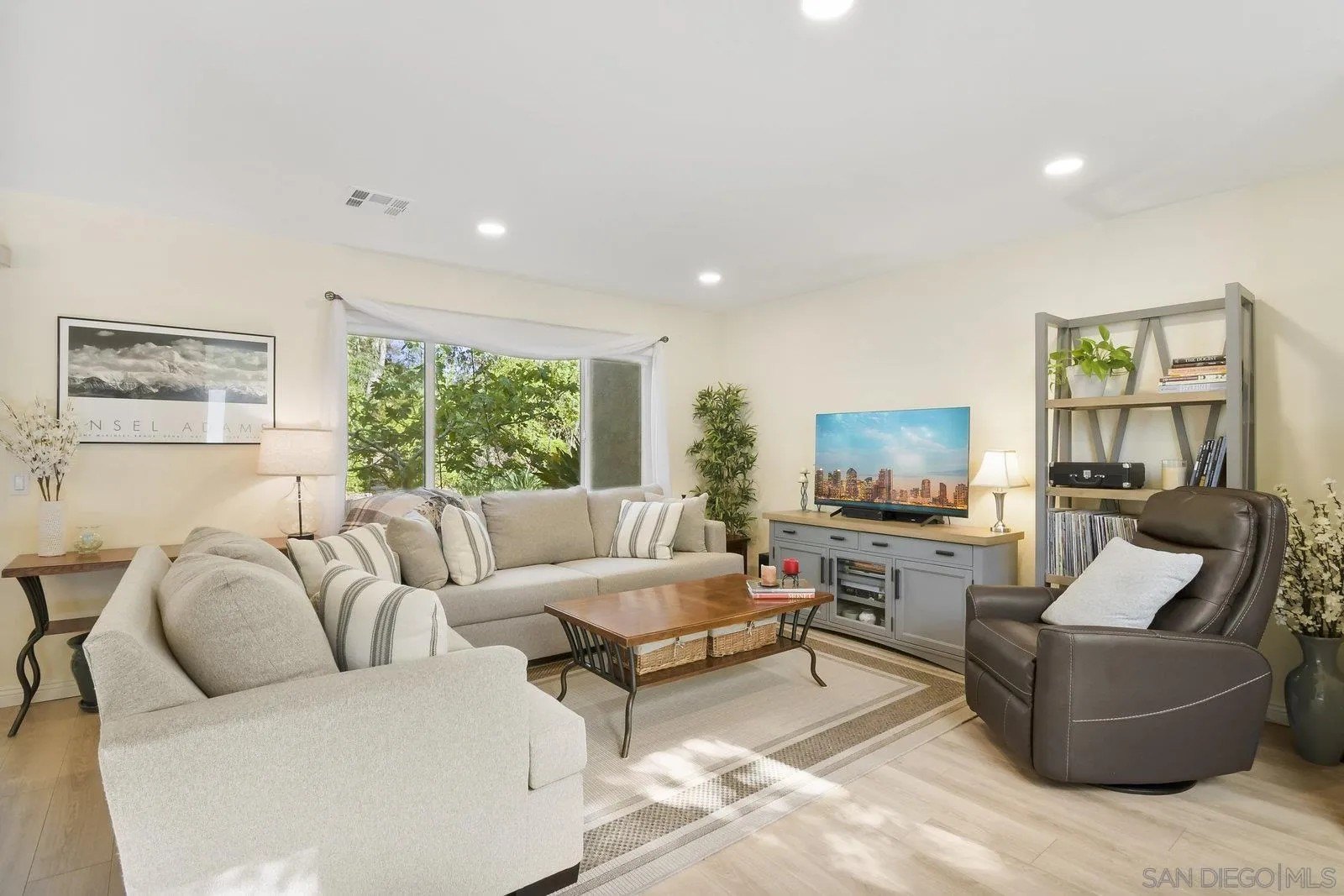 Welcome home to Scripps Ranch! This stylish and move-in-ready 2-bedroom, 2.5-bath townhome in the desirable Glenwood Springs community offers a blend of modern upgrades and thoughtful design, nestled in the eucalyptus trees and bathed in natural light. The interior features quartz countertops in the kitchen and bathrooms, recessed lighting, custom fixtures, and a spacious living area that opens to three private outdoor spaces...a shaded patio, a private balcony, and spacious courtyard. Enjoy added comfort with upgraded Milgard windows, electronic window shades, and custom stair rails. The primary suite includes vaulted ceilings and custom closet system. The HOA just added a brand-new roof and features a resort syle community pool. Located moments from Lake Miramar, Miramar Ranch Elementary, shopping, dining, and more-all within a dog-friendly community that offers both privacy and convenience.