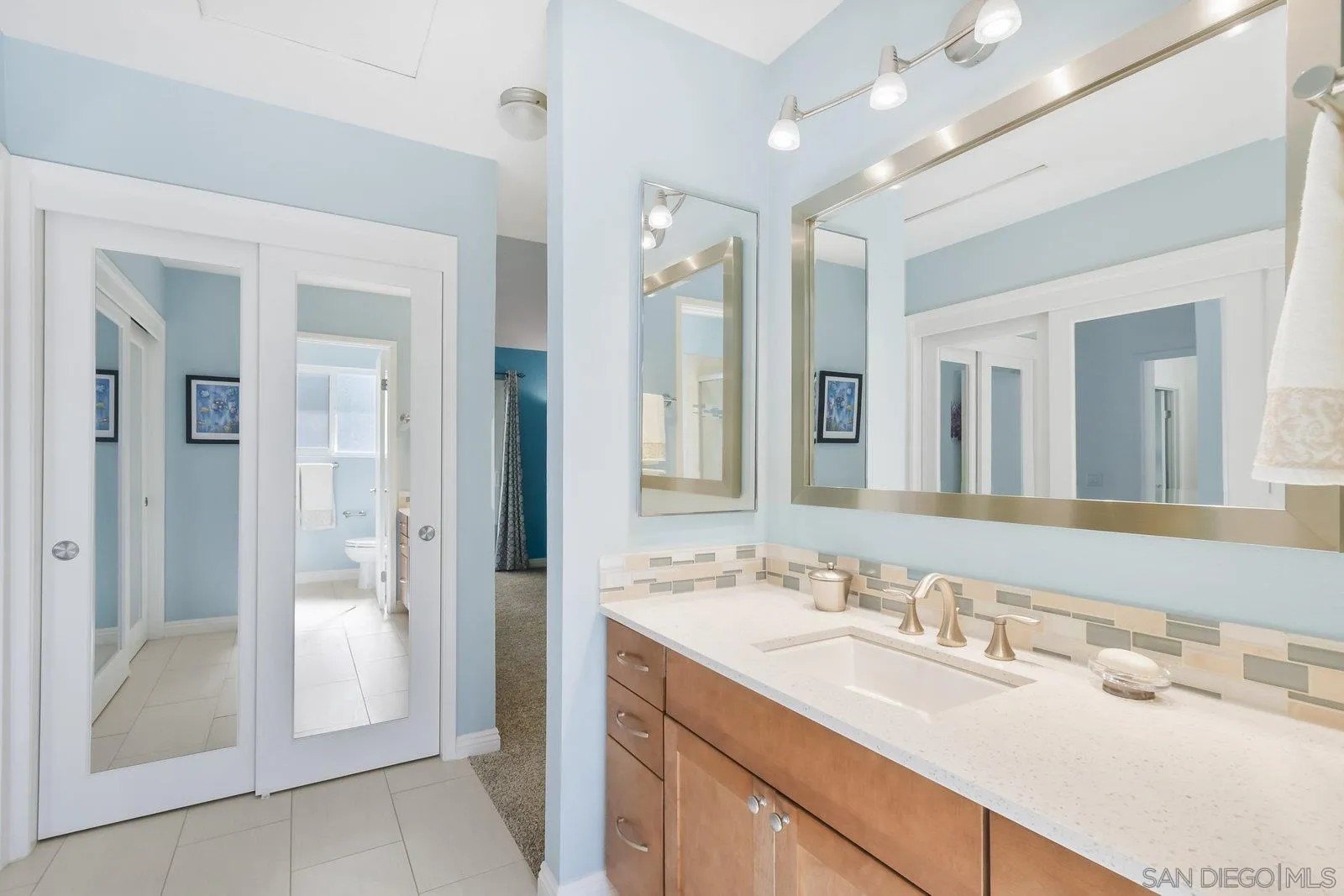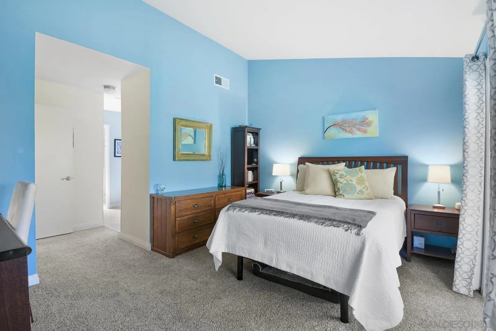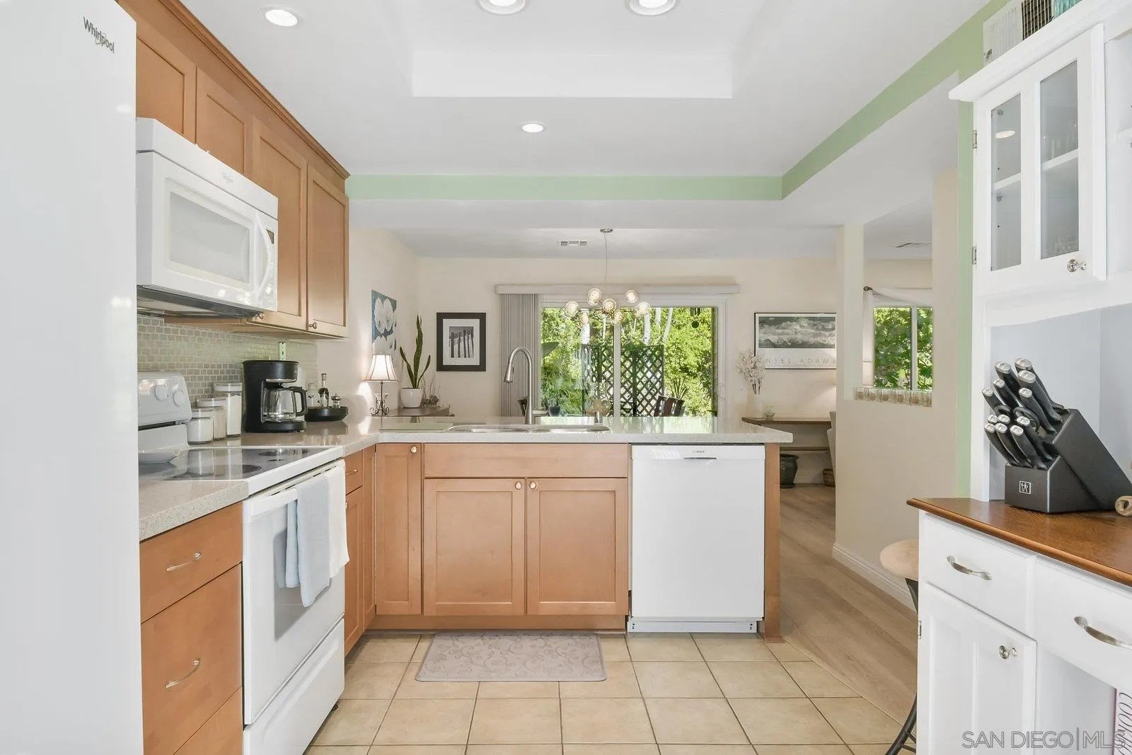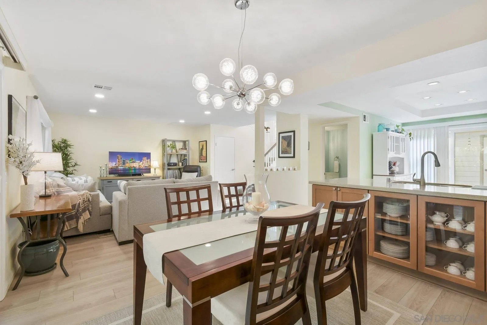 Welcome home to Scripps Ranch! This stylish and move-in-ready 2-bedroom, 2.5-bath townhome in the desirable Glenwood Springs community offers a blend of modern upgrades and thoughtful design, nestled in the eucalyptus trees and bathed in natural light. The interior features quartz countertops in the kitchen and bathrooms, recessed lighting, custom fixtures, and a spacious living area that opens to three private outdoor spaces...a shaded patio, a private balcony, and spacious courtyard. Enjoy added comfort with upgraded Milgard windows, electronic window shades, and custom stair rails. The primary suite includes vaulted ceilings and custom closet system. The HOA just added a brand-new roof and features a resort syle community pool. Located moments from Lake Miramar, Miramar Ranch Elementary, shopping, dining, and more-all within a dog-friendly community that offers both privacy and convenience.
