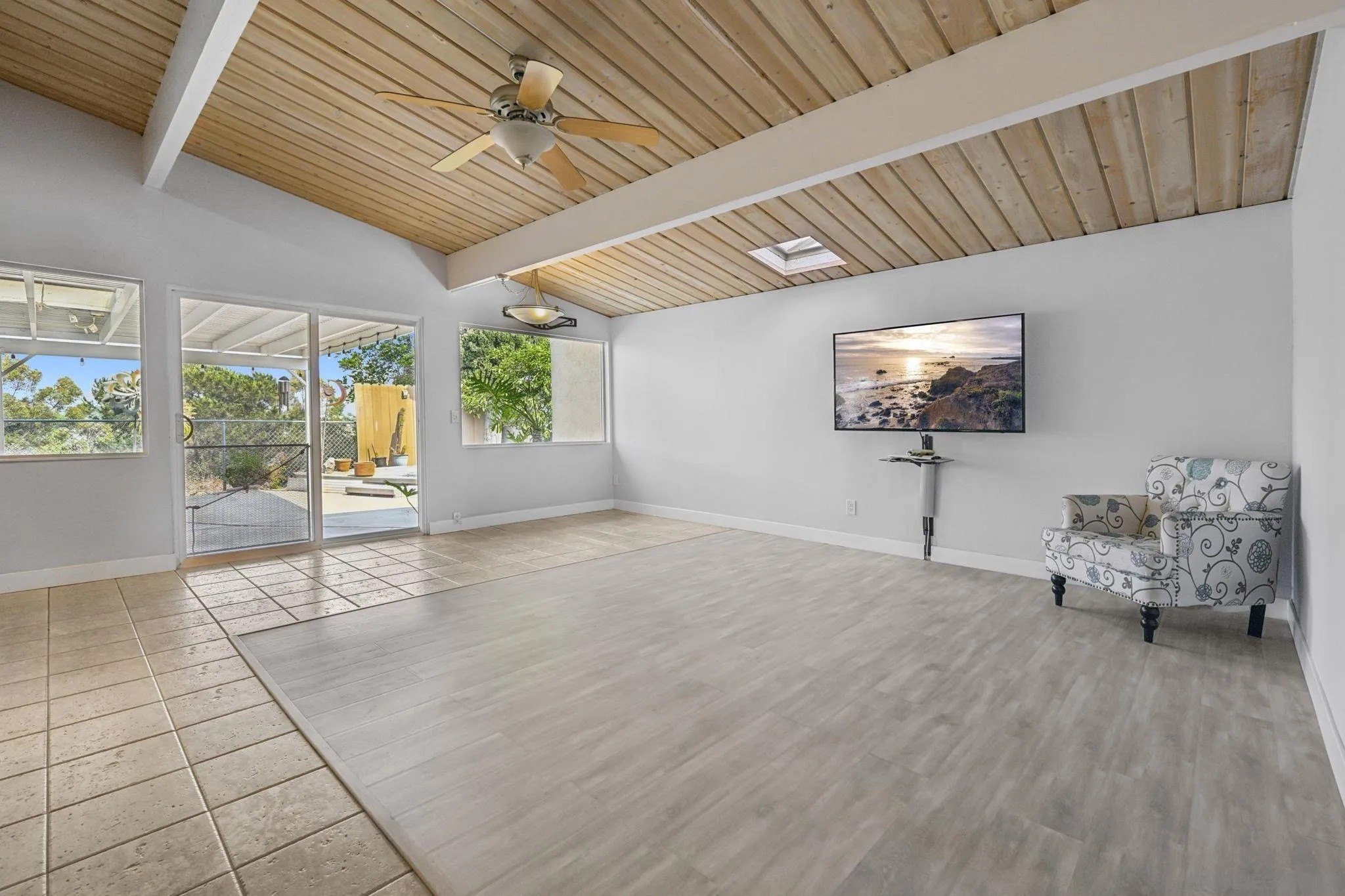 Welcome to 6445 Lake Mere Court, a beautiful mid-century modern gem designed by renowned San Diego architect Richard Robert Leitch and built by Sam C. Harris in 1962. This single-level home blends iconic design with modern updates, including a brand-new GAF 50-year roof installed in February 2025. With 1,680 square feet of living space, the home offers 4 bedrooms and 2 full bathrooms, an open-concept kitchen that flows into the spacious living area, and abundant natural light throughout. Step into the backyard and enjoy peaceful easterly views-perfect for morning coffee or evening relaxation. The property includes a 2-car attached garage and sits on a quiet street. Timeless architectural character, thoughtful layout, and location make this a truly special opportunity in San Diego.