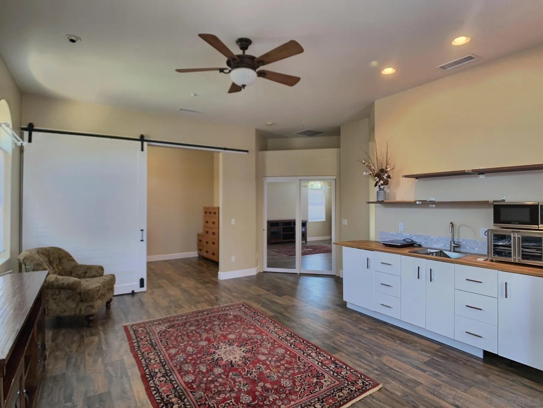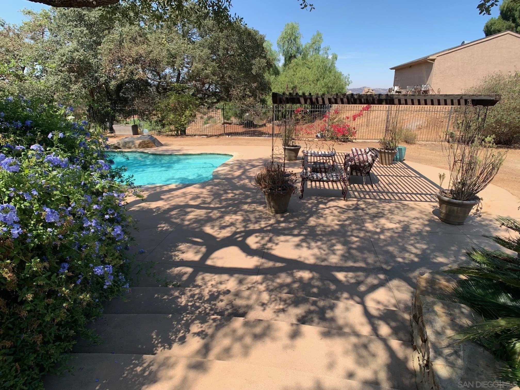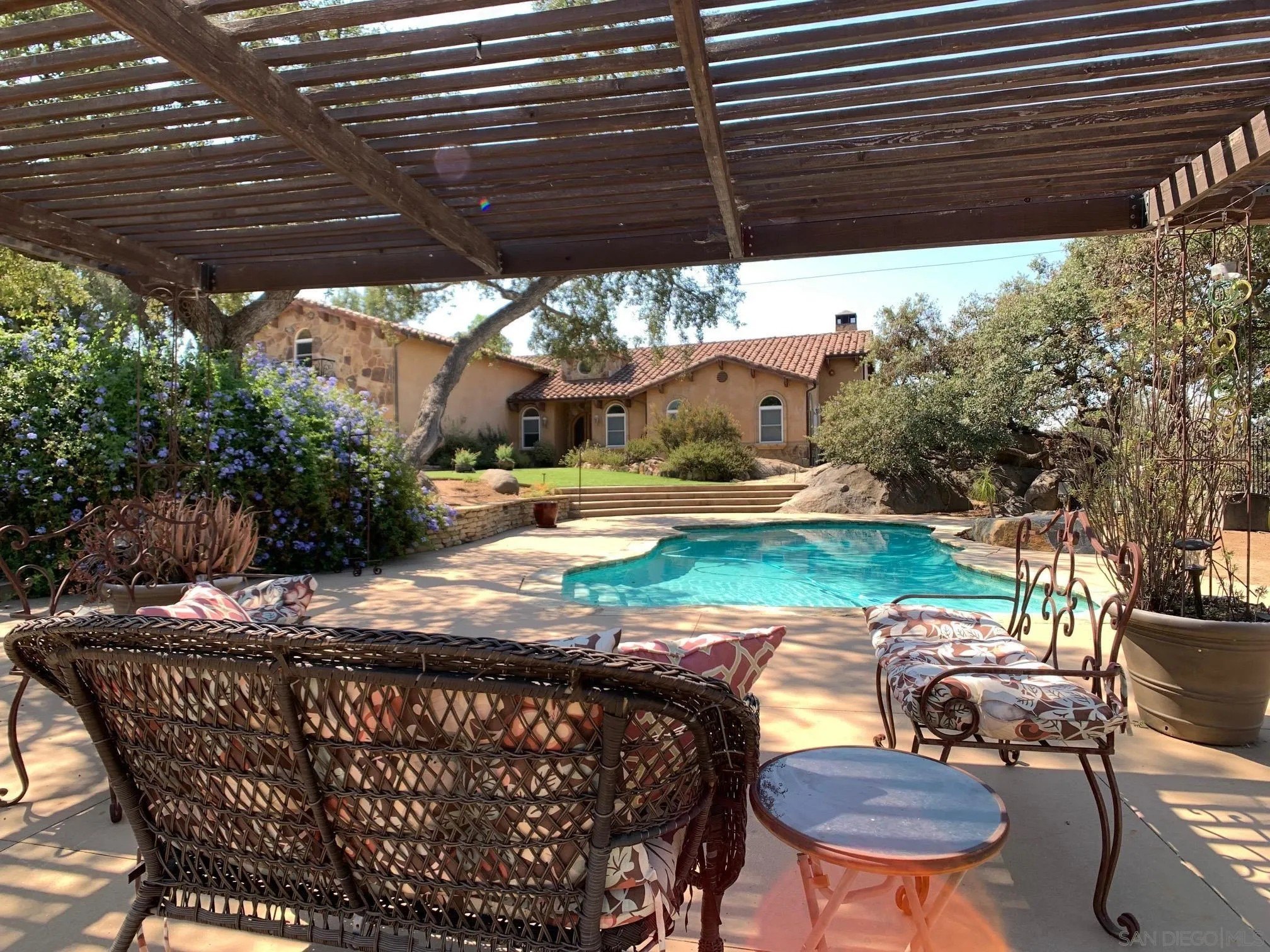 "Variance granted for 2-4 Units". Beyond a private, gated entry lies a world meant for gathering, living, and dreaming. On a flat, useable acre framed by mature trees and golden westerly sunsets, three distinct residences create a rare multi-generational haven. The Tuscan-inspired main home, rich with high ceilings, 8-foot custom doors, earth-toned finishes, and sunlit spaces, invites you to linger-whether by the family-style kitchen with its granite island and black cabinetry, or fireside under the stars beside the newly built-in firepit. The permitted loft above the garage transforms into a chic studio rental, while the cottage-inspired front home offers two bedrooms, a warm fireplace, and a private walled patio. Between them, a pool house with bath and laundry stands ready for summer days beside the sparkling inground pool. With 7 bedrooms, 5.5 baths, and over 5,400 sq. ft. of living space, this compound offers 5 laundry facilities, 2 septic systems, paid-off 38-panel solar, paved RV parking with hook-ups, and an oversized driveway for endless guests. Wander the small orchard-avocado, grapefruit, lemon, lime, apricot-and imagine more. Here, life is secure, serene, and full of possibilities, where privacy meets connection in perfect harmony.