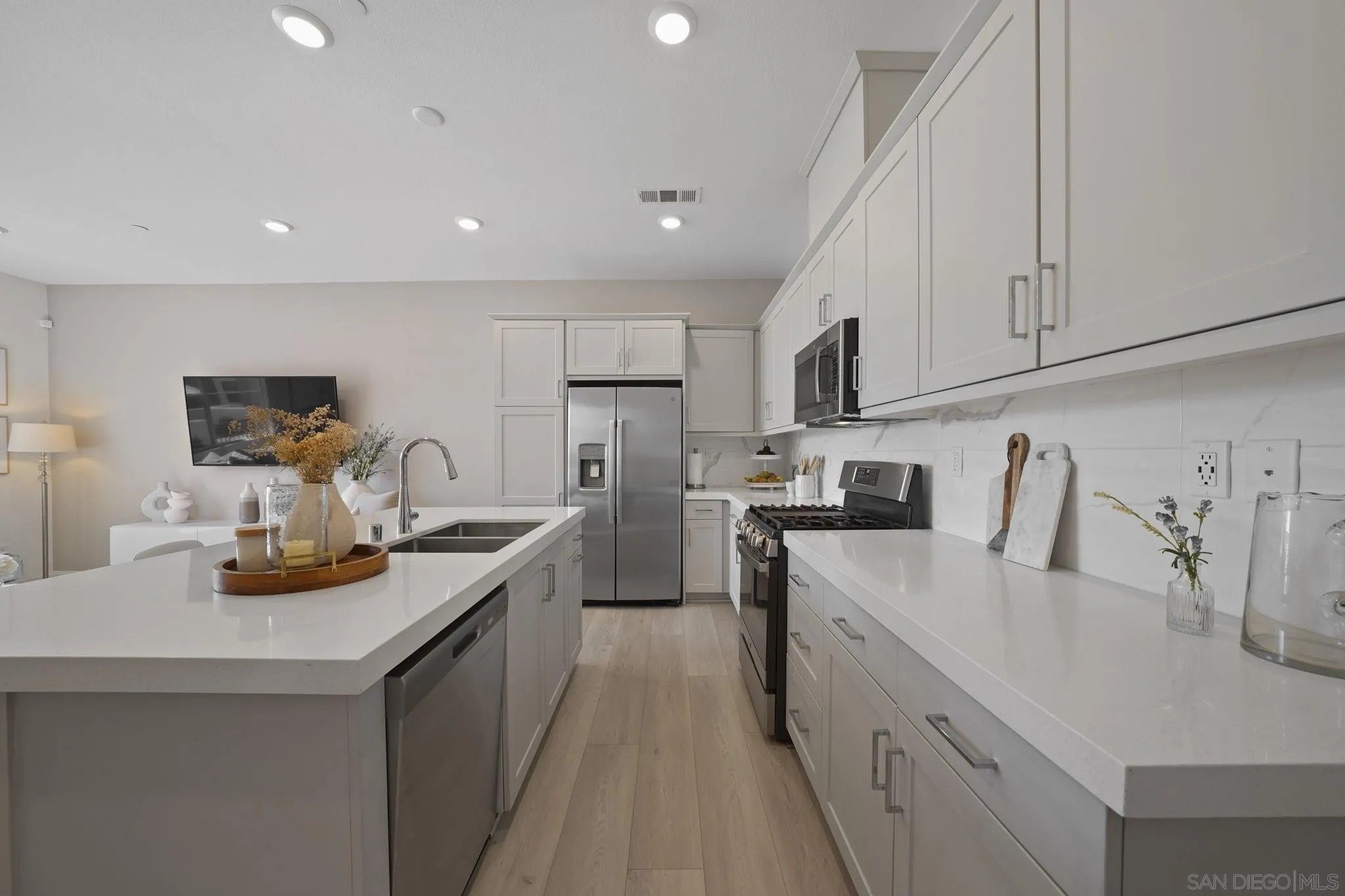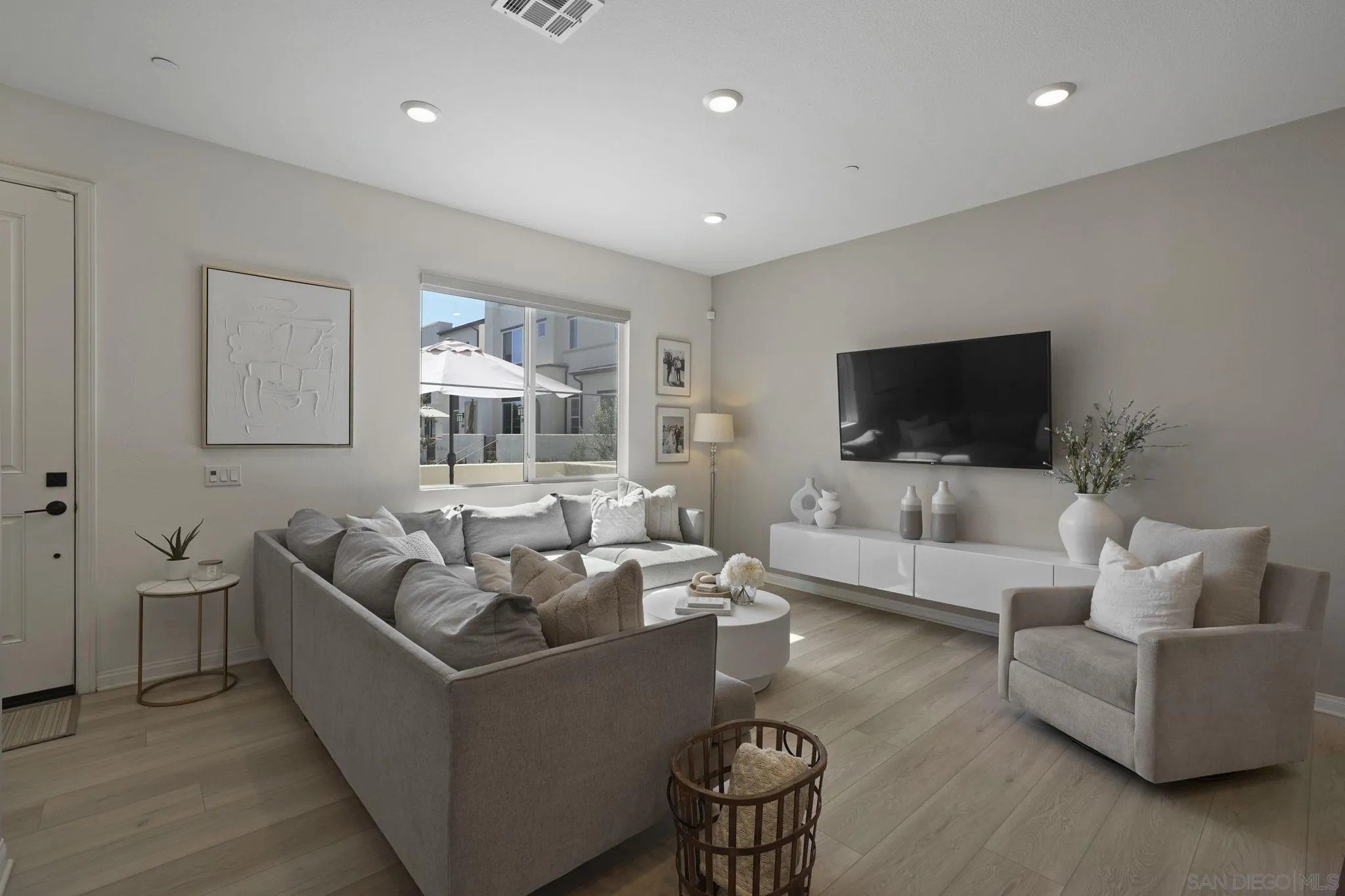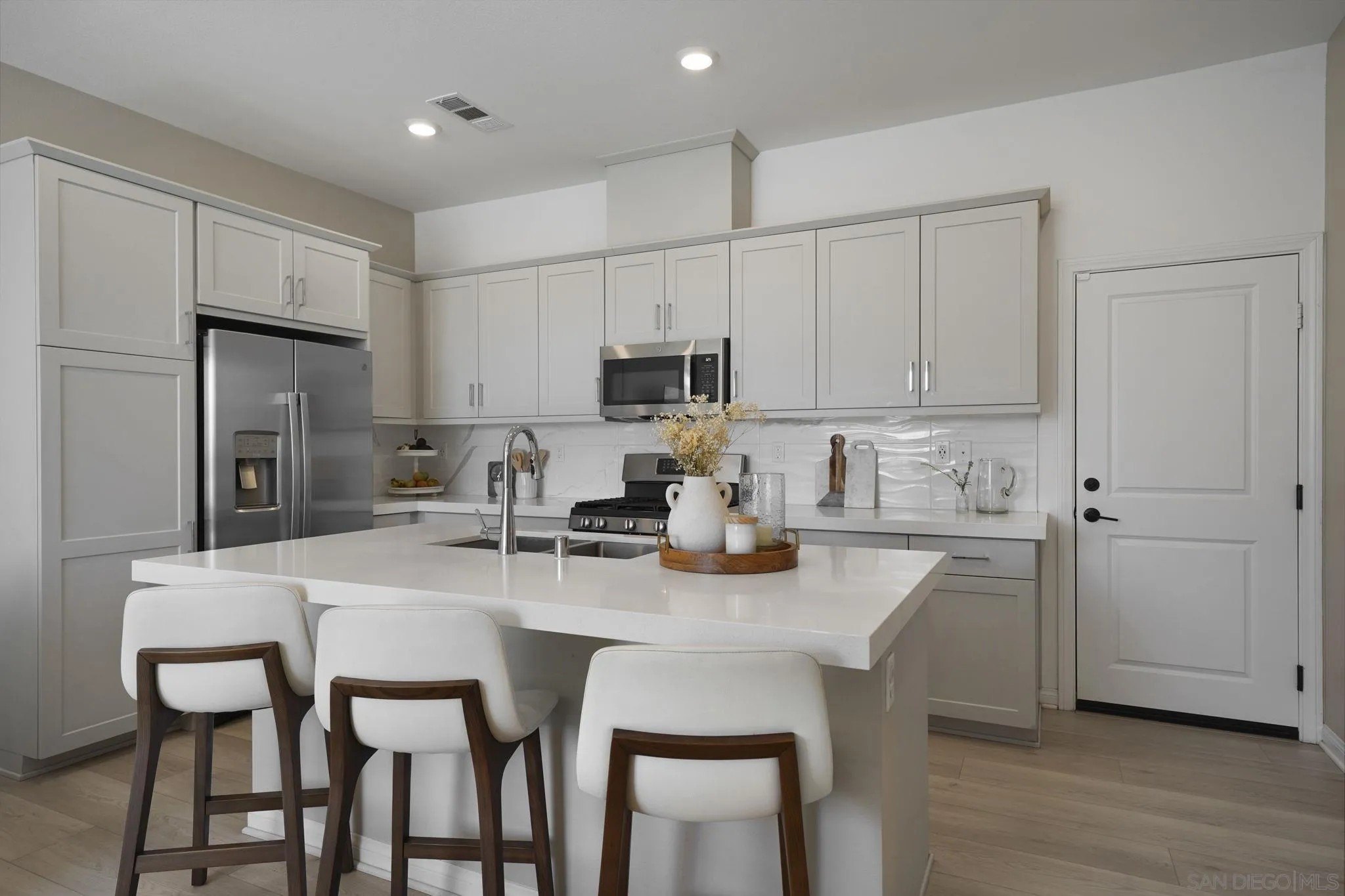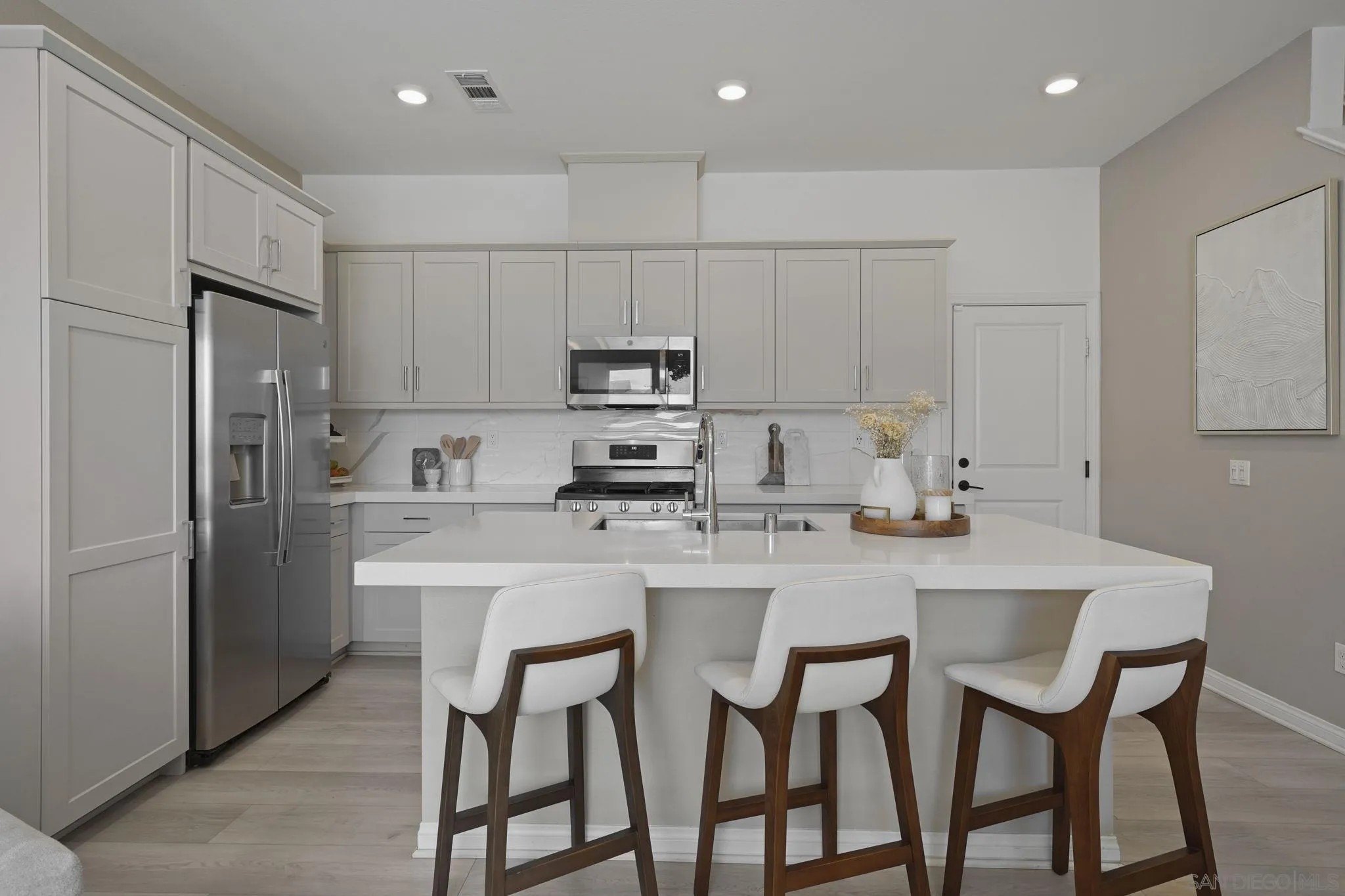 Nearly new 3 bedroom, 2.5 bath townhome in the sought after Bluestone community at Cota?Vera. This home features upgraded luxury vinyl plank flooring, an open concept living and dining area, and a modern kitchen with quartz countertops, stainless steel appliances, and ample cabinet space. The primary suite includes a spa like bath with dual sinks and walk in closet. Additional highlights include a 2 car garage, in unit laundry, and fully paid off solar panels, providing energy savings from day one. Located in a vibrant master planned neighborhood, residents enjoy resort style amenities including a pool, parks, walking paths, and green spaces. Close to newer construction homes, shopping, dining, and top rated schools, this townhome combines modern finishes, sustainable energy features, and functional design. A rare opportunity to own a nearly new home with no solar payments, blending comfort, style, and efficiency in a highly desirable Southern California community.