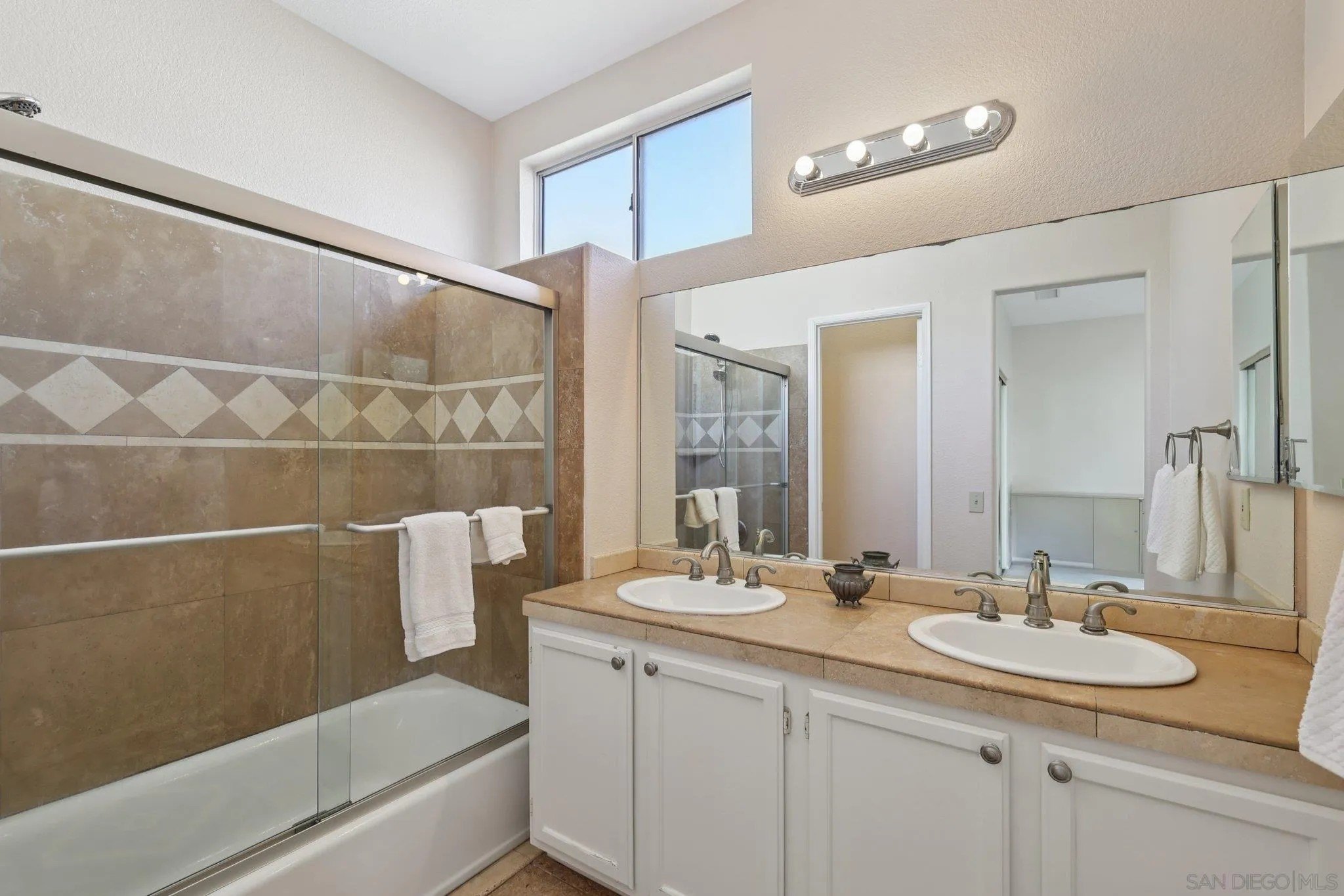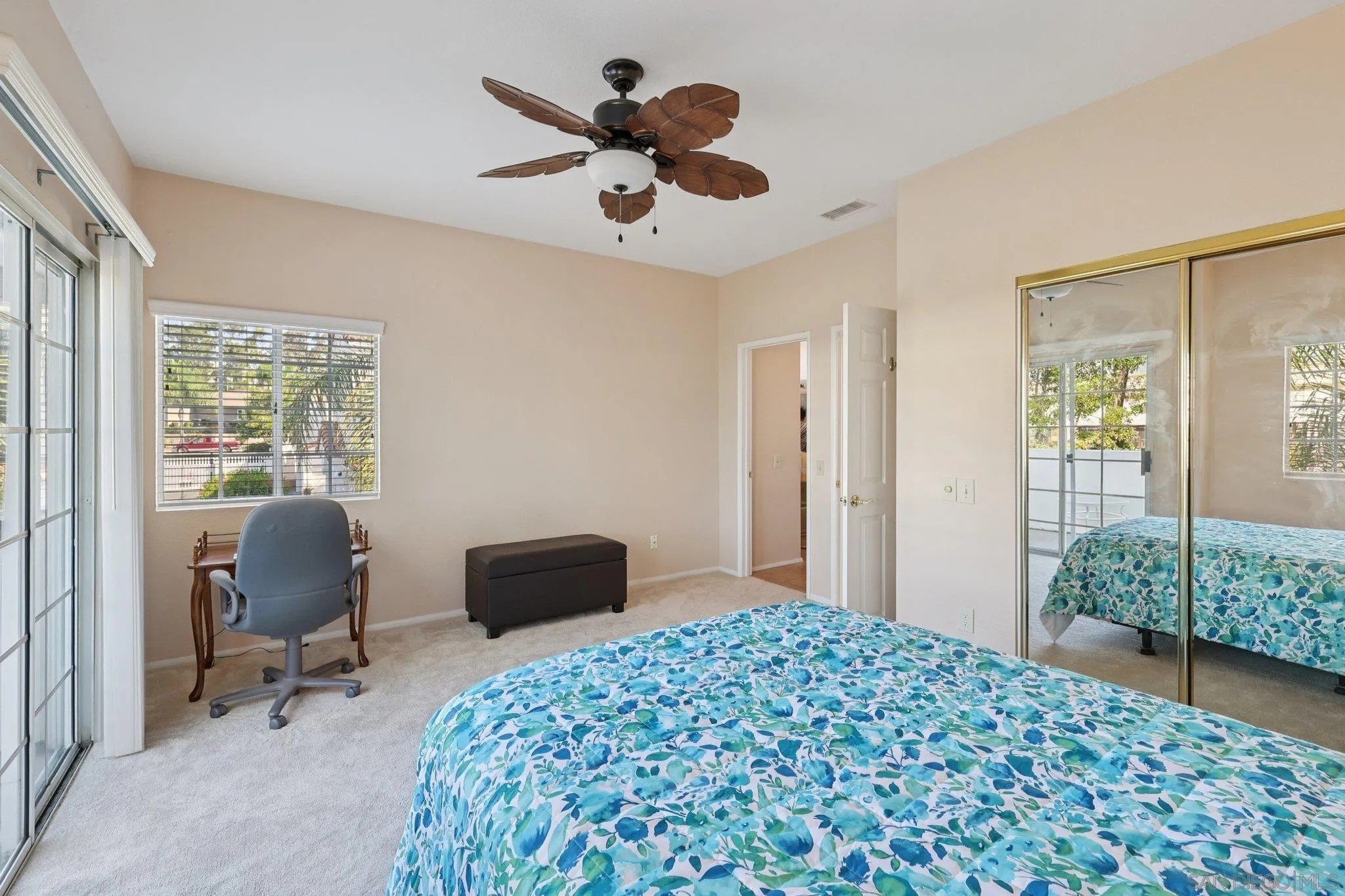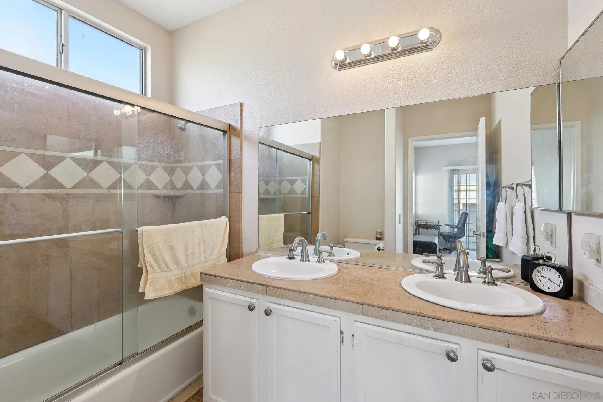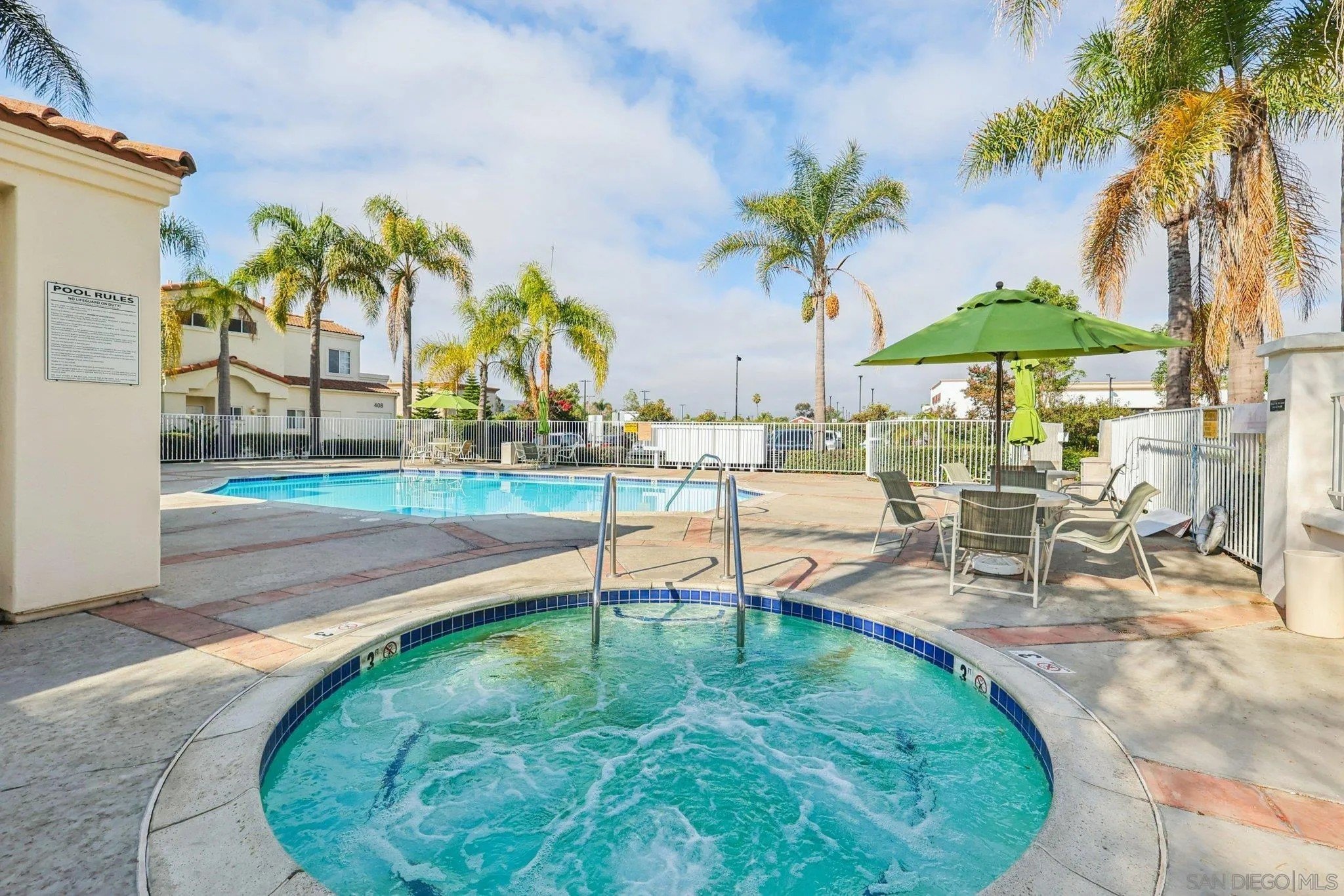 Beautiful 2 bed, 2.5 bath END UNIT townhome with 2-car garage in one of the community's best locations! Private patio with tranquil VIEWS of greenery and trees. Bright open floor plan with 9-ft ceilings, gas fireplace, crown molding, and an updated kitchen with stainless steel appliances. Upgrades include brand new HVAC, plush carpet, and Venetian blinds. Upstairs offers two spacious primary suites with ensuite baths, each featuring a private balcony with sliding glass doors and views. Guest bath conveniently located on the main level. Gated community amenities include pool, spa, and fenced dog park. Prime San Marcos location close to top schools, universities, freeways, shopping, and dining. Move-in ready!