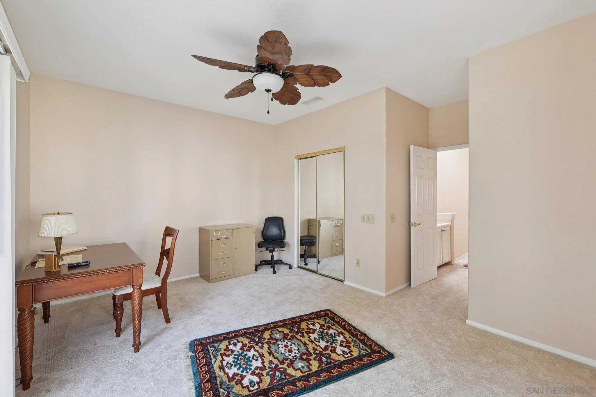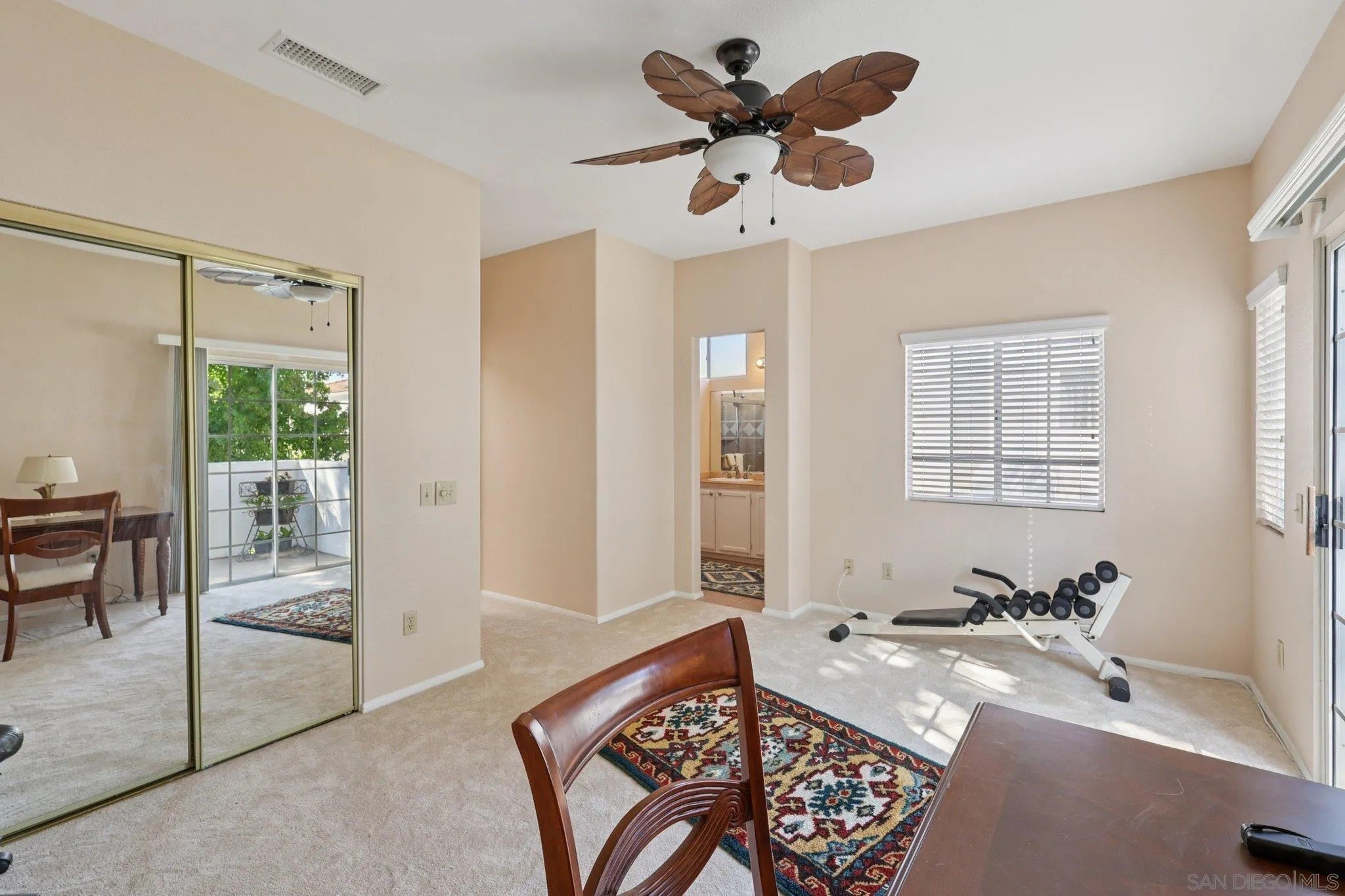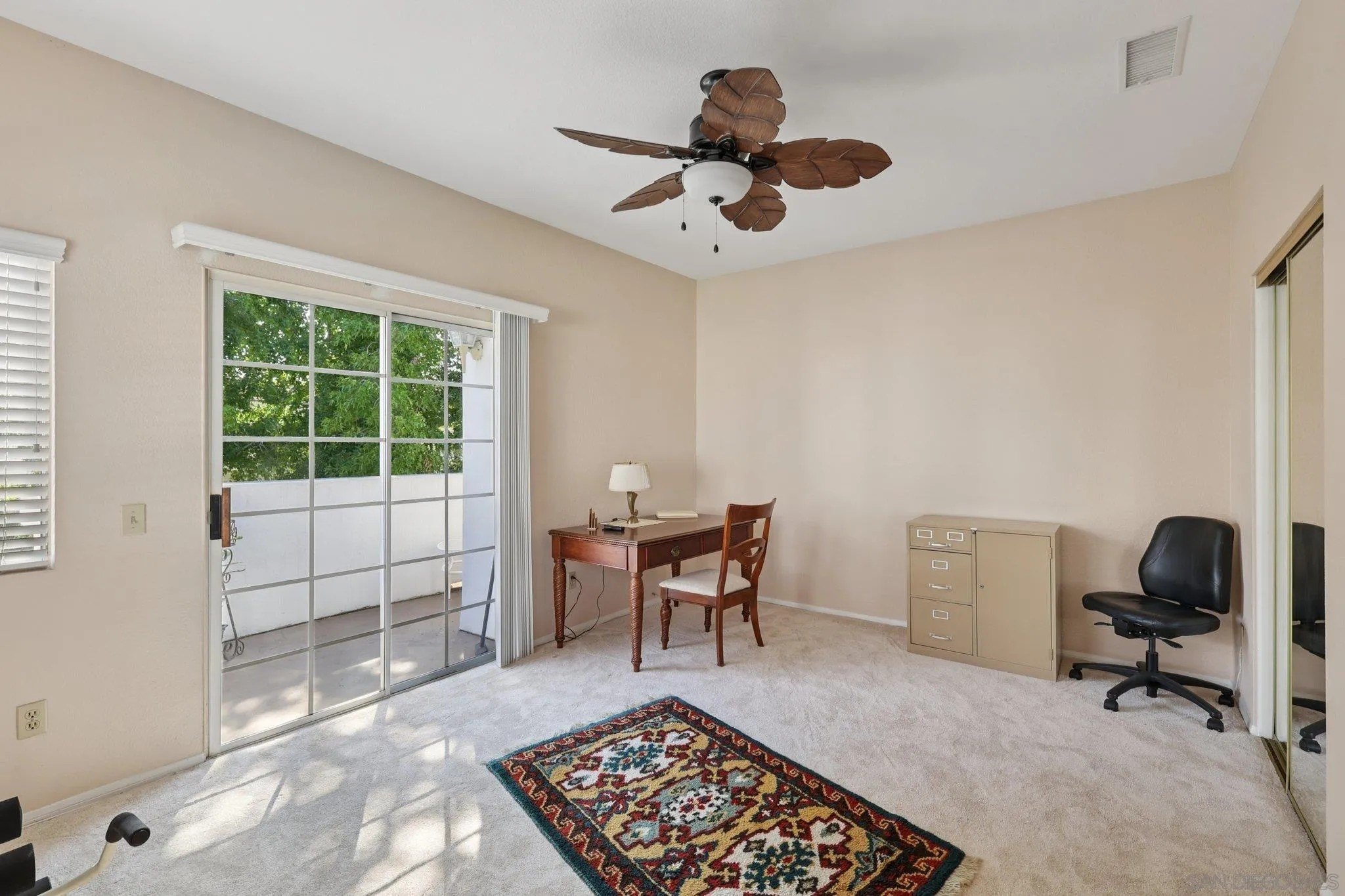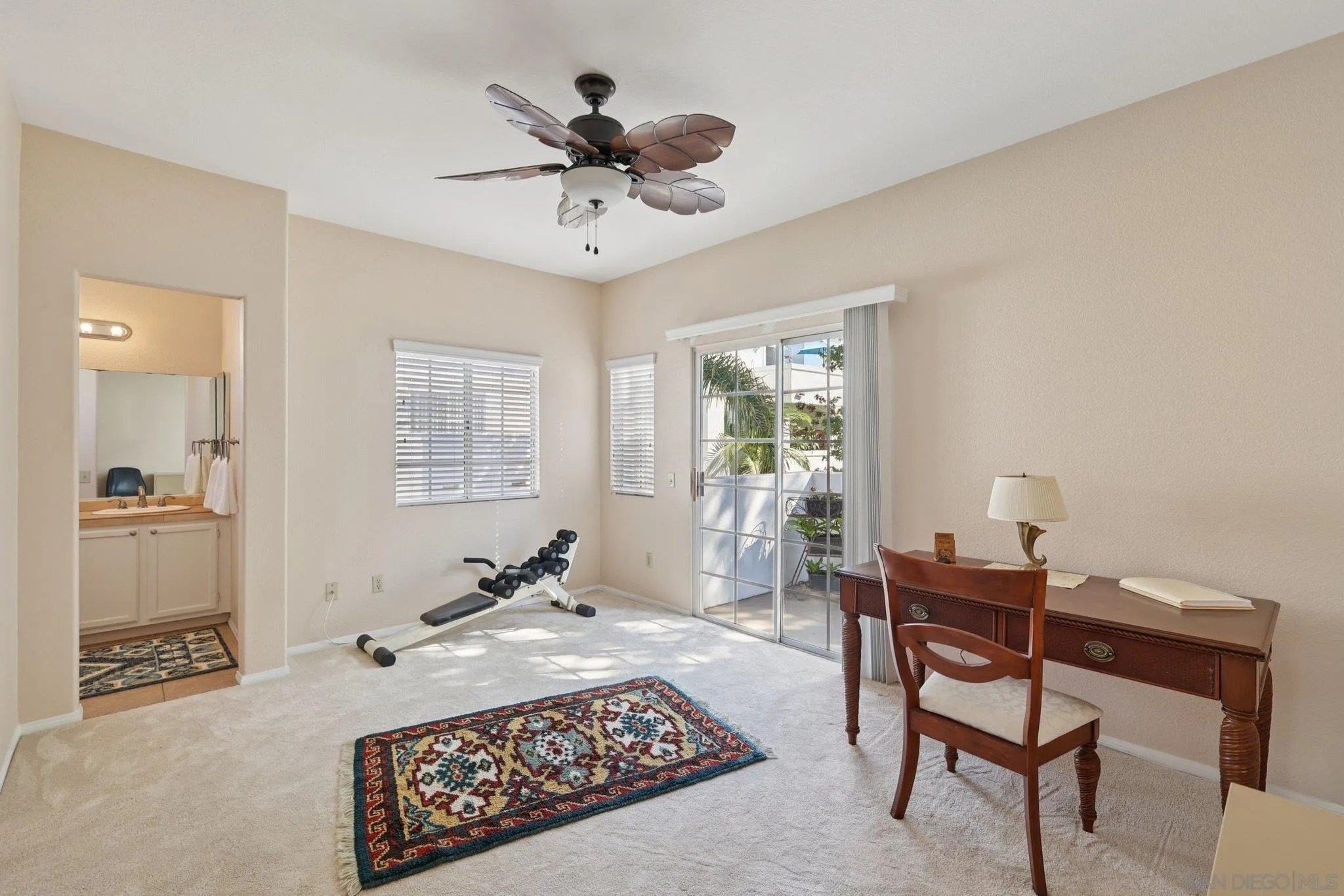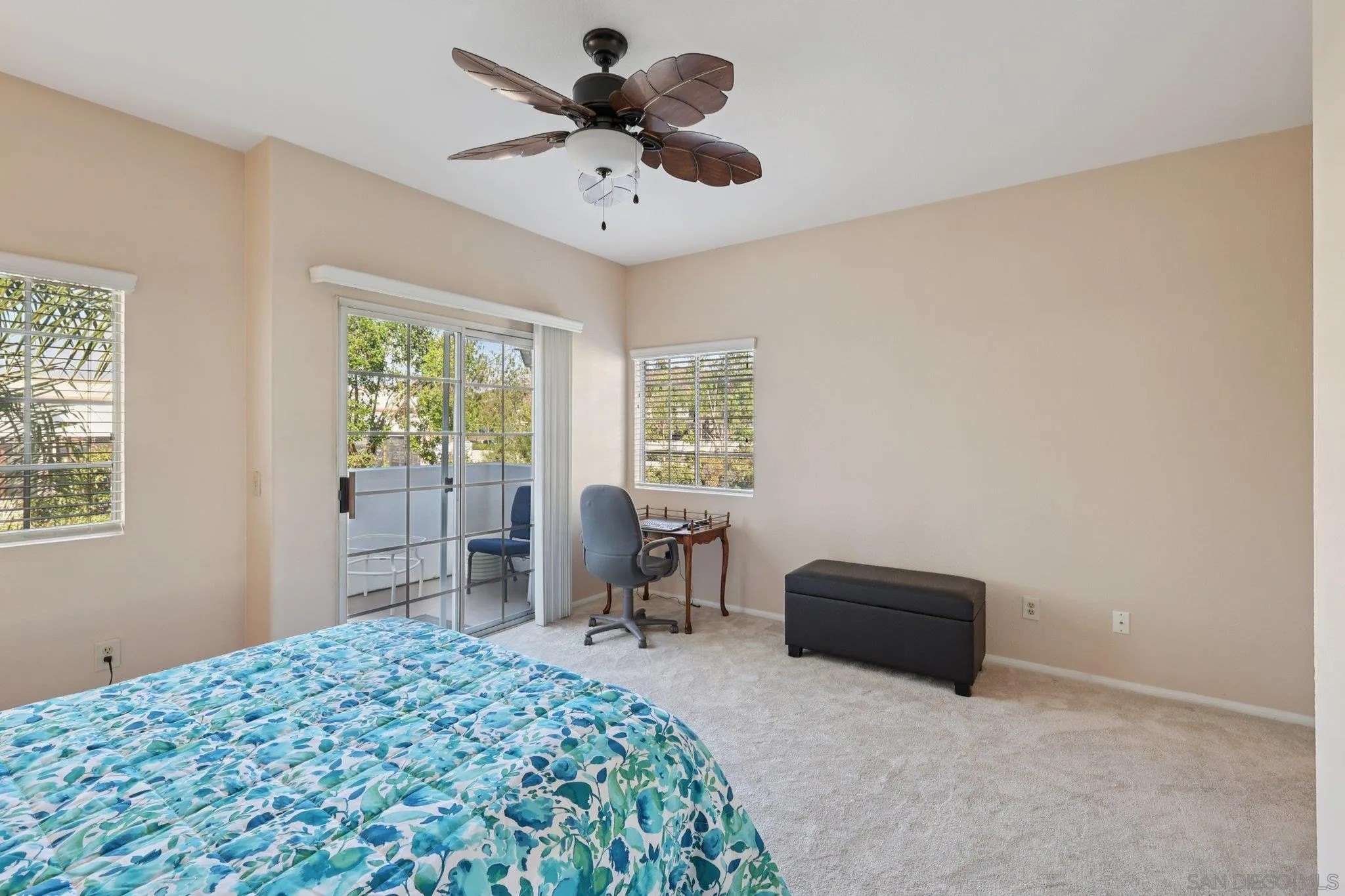 Beautiful 2 bed, 2.5 bath END UNIT townhome with 2-car garage in one of the community's best locations! Private patio with tranquil VIEWS of greenery and trees. Bright open floor plan with 9-ft ceilings, gas fireplace, crown molding, and an updated kitchen with stainless steel appliances. Upgrades include brand new HVAC, plush carpet, and Venetian blinds. Upstairs offers two spacious primary suites with ensuite baths, each featuring a private balcony with sliding glass doors and views. Guest bath conveniently located on the main level. Gated community amenities include pool, spa, and fenced dog park. Prime San Marcos location close to top schools, universities, freeways, shopping, and dining. Move-in ready!