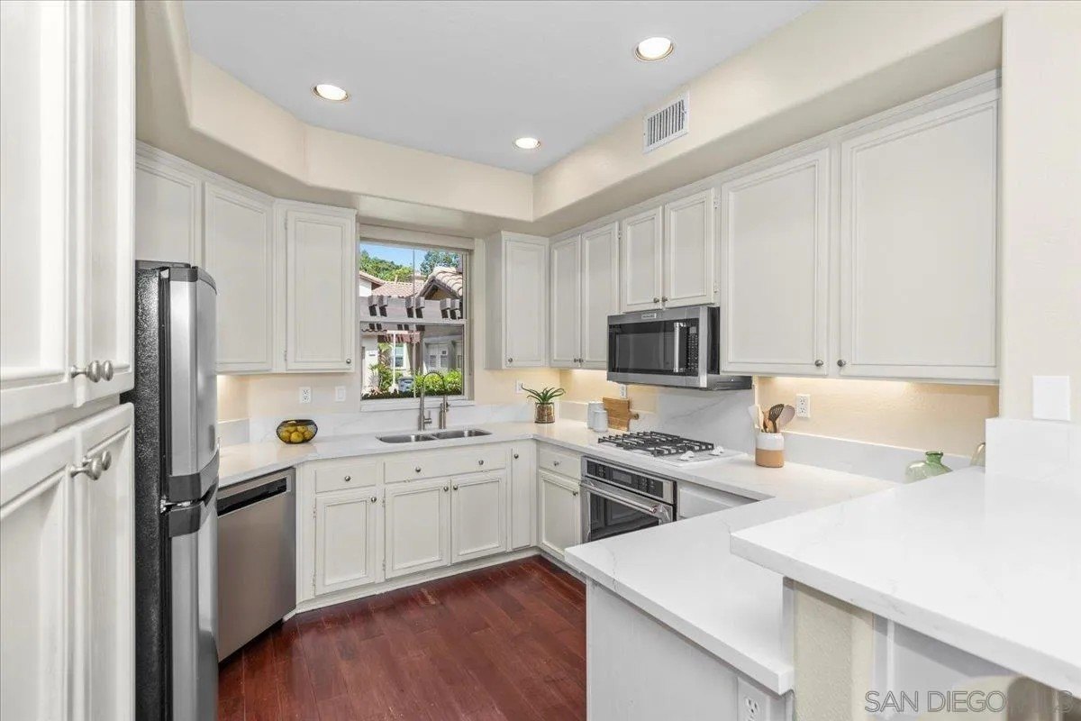 Stunning panoramic westerly views of the Aviara Golf Course! Nestled within the Sanderling gated community, this home boasts 2 bedrooms plus a spacious loft and includes air conditioning. The light-filled open layout with cathedral ceilings & oversized windows capture the spectacular scenery from nearly every room! A private balcony off the primary suite and a beautiful flagstone patio create the ideal setting to relax or entertain while enjoying breathtaking views and sunsets over the lush fairways. Discover coastal living at its finest with community pool and spa, nearby hiking trails, Batiquitos Lagoon, fine dining, world-class resorts, and award-winning schools!