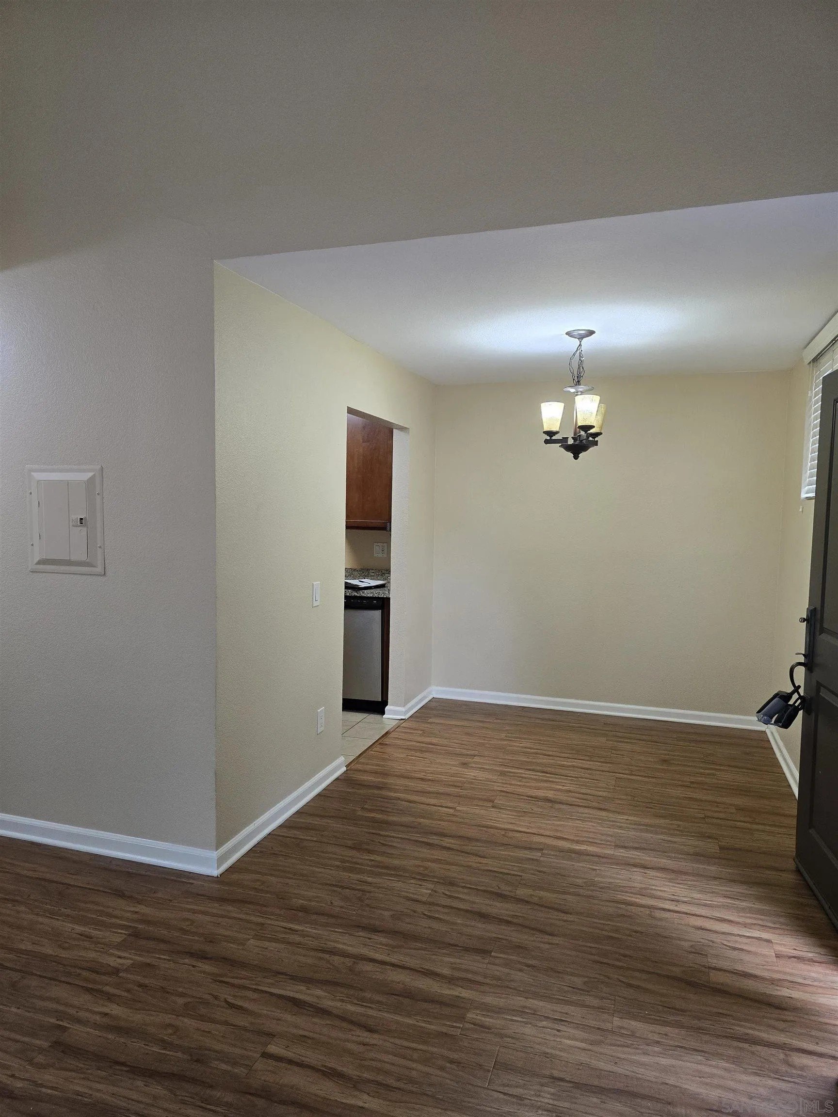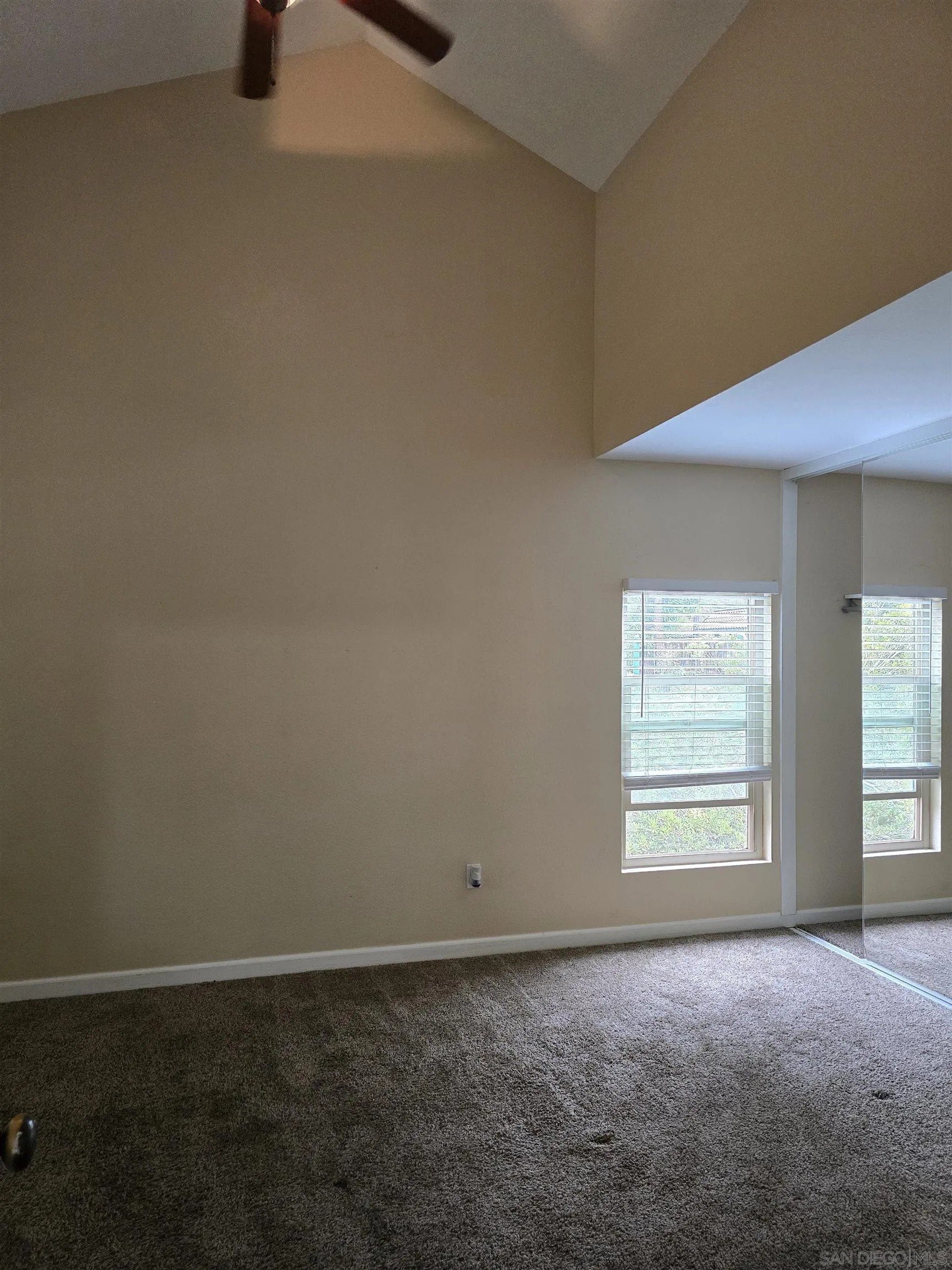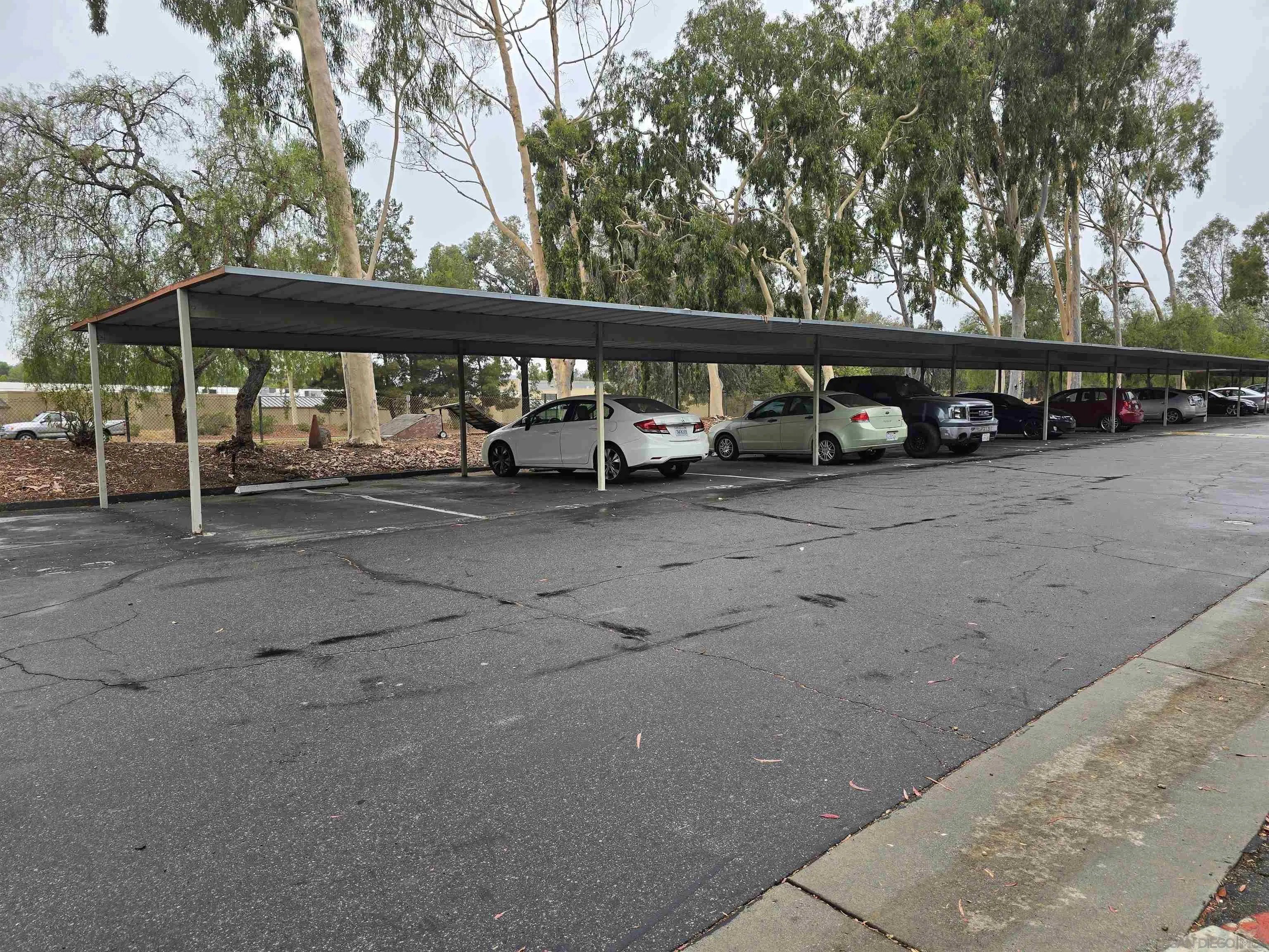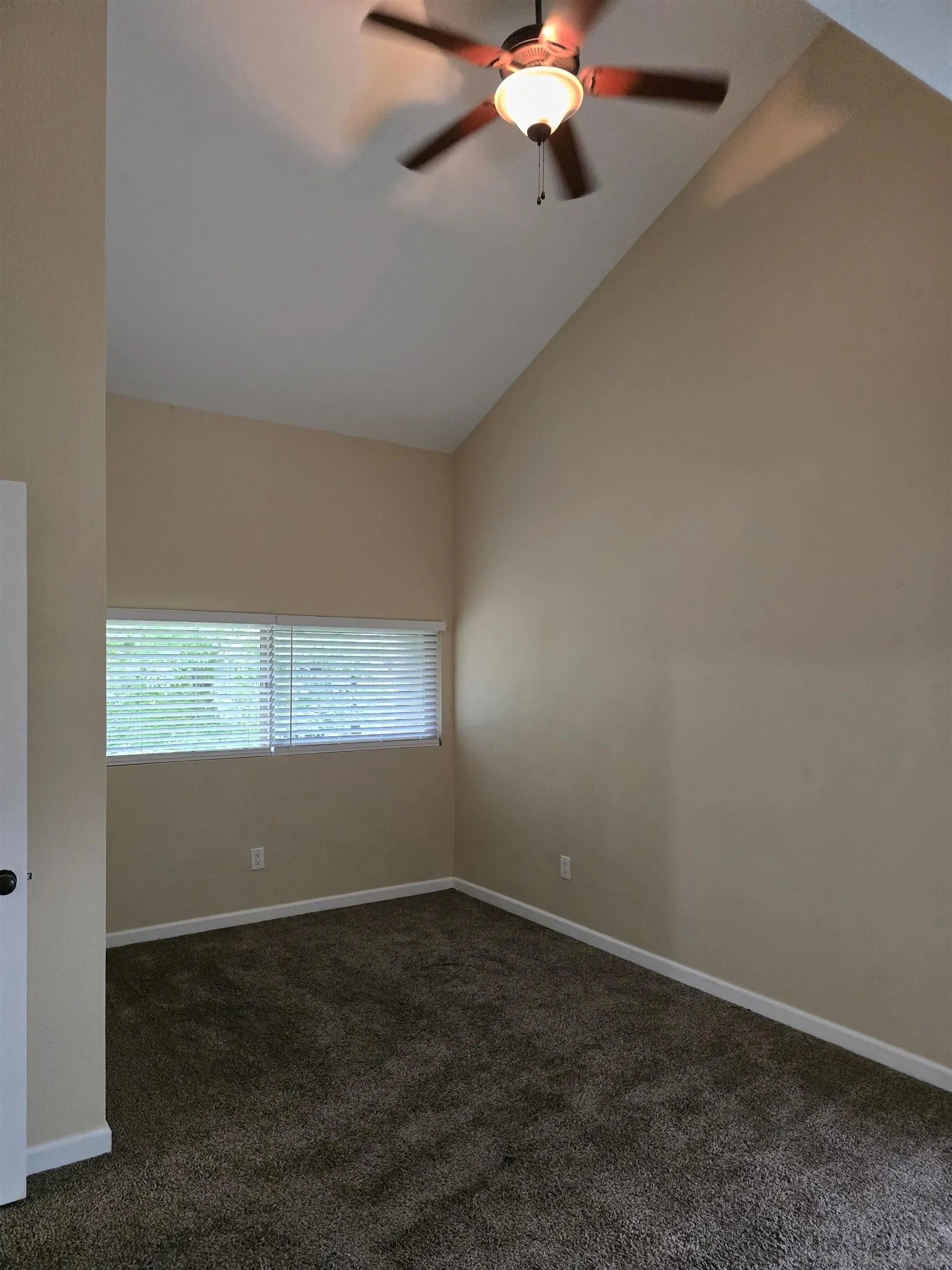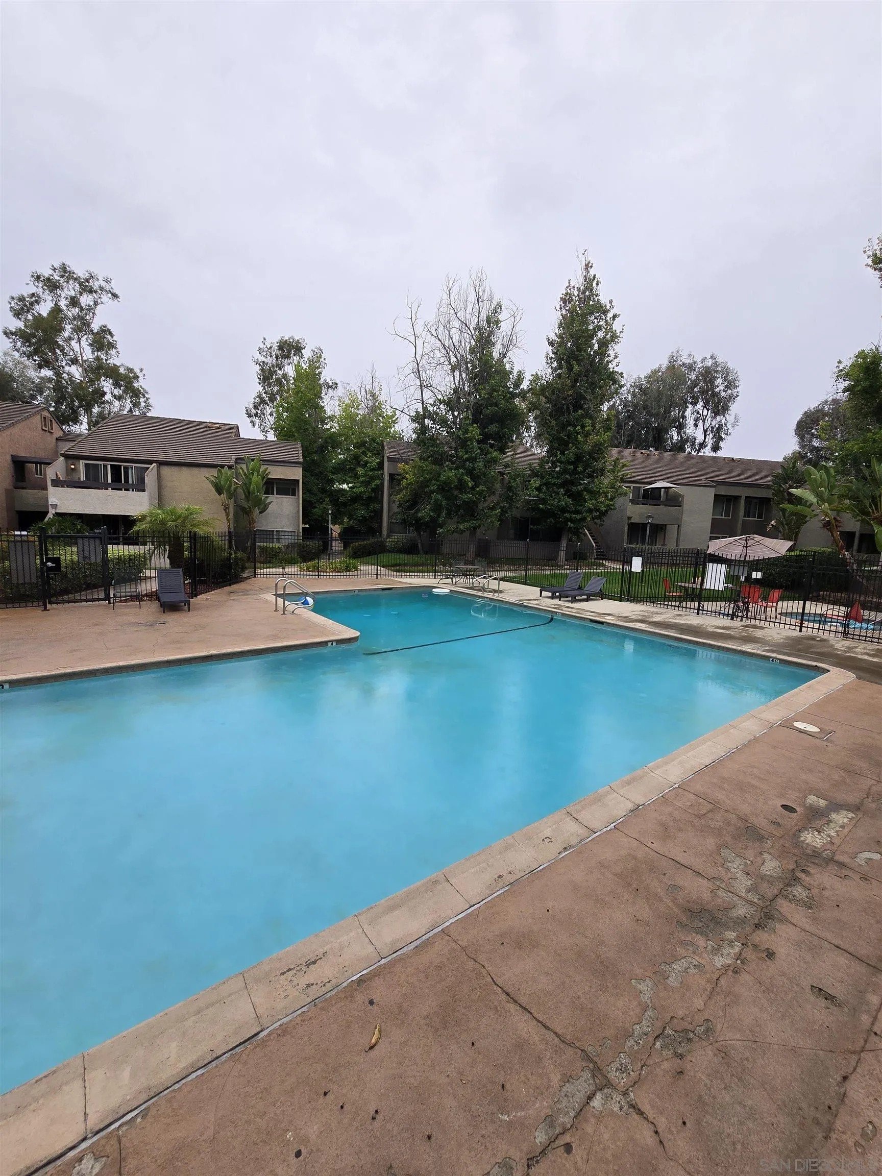 Value Range $375,000 - $400,000. Well-maintained 2BR/1BA upstairs condo in a welcoming, family-friendly community featuring soaring vaulted ceilings, dual-pane windows, and abundant natural light. The spacious living room opens to a private patio overlooking the greenbelt and pool, with an open dining area highlighted by a chandelier. The kitchen includes granite countertops, stainless steel appliances, and rich wood cabinetry. The primary bedroom offers vaulted ceilings, a ceiling fan, mirrored closet doors, and carpet in good condition, while the second bedroom also has high ceilings and mirrored closet doors. The hall bath is finished with granite and matching cabinetry. Community amenities include a pool, spa, tennis court, clubhouse, playground, and common laundry facilities. Two assigned parking spaces are located within the gated community. Close to shopping, dining, schools, and freeway access, this condo is move-in ready and ideal as a starter home or as an excellent rental investment.