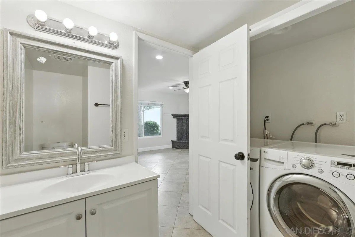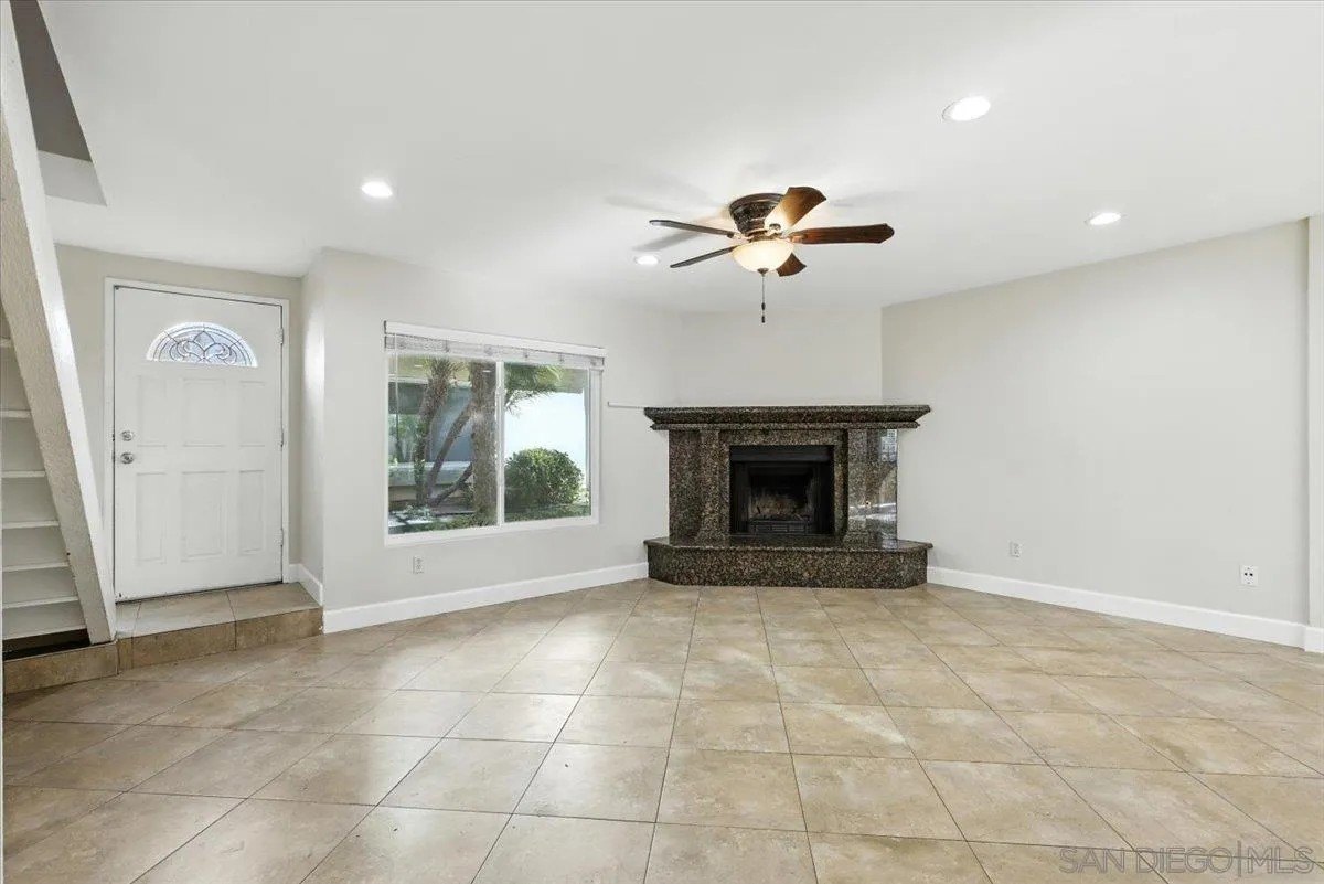 Welcome to this beautifully updated two-story condo offering 3 bedrooms, 1.5 bathrooms, and 1,302 square feet of living space in the heart of El Cajon. Step inside and you'll immediately notice the spacious layout and thoughtful upgrades that make this home truly move-in ready! The first floor features tile flooring throughout, modern recessed lighting, and a cozy gas fireplace that creates a warm and inviting living space. A roomy half bath with in-unit laundry adds convenience, while the large kitchen is equipped with brand-new appliances, ample cabinetry, and a pantry-style storage nook, perfect for additional organization. Upstairs, you'll find three generously sized bedrooms, each with laminate flooring, recessed lighting, and mirrored closet doors that maximize light and space. The centrally located full bathroom is easily accessible from each bedroom. Recent improvements include fresh interior paint, new baseboards, and dual pane windows throughout, providing energy efficiency, noise reduction, and modern comfort. For parking, enjoy one assigned space (#25) along with a private one-car garage that has separate rear access for added convenience. The community provides great value with an HOA of $330/month, which covers water, trash, sewer, common area maintenance, and gated access. The complex is also FHA and VA approved, making it accessible for a wider range of buyers. Ideally situated near shopping, dining, schools, and freeway access, this condo offers comfort, functionality, and affordability all in one!
