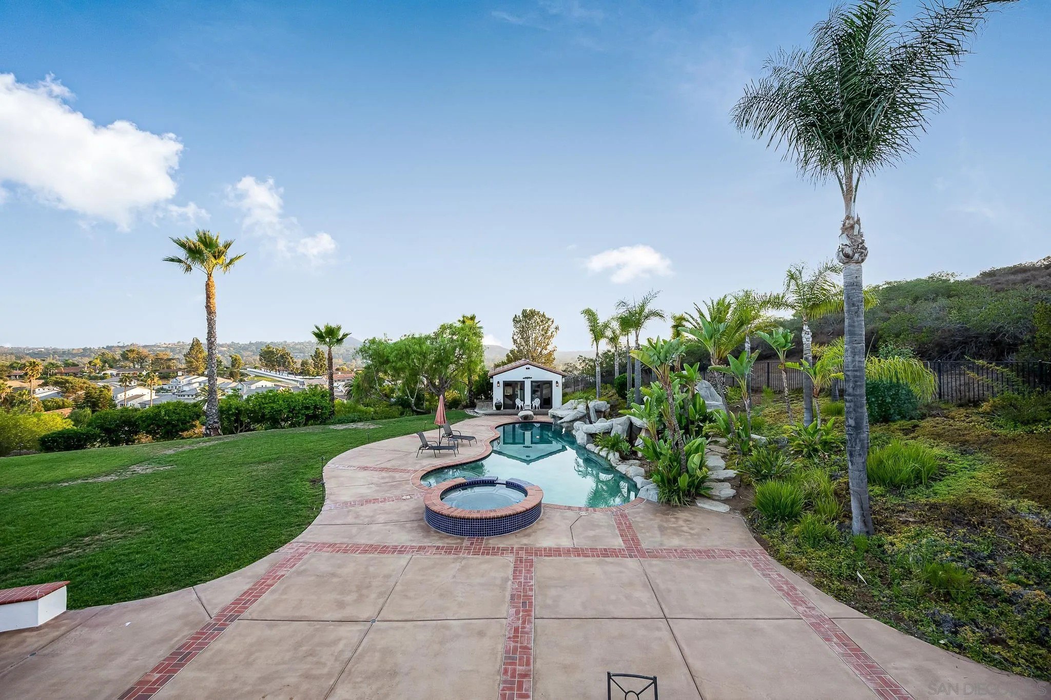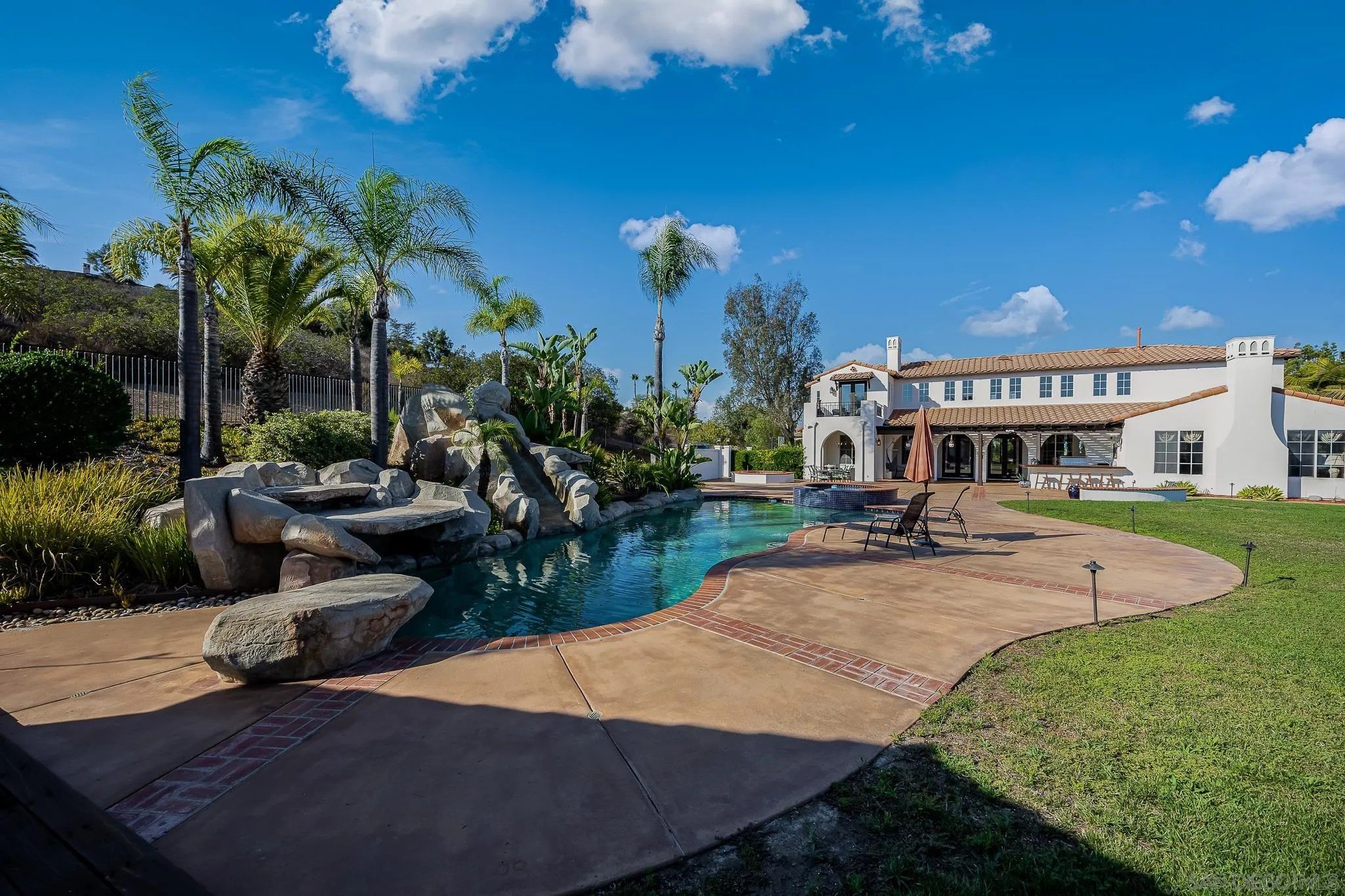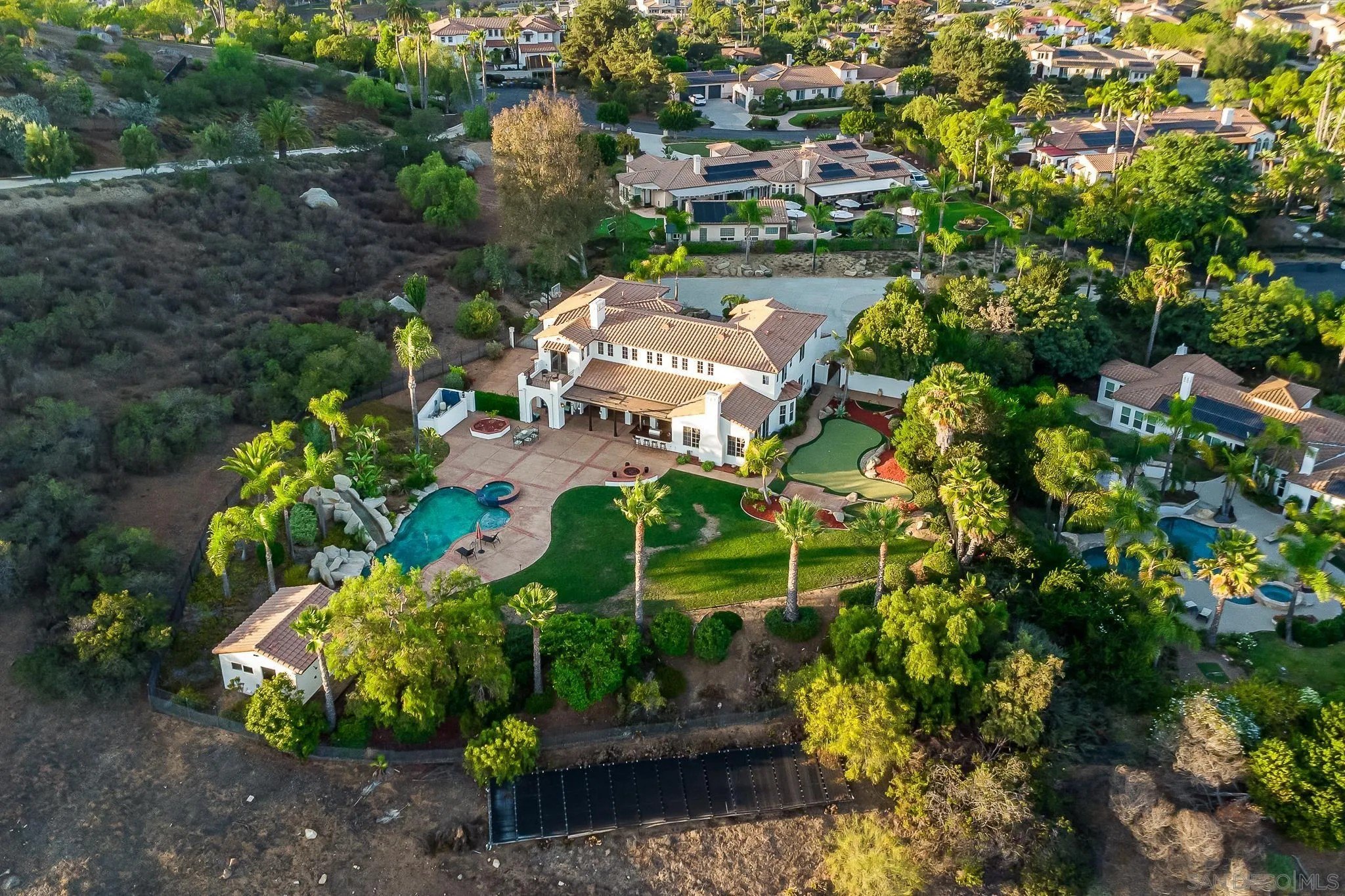 Set within the coveted Old Coach Collection, this stunning estate sits on one of the community's largest lots-3.21 acres-with sweeping panoramic views. A tree-lined drive and fountain courtyard create a dramatic welcome, leading to a grand entry with soaring ceilings and light-filled living spaces. The main residence offers 4 bedrooms, 5.5 baths, a private office, bonus/exercise room, and upstairs loft. The chef's kitchen impresses with Thermador appliances, quartz countertops, custom cabinetry, and a breakfast nook, flowing seamlessly into the spacious family room with fireplace and hardwood floors. Upstairs, the primary suite is a true retreat with its own fireplace, private balcony, and spa-inspired bath. Designed for entertaining, the backyard is a resort-style escape with pool and slide, spa, putting green, built-in BBQ, fire pit, and expansive lawn. A detached 320 sq. ft. casita adds versatility with its own bedroom, bath, kitchenette, sauna, and indoor/outdoor showers. Blending modern luxury with everyday comfort, this property offers an exceptional lifestyle in one of the area's most sought-after enclaves.