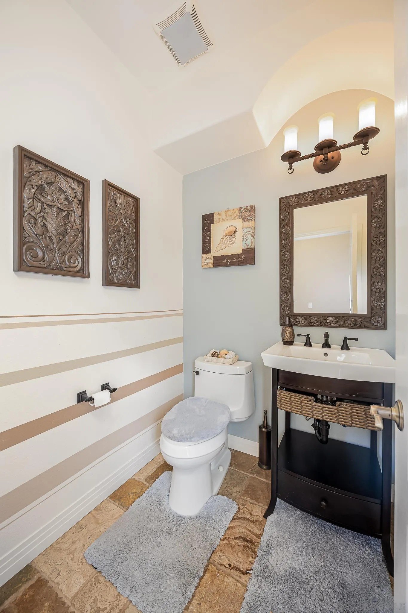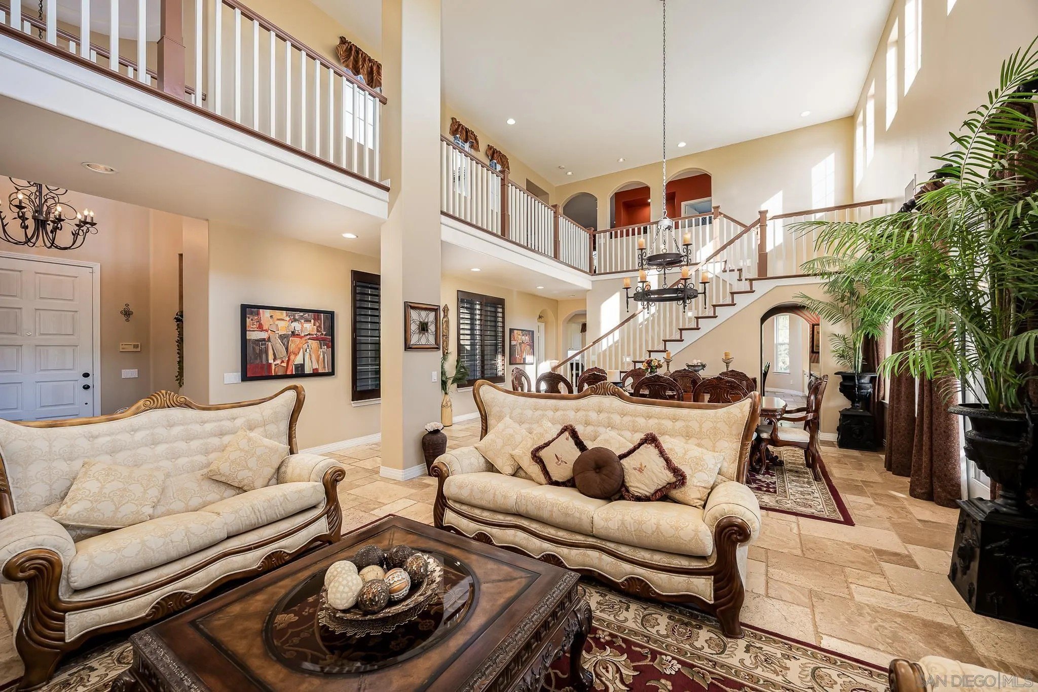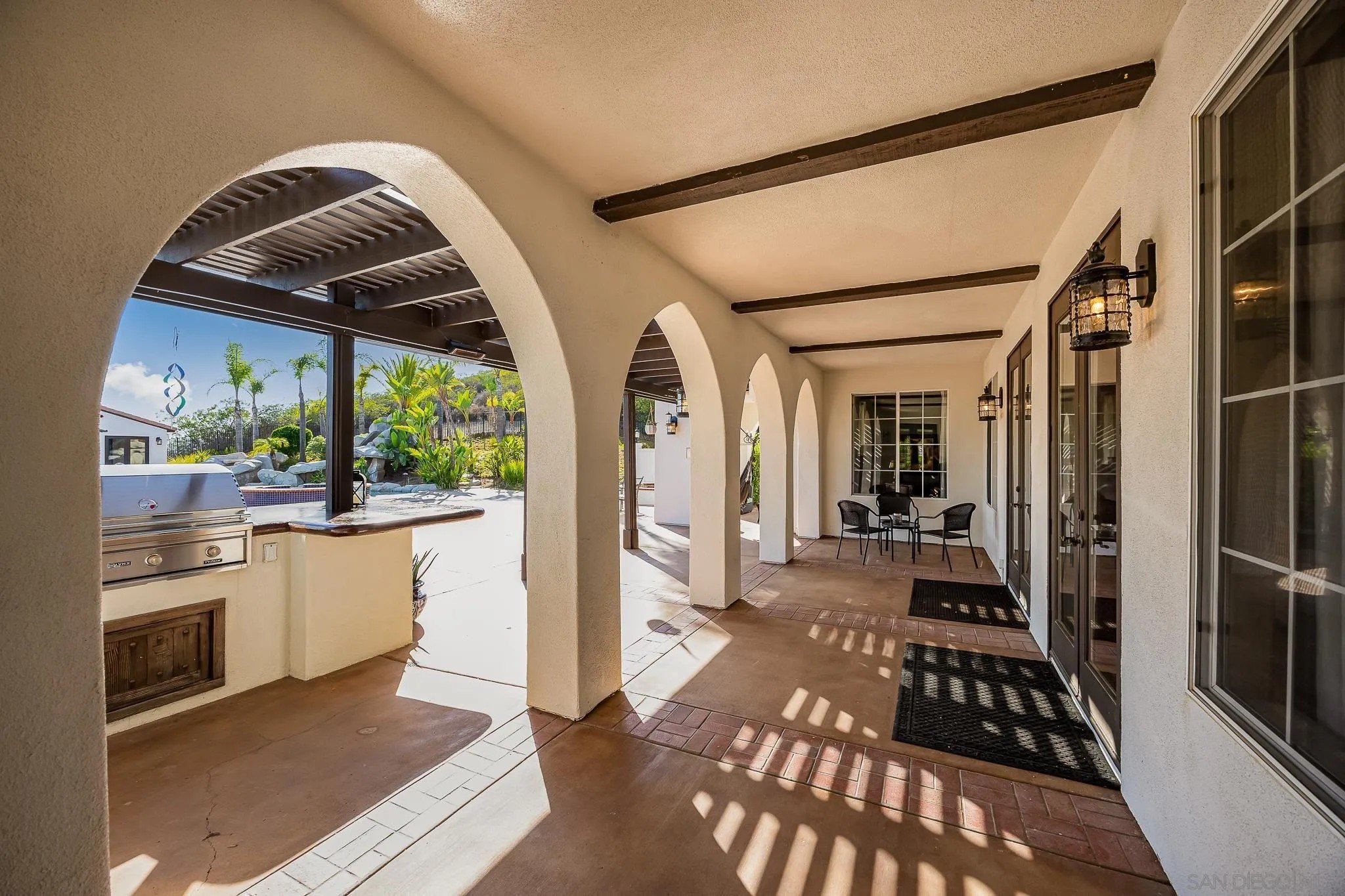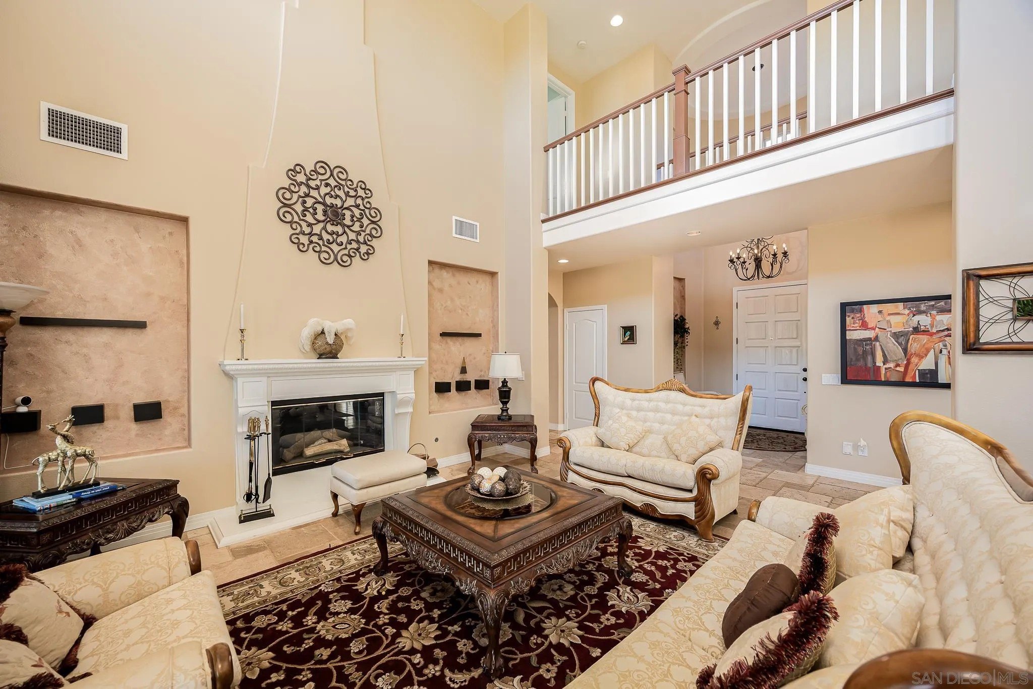 Set within the coveted Old Coach Collection, this stunning estate sits on one of the community's largest lots-3.21 acres-with sweeping panoramic views. A tree-lined drive and fountain courtyard create a dramatic welcome, leading to a grand entry with soaring ceilings and light-filled living spaces. The main residence offers 4 bedrooms, 5.5 baths, a private office, bonus/exercise room, and upstairs loft. The chef's kitchen impresses with Thermador appliances, quartz countertops, custom cabinetry, and a breakfast nook, flowing seamlessly into the spacious family room with fireplace and hardwood floors. Upstairs, the primary suite is a true retreat with its own fireplace, private balcony, and spa-inspired bath. Designed for entertaining, the backyard is a resort-style escape with pool and slide, spa, putting green, built-in BBQ, fire pit, and expansive lawn. A detached 320 sq. ft. casita adds versatility with its own bedroom, bath, kitchenette, sauna, and indoor/outdoor showers. Blending modern luxury with everyday comfort, this property offers an exceptional lifestyle in one of the area's most sought-after enclaves.