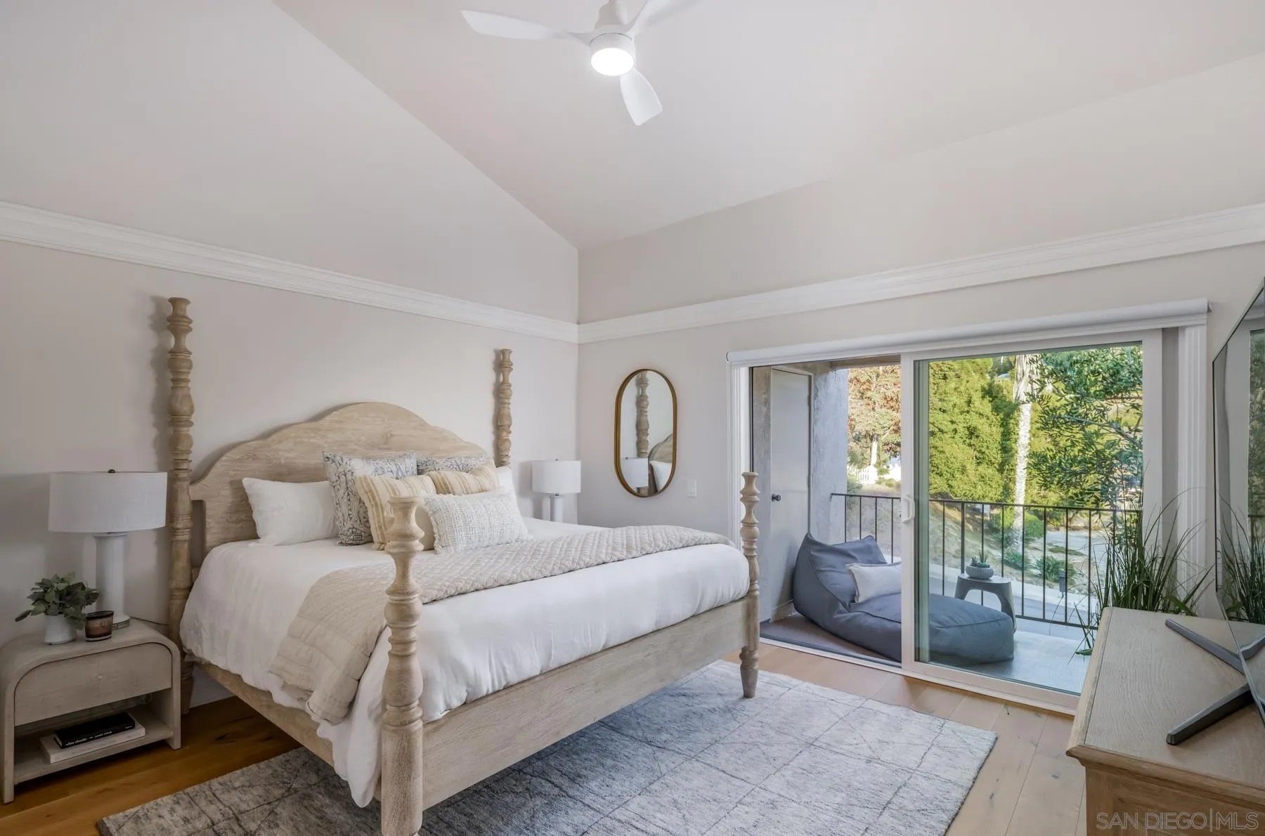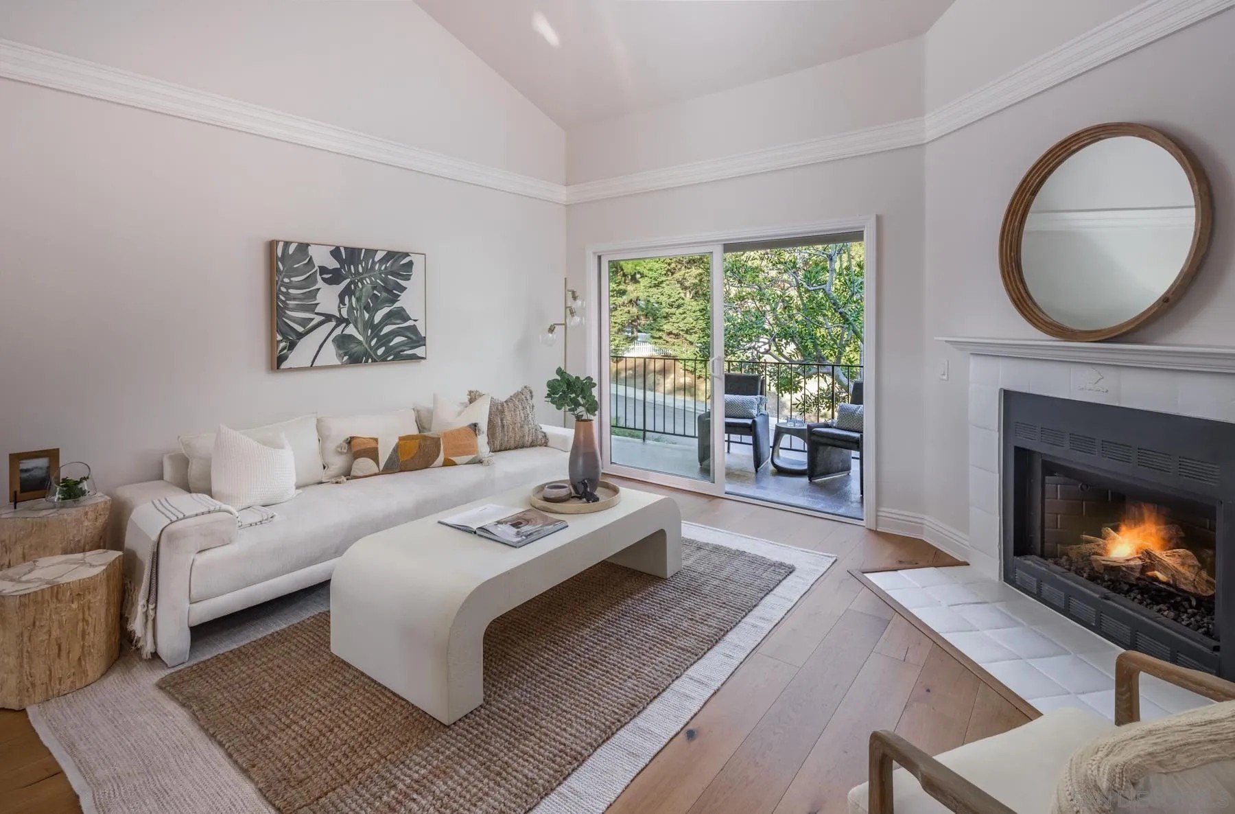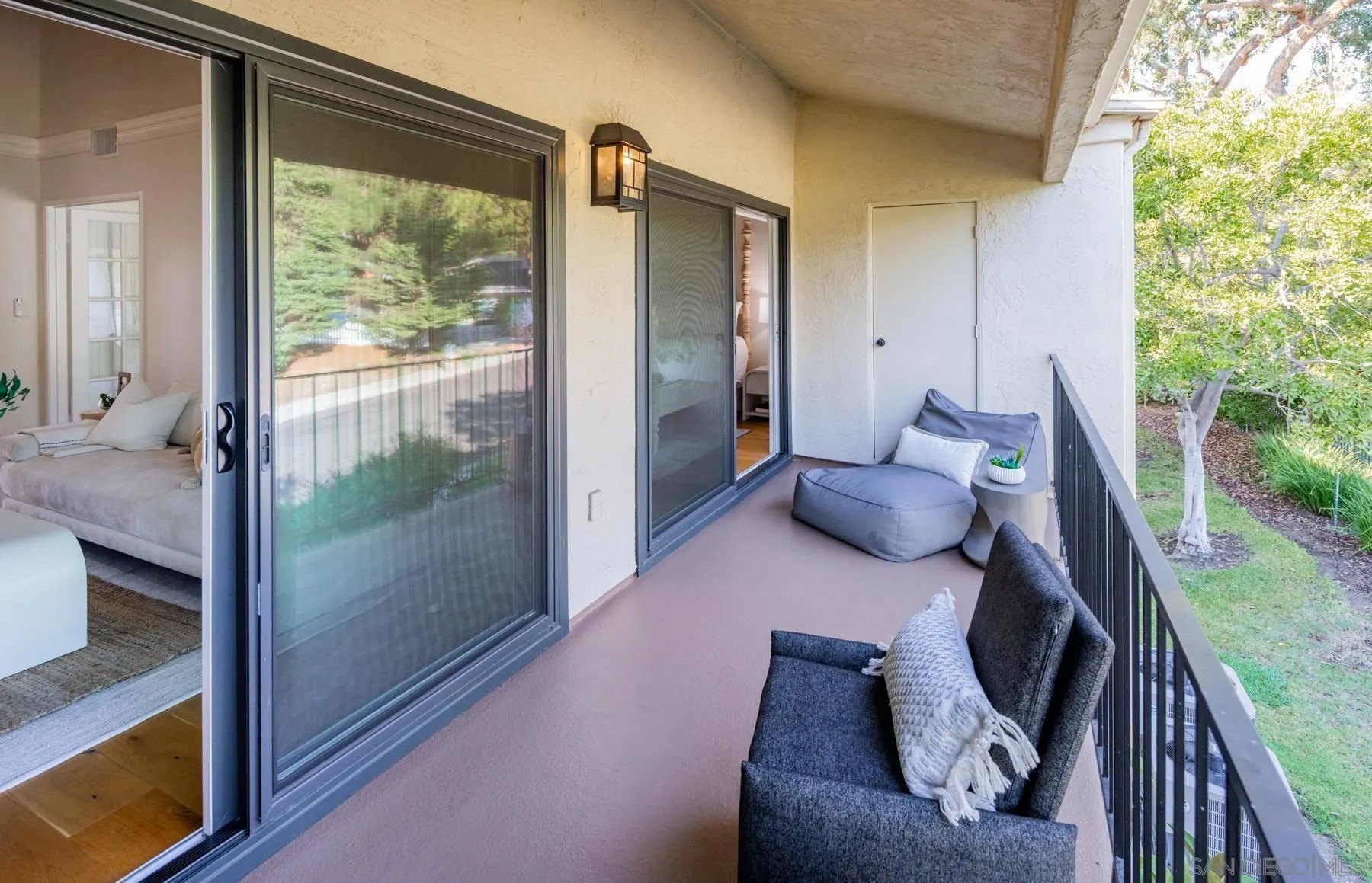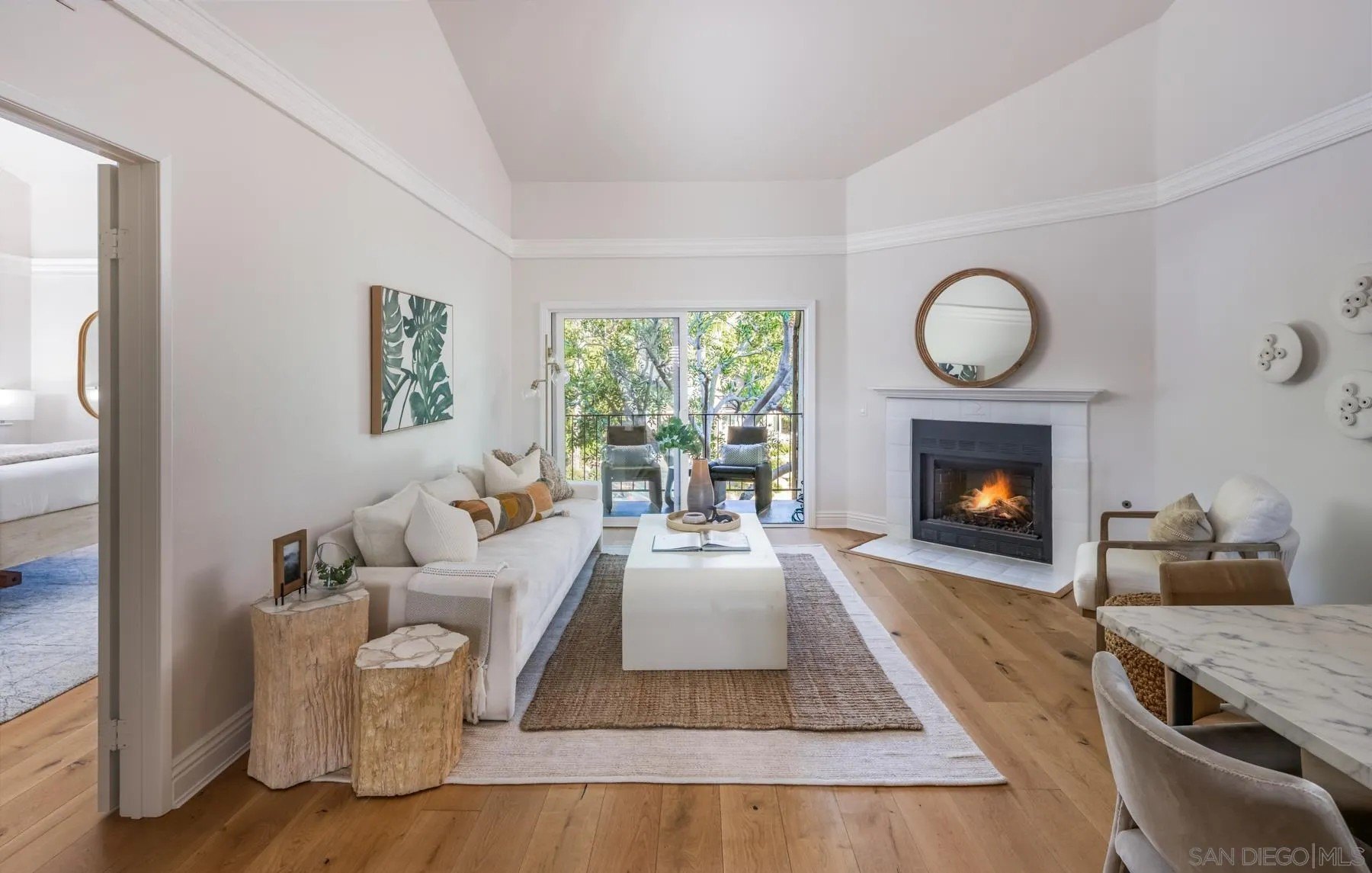 Modern La Costa Retreat! First time on the market, this 2 bed, 2 bath upstairs residence shows true pride of ownership and has been extensively updated over time to create a modern, move-in ready home. The open floor plan features vaulted ceilings, wide-plank white oak wood floors, and a sleek fireplace, with seamless access to an oversized patio from the main living areas. The primary suite offers a walk-in closet with custom built-ins and a skylit bathroom with wainscoting and polished nickel finishes, blending functionality with timeless style. A well-separated secondary bedroom and full bath complete the layout, providing privacy for both suites. Upgrades include dual-pane windows, new LG French door refrigerator, stackable LG washer and dryer, new A/C condenser and ceiling fans, an induction cooktop, convection oven with warming drawer, and smart thermostat. The home also comes with a one-car garage and a dedicated parking space. Sea Point Tennis Club offers resort-style amenities with two pools, three spas, and four tennis courts, all within a beautifully maintained community. Just minutes from top-rated schools, golf, shopping, dining, hiking trails, and the beach. This home blends modern living with the best of La Costa's coastal lifestyle!