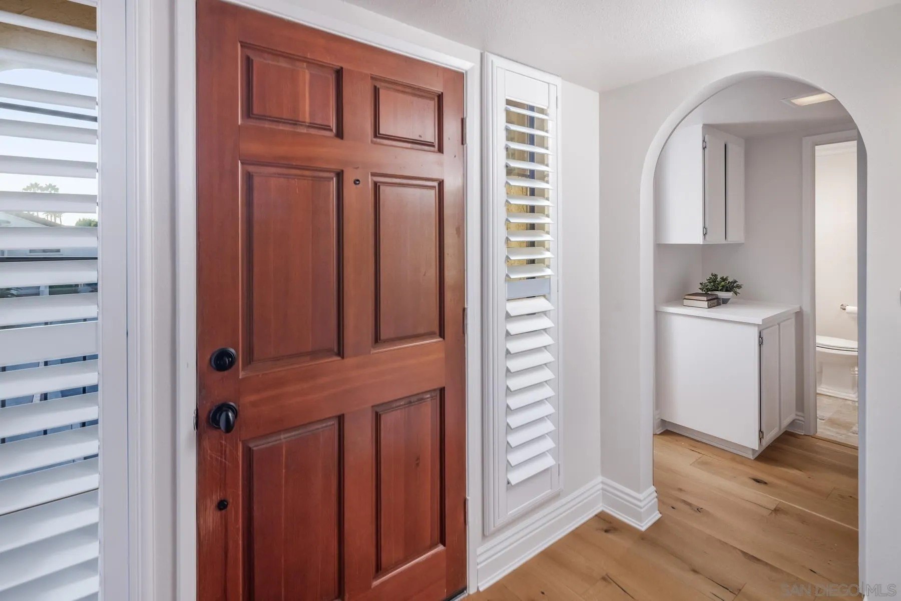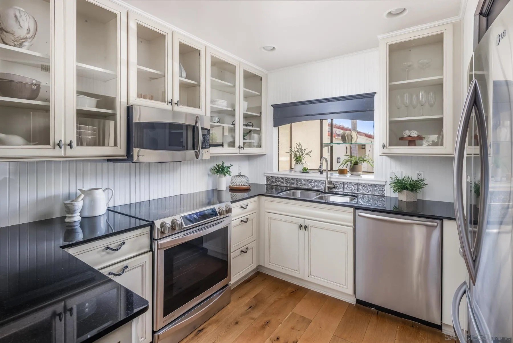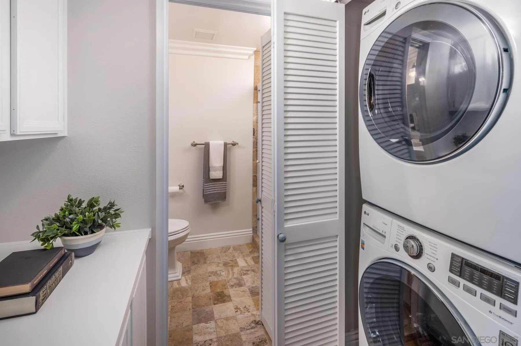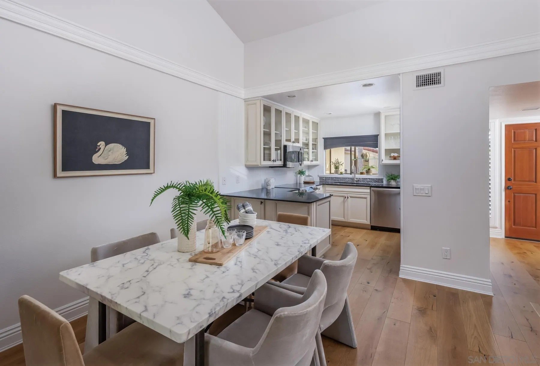 Modern La Costa Retreat! First time on the market, this 2 bed, 2 bath upstairs residence shows true pride of ownership and has been extensively updated over time to create a modern, move-in ready home. The open floor plan features vaulted ceilings, wide-plank white oak wood floors, and a sleek fireplace, with seamless access to an oversized patio from the main living areas. The primary suite offers a walk-in closet with custom built-ins and a skylit bathroom with wainscoting and polished nickel finishes, blending functionality with timeless style. A well-separated secondary bedroom and full bath complete the layout, providing privacy for both suites. Upgrades include dual-pane windows, new LG French door refrigerator, stackable LG washer and dryer, new A/C condenser and ceiling fans, an induction cooktop, convection oven with warming drawer, and smart thermostat. The home also comes with a one-car garage and a dedicated parking space. Sea Point Tennis Club offers resort-style amenities with two pools, three spas, and four tennis courts, all within a beautifully maintained community. Just minutes from top-rated schools, golf, shopping, dining, hiking trails, and the beach. This home blends modern living with the best of La Costa's coastal lifestyle!