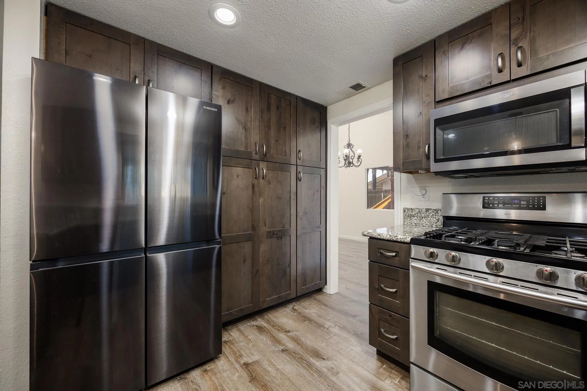 Tucked away on a quiet cul-de-sac, this 4 bed 3 full bath 1,691 sq ft fully remodeled home offers modern comfort and thoughtful upgrades throughout. Inside, you'll find both a spacious living room with vaulted ceilings which add an airy, open feel, as well as a cozy family room with built-in speakers perfect for relaxing or entertaining. The beautifully updated kitchen features newer Alder wood cabinets with convenient pull-out shelves with ample pantry storage, plus beautiful SilverFalls granite countertops. Enjoy year-round comfort with central A/C and heat, a wood burning fireplace, and a whole house fan. The versatile layout includes a downstairs bedroom and full bathroom, ideal for guests or multigenerational living. Step outside to a low-maintenance backyard with newly installed turf, RV parking with a dedicated 110 voltage/30 amp outlet, and an outdoor shed with power, previously used as a home office. The home also offers an enclosed patio giving flexibility with space. This move-in ready home checks all the boxes!