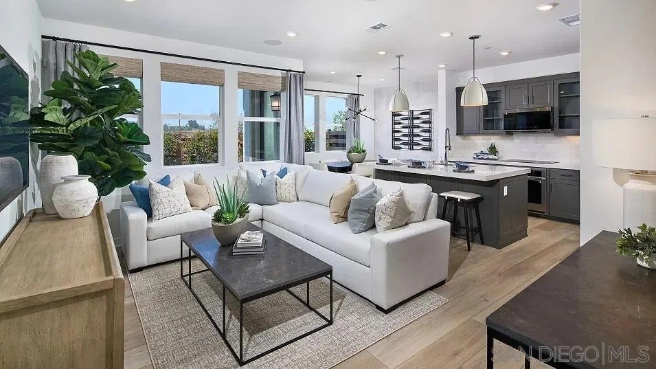This new two-story home features a modern and spacious layout. On the first level, an inviting open floorplan combines the kitchen with the living and dining areas. Three bedrooms can be found upstairs, including the luxe owner's suite, complete with a private bathroom and generous walk-in closet. Guest parking close by. Radius is a new collection of attached homes now selling at the master-planned community of The Hill District in San Marcos, CA. Homeowners will enjoy access to great future amenities, such as a recreation center, sparkling swimming pool, parks and trails. It also enjoys a great north county location close to freeways for easy commutes, local shops, eateries and entertainment.