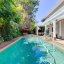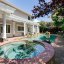 Step into a world of timeless elegance and masterful craftsmanship in this immaculate Poway Oasis. This home is a true work of art, meticulously designed for the discerning homeowner. The exterior enchants with flourishing Boston ivy, evoking the classic charm of a New England estate. Inside, an elegant floor plan flows seamlessly from one captivating space to the next, each revealing custom details and high-end finishes. A carved mahogany front door welcomes you into a grand two-story foyer featuring a custom staircase with wrought-iron balusters and wainscoting. As you move through the living room, you'll discover an intimate retreat with a quaint wood-burning stove and equipped with a Bose surround sound for a truly immersive experience. French doors lead out to reveal the incredible backyard oasis, a shimmering pool and spa are surrounded by a patio paved with classic brick pavers and lush, meticulously maintained landscaping. A covered lounge area provides the perfect setting for relaxation. In the kitchen, you'll find a stunning black apron sink and contrasting black leather granite countertops, perfectly set against crisp white cabinetry and a mosaic stone backsplash, while plantation shutters allow for natural light to flood the room. The upper level is dedicated to rest and rejuvenation, featuring four well-appointed bedrooms. The primary suite is a true sanctuary, and a unique feature of this home is the second bedroom's ensuite bath, providing the versatility of a junior primary suite. This home is more than a residence; it's an experience of sophistication.