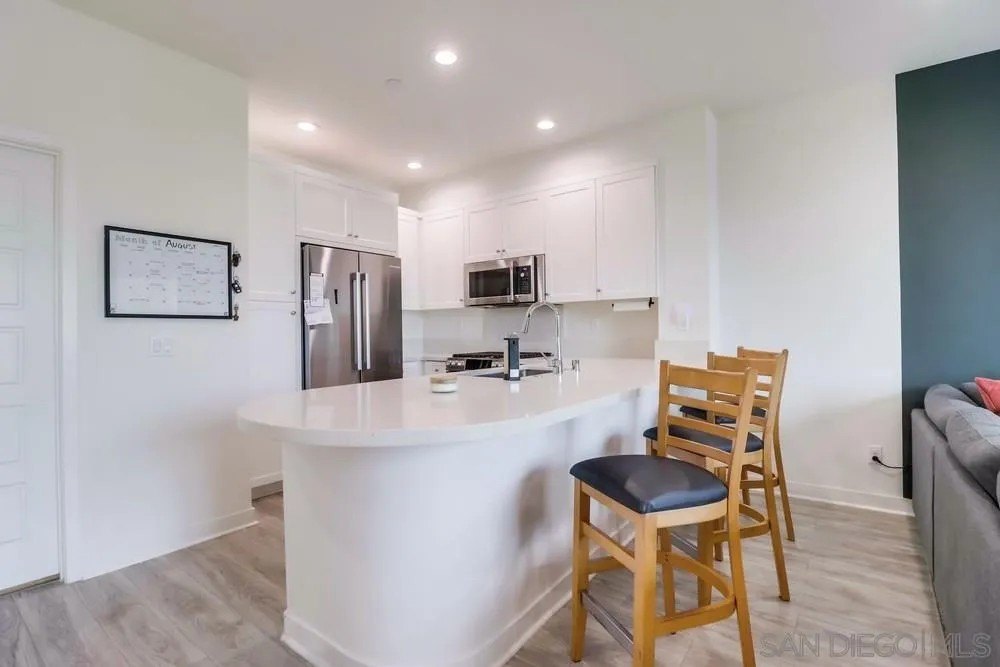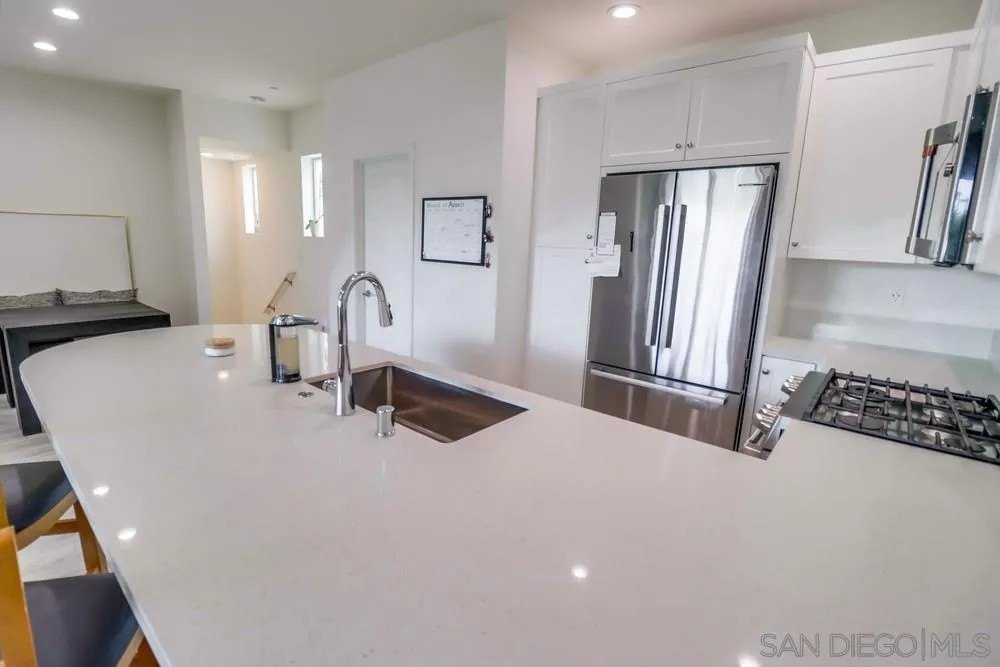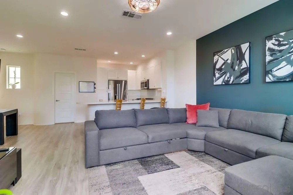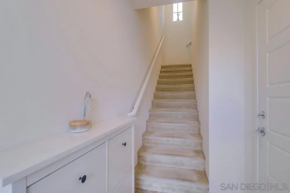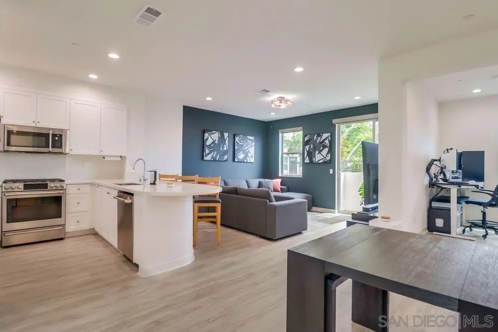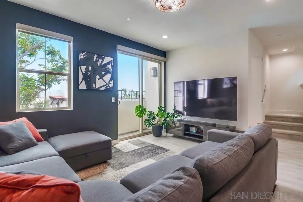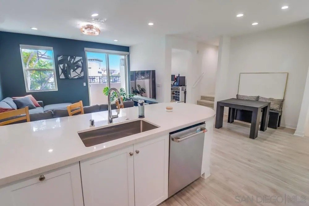Stunning tri-level townhouse features 2 Beds, 2.5 baths, an office, and an open floor plan that seamlessly connects living, dining, and kitchen areas. Upgrades includes Paid Solar, white shaker cabinetry, the stainless steel appliances, oversize white quartz center island with large vinyl neutral vinyl planks throught out and designer paint. Home includes a convenient 2-car side-by-side garage, tankless water heater and modern finishes throughout. Perfectly located with easy freeway access, you'll be minutes from shopping centers, restaurants, and diverse dining options. Downtown San Diego, iconic landmarks like Balboa Park, and world-famous beaches including Mission Beach and La Jolla are all just 20 minutes away. Experience the best of San Diego living with modern comfort and unbeatable convenience to everything America's Finest City has to offer. Welcome Home.