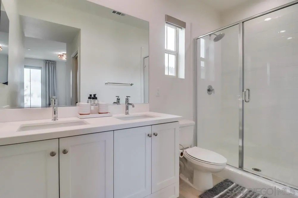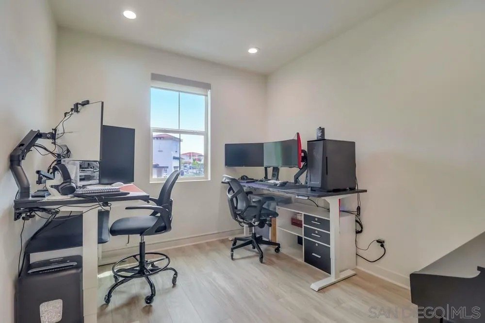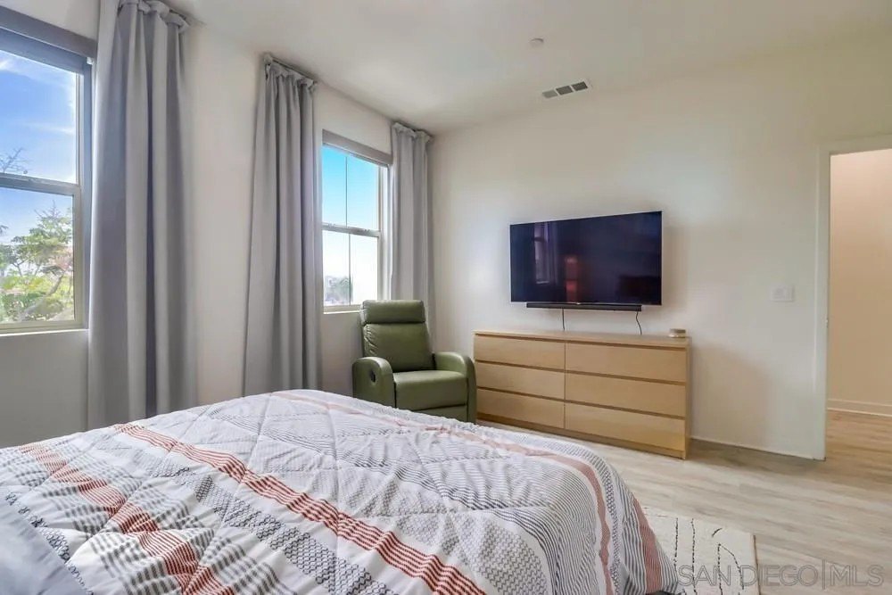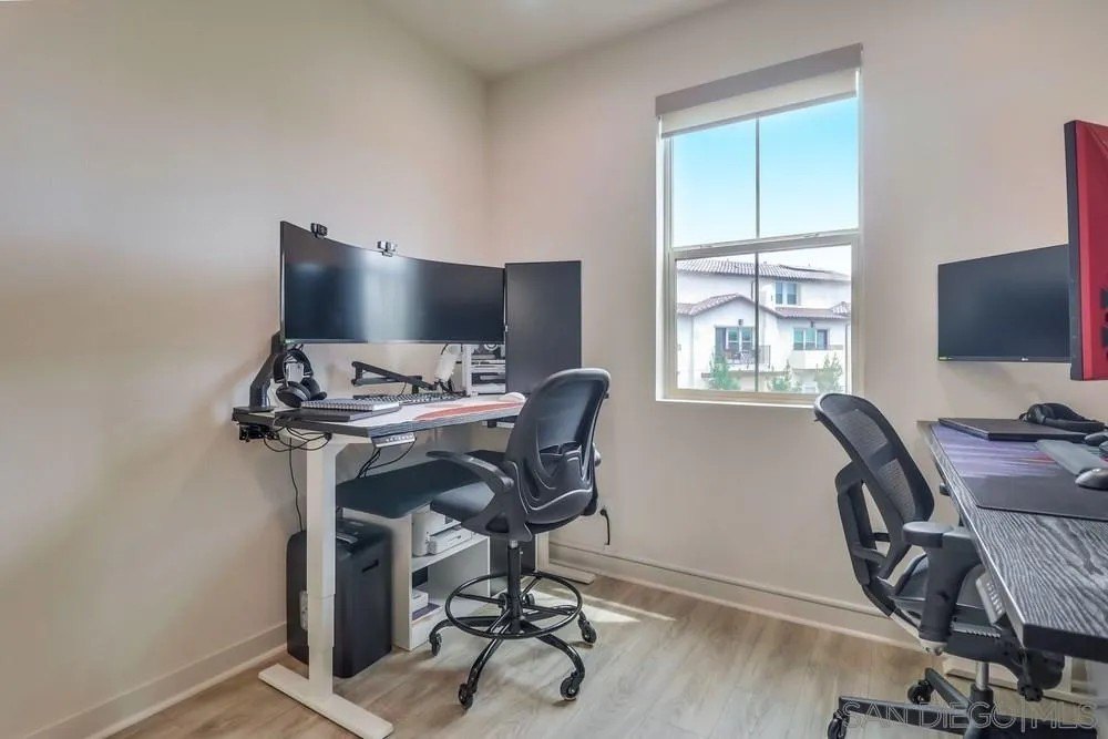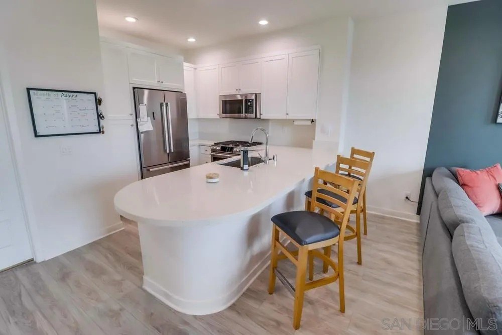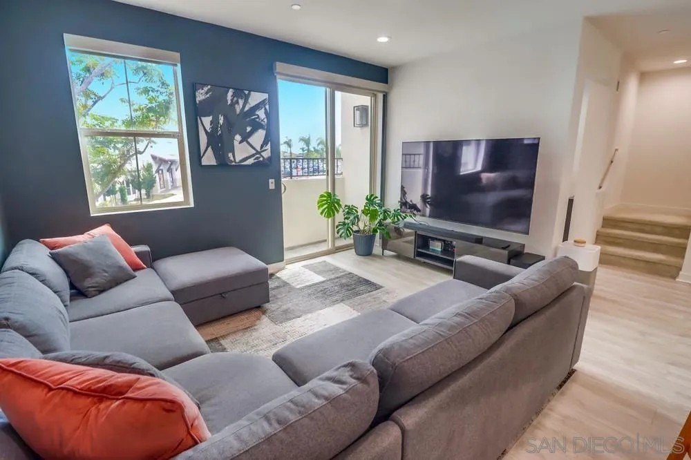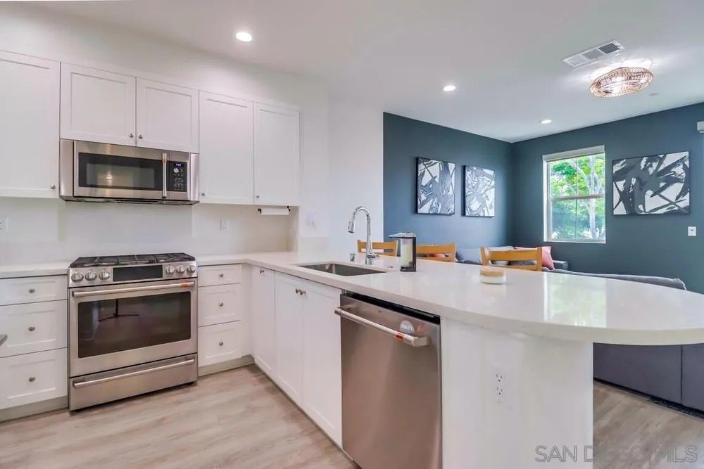 Stunning tri-level townhouse features 2 Beds, 2.5 baths, an office, and an open floor plan that seamlessly connects living, dining, and kitchen areas. Upgrades includes Paid Solar, white shaker cabinetry, the stainless steel appliances, oversize white quartz center island with large vinyl neutral vinyl planks throught out and designer paint. Home includes a convenient 2-car side-by-side garage, tankless water heater and modern finishes throughout. Perfectly located with easy freeway access, you'll be minutes from shopping centers, restaurants, and diverse dining options. Downtown San Diego, iconic landmarks like Balboa Park, and world-famous beaches including Mission Beach and La Jolla are all just 20 minutes away. Experience the best of San Diego living with modern comfort and unbeatable convenience to everything America's Finest City has to offer. Welcome Home.
