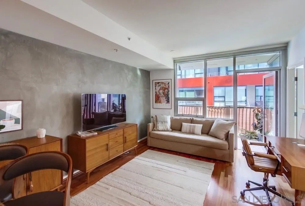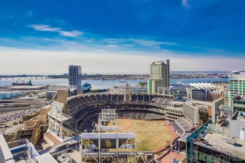 Welcome to ICON in East Village, where sophisticated urban living meets exceptional convenience. This chic 1-bedroom, 1-bathroom condo, covering 621 square feet, is a showcase of contemporary elegance. Experience the contemporary charm of exposed concrete walls and expansive windows that flood the space with natural light. The kitchen boasts stainless steel appliances and sleek granite countertops, complemented by rich wood floors. With an in-unit washer/dryer and a private balcony offering stunning city views, comfort is at your fingertips. ICON's HOA provides a well-rounded lifestyle with unparalleled amenities, including a deluxe full-size gym. Enjoy high-speed fiber optic WiFi, excellent service, and management available 24/7, with the only external bill being your electric bill. Unique to ICON, residents have access to one of only two skyboxes in downtown San Diego-a coveted feature that others pay memberships for, included in your living experience here. Just one street crossing away, the entrance to the marina and luxurious waterfront restaurants, including the Hyatt, Marriott, Hiltons, and Seaport Village, await. This rare opportunity offers a resort-style experience right in your backyard, less than five minutes away. Embrace luxurious city living at its finest. Welcome home!