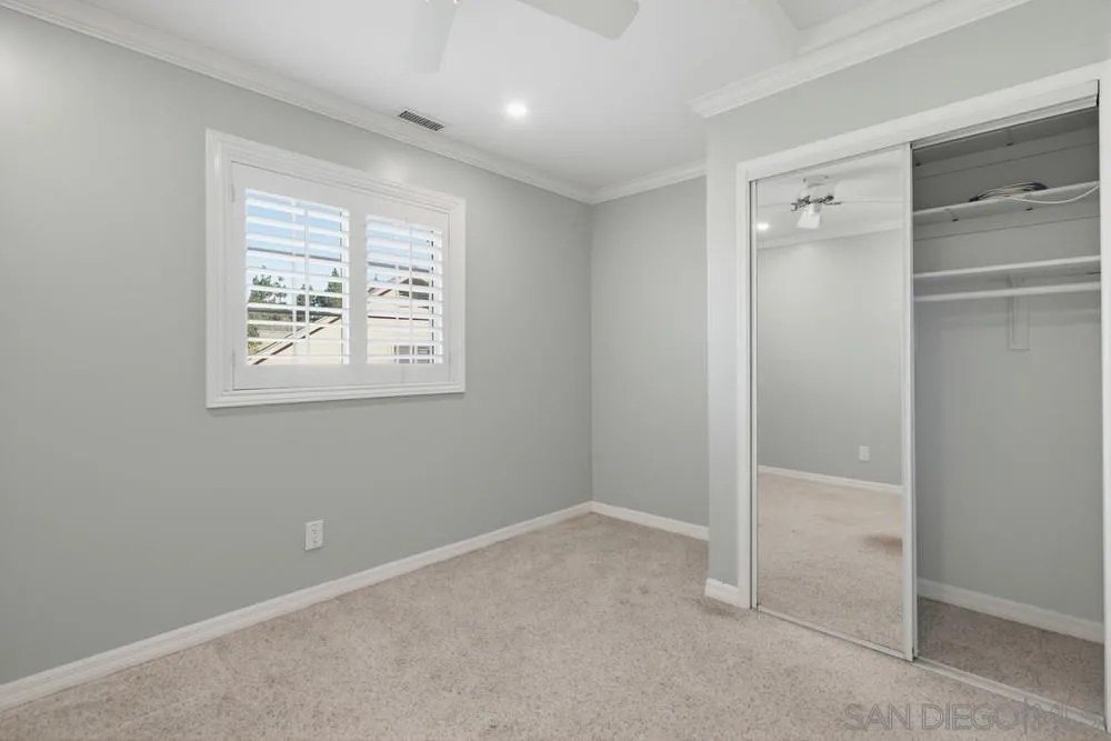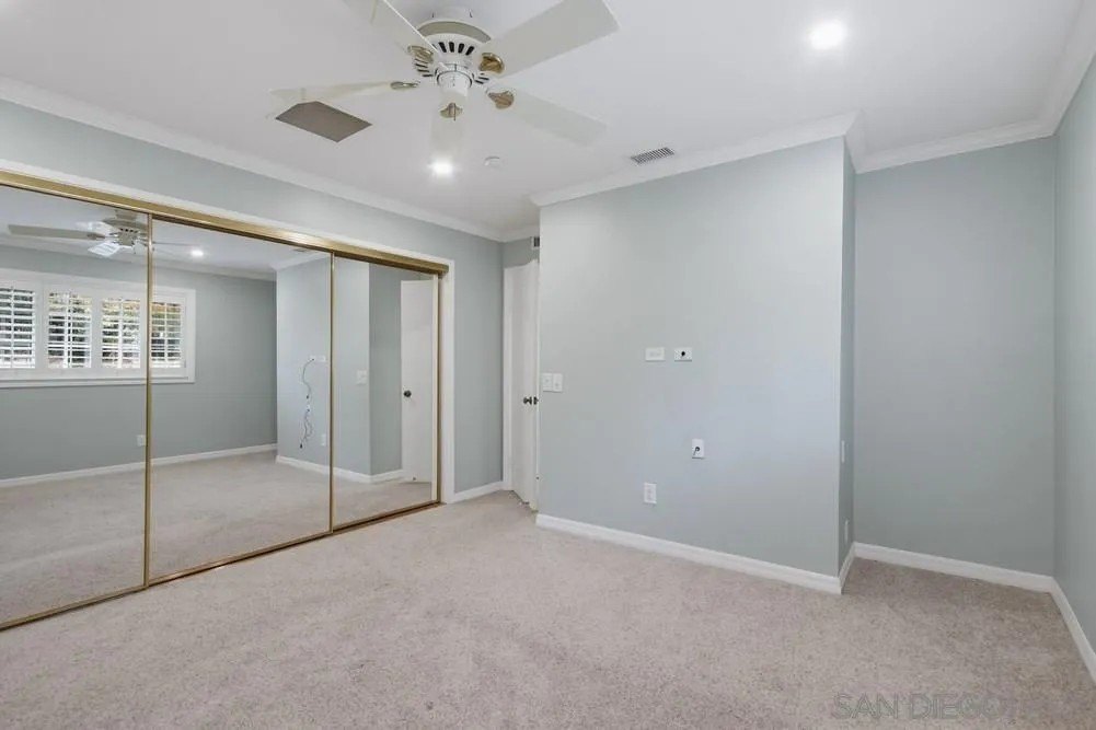 Priced to sell quickly! Incredible opportunity to buy below market. Motivated seller. Stunning 4-bedroom residence with a 5th bedroom option currently used as a home office, perfect for growing families. This thoughtfully designed home offers the choice of a spacious primary bed on the first floor for convenient single level living or the second story for added privacy and elevated views. Step inside to soaring vaulted ceilings that create an open, airy ambiance throughout the main living areas. The gourmet kitchen is a chef's dream, featuring sleek newly upgraded stainless-steel appliances, luxurious granite countertops and elegant crown molding that adds a touch of sophistication. Durable plank flooring flows seamlessly throughout main entertaining areas, blending style with easy maintenance. Mature manicured landscaping, fruit trees and 2 separate fenced in areas is perfect for securing family pets. Tesla solar system secures your quality of living, energy conservation and cost savings. Nestled in a desirable walking neighborhood, close to Carmel Mountain shopping & prestigious public school system, this property combines modern amenities with customizable options to suit your lifestyle. Reverse osmoses water system that services both Sink & Fridge. Enjoy the fruits of your labor with a tasteful fully fenced in yard made up of a variety of fruit trees. You will appreciate the park like setting tranquil yard space.