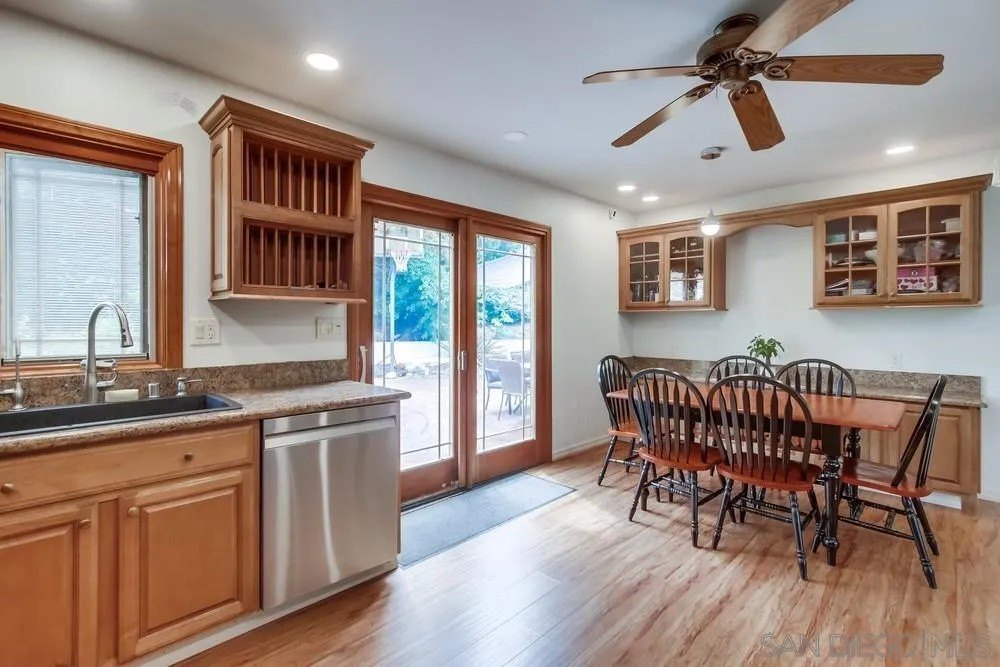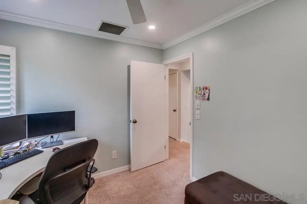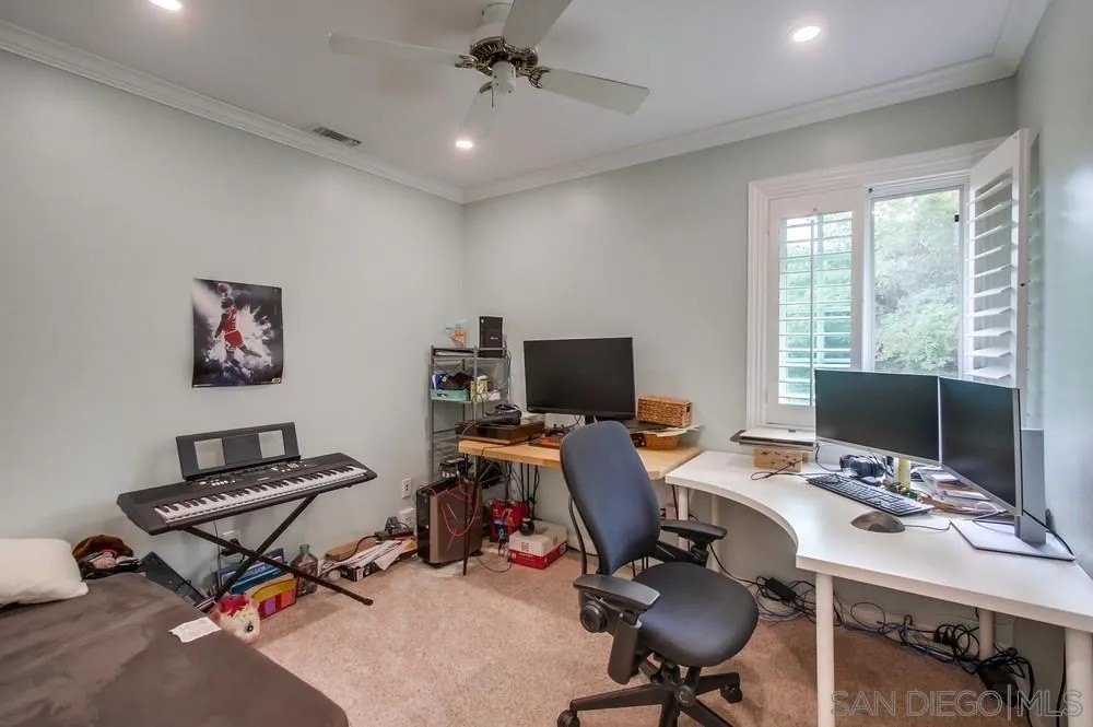 Priced to sell quickly! Stunning 4-bedroom residence with a 5th bedroom option currently used as a home office, perfect for growing families or those seeking versatile living spaces. This thoughtfully designed home offers the choice of a spacious master suite on the first floor for convenient single level living or the second story for added privacy and elevated views. Step inside to soaring vaulted ceilings that create an open, airy ambiance throughout the main living areas. The gourmet kitchen is a chef's dream, featuring sleek newly upgraded stainless-steel appliances purchased in 2022, luxurious granite countertops and elegant crown molding that adds a touch of sophistication. Durable plank flooring flows seamlessly throughout main entertaining areas, blending style with easy maintenance. Mature manicured landscaping, fruit trees and 2 separate fenced in areas is perfect for securing family pets. Tesla solar system with battery backup secures your quality of living, energy conservation and cost savings. Nestled in a desirable walking neighborhood, close to Carmel Mountain shopping & prestigious public school system, this property combines modern amenities with customizable options to suit your lifestyle. Reverse osmoses water system that services both Sink & Fridge. Enjoy the fruits of your labor with a tasteful yard made up of: Persimmon, apricot, cherry blossom, kumquat, lemon guava, strawberries, blackberries, tangerine and a Meyer lemon Don't miss the opportunity to make this your dream home!
