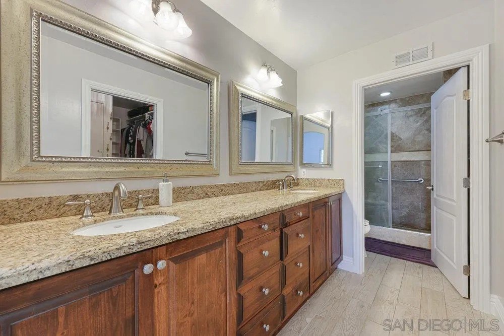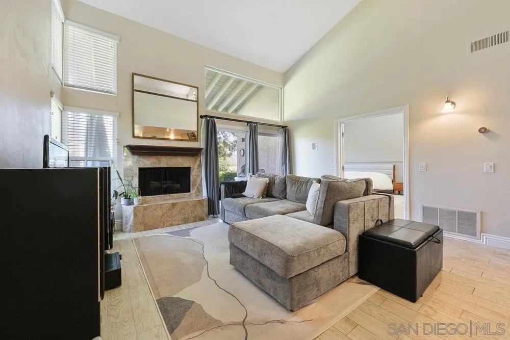 Beautiful, highly upgraded home located in one of the best locations in the prestigious Stoneridge Chateaus Community. The Living room offers a comfortable and open feeling with the vaulted ceilings. Features whitewashed tile flooring, high-efficiency windows, arch-top paneled doors, crown molding, recessed lighting, several built in cabinets that match the kitchen and bathroom cabinets. Upgraded YORK HVAC system, and vaulted ceilings in the master and family room. Newly interior paint throughout the home with upgraded bathrooms with custom vanities, an upgraded shower with granite counter tops. Well equipped upgraded kitchen with granite countertops and stainless steel appliances, beautiful wood cabinetry, tumble stone tile backsplash, wet bar with a wine refrigerator. Kitchen flows seamlessly into the inviting living and dining areas, perfect for relaxation and entertaining. This model has the large upstairs bonus room/loft that would be perfect for an office, playroom, media room, or for guests. Cozy large private patio that overlooks the greenbelt/agriculture section and nature trail of the new "Farm" in Poway development. Also features a 1.5 car attached garage, with storage cabinets, a workbench, and a full washer and dryer. Great restaurants shopping and freeways nearby and located in the acclaimed Poway School District.