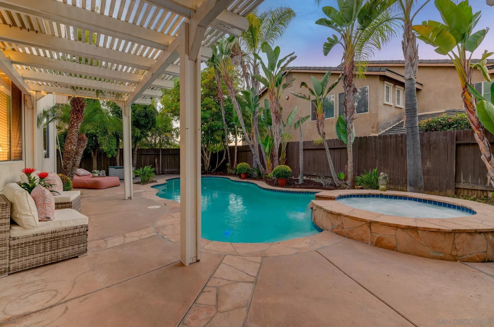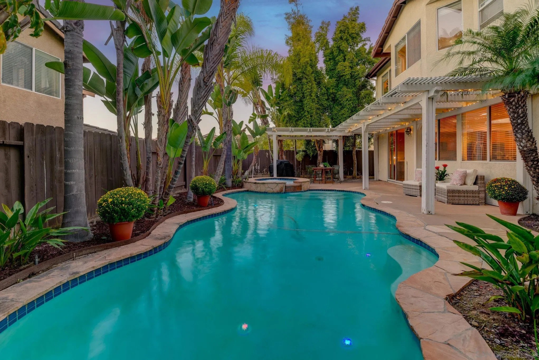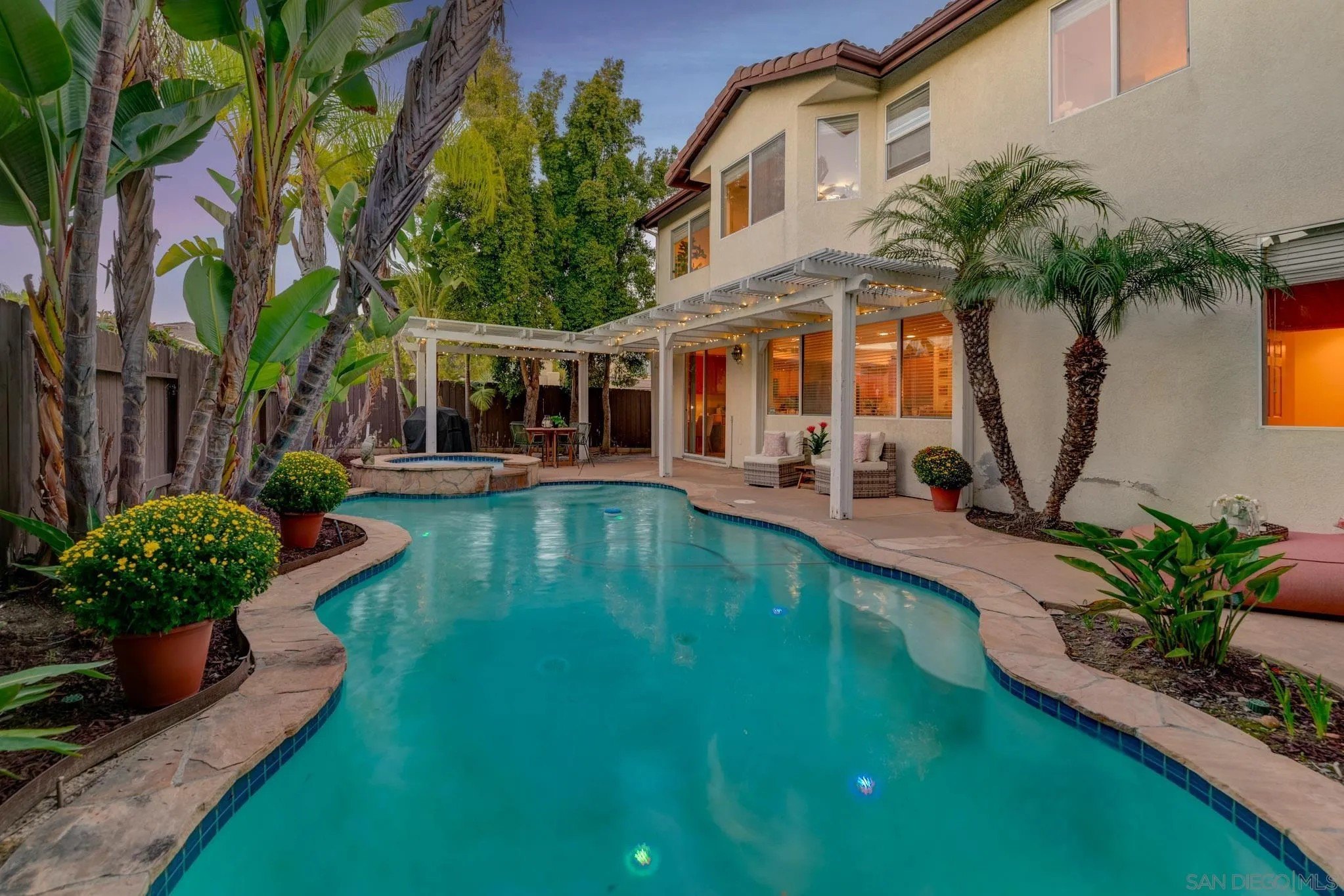 Welcome to this spacious 5-bedroom, 3-bath home with 3,296 sq. ft., ideally located on a corner lot overlooking Heritage Park. Featuring a sparkling pool, leased solar, and a great floor plan. This home combines comfort and convenience in the heart of 4S Ranch with just a short walk to Del Norte High School and close to other top-rated Poway Unified schools as well as restaurants, groceries, and shopping. The highly desirable layout includes a first-floor bedroom and full bath, perfect for guests or multigenerational living. Upstairs, a large loft offers space for movie nights, study sessions, or a cozy retreat. The primary suite impresses with its size and walk-in closet, while the upstairs laundry room with sink adds everyday practicality. Don't miss this wonderful opportunity to own a spacious home in one of San Diego's most sought-after communities.