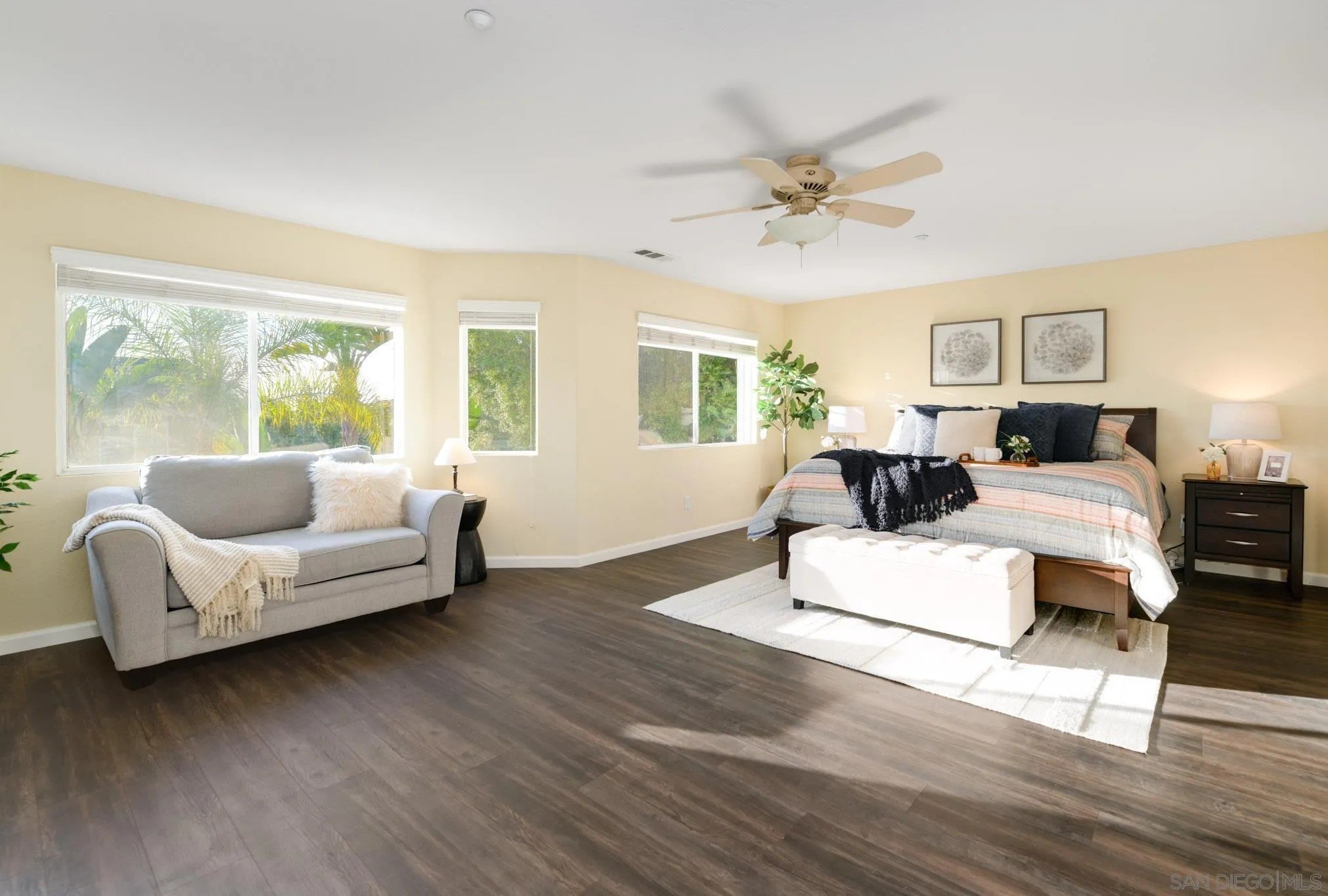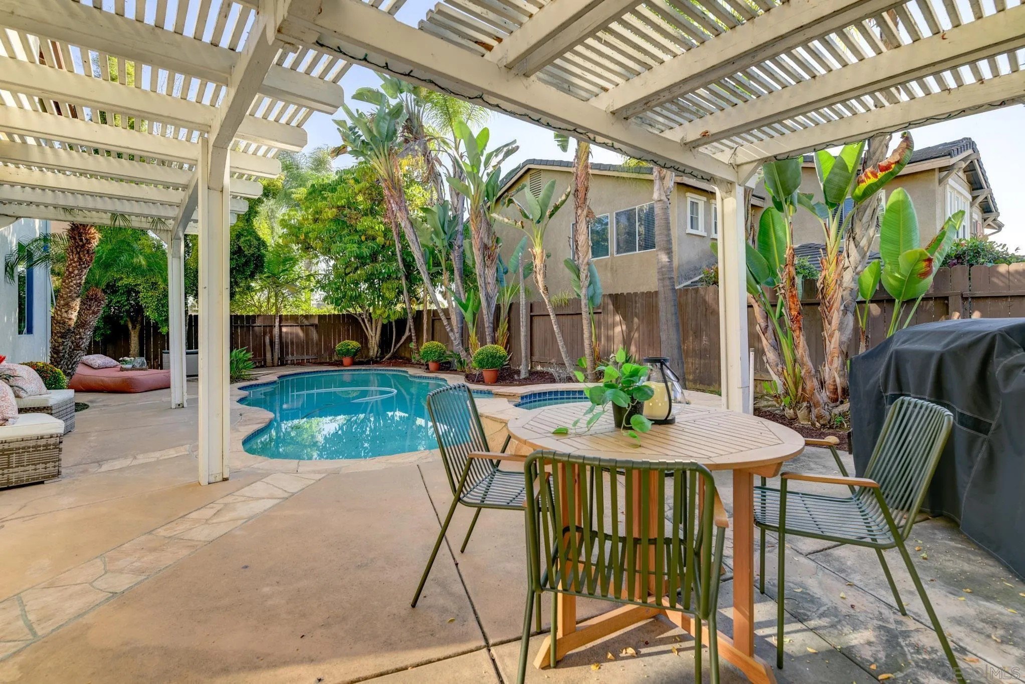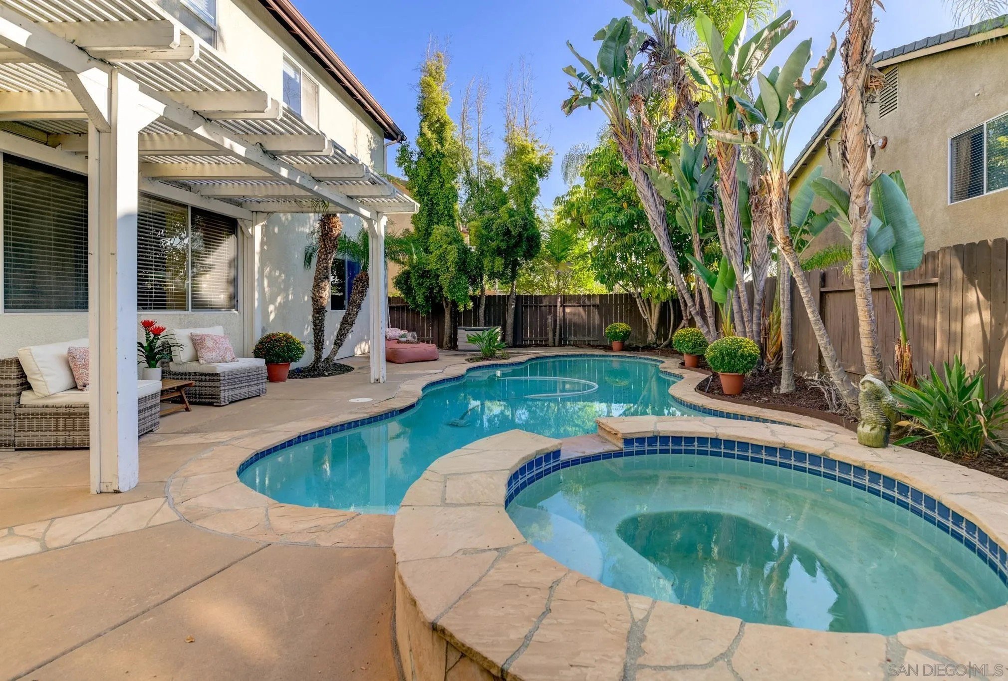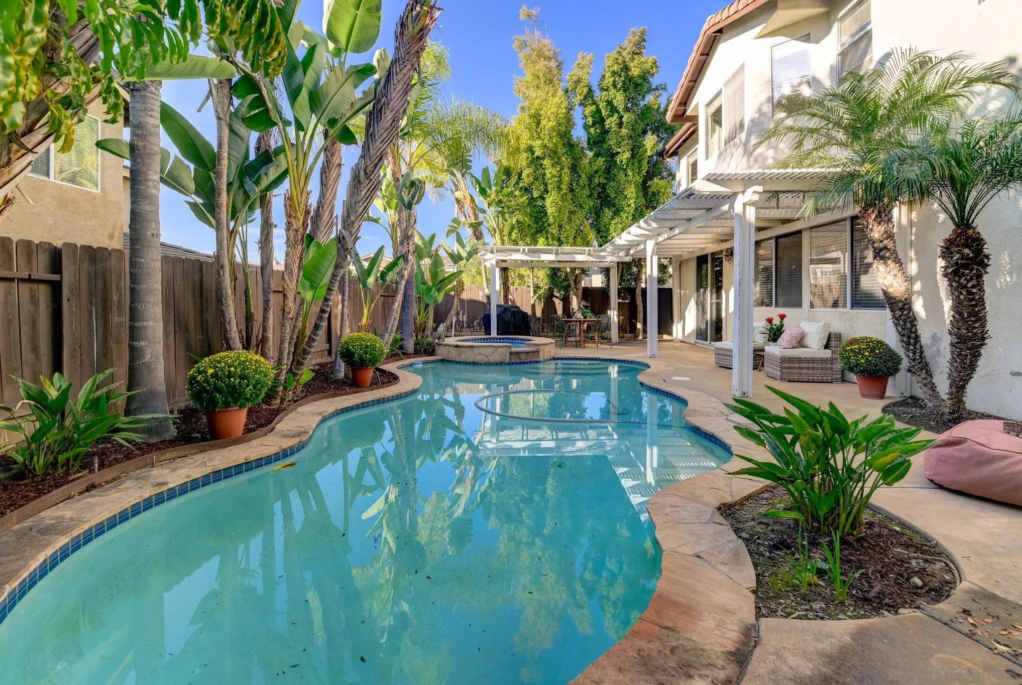 Welcome to this spacious 5-bedroom, 3-bath home with 3,296 sq. ft., ideally located on a corner lot overlooking Heritage Park. Featuring a sparkling pool, leased solar, and a great floor plan. This home combines comfort and convenience in the heart of 4S Ranch with just a short walk to Del Norte High School and close to other top-rated Poway Unified schools as well as restaurants, groceries, and shopping. The highly desirable layout includes a first-floor bedroom and full bath, perfect for guests or multigenerational living. Upstairs, a large loft offers space for movie nights, study sessions, or a cozy retreat. The primary suite impresses with its size and walk-in closet, while the upstairs laundry room with sink adds everyday practicality. Don't miss this wonderful opportunity to own a spacious home in one of San Diego's most sought-after communities.
