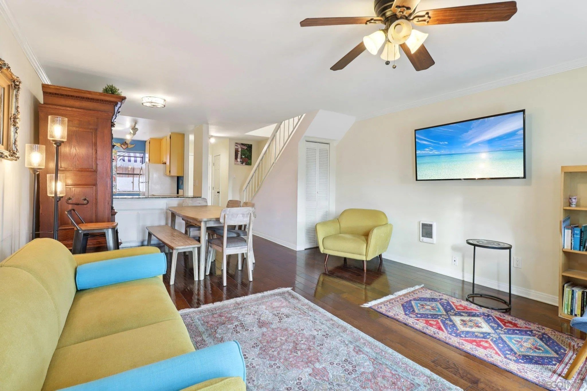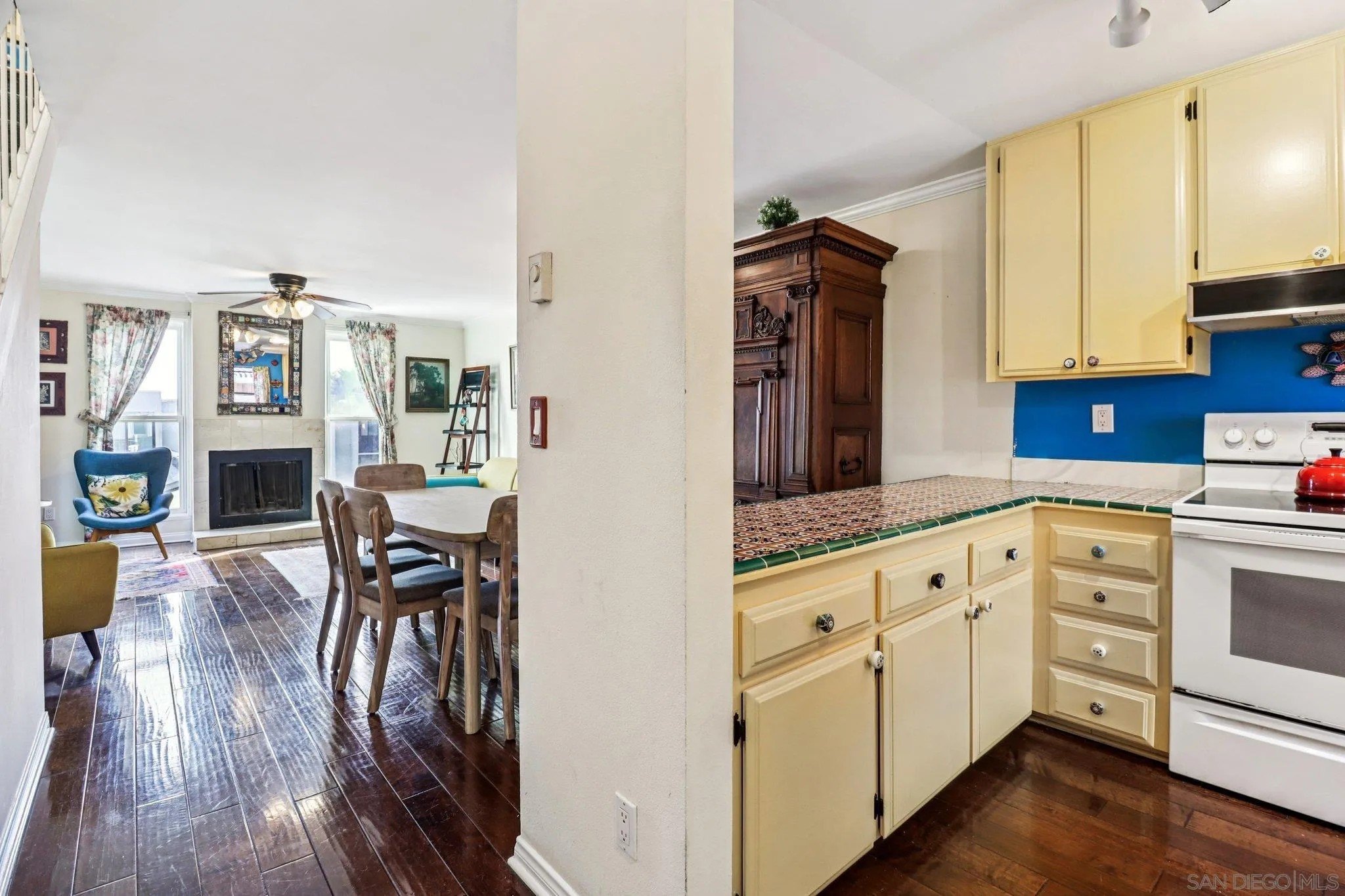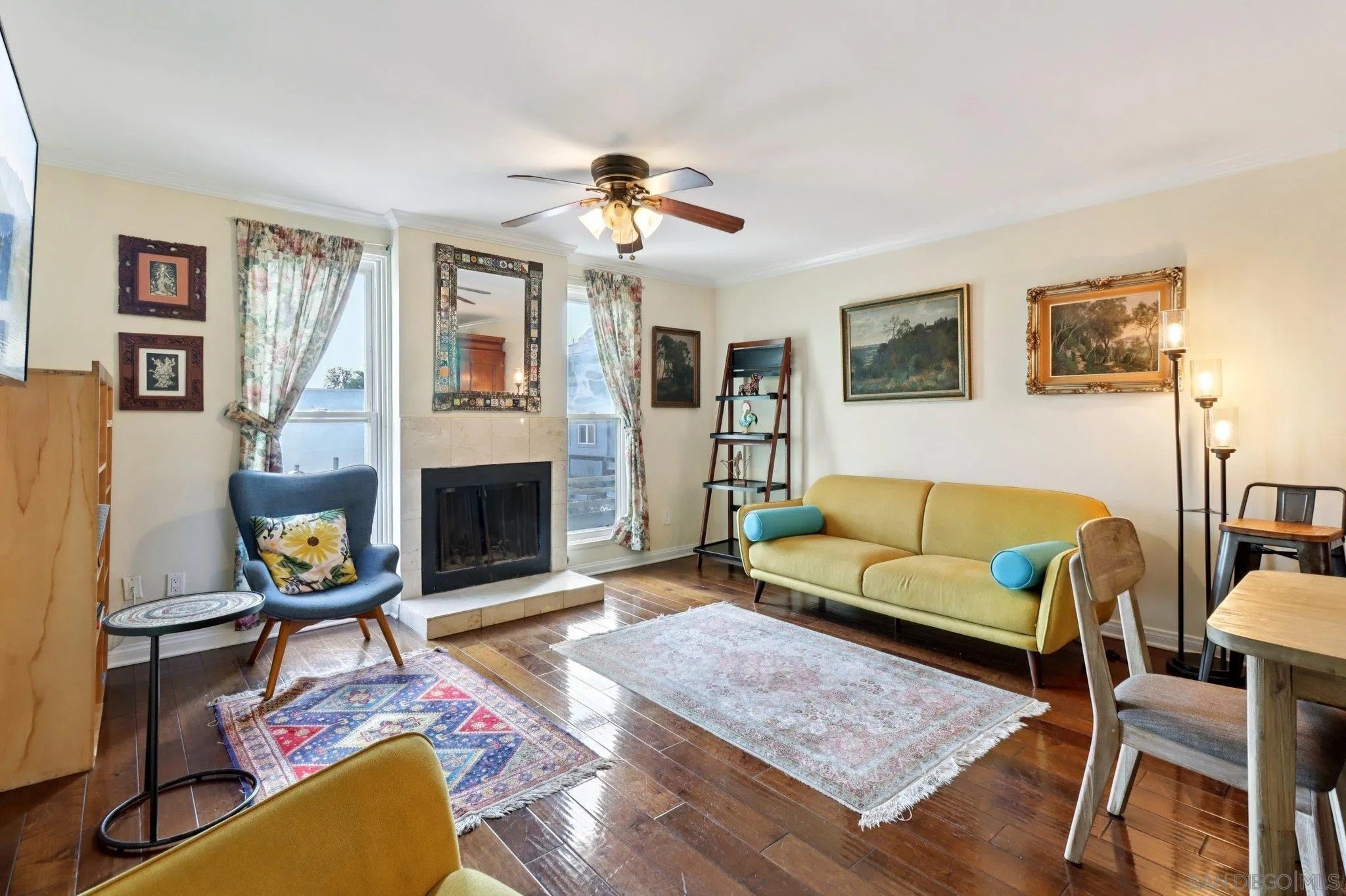 Charming Mission Hills Condo Nestled in the desirable Mission Hills neighborhood. This inviting condo on Keating Street offers a perfect blend of comfort and style. The expansive living room boasts elegant hardwood floors, a cozy fireplace, and large windows that flood the space with natural light. The modern kitchen features vibrant yellow cabinets, a striking blue backsplash, and sleek appliances. Adjacent to a chic bathroom with an artistic sink and generous storage, you'll find a convenient laundry area equipped with a stacked washer and dryer. This condo includes two garage parking spaces for added convenience. With its open layout, thoughtful design, and picturesque views, this condo is an ideal home in a prime location. Enjoy proximity to Robyn's Egg Trail, Pioneer Park, and the San Diego International Airport, and find yourself just minutes from Hillcrest, Little Italy, Liberty Station, and Downtown San Diego.