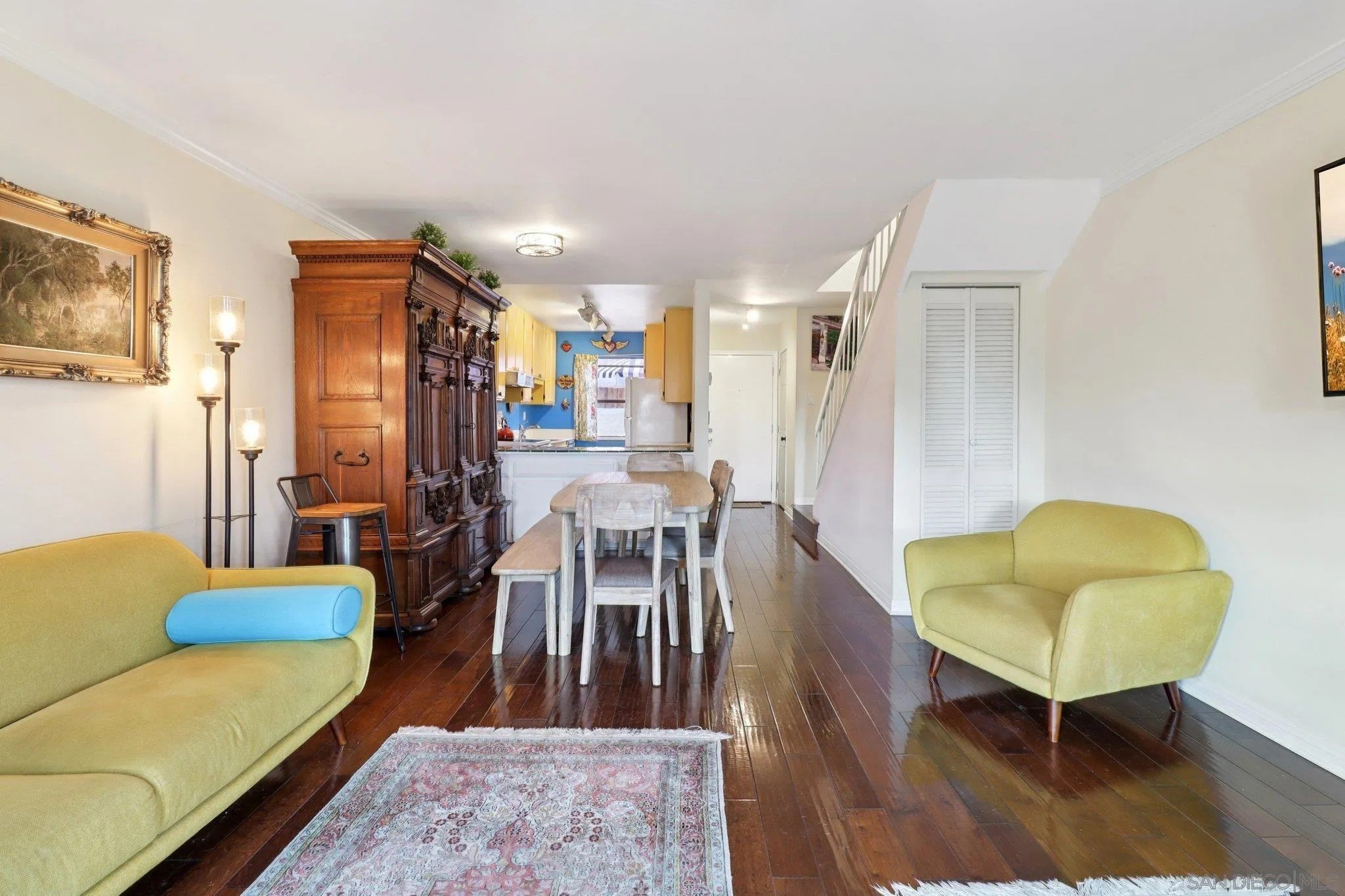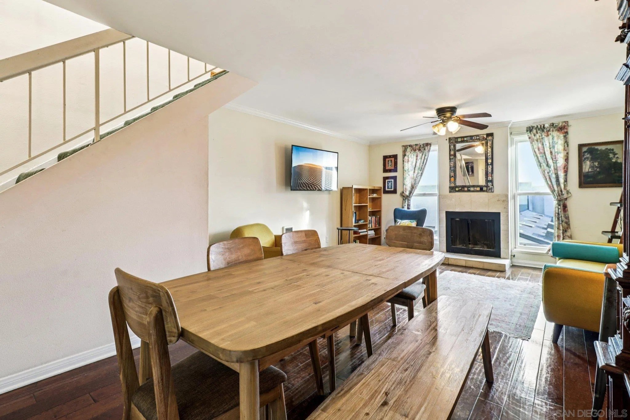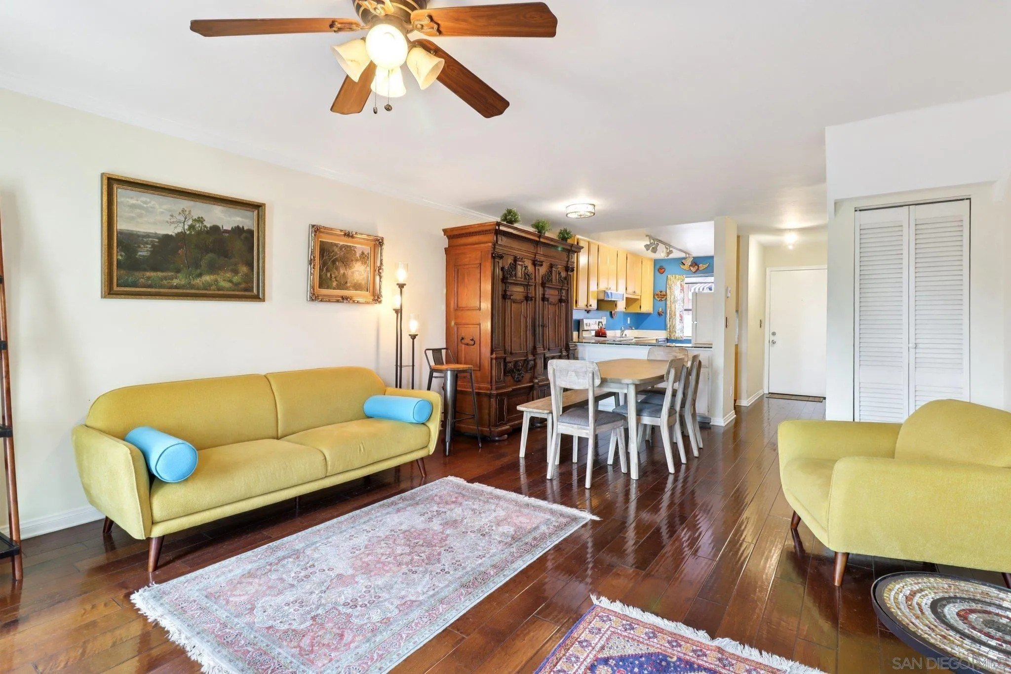 Charming Mission Hills Condo Nestled in the desirable Mission Hills neighborhood. This inviting condo on Keating Street offers a perfect blend of comfort and style. The expansive living room boasts elegant hardwood floors, a cozy fireplace, and large windows that flood the space with natural light. The modern kitchen features vibrant yellow cabinets, a striking blue backsplash, and sleek appliances. Adjacent to a chic bathroom with an artistic sink and generous storage, you'll find a convenient laundry area equipped with a stacked washer and dryer. This condo includes two garage parking spaces for added convenience. With its open layout, thoughtful design, and picturesque views, this condo is an ideal home in a prime location. Enjoy proximity to Robyn's Egg Trail, Pioneer Park, and the San Diego International Airport, and find yourself just minutes from Hillcrest, Little Italy, Liberty Station, and Downtown San Diego.