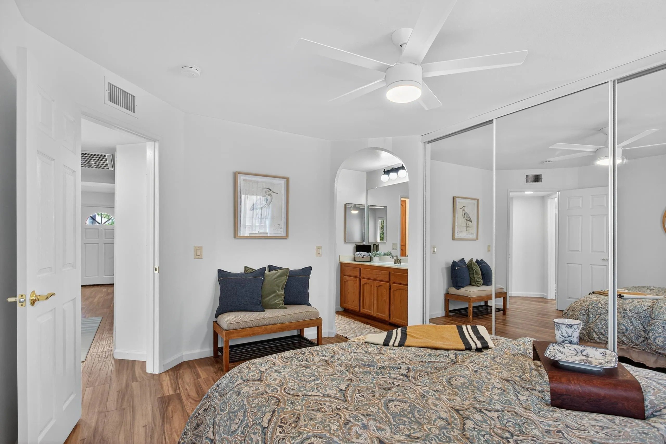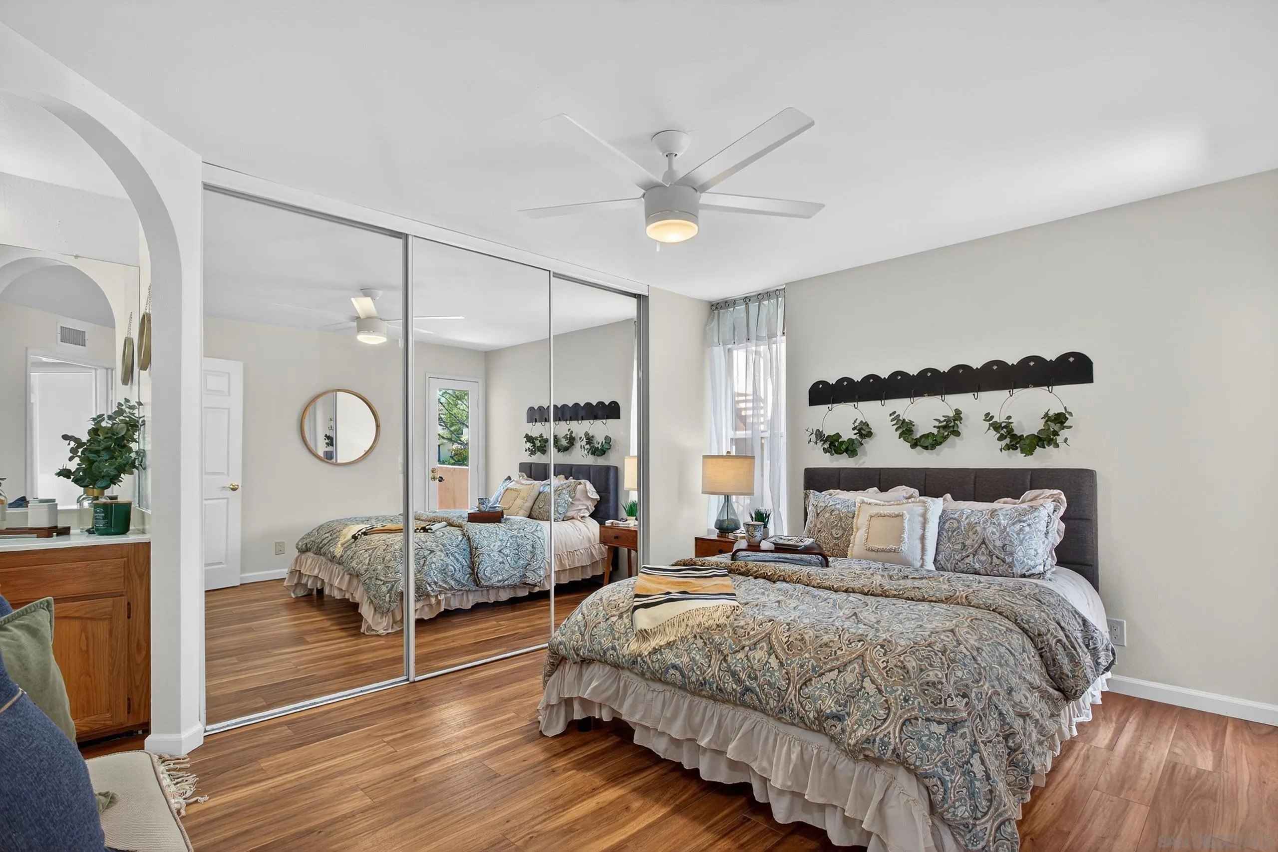 Located on the border of University Heights and North Park, this condo offers the best of two of San Diego's most walkable neighborhoods with a Walk Score over 95. From your front door you can stroll to coffee shops, restaurants, markets, and music venues, or head into nearby Hillcrest, Mission Hills, or Mission Valley. Balboa Park and the San Diego Zoo are just minutes away, and the beach is less than 20 minutes by car. The neighborhood is known for its lively cafe culture, craft breweries, and local eateries that make everyday life feel like part of the San Diego experience. This light filled end unit condo has windows facing east, south, and west that bring in natural light and cool afternoon breezes. Inside you'll find two bedrooms, two bathrooms, and a two car tandem garage. The home features laminate wood flooring, tile in the bathrooms, fresh paint, recessed lighting, ceiling fans, and central heating and AC.