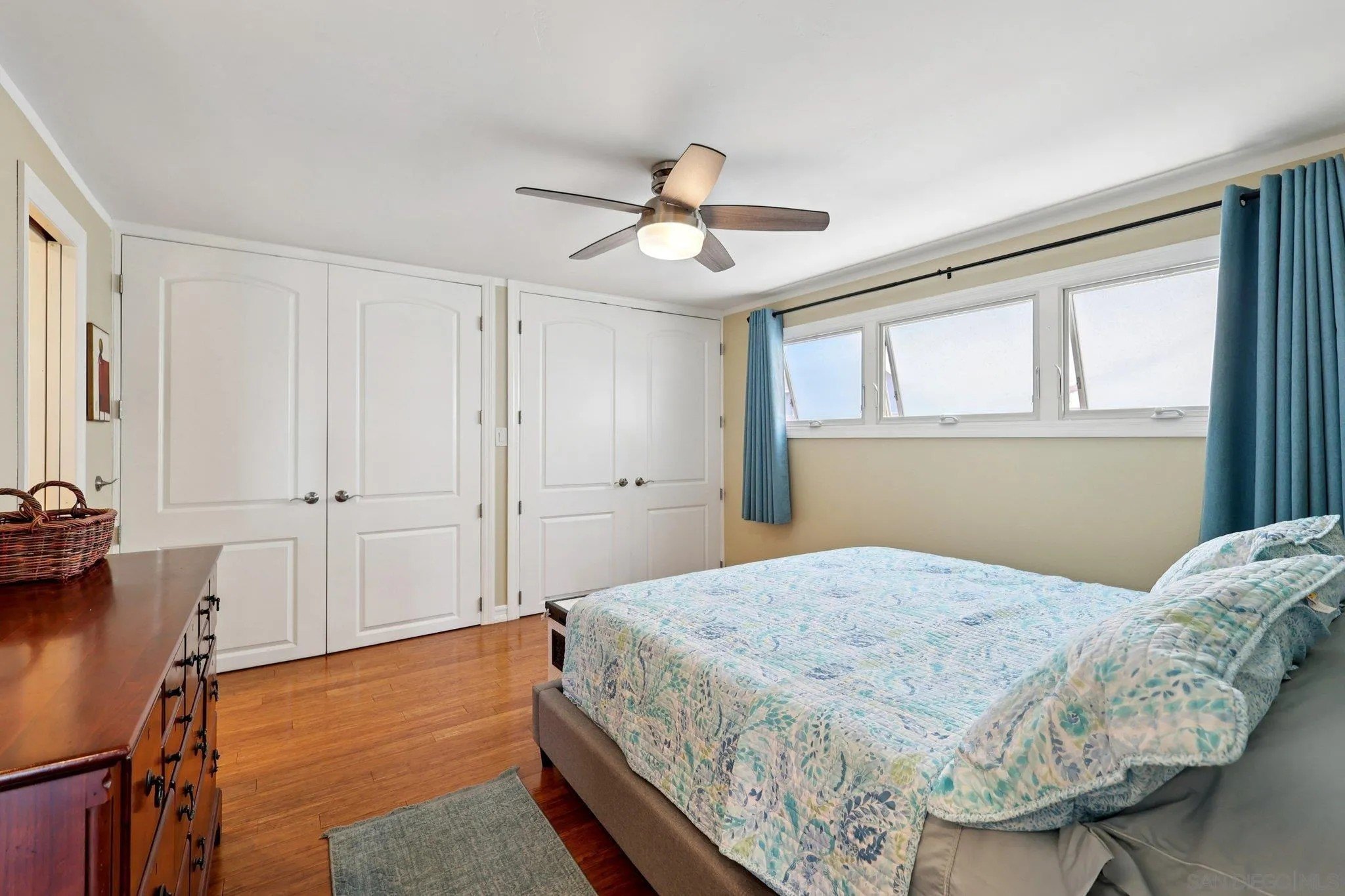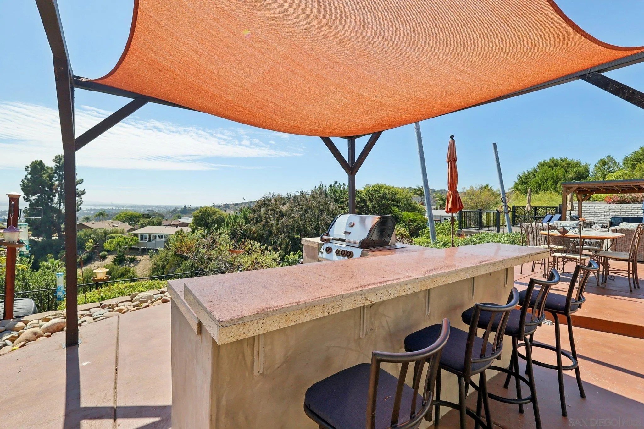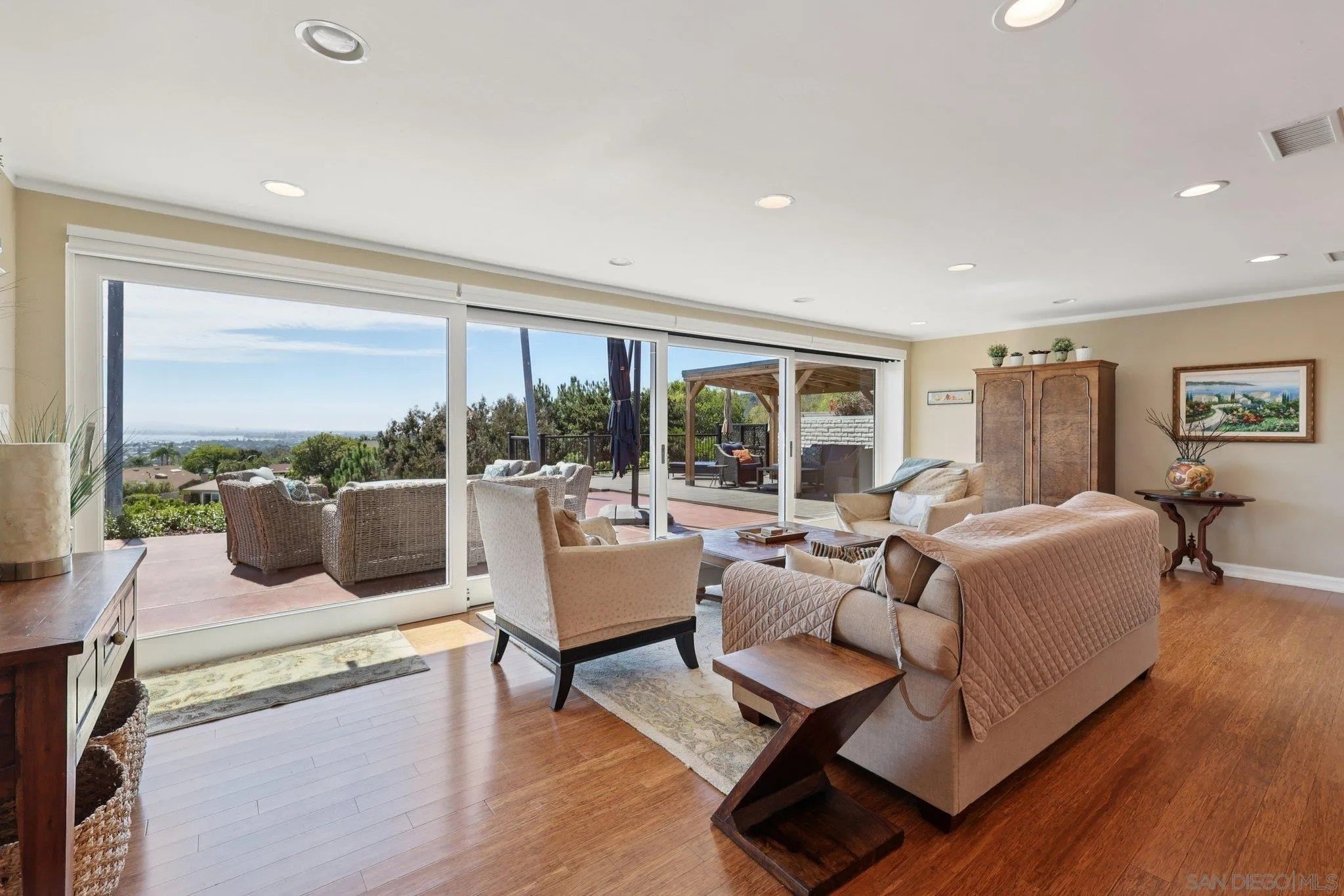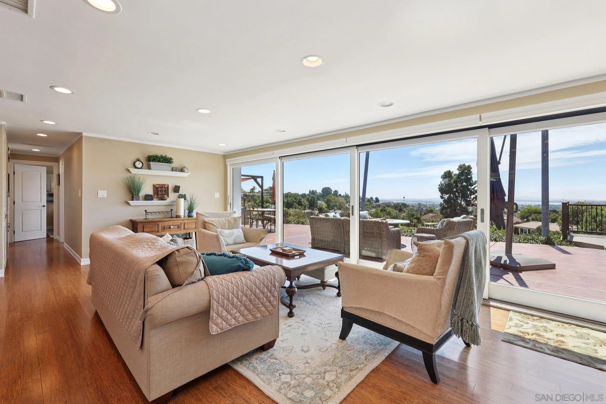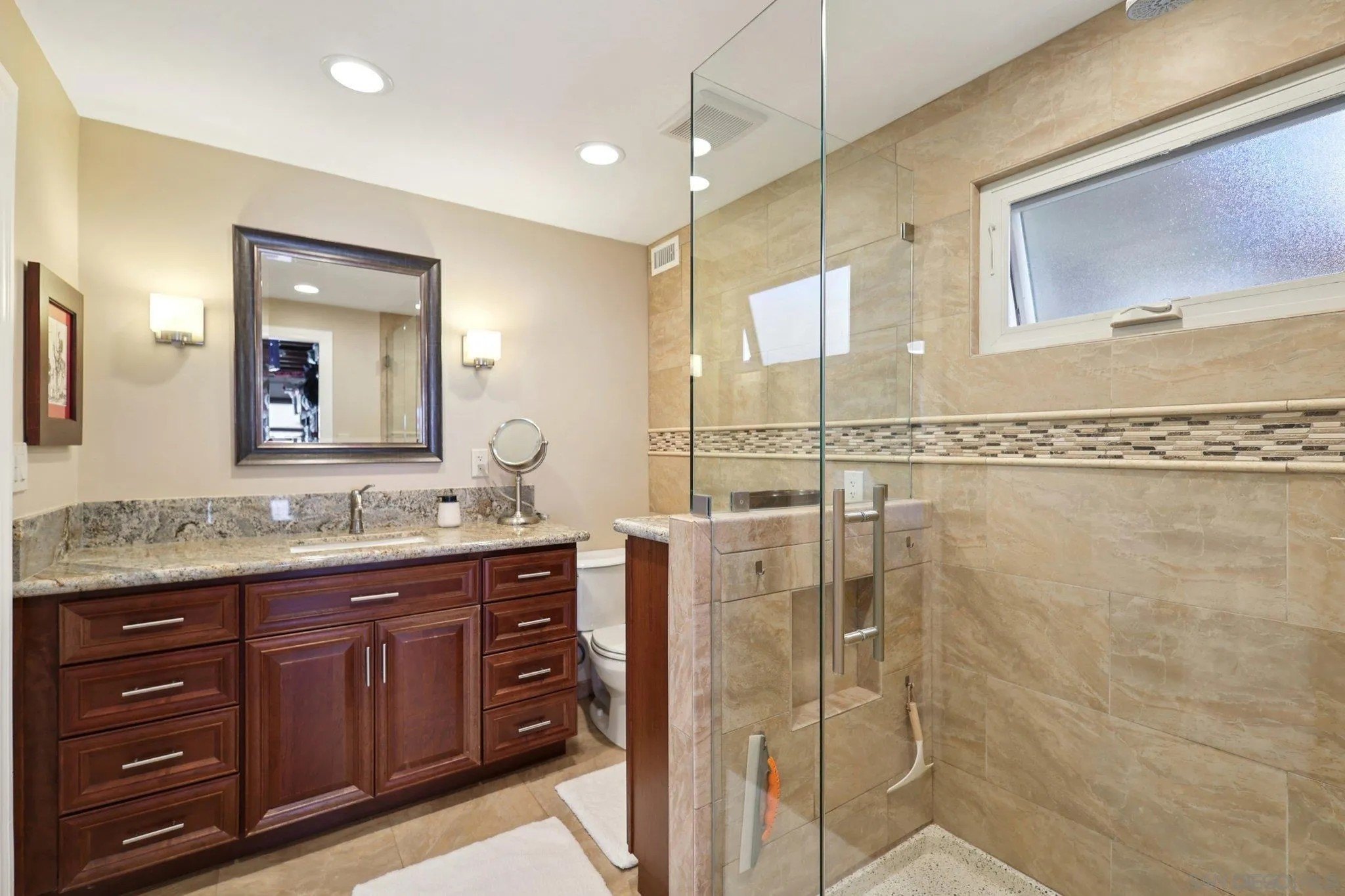 Welcome to this one-of-a-kind Bay Ho residence, a single-story retreat showcasing custom upgrades and breathtaking sit-down views of Mission Bay. Homes of this caliber rarely come to market. From the moment you step inside, you'll be impressed by the open floor plan, the beautifully remodeled kitchen, and the seamless connection between indoor and outdoor living. The kitchen is a showpiece, featuring cream shaker cabinetry, quartz countertops, a designer tile backsplash, a large island with seating, and high-end stainless steel appliances, including a Fulgor Milano oven. The great room flows effortlessly to the backyard through an impressive 23-foot four-panel panoramic sliding door, opening to a private outdoor sanctuary with multiple spaces for entertaining. The backyard is truly remarkable, offering expansive bay views, a built-in BBQ island with bar seating, a synthetic deck with a covered patio, and thoughtfully designed areas for relaxation or gatherings. Fruit trees, including fig and citrus, add to the charm, while the fenced backyard provides peace of mind and privacy. Inside, engineered strand-woven bamboo floors, recessed lighting, bronze hardware, and a large brick fireplace create warmth and style. The home also includes dual-pane windows, ceiling fans in every bedroom, smooth stucco finish, and a security courtyard with a designer metal gate and custom front door. The master suite features its own private oasis, while the den offers a cozy space to unwind by the gas fireplace.