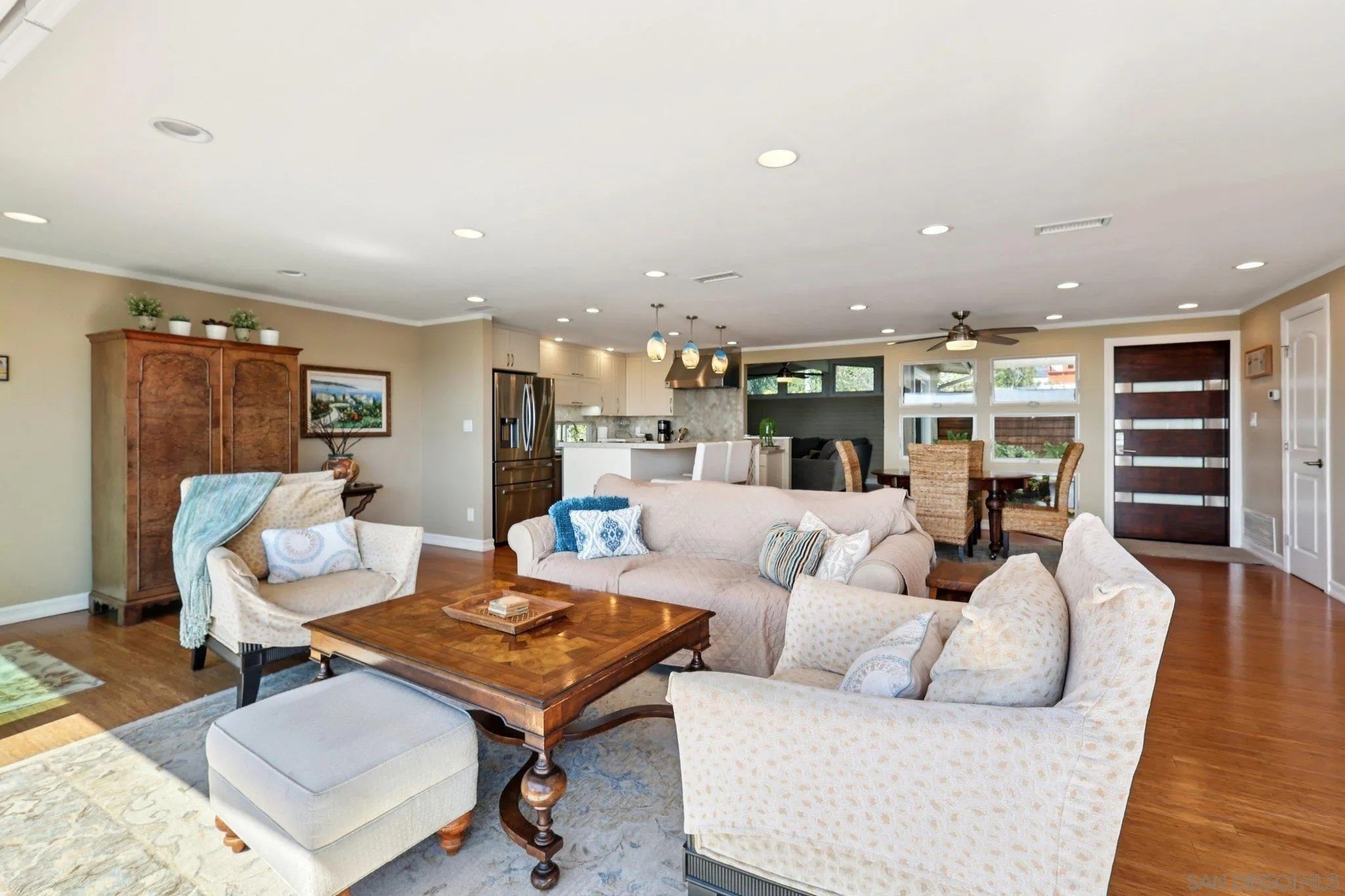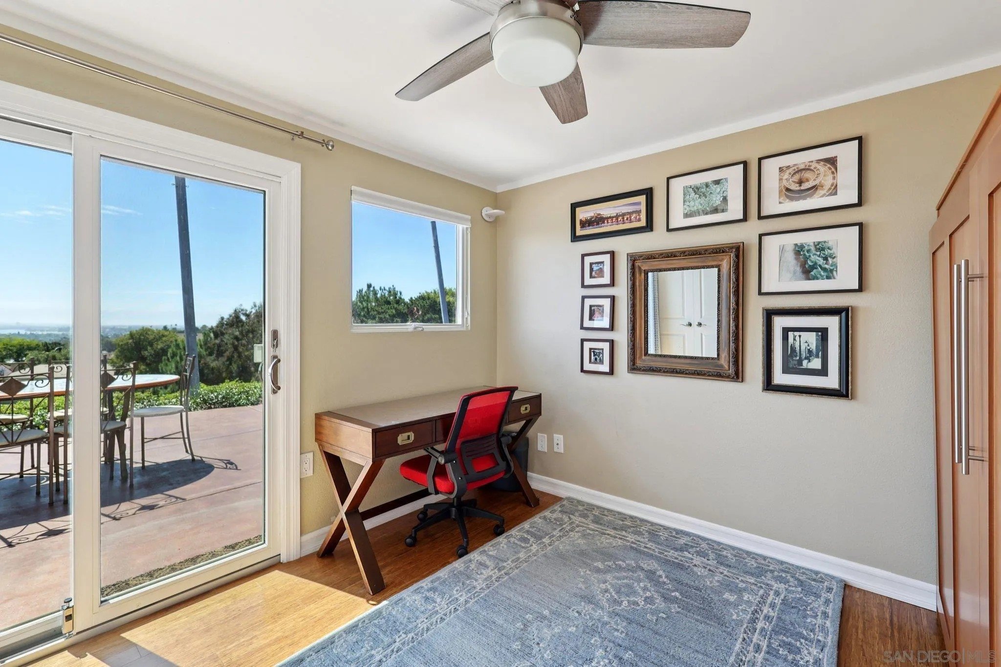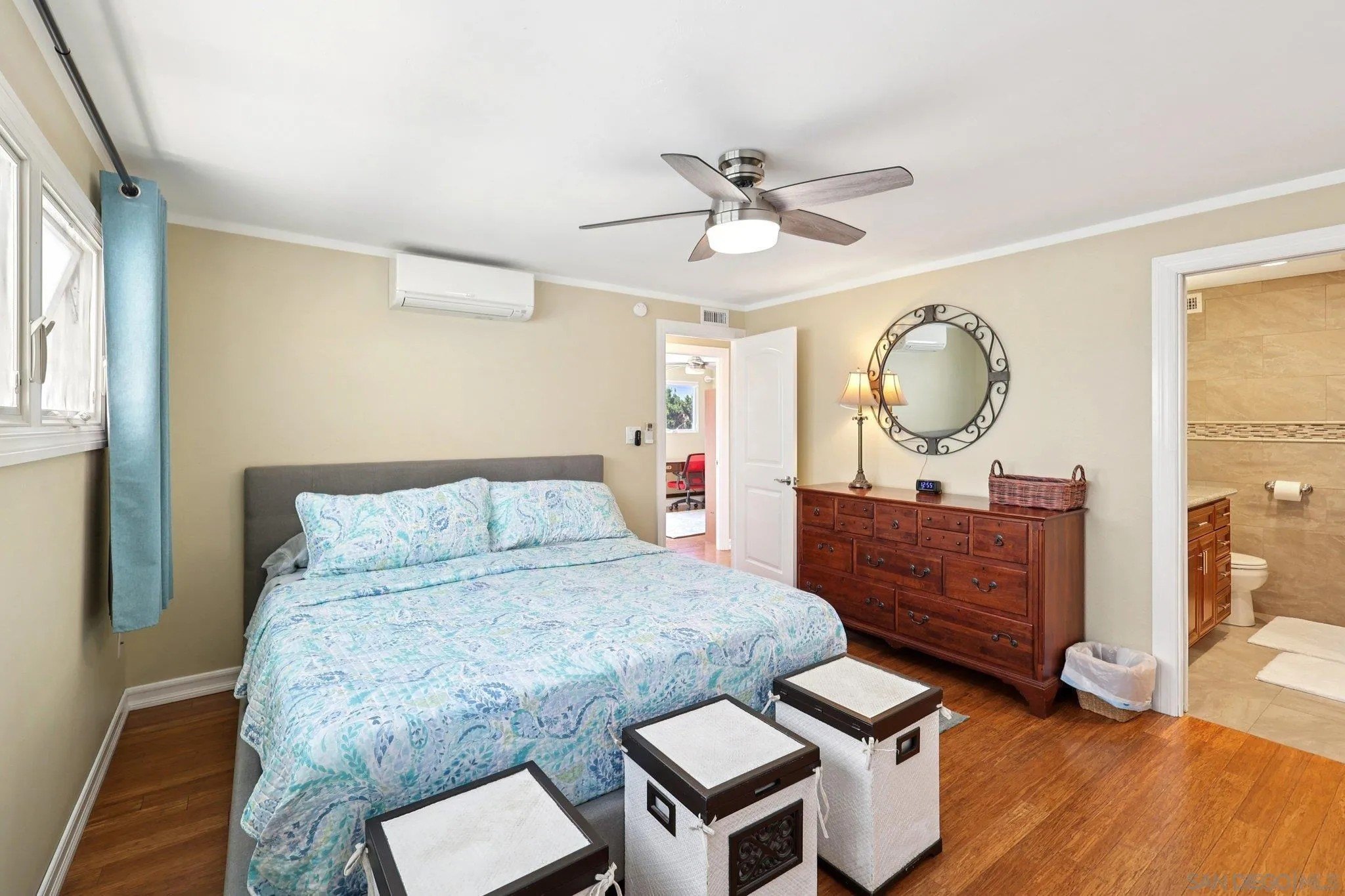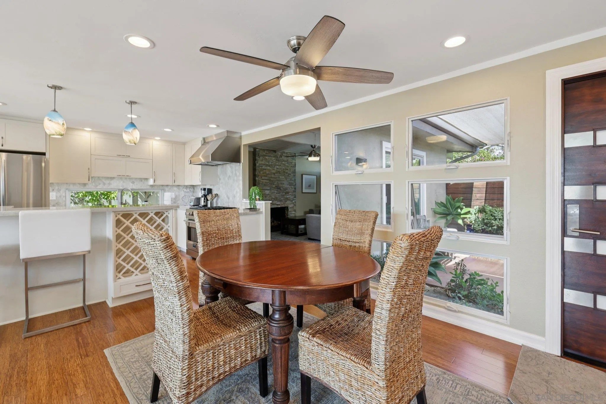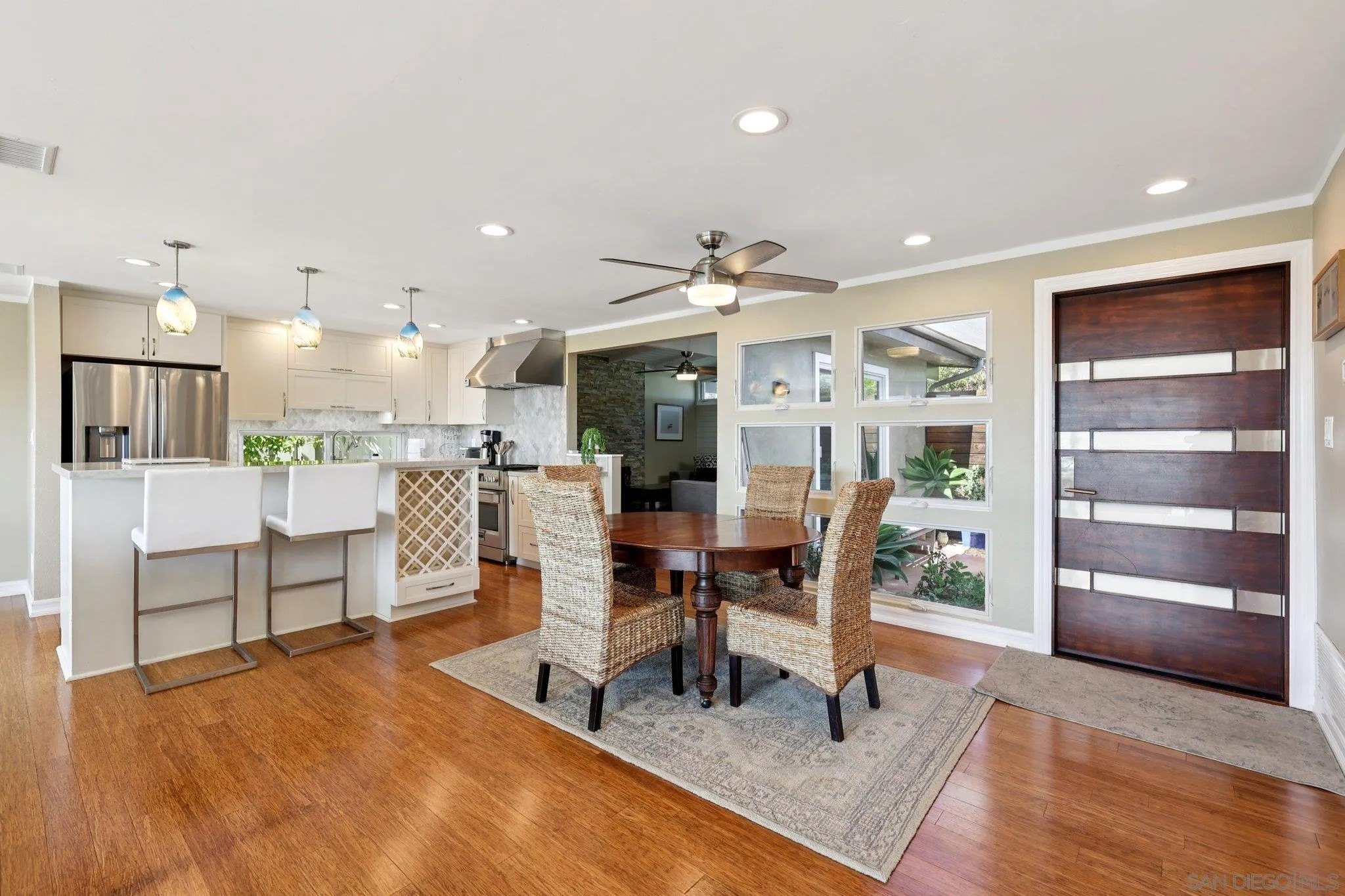 Welcome to this one-of-a-kind Bay Ho residence, a single-story retreat showcasing custom upgrades and breathtaking sit-down views of Mission Bay. Homes of this caliber rarely come to market. From the moment you step inside, you'll be impressed by the open floor plan, the beautifully remodeled kitchen, and the seamless connection between indoor and outdoor living. The kitchen is a showpiece, featuring cream shaker cabinetry, quartz countertops, a designer tile backsplash, a large island with seating, and high-end stainless steel appliances, including a Fulgor Milano oven. The great room flows effortlessly to the backyard through an impressive 23-foot four-panel panoramic sliding door, opening to a private outdoor sanctuary with multiple spaces for entertaining. The backyard is truly remarkable, offering expansive bay views, a built-in BBQ island with bar seating, a synthetic deck with a covered patio, and thoughtfully designed areas for relaxation or gatherings. Fruit trees, including fig and citrus, add to the charm, while the fenced backyard provides peace of mind and privacy. Inside, engineered strand-woven bamboo floors, recessed lighting, bronze hardware, and a large brick fireplace create warmth and style. The home also includes dual-pane windows, ceiling fans in every bedroom, smooth stucco finish, and a security courtyard with a designer metal gate and custom front door. The master suite features its own private oasis, while the den offers a cozy space to unwind by the gas fireplace.