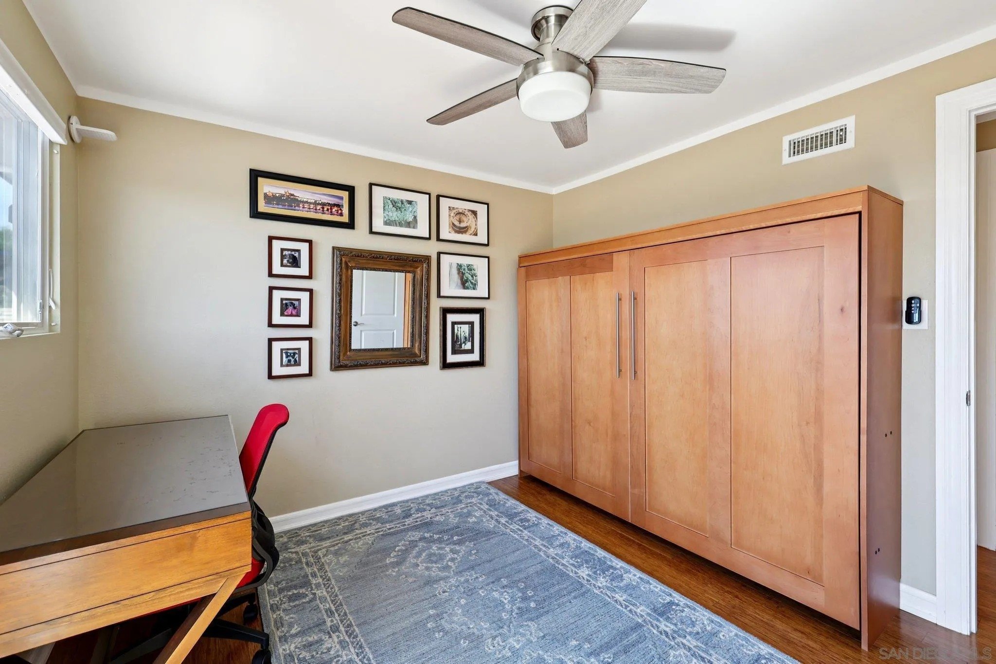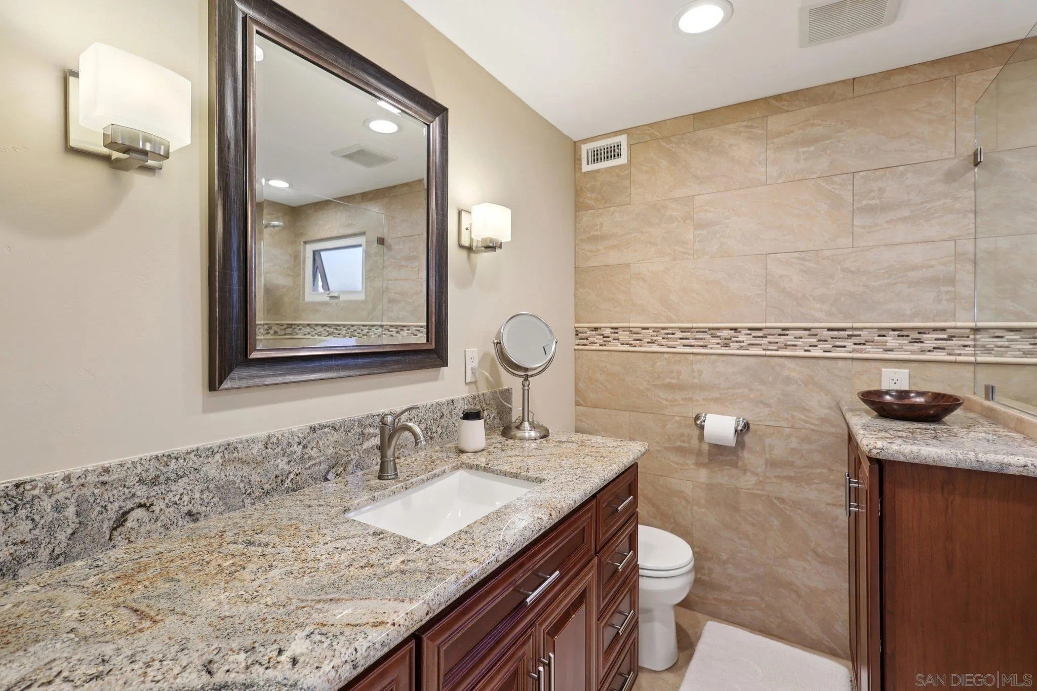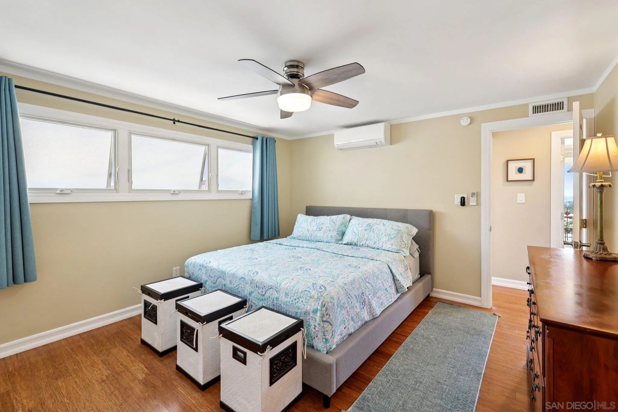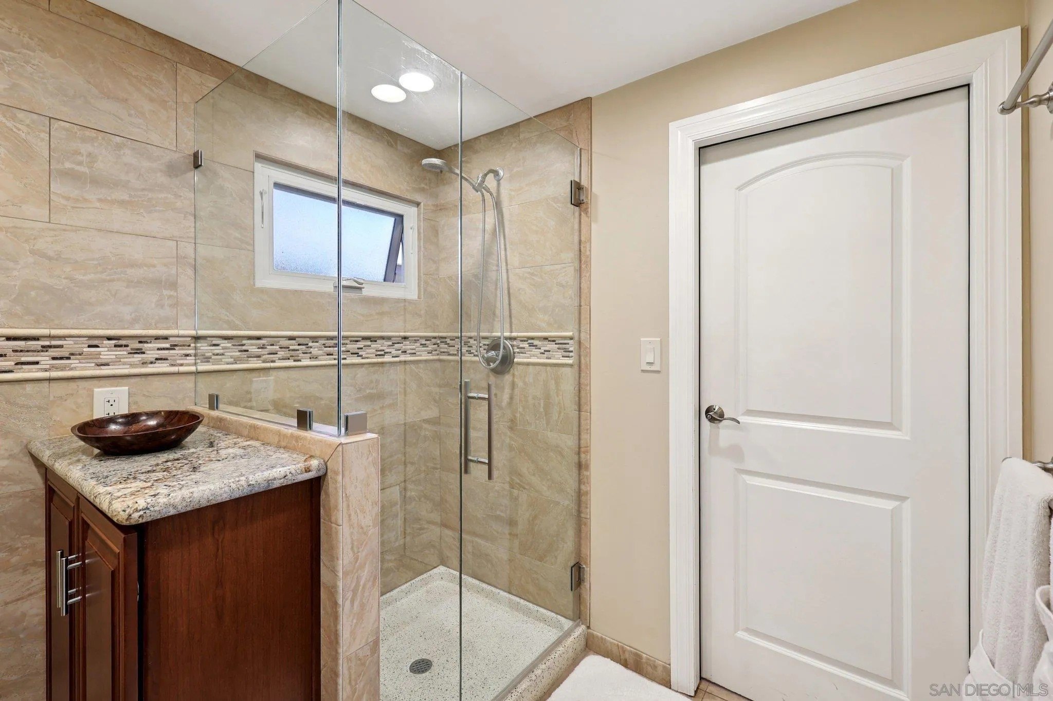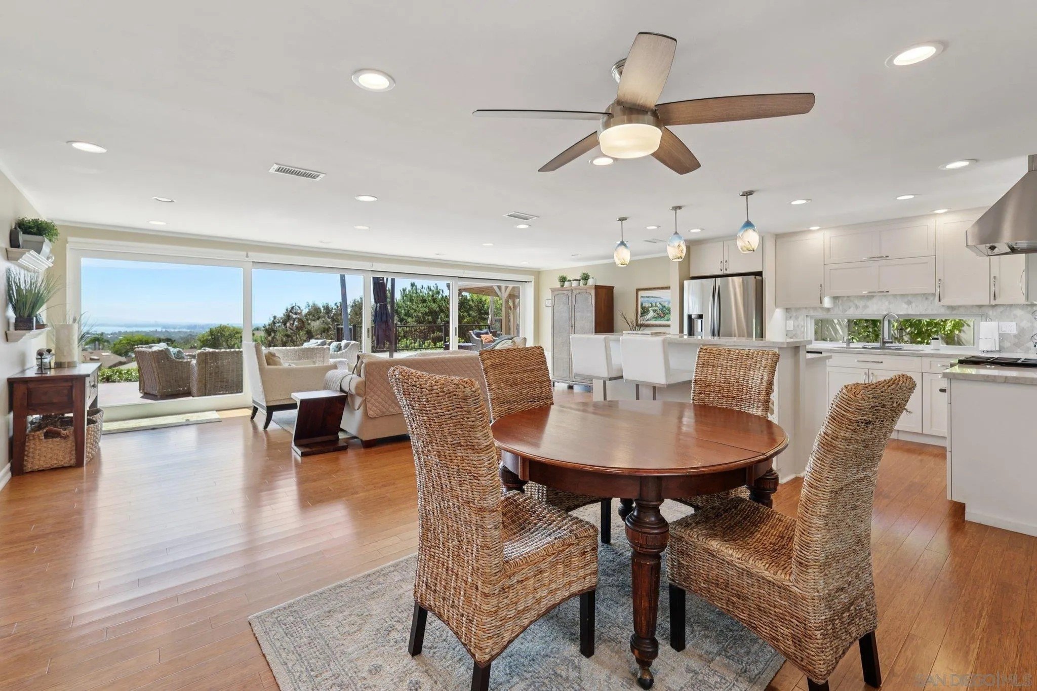 Welcome to this one-of-a-kind Bay Ho residence, a single-story retreat showcasing custom upgrades and breathtaking sit-down views of Mission Bay. Homes of this caliber rarely come to market. From the moment you step inside, you'll be impressed by the open floor plan, the beautifully remodeled kitchen, and the seamless connection between indoor and outdoor living. The kitchen is a showpiece, featuring cream shaker cabinetry, quartz countertops, a designer tile backsplash, a large island with seating, and high-end stainless steel appliances, including a Fulgor Milano oven. The great room flows effortlessly to the backyard through an impressive 23-foot four-panel panoramic sliding door, opening to a private outdoor sanctuary with multiple spaces for entertaining. The backyard is truly remarkable, offering expansive bay views, a built-in BBQ island with bar seating, a synthetic deck with a covered patio, and thoughtfully designed areas for relaxation or gatherings. Fruit trees, including fig and citrus, add to the charm, while the fenced backyard provides peace of mind and privacy. Inside, engineered strand-woven bamboo floors, recessed lighting, bronze hardware, and a large brick fireplace create warmth and style. The home also includes dual-pane windows, ceiling fans in every bedroom, smooth stucco finish, and a security courtyard with a designer metal gate and custom front door. The master suite features its own private oasis, while the den offers a cozy space to unwind by the gas fireplace.