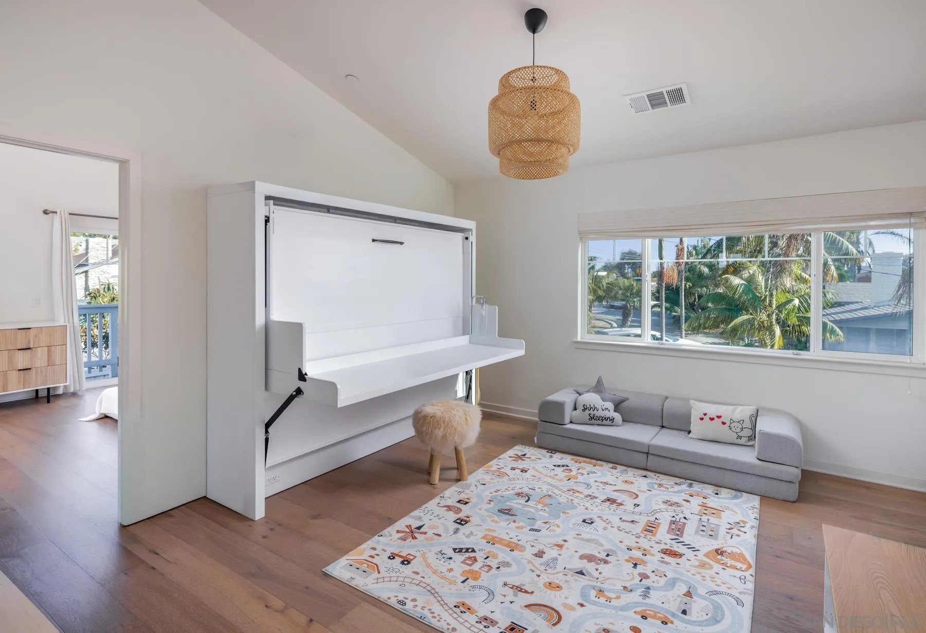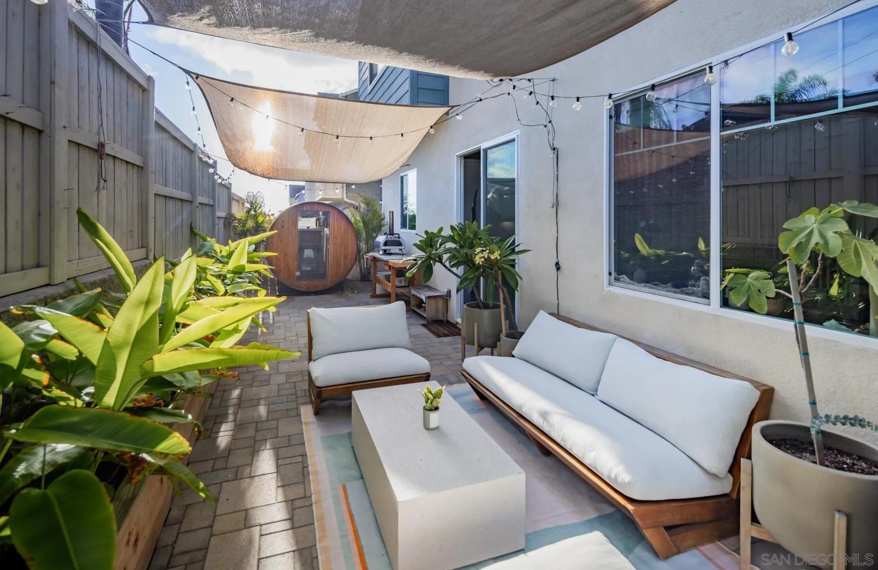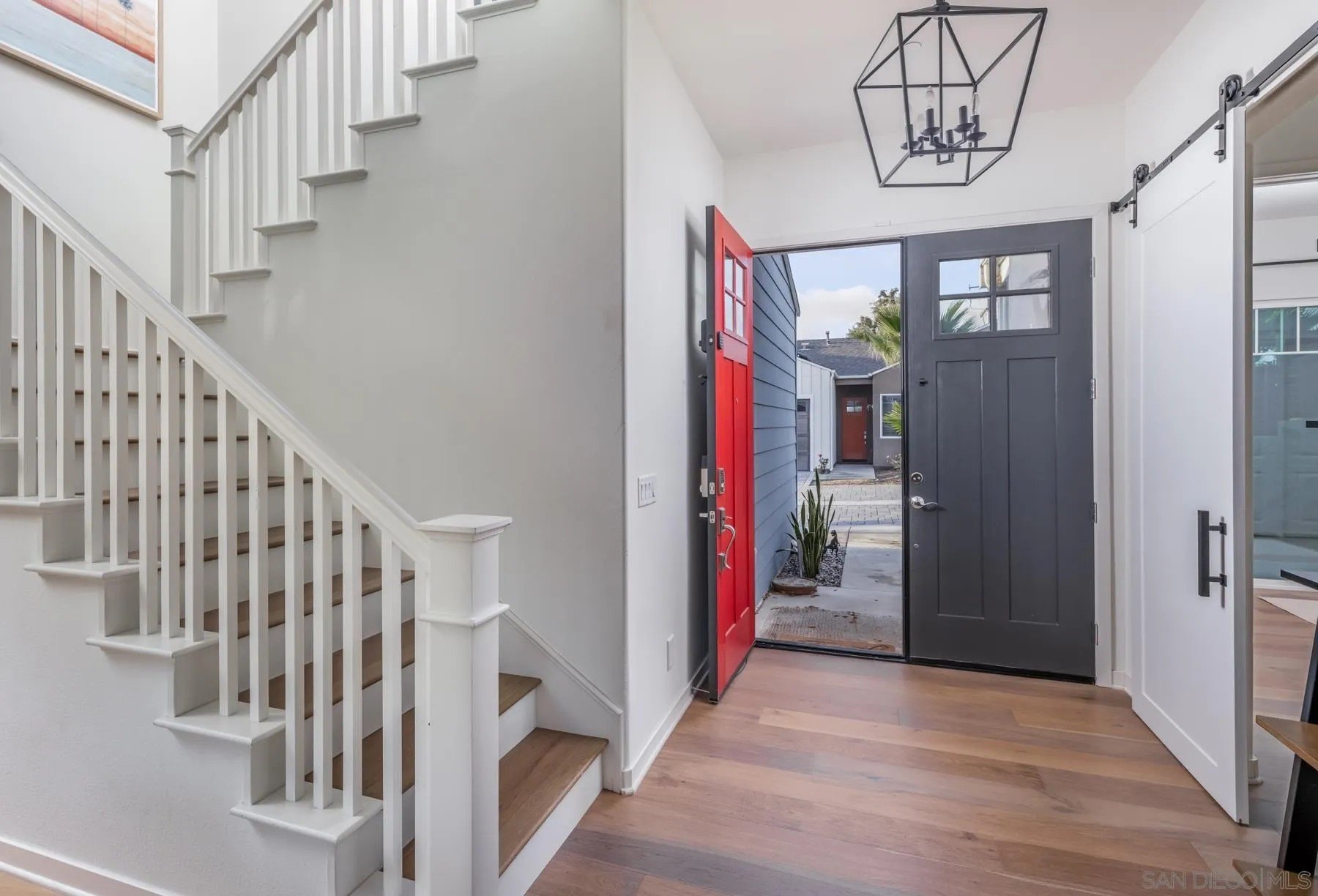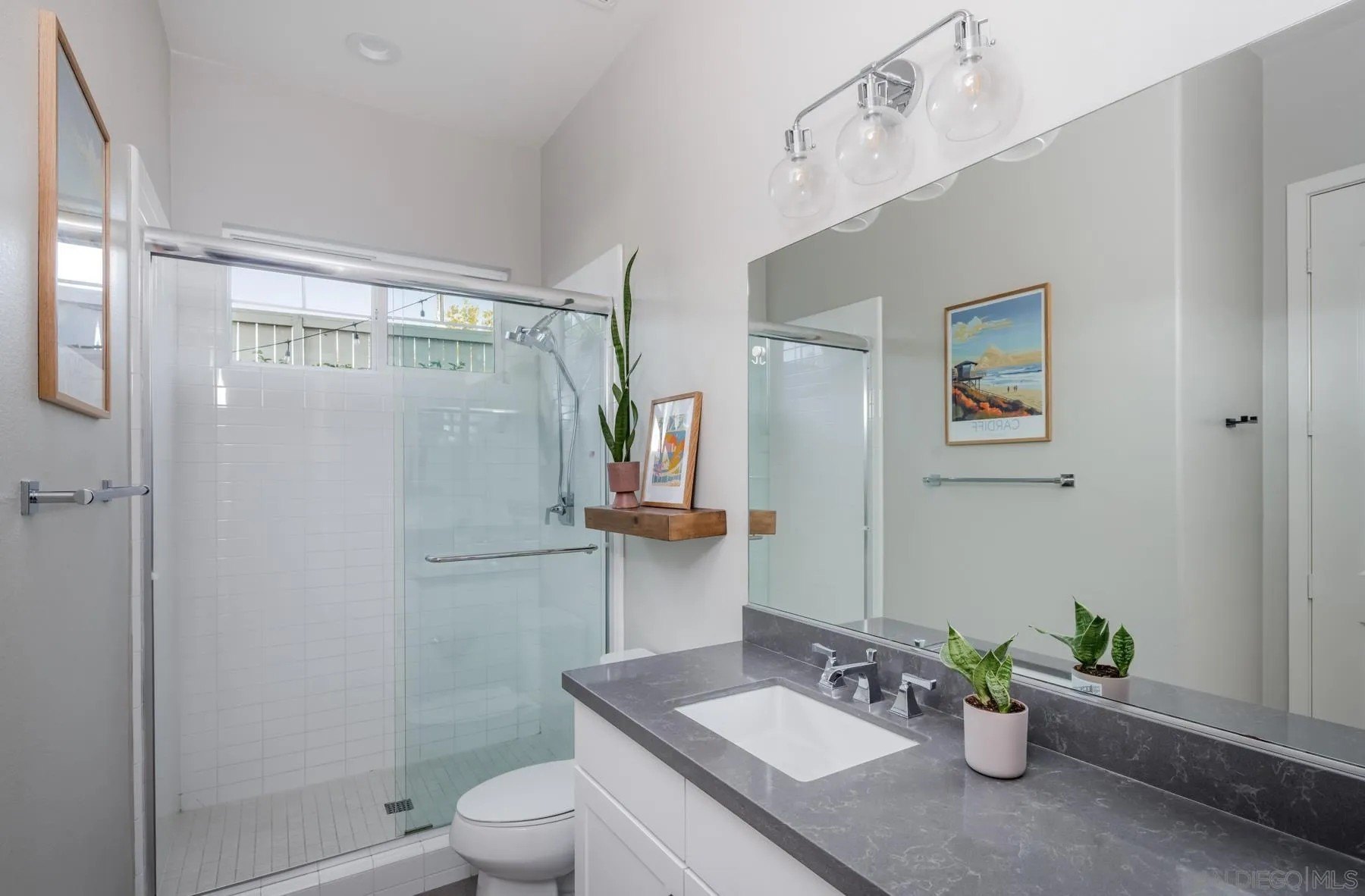Style, function and the Cardiff lifestyle! This 2,500 sq ft coastal home offers modern design, generous space, and a prime location near parks, schools, and the beach. Soaring 10-ft ceilings and an open floor plan flow seamlessly to a private front yard, a backyard with sauna, and a tiered rear deck, perfect for entertaining or sunset views. The main level features a separate bedroom with ensuite bath, ideal for a guest retreat or extended visitors. Upstairs, the oversized primary suite provides a private escape. Additionally, a flexible bonus room with an oversized barn door and Murphy bed, can serve as a fifth bedroom, office, or media space. Highlights include wide-plank wood floors throughout, custom closets, designer fixtures, an outdoor sauna, and energy-efficient features such as owned solar and tankless water heater. All within walking distance to Encinitas Park, Seaside Market, and the beach.