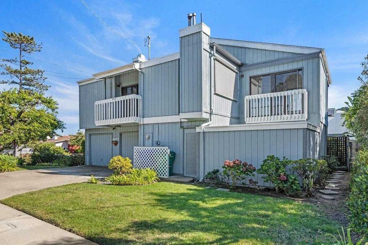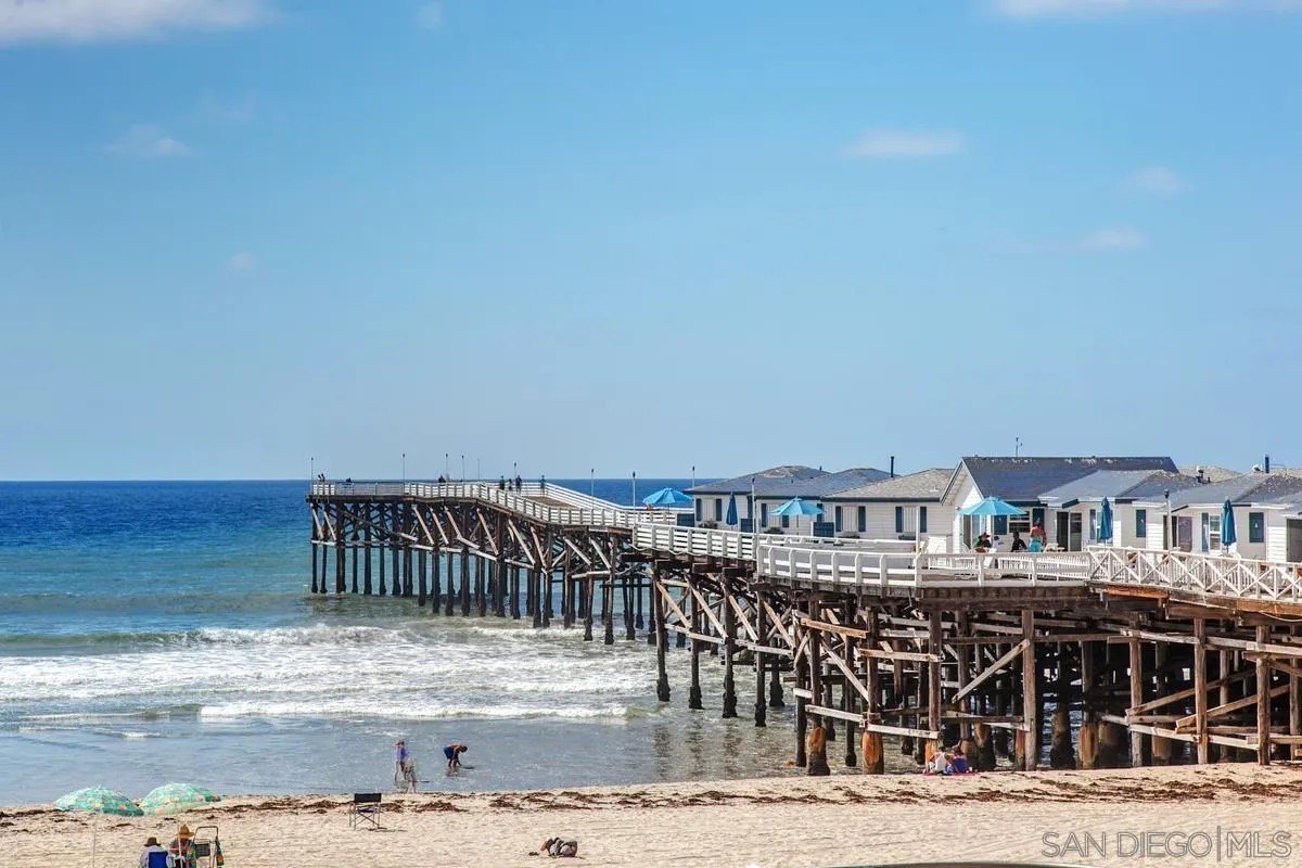 Sunny and spacious 2-story 4BR/2.5BA North Pacific Beach home with pleasing views of Mission Bay, downtown, mountains, city lights, and fireworks. Enjoy an outdoor living feel with the abundance of generous windows, balconies, and patios. Desirable reverse floorplan with living areas upstairs and bedrooms below. Don't miss the cathedral open-beam ceilings, private hot tub area, walk-in closets, some hardwood floors, stone tile patio, two-car garage, and cooling cross-breezes! Ready for you to update into your dream home! Just 75 steps to beautiful grassy Kate Sessions Park, the jewel of Pacific Beach, with playground and views!