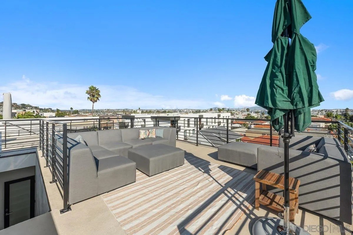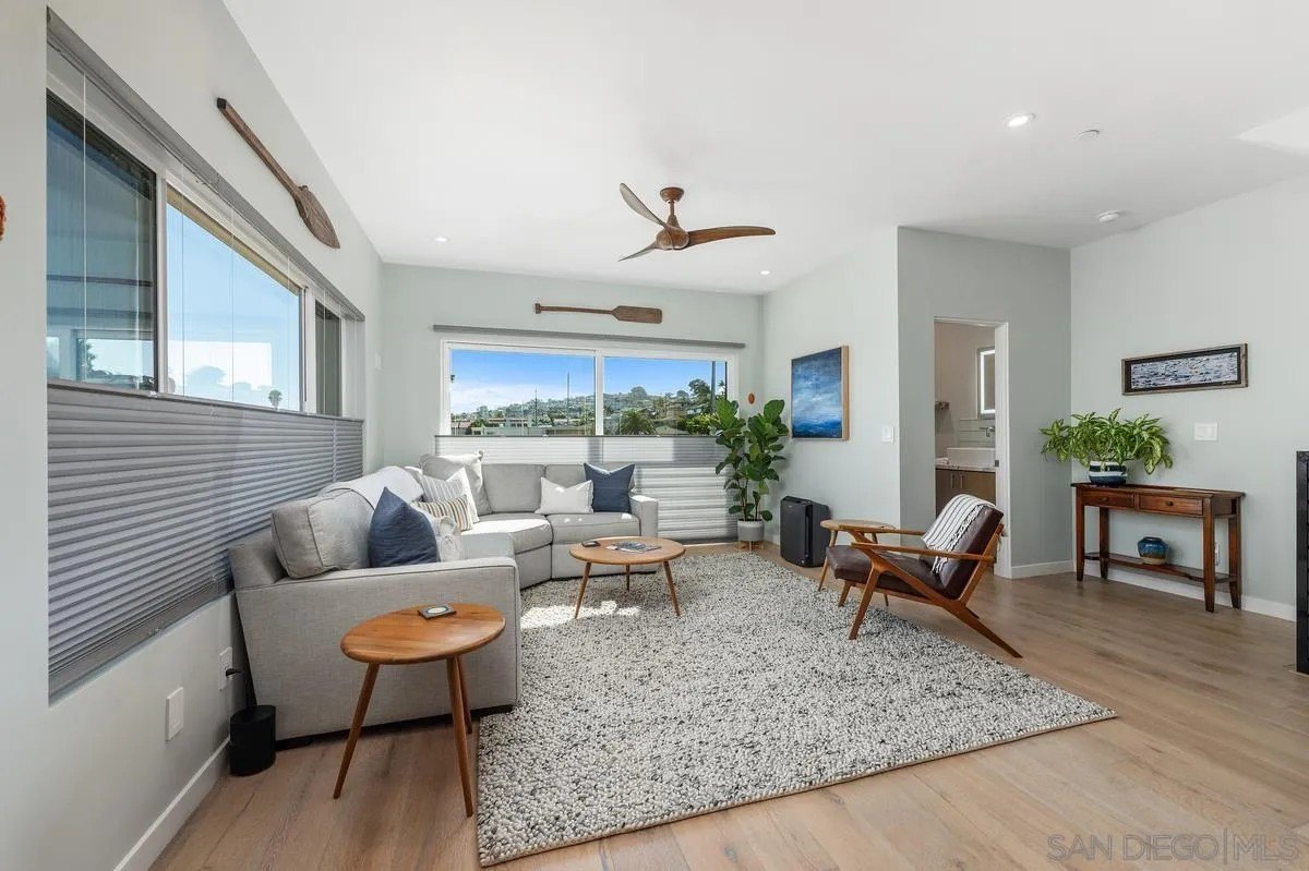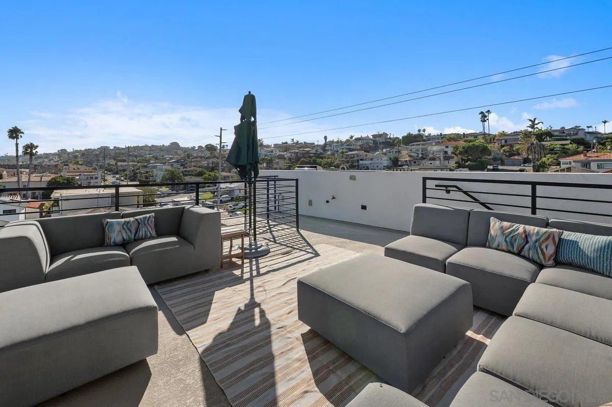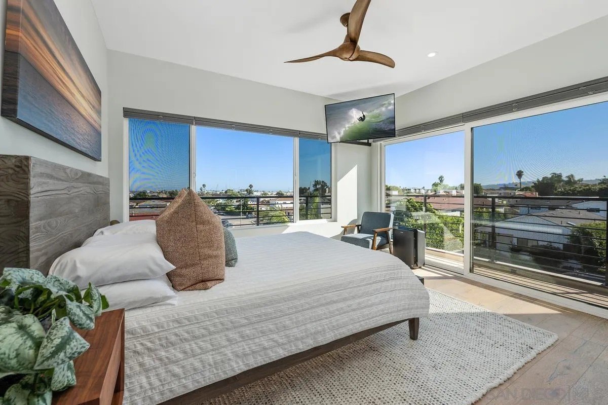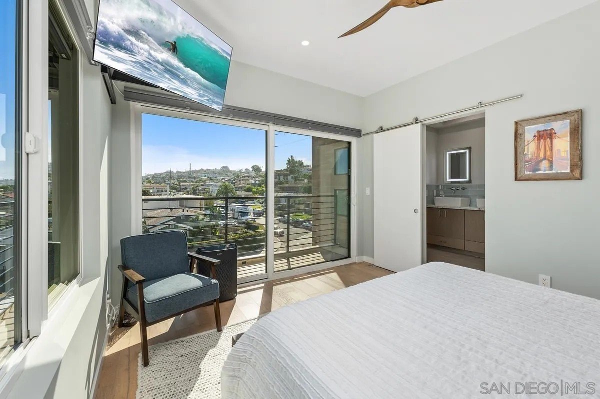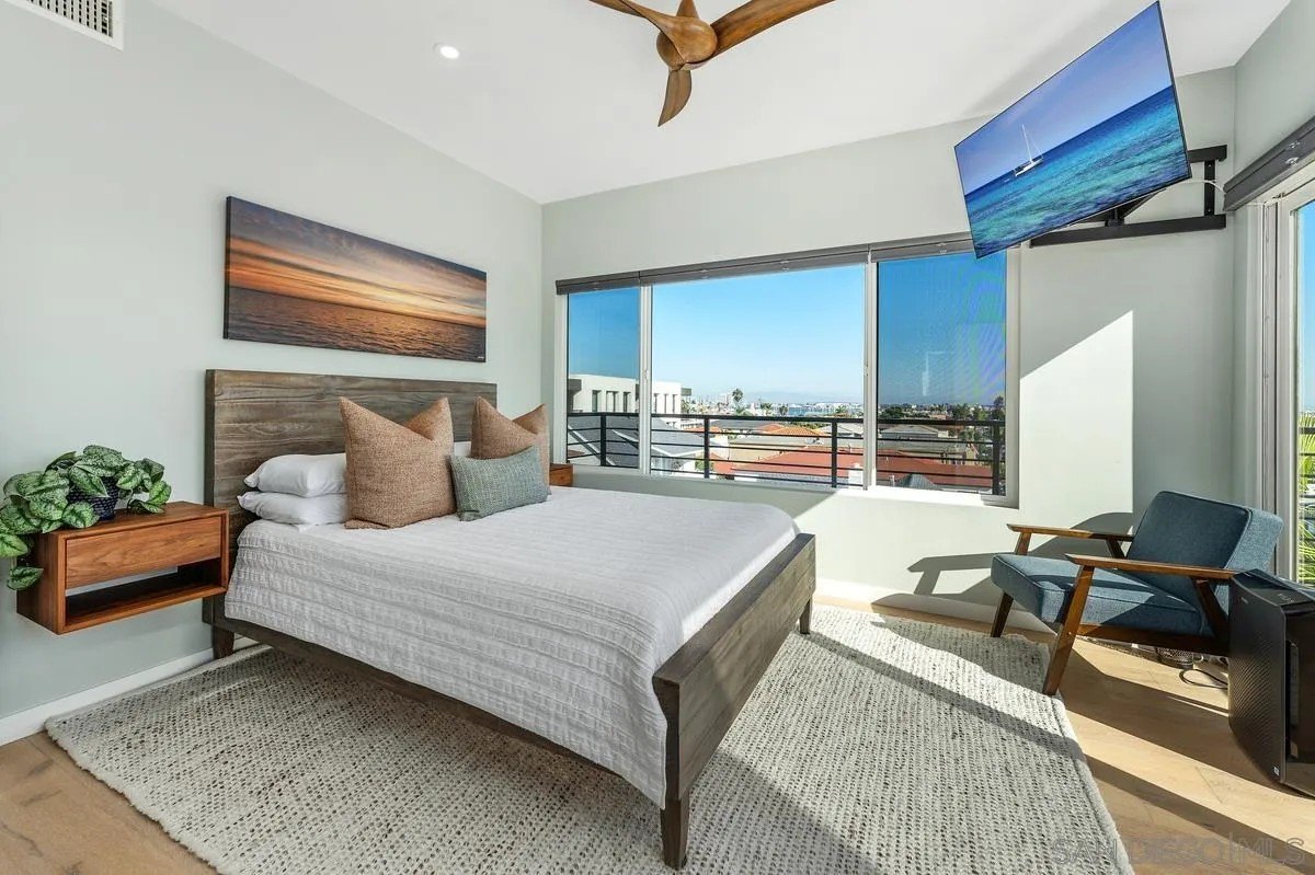 Just three blocks from the Bay in the heart of Point Loma Village, this luxury townhome in the Emerson Corner Complex blends modern design with everyday convenience and stunning views. Built in 2017, the home features an open floor plan with engineered Baltic Oak flooring, Shinnoki cabinetry, a Dacor appliance package, and a white quartz waterfall-edge island with designer lighting. Both upstairs bedrooms include ensuite baths with bay views, while the primary suite offers a private wraparound balcony and custom Elfa walk-in closet. Enjoy panoramic vistas from the private rooftop deck, complete with gas hookup, water spigot, and sink access - perfect for entertaining and watching the Big Bay Boom on the 4th of July! Additional highlights include dual-zone A/C, tankless water heater, LED lighting, Emtek digital hardware, and a smart-home system with Lutron lighting, Ring security, and MyQ garage controls. The two-car garage is equipped with an insulated Martin door with ultra-quiet smart opener. Living here grants easy access to some of Point Loma's most popular spots, including Mitch's seafood, Jimmy Famous Tavern, Ketch, Old Venice, to name a few, and an easy walk to live music at Humphrey's by the Bay. Nearby Shelter Island and Liberty Station add even more dining, entertainment, and coastal recreation options, all just minutes from your front door. With its rare combination of style, comfort, and a walkable waterfront location, this home captures the best of Point Loma living.