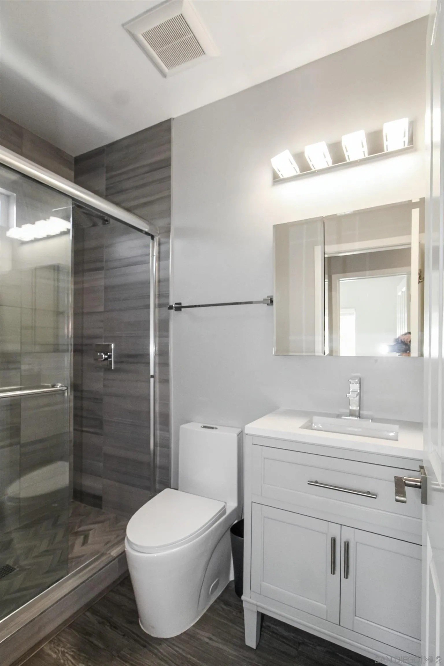 Contemporary Coastal Living in Pacific Beach - 2114 Felspar St, San Diego, CA 92109. Step into the ultimate Pacific Beach lifestyle with this amazing 4-bedroom, 3-bathroom condominium, with 1,800 sq. ft. of modern design elegance. This isn't just a home; it's your gateway to coastal bliss, free from HOA fees and meetings, thanks to a clever condo lot split that creates two independent homes. Arrive through a charming front gate and shared walkway or slip in discreetly via the quiet alley to your two-car garage and additional parking spaces. Inside, an open-concept design welcomes you with a showcase atrium staircase that spans all three levels, bathing the home in golden natural light. The ground floor hums with possibility: a sleek, modern kitchen flows effortlessly into the dining and living areas, perfect for lively gatherings or cozy nights in. A versatile bonus room awaits your vision-transform it into a fourth ground-level bedroom, a chic home office, or a welcoming guest retreat. Ascend to the upper levels, where three thoughtfully designed bedrooms offer comfort and style. The primary suite is your personal sanctuary, complete with a private deck for morning coffee or starlit evenings. But the real showstopper? An expansive rooftop deck and recreational area, serving up panoramic peek views of Mission Bay and the twinkling San Diego skyline. Picture yourself hosting sunset soirees, lounging in the sun, or cheering for Mission Bay summer-long fireworks from this unobstructed perch.