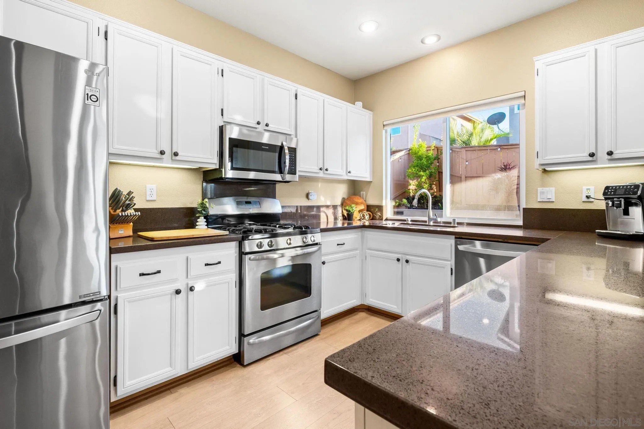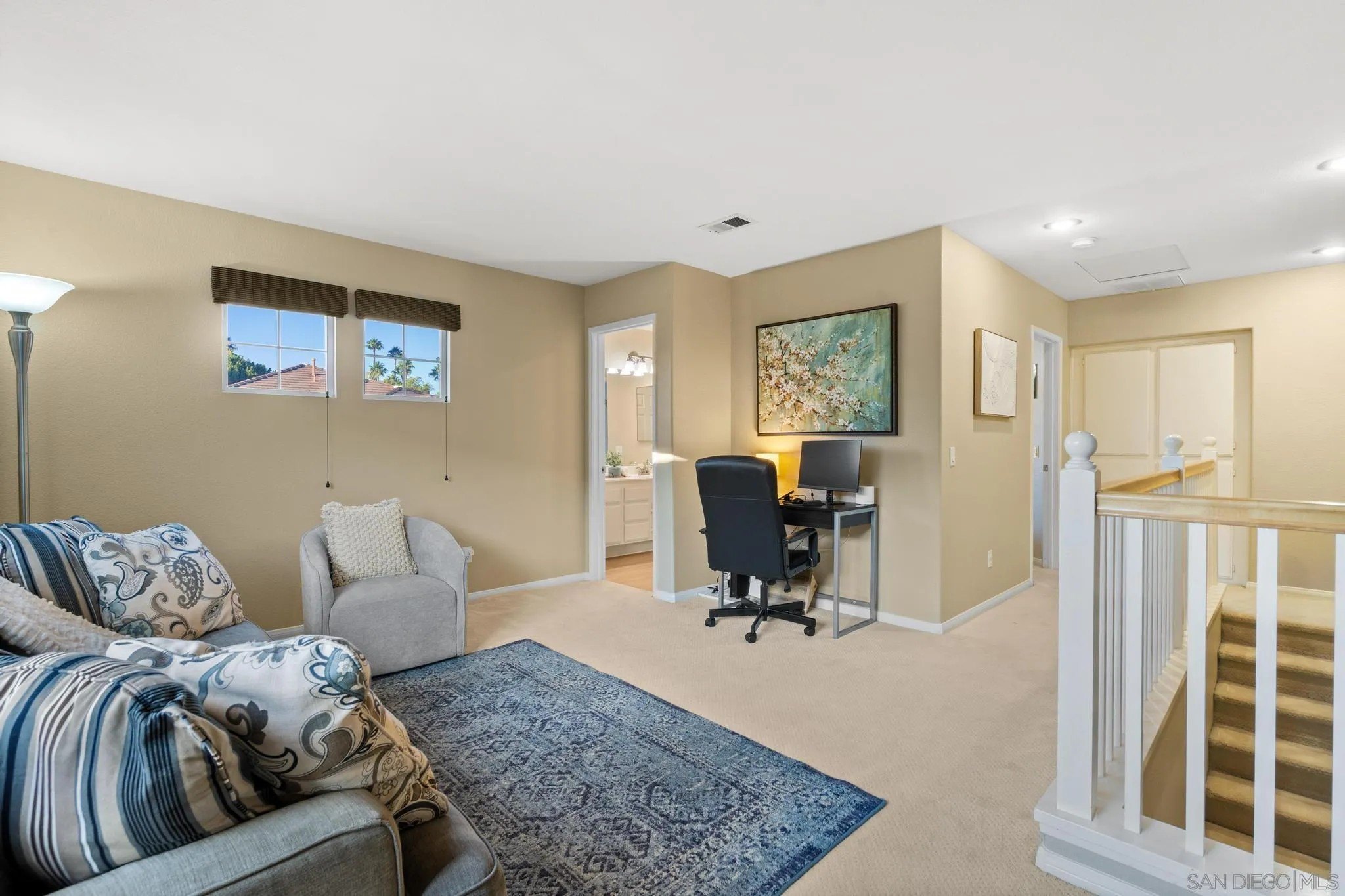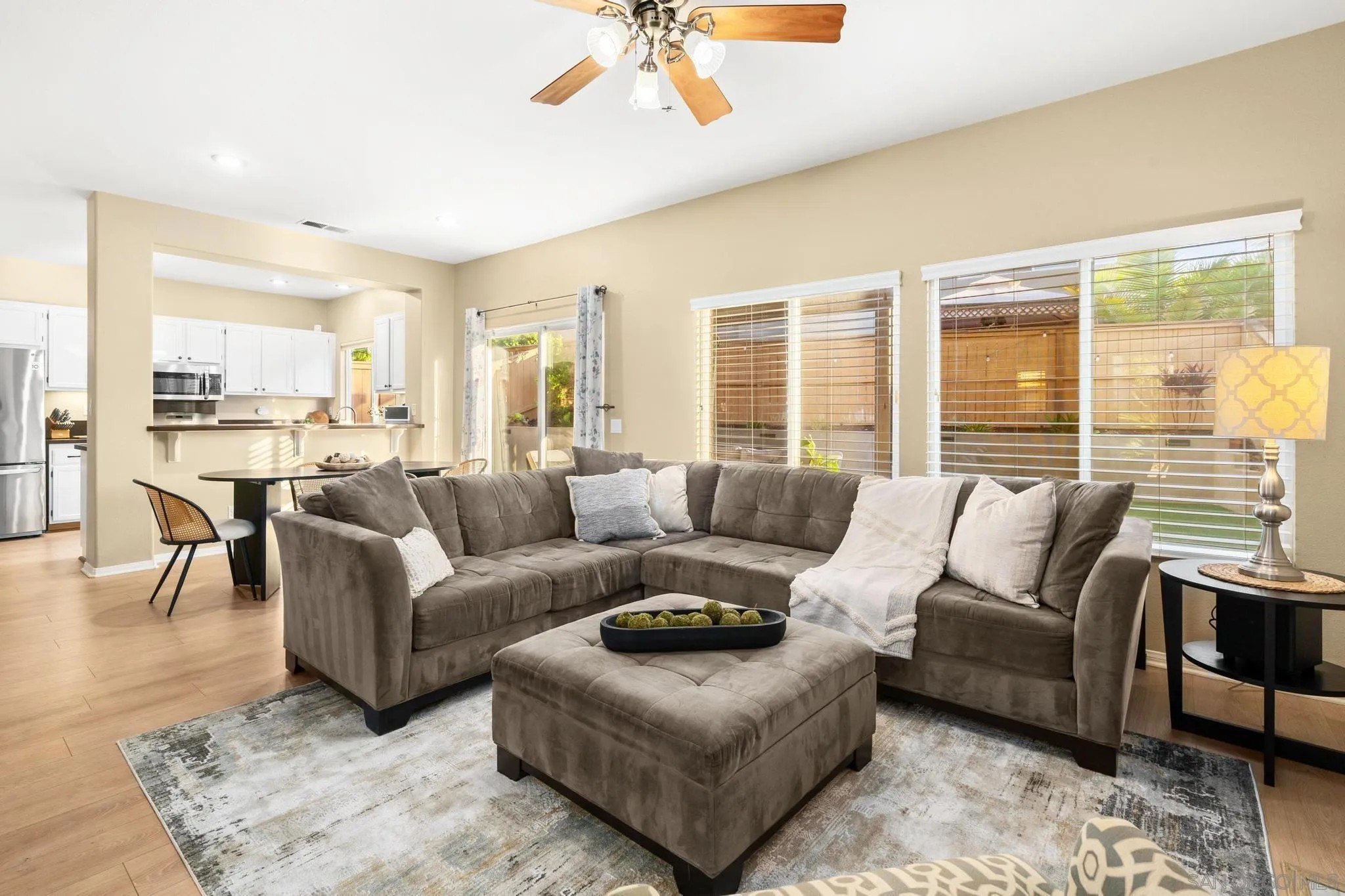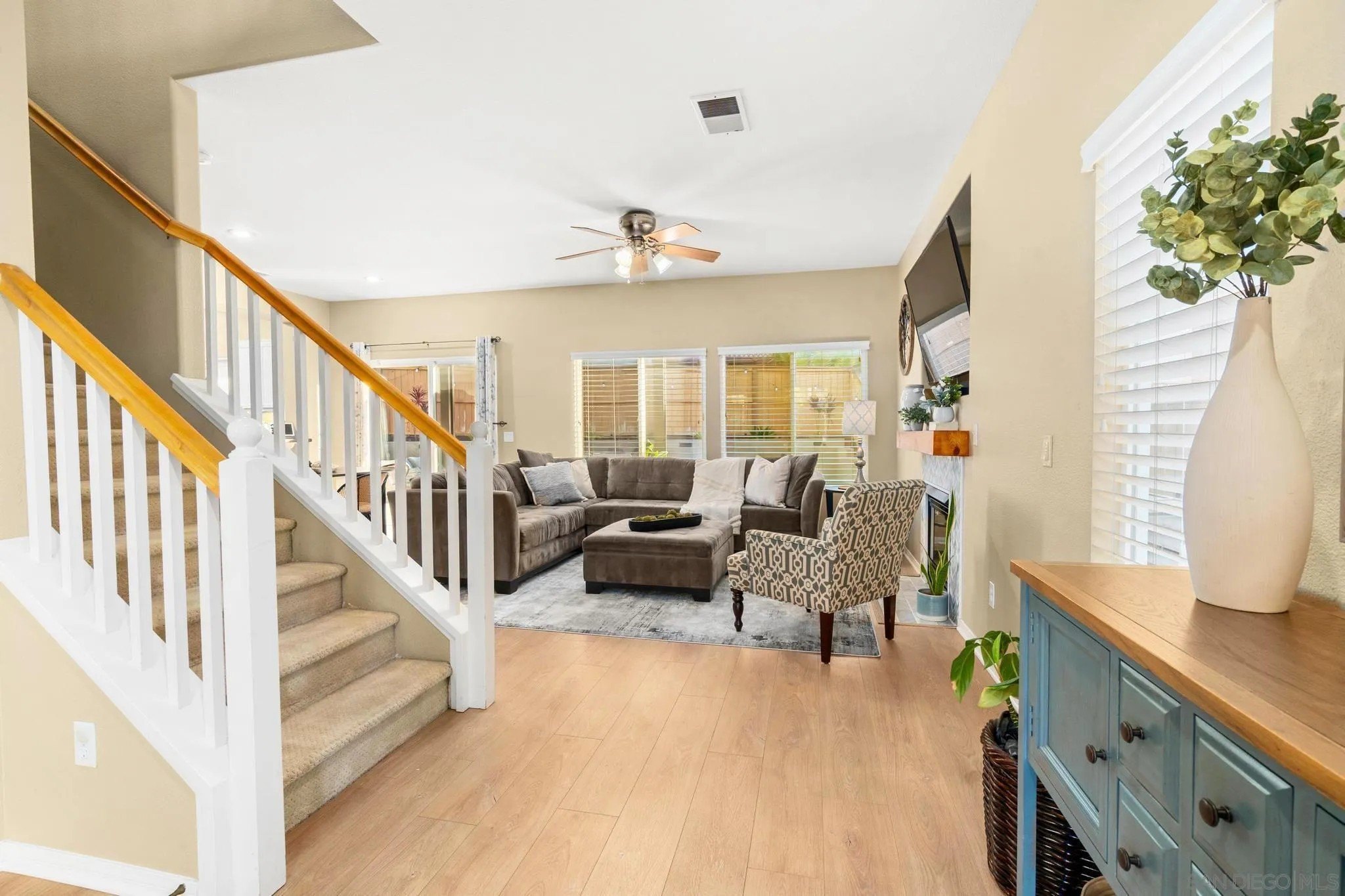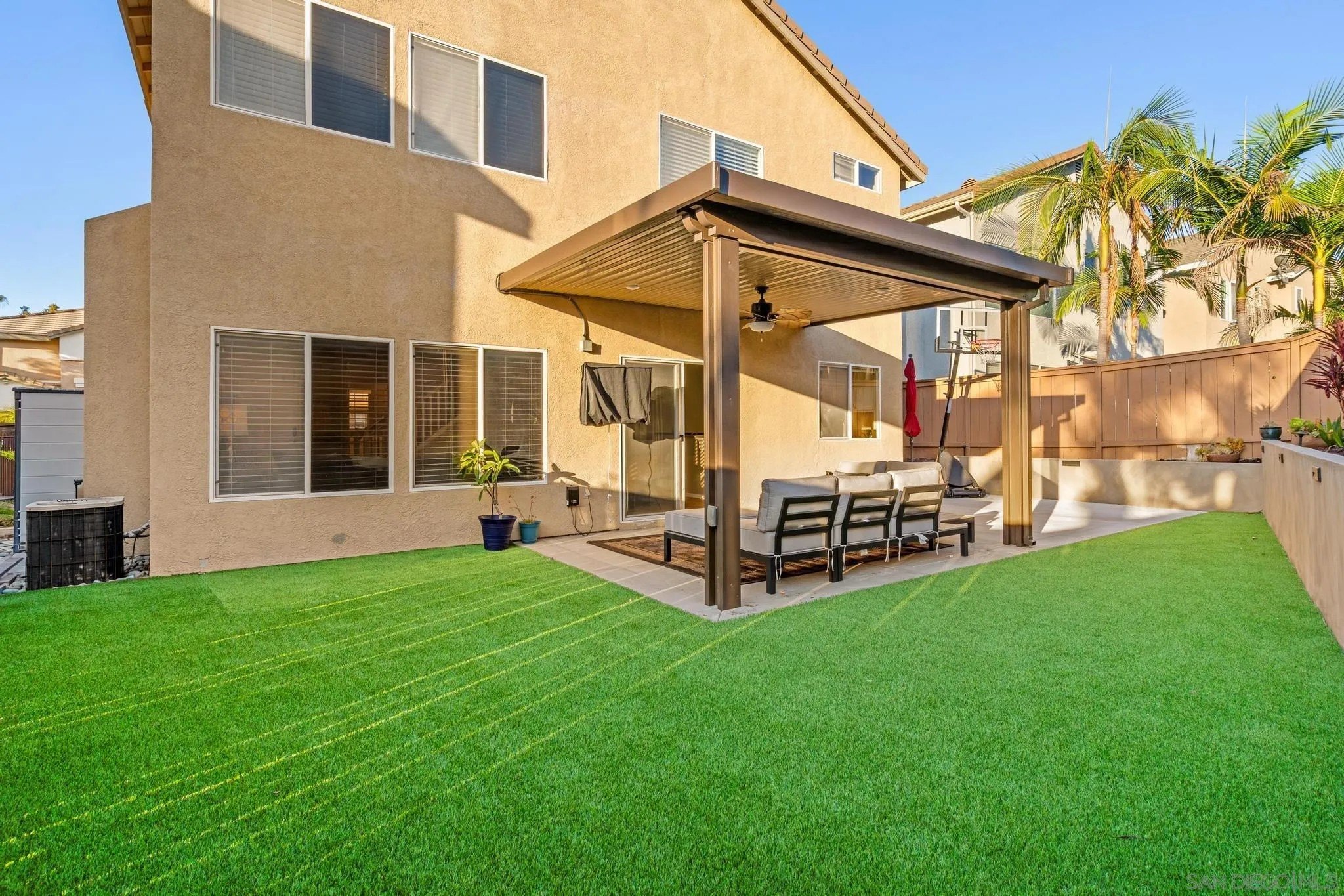 Life feels effortless at 9819 Kika Ct, where thoughtful upgrades allow you to simply settle in and enjoy. From the refreshed kitchen to the reimagined outdoor spaces, every corner has been shaped to make daily living feel both simple and elevated. The kitchen features painted cabinetry, updated hardware, and modern appliances. Upstairs, a generous loft serves as a flexible retreat-perfect for a home office, media room, or play space. The bedrooms are equally spacious, offering comfort and versatility, while the primary suite includes a custom walk-in closet designed for everyday ease. This is a home made to work for you, with leased solar panels and smart features that bring efficiency to daily life. The front yard makes a striking first impression with artificial turf, lighted stairs, installed Govee lights, and drought-tolerant landscaping that delivers standout curb appeal with minimal upkeep. Outdoor living continues in the backyard, where an Alumawood pergola complete with fan and light anchors the space, complemented by artificial turf, a custom retaining wall, drip irrigation, and soft low-voltage lighting that makes evenings outside feel warm and inviting. Even the garage has been elevated with epoxy flooring and overhead storage racks, keeping everything neat and functional. Located in the Allegra enclave of Rancho Penasquitos, this home offers connection and convenience with nearby parks, dining, top-rated schools, and easy freeway access. Blending thoughtful upgrades with inviting spaces, 9819 Kika Ct offers a home that's as functional as it is beautiful.