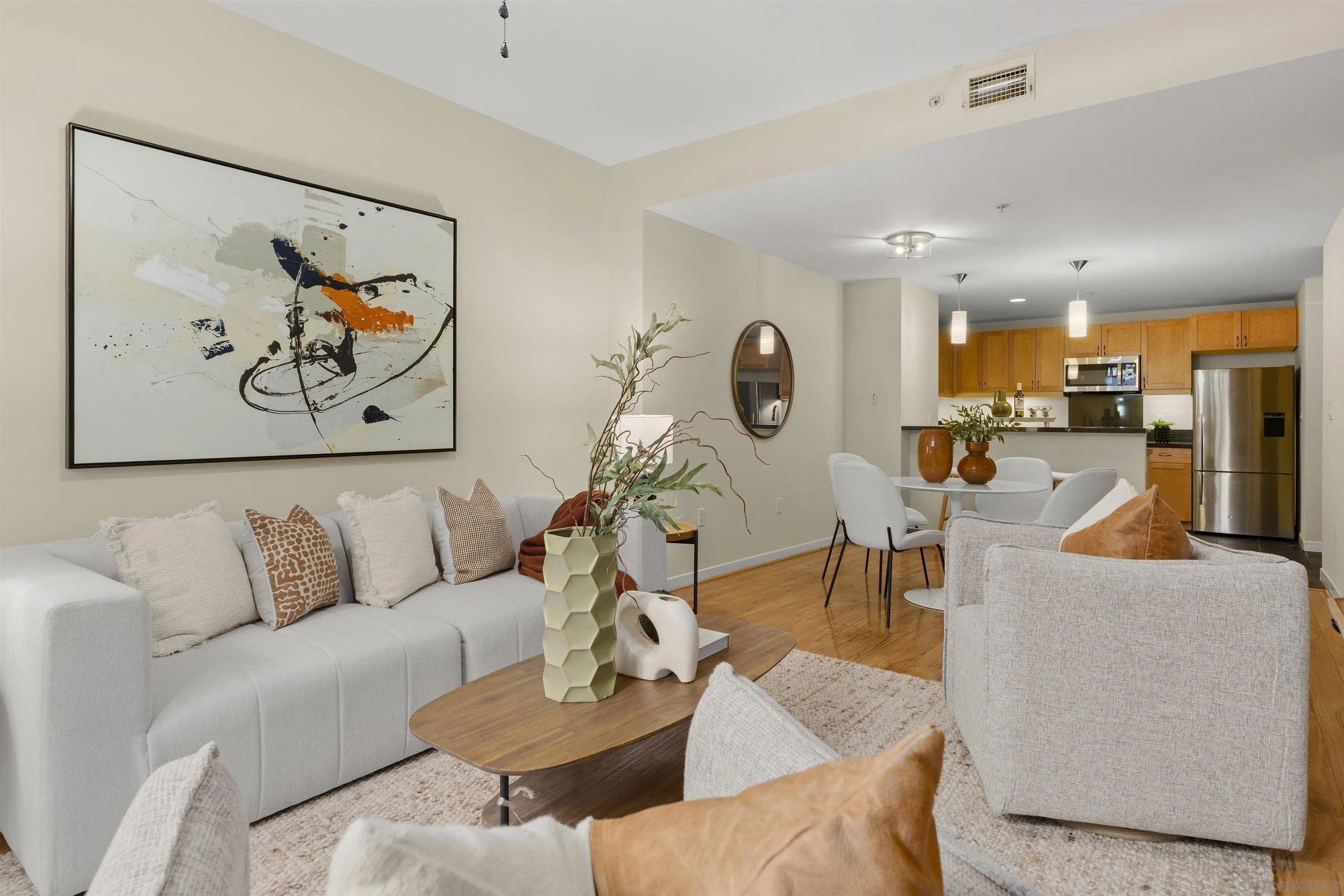 Modern East Village Condo with Private Street Access. Welcome to Metrome, one of East Village's most sought-after communities, just blocks from Petco Park, the Gaslamp, and San Diego's best dining and entertainment. This spacious 1-bedroom + office, 1-bath home offers 996 sq. ft. of modern living with an open floor plan, abundant natural light, and a well-equipped, contemporary kitchen. Unique to this residence is a gated terrace with direct access in addition to the building's secure courtyard and lobby. The versatile office space makes working from home effortless, while the primary suite and living areas flow seamlessly for both comfort and entertaining. Metrome residents enjoy a community lounge, fitness center, and prime access to the trolley and public transit. With its combination of privacy, convenience, and location in the heart of East Village, this home is perfect for those who want to live the vibrant downtown lifestyle.