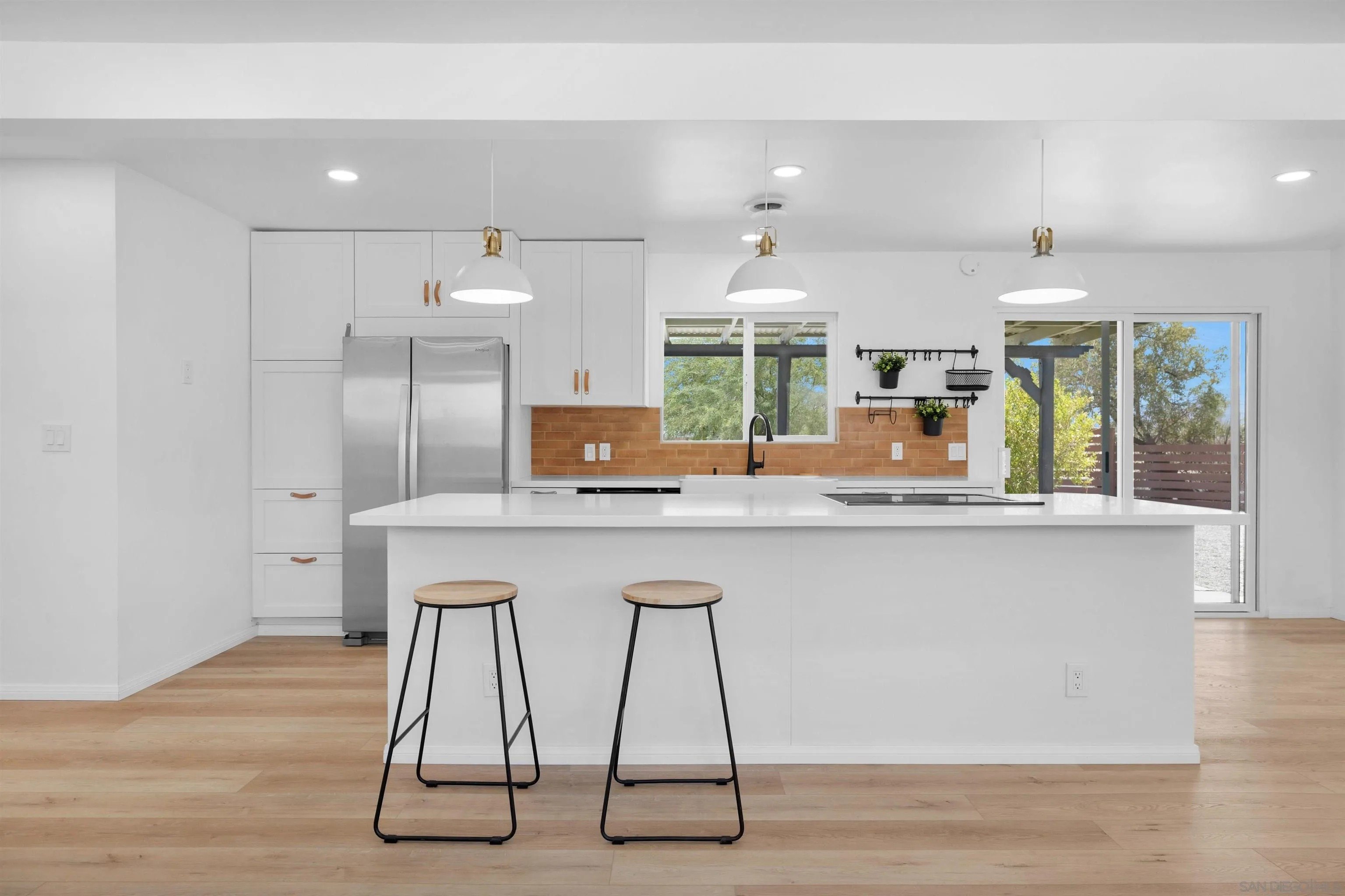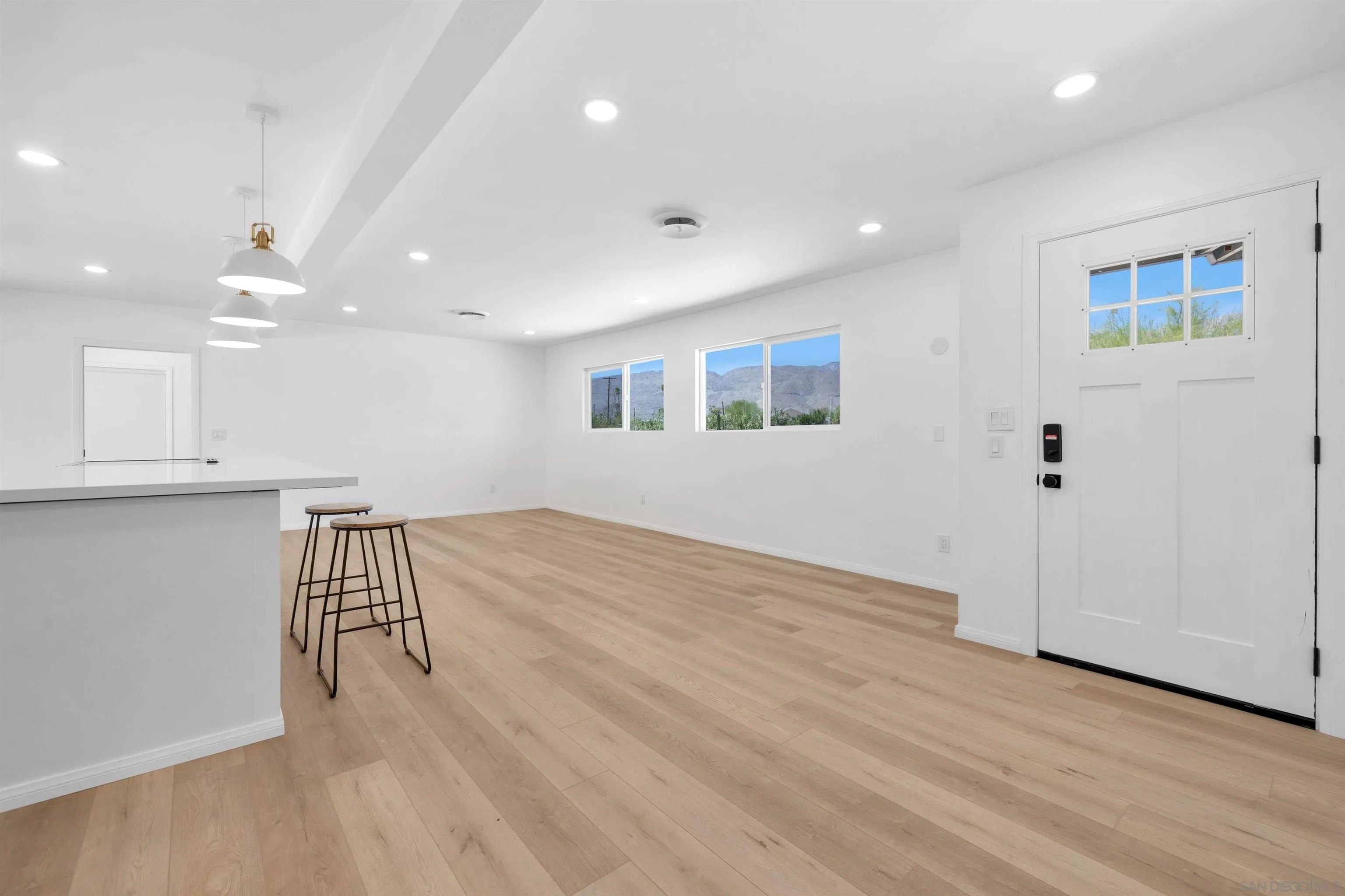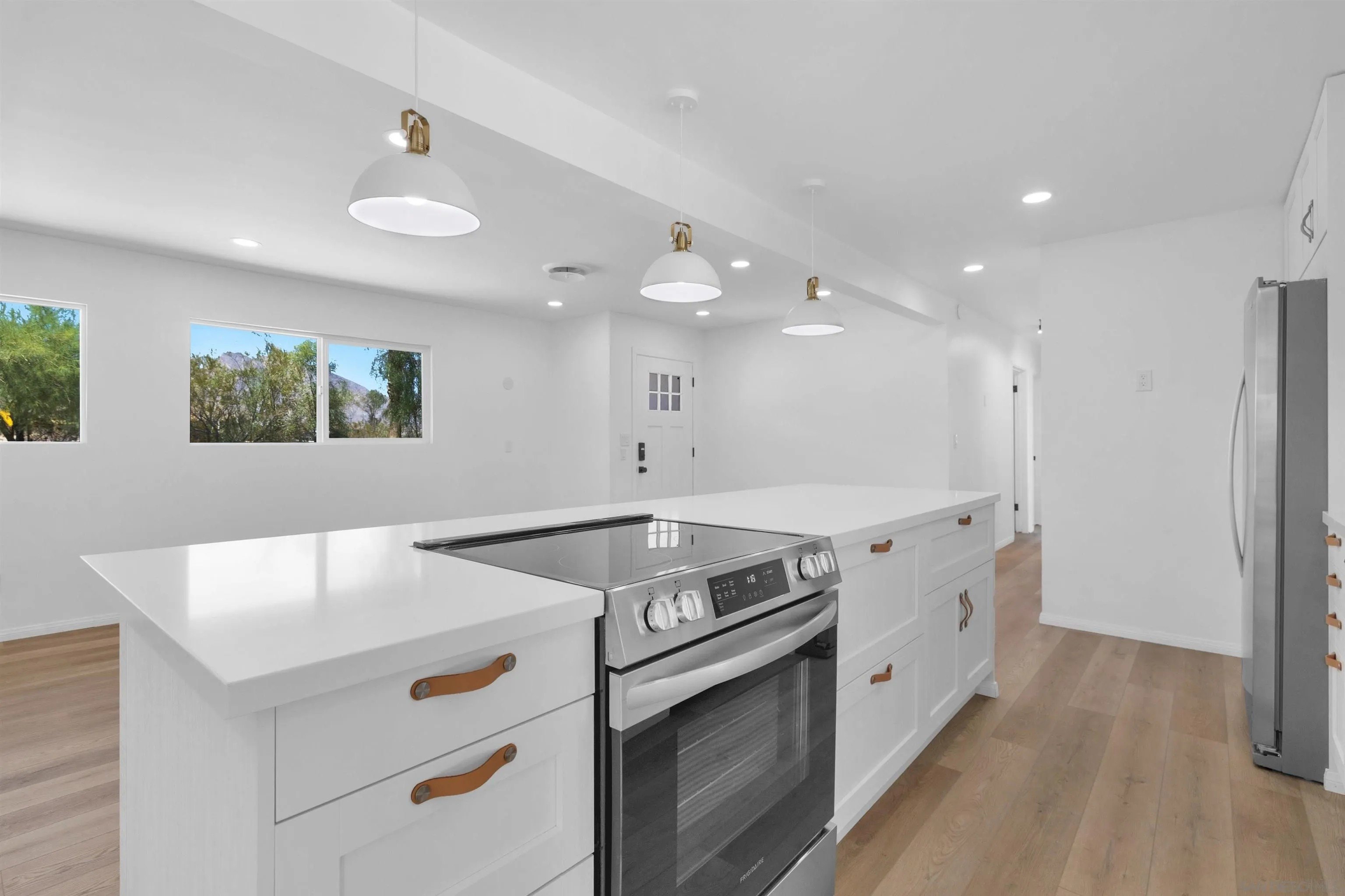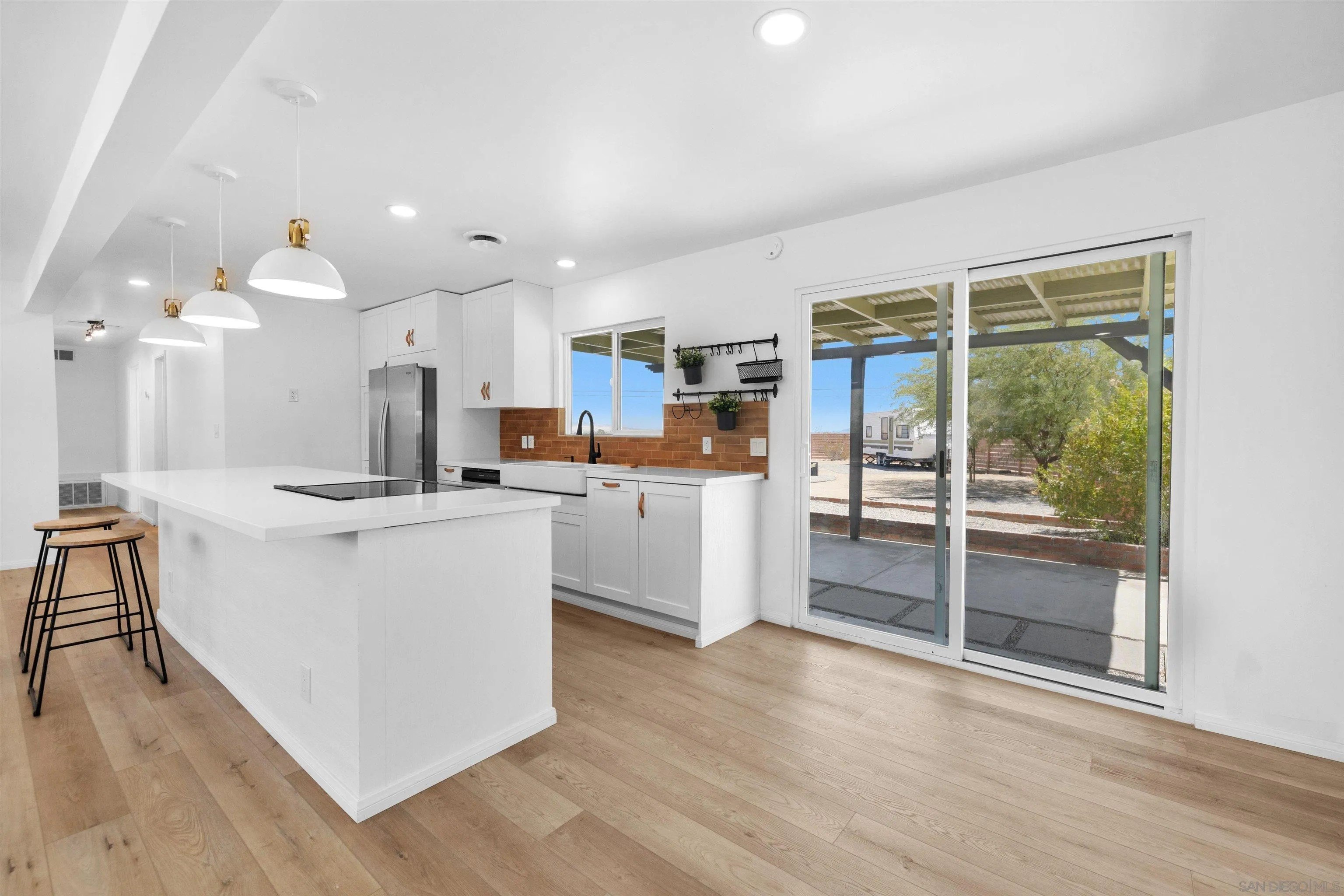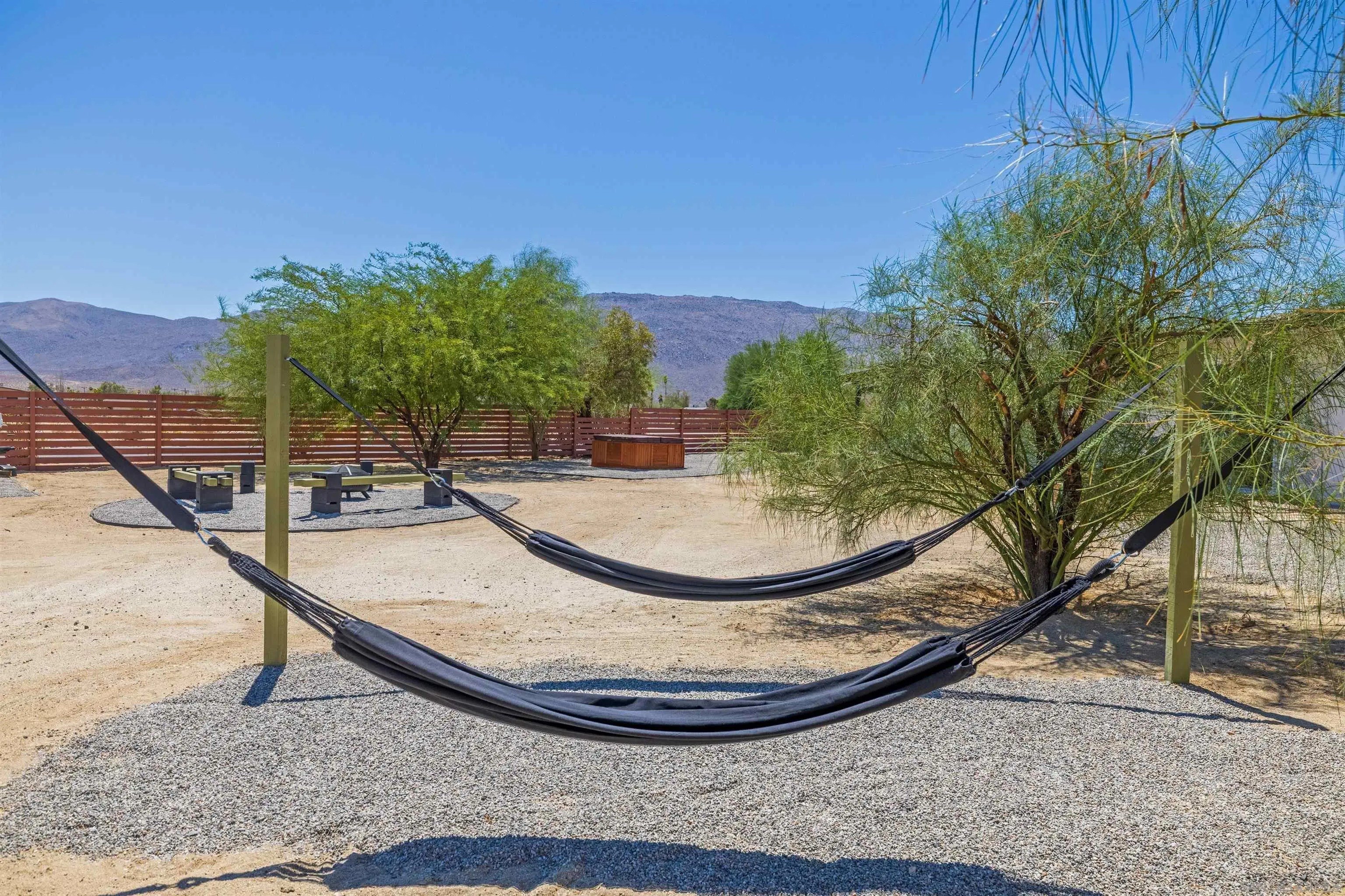 Newly renovated, bright, sunny 4 bedroom, 2 bathroom house in beautiful Borrego Springs on over 1/2 an acre. Centrally located 2 miles from town but peaceful and private. Gorgeous chef's kitchen: large island with built in range, dishwasher, pantry and french door refrigerator. Huge primary bedroom with designer en suite and walk in closet. Large laundry room - new washer and dryer included. Spacious and private, fully fenced back yard with a fire pit, hammocks and a trailer as additional living space. Lots of parking for your RV and toys too with a 30 Amp hookup! New landscaping and a beautiful oasis to start this next chapter or investment property. Gorgeous views from every window and jaw-dropping sunrises/sunsets to witness from this beautiful desert home.