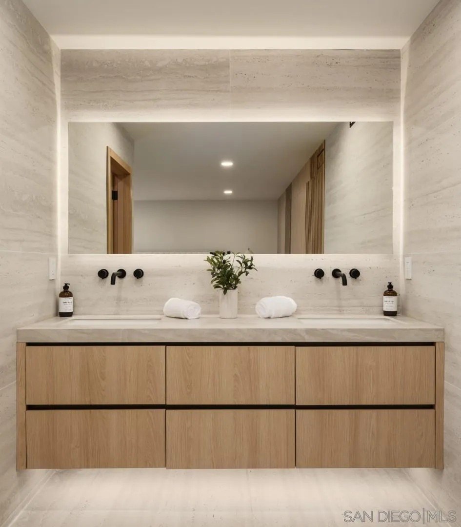 This one-of-a-kind, fully remodeled Mount La Jolla home offers a stunning blend of modern design, luxury finishes, and thoughtful craftsmanship. Every detail has been elevated, from custom wood cabinetry that adds warmth and elegance to clean architectural lines and sleek black hardware that create a contemporary edge. LED accent lighting throughout highlights the home's unique features. A loft-style bedroom adds versatility and character to the open split-level design. The chef's kitchen is outfitted with top-of-the-line Viking and Fisher Paykel appliances, seamlessly integrating performance with style. Custom closets throughout the home provide both sophistication and function, and expansive western views capture San Diego sunsets in perfect clarity. Set within the coveted Mount La Jolla community, residents enjoy resort-style amenities including multiple pools, tennis courts, a clubhouse, and fitness center, all surrounded by beautifully landscaped grounds. Just minutes from La Jolla's coastline, upscale village dining, and top-rated schools, this home is a rare opportunity to own a meticulously redesigned sanctuary in one of Southern California's most desirable neighborhoods.