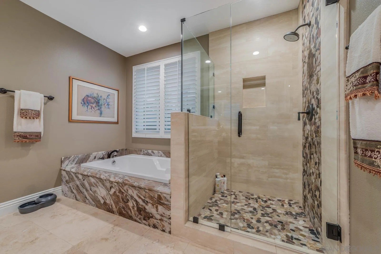 LUXURIOUS SINGLE STORY HOME THAT WAS COMPLETELY GUTTED FROM TOP TO BOTTOM. GATE GUARDED, IN HIDDEN MEADOWS, and finished in early 2024. This was supposed to be the forever home, so everything was done top notch AND CUSTOM. Views, golf course frontage, single loaded street & this home has a huge lot where turf was Installed in front & back & all plants on drips.. With over $700K put in this home, items include: BRAND NEW ROOF ALUMAWOOD PATIO COVER (30'), ALL NEW BATHROOMS WITH CUSTOM CABINETS, SHOWERS & BATHS, NEW LAUNDRY CABINETS & SINK, HARDWOOD HICKORY FLOORS, WOOD SHUTTERS, NEW APPLIANCES TO INCLUDE SUB-ZERO & DECOR, SECURITY SYSTEM W/CAMERAS, CUSTOM OFFICE CABINETS, CANNED LED LIGHTING ADDED WHERE THERE WAS'NT ANY & ART LIGHTING TOO, CUSTOM CAST STONE FIREPLACE SURROUNDS (3), NEW HEATING & AIR (HEAT PUMP SYSTEM SO AS NOT TO DRAW FROM PROPANE), PEBBLETECH POOL, NEW VINYL FENCING ON THE EAST SIDE & BOTH FRONT GATES, POOL OVERFLOW, NEW TURF, NEW WINDOWS THROUGHOUT (ANDERSON), CUSTOM CABINETRY W/DOVETAIL, PULLOUTS, & AUTOMATIC CLOSE, GORGEOUS QUARTZITE, CUSTOM PAINT INSIDE & OUT, NEW GARAGE DOOR AND OPENER, NEW CUSTOM CABINETS & OVERHEAD STORAGE IN GARAGE, SOFT WATER SYSTEM, OWNED SOLAR SYSTEM, SIDE CONCRETE WALKWAY WITH TURF ADDED, NEW BASEBOARDS THROUGHOUT, CUSTOM FRONT DOOR, ARCHES ADDED IN THE LIVING RM & KITCHEN FOR DIVISION OF ROOMS, CEILING FANS THROUGHOUT, NEW LANDSCAPING, And there must be more......STUNNING HOME !