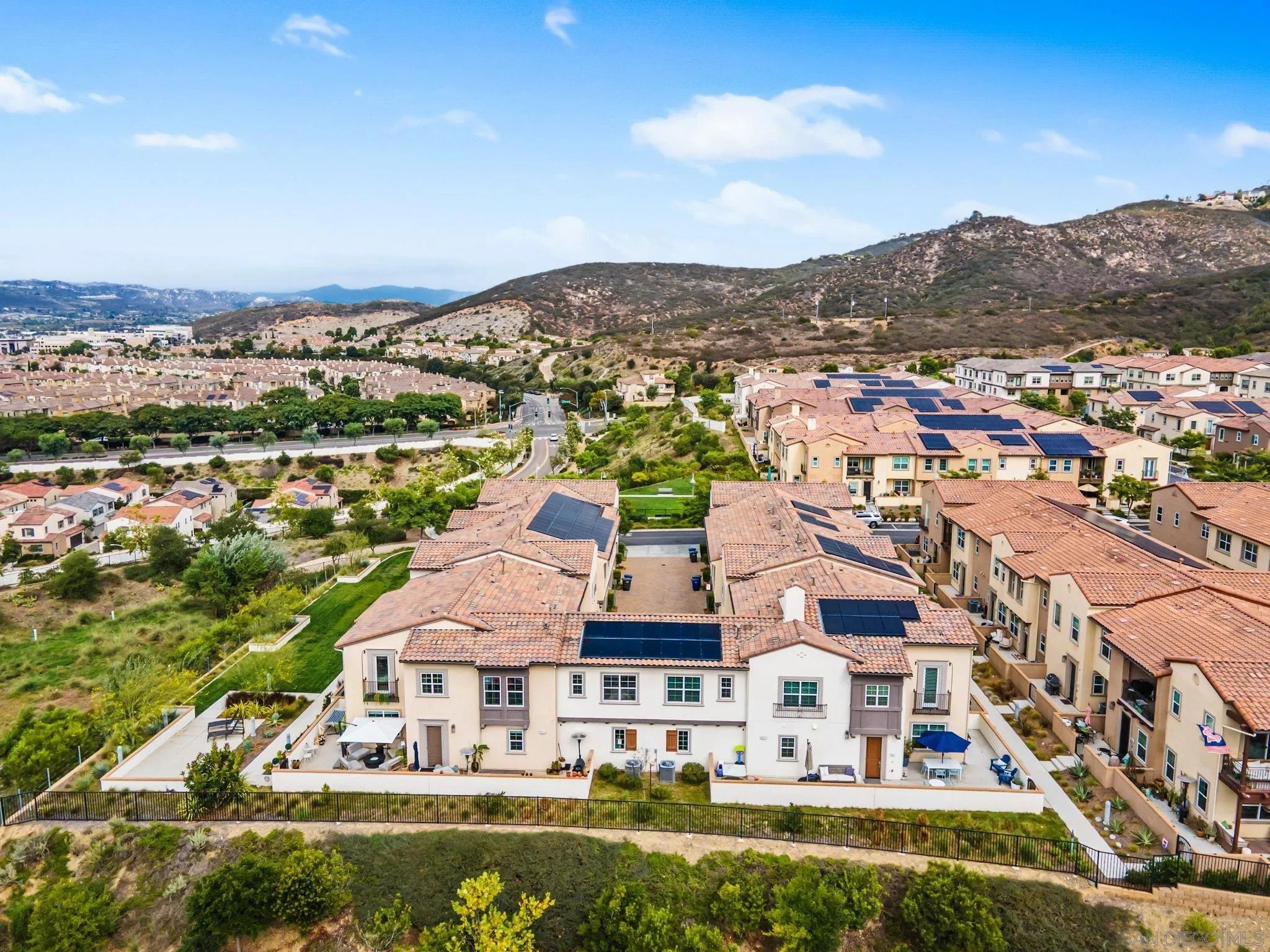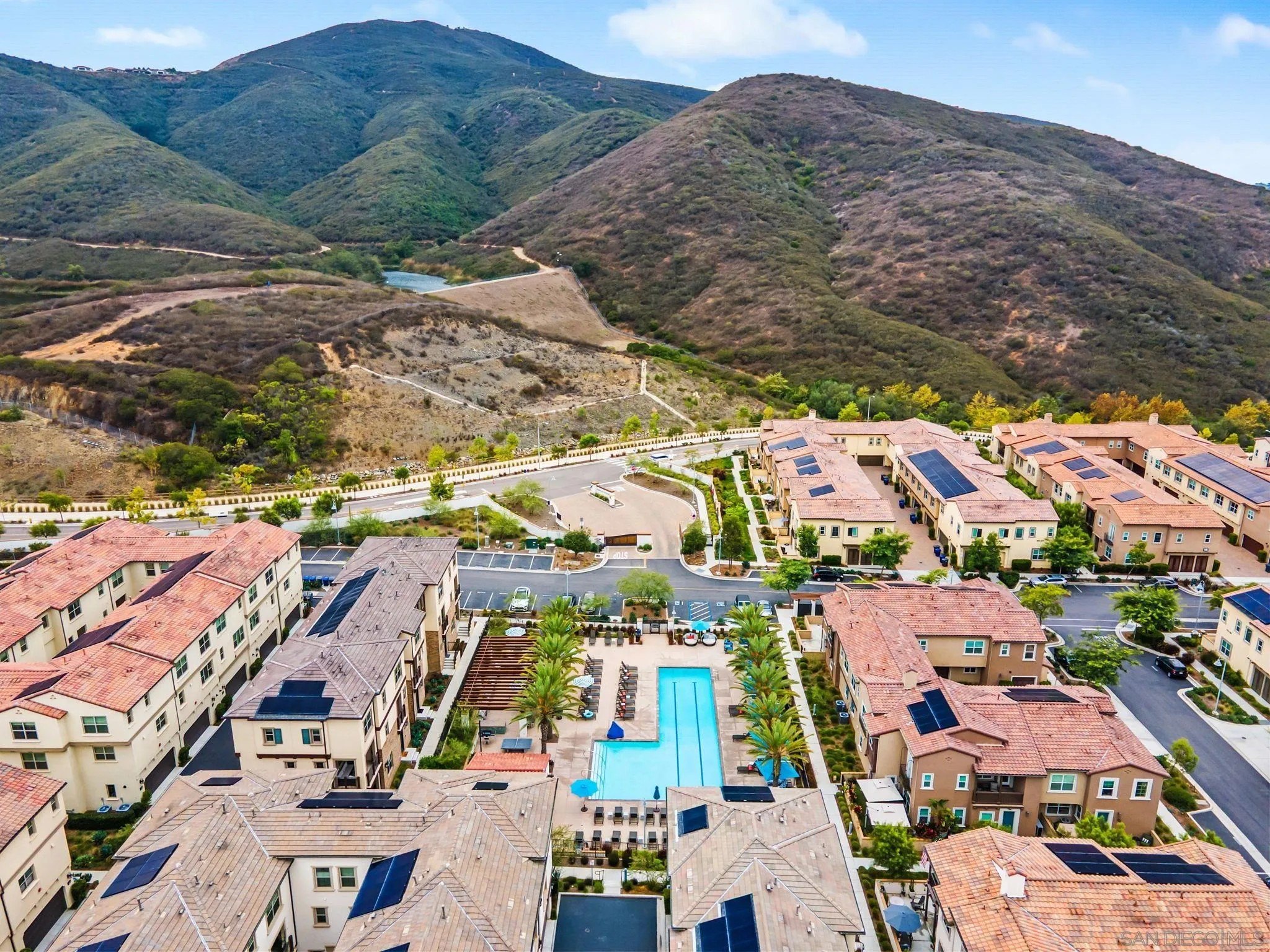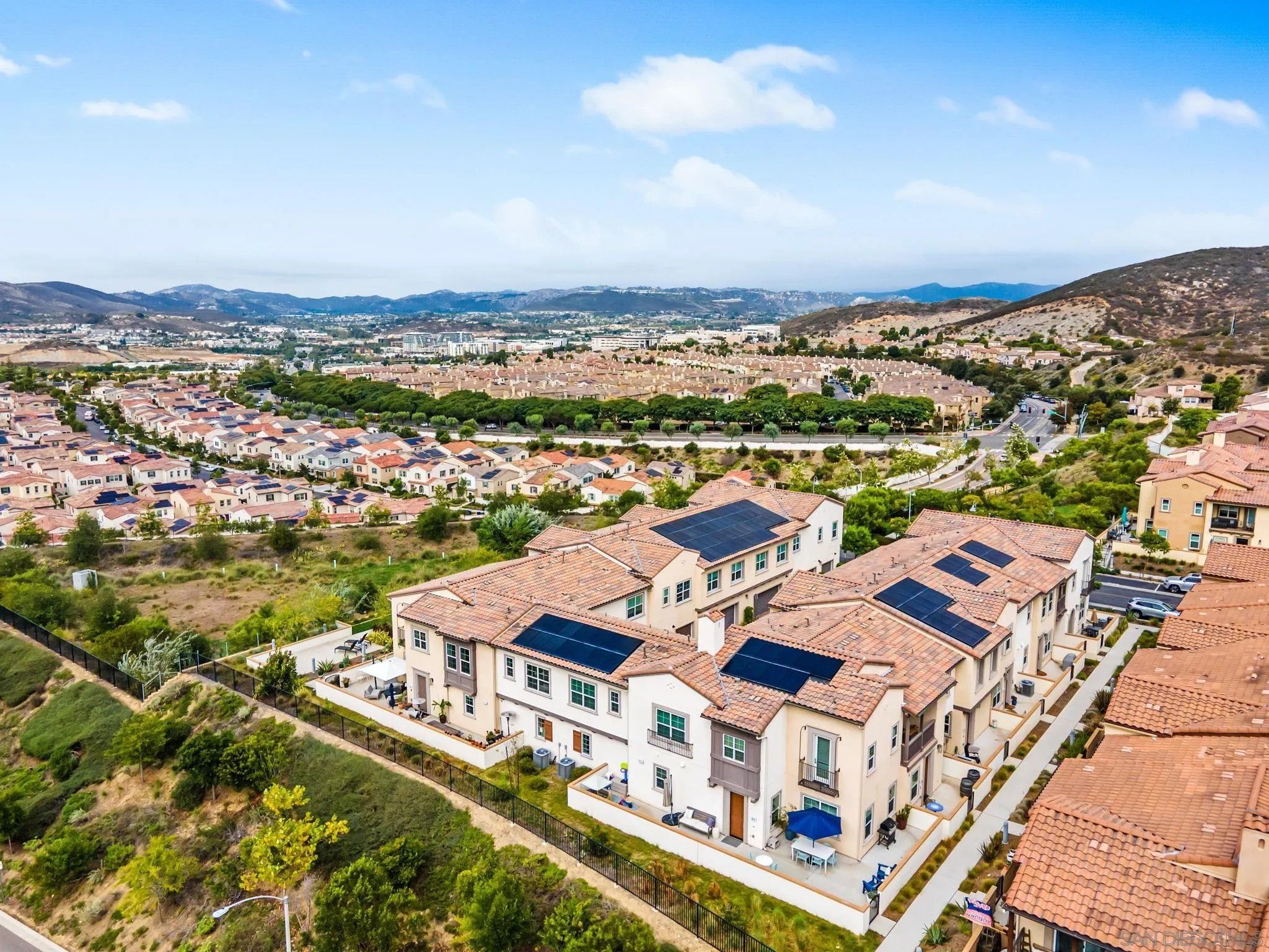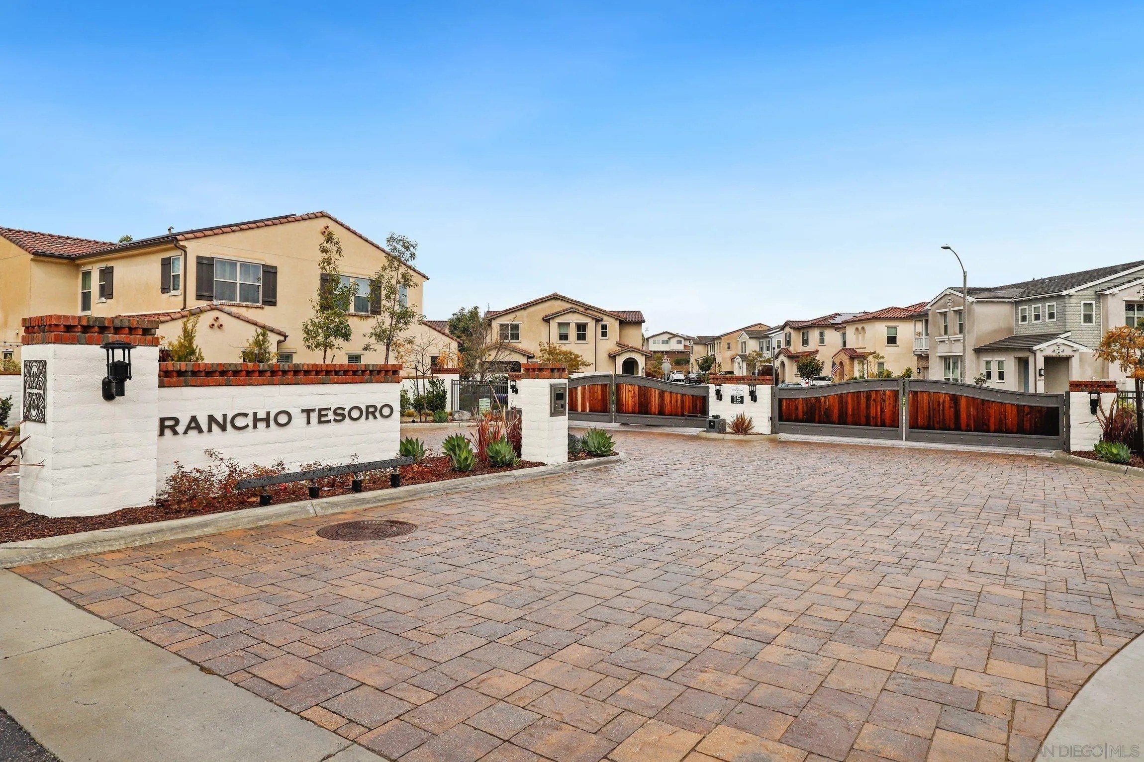 Welcome to Rancho Tesoro! This beautiful corner-unit townhome, built in 2021, is filled with natural light and modern charm. The open floor plan highlights a stylish kitchen with crisp white cabinetry, stainless steel appliances, and a center island with breakfast bar seating that flows into the living room. Upstairs, the spacious primary suite offers a walk-in closet, spa-like en-suite bath, and a Juliette balcony that welcomes in fresh breezes while framing hillside views. Additional features include energy-efficient solar, a private patio with mountain views, and an attached two-car garage. Nestled within the gated communities of Latitude and Skyhaus, residents enjoy resort-style amenities including a sparkling pool, playground, and scenic trails, with a nearby reservoir for fishing and nature walks. Served by highly rated Double Peak K-8 and Mission Hills High School, this home is the perfect blend of comfort, community, and convenience.
